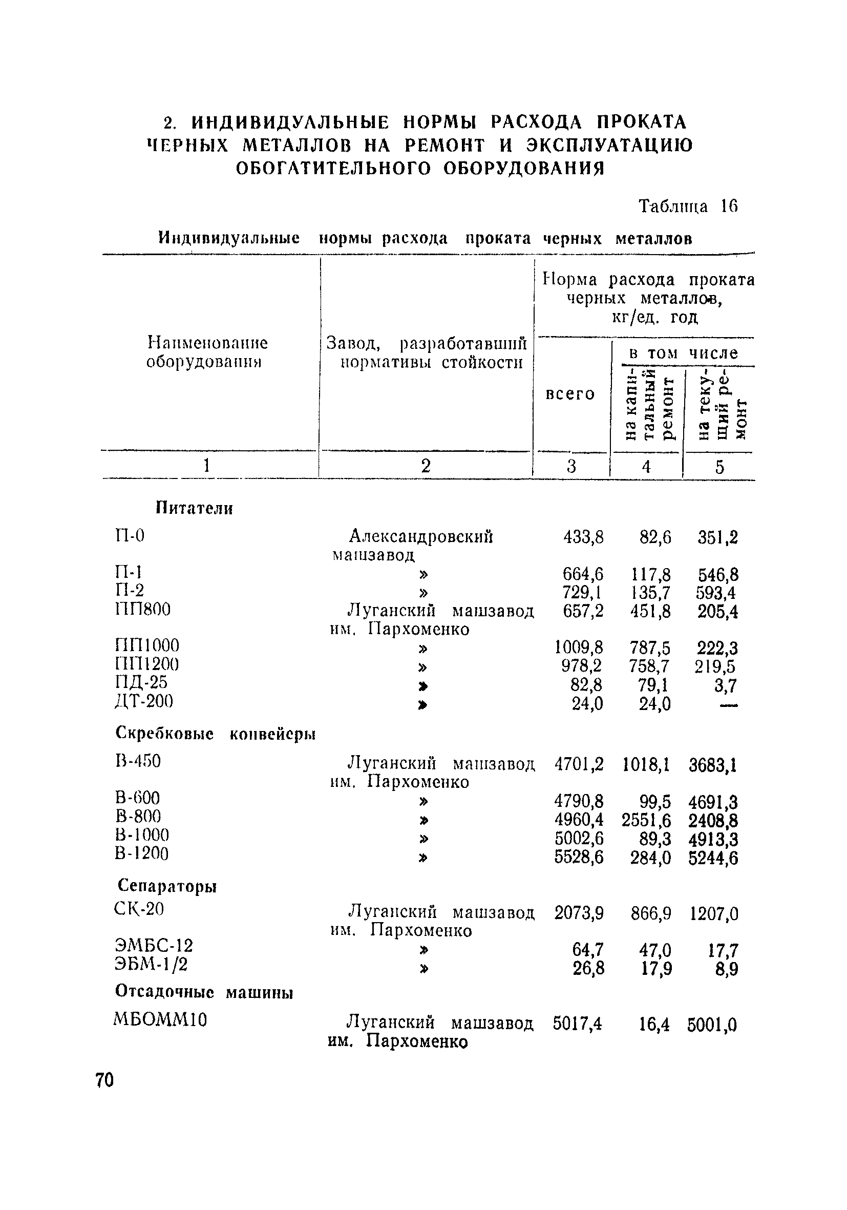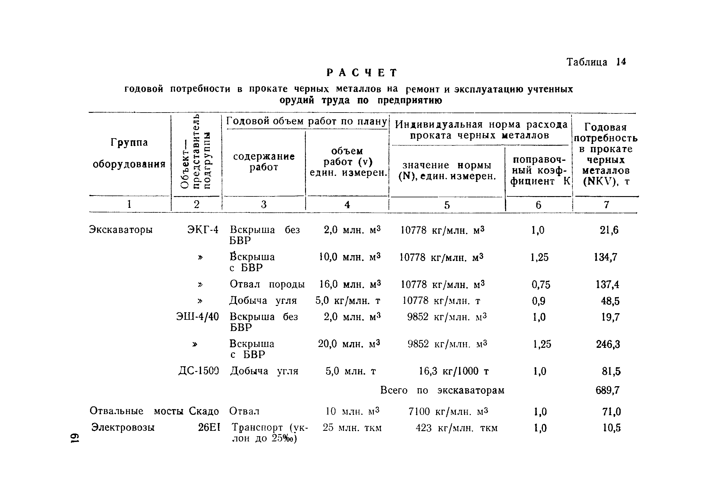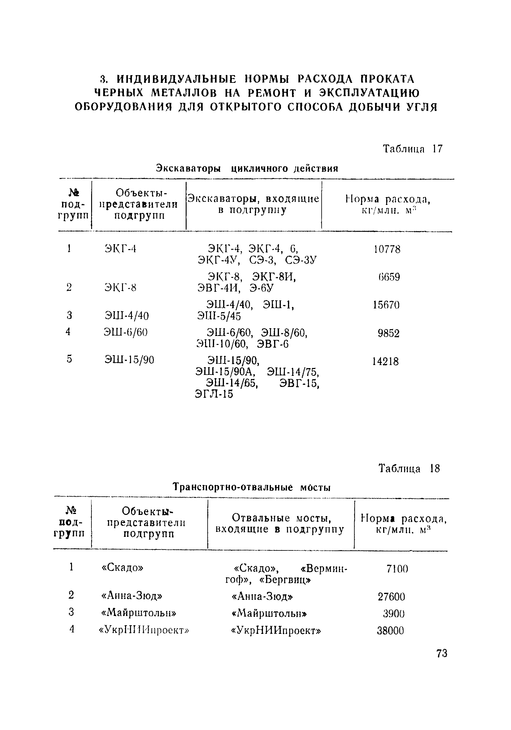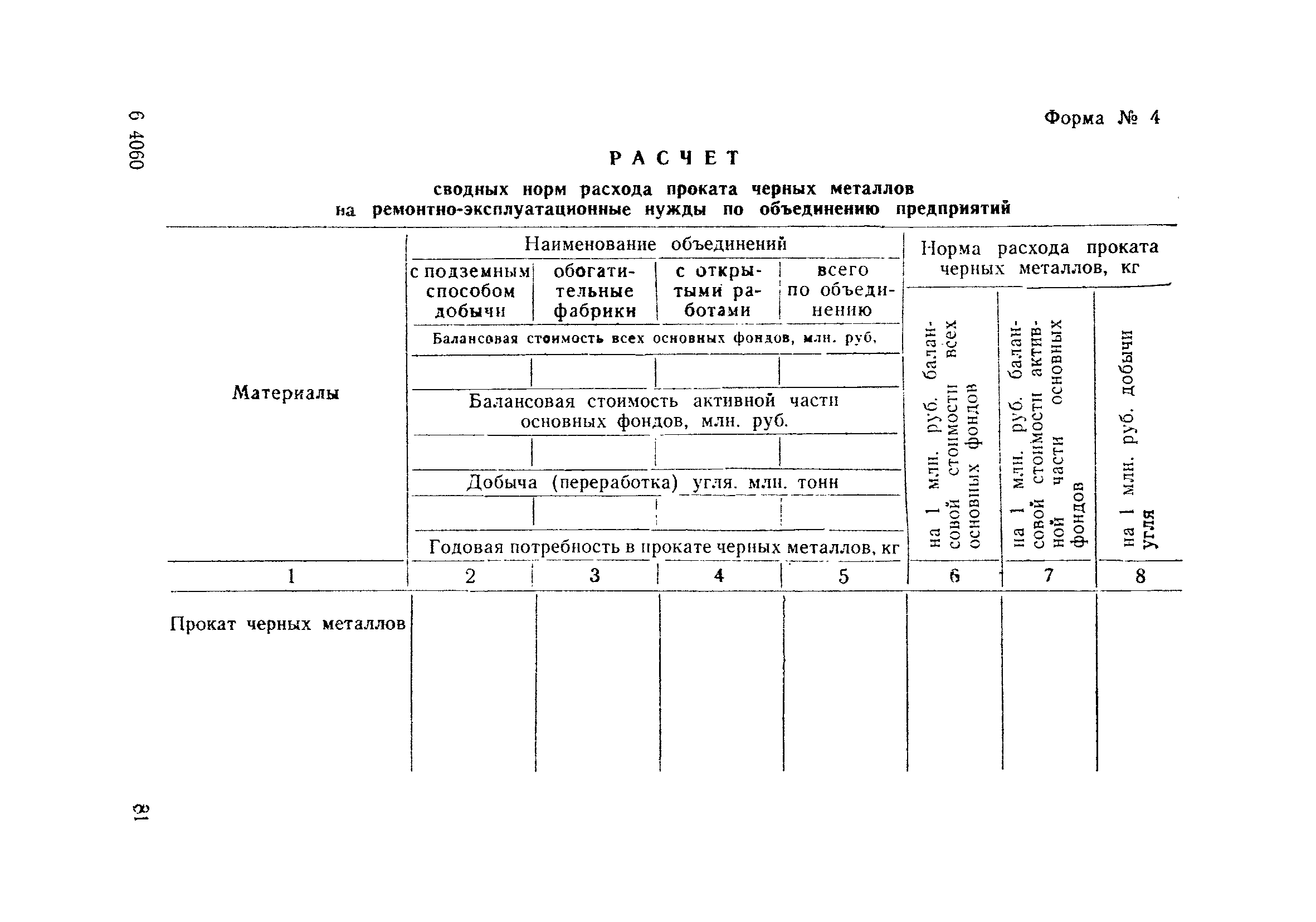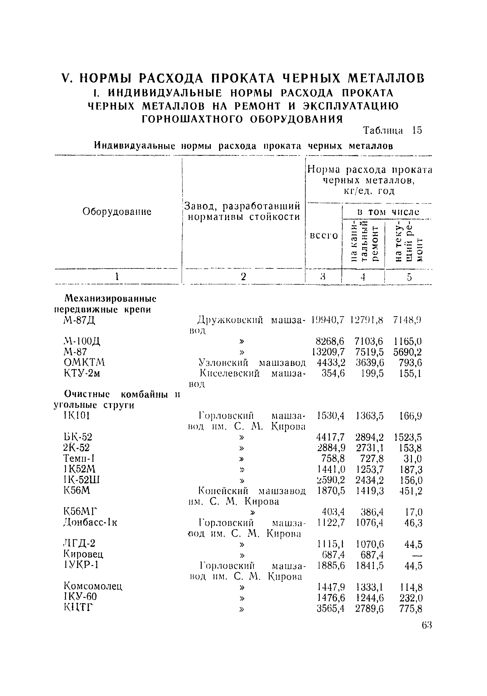 | Оглавление: | Общие положения Часть I. Инструкция во нормированию расхода проката черных металлов на ремонтно-эксплуатационные нужды для угольной промышленности I Методика нормирования расхода проката черных металлов на ремонтно-эксплуатационные нужды для подземного способа добычи и обогащения угля II. Методика нормирования расхода проката черных металлов на ремонтно-эксплуатационные нужды для открытого способа добычи угля III. Основные направления по экономии проката черных металлов IV. Примеры расчета потребности и сводных норм расхода проката черных металлов для объединения и предприятия V. Нормы расхода проката черных металлов VI. Формы для расчета норм расхода проката черных металлов Часть II. Инструкция по нормированию расхода цветных металлов на ремонтно-эксплуатационные нужды для угольной промышленности I. Методика нормирования расхода цветных металлов на ремонтно-эксплуатационные нужды для подземного способа добычи и обогащения угля II. Методика нормирования расхода цветных металлов на ремонтно-эксплуатационные нужды для открытого способа добычи угля III. Основные направления по экономии цветных металлов IV. Примеры расчета сводных норм расхода цветных металлов для объединения и предприятия V. Нормы расхода цветных металлов VI. Формы для расчета норм расхода цветных металлов Приложение Перечень оборудования, для которого разработаны индивидуальные нормы расхода на ремонт и эксплуатацию горношахтного оборудования |