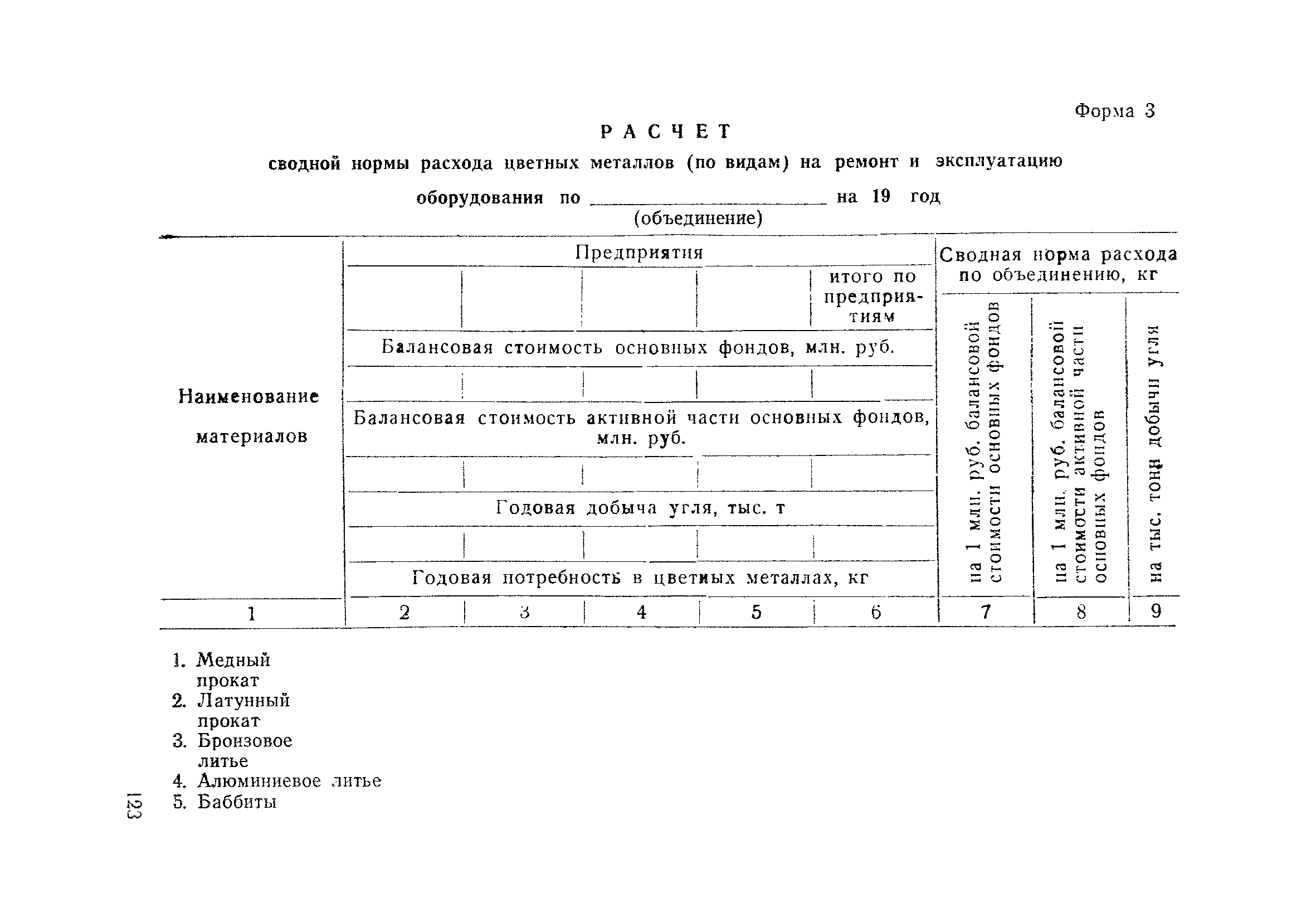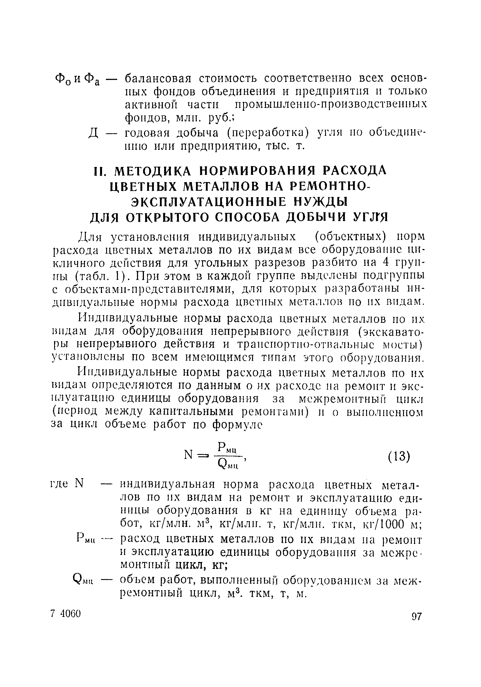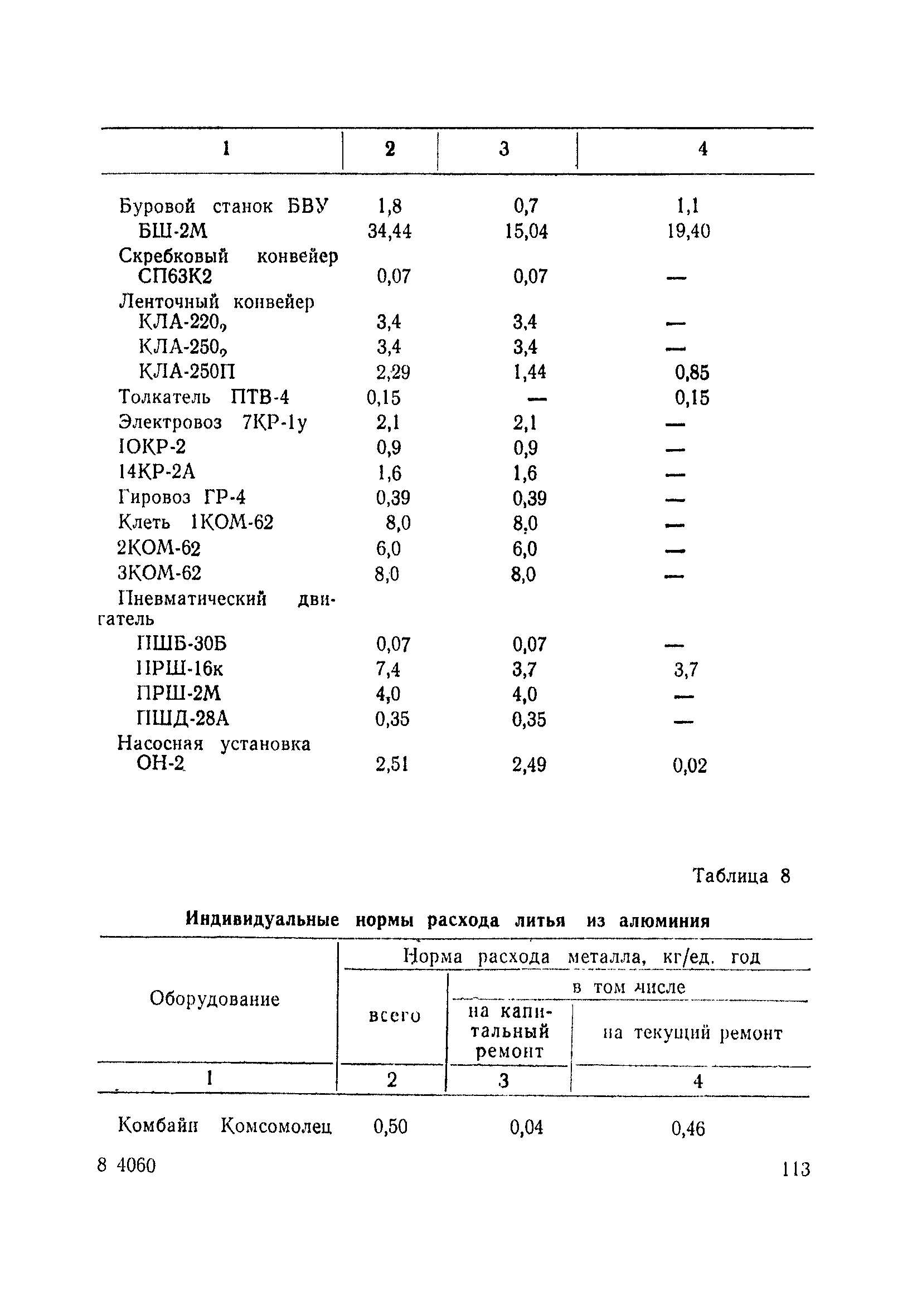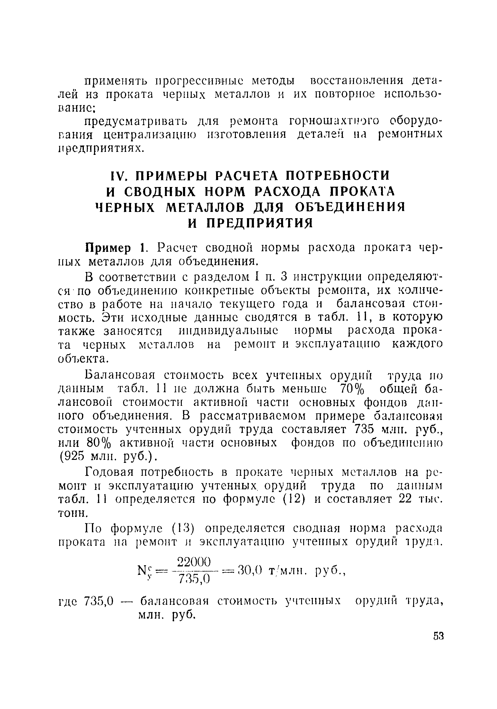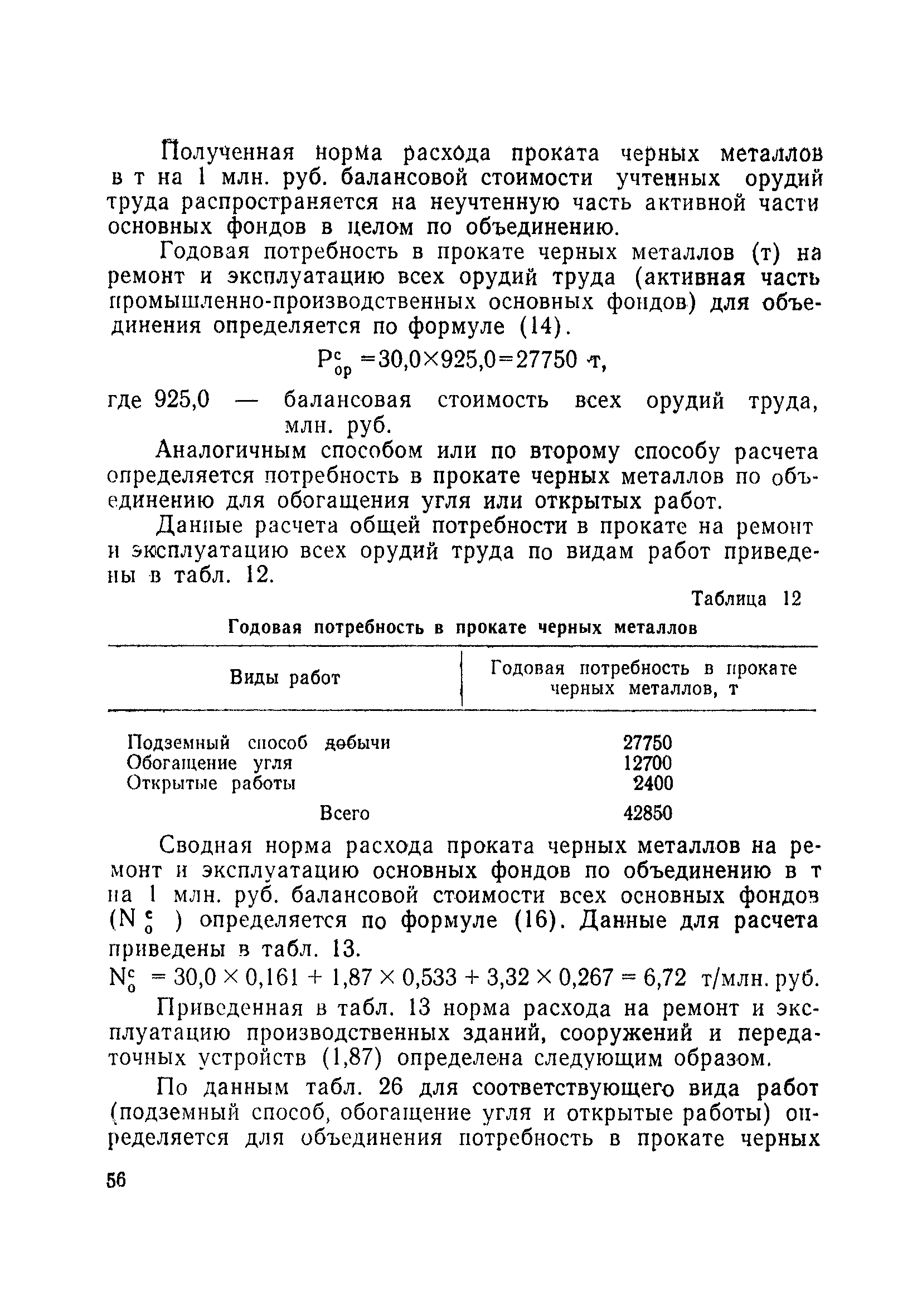 | Оглавление: | Общие положения Часть I. Инструкция во нормированию расхода проката черных металлов на ремонтно-эксплуатационные нужды для угольной промышленности I Методика нормирования расхода проката черных металлов на ремонтно-эксплуатационные нужды для подземного способа добычи и обогащения угля II. Методика нормирования расхода проката черных металлов на ремонтно-эксплуатационные нужды для открытого способа добычи угля III. Основные направления по экономии проката черных металлов IV. Примеры расчета потребности и сводных норм расхода проката черных металлов для объединения и предприятия V. Нормы расхода проката черных металлов VI. Формы для расчета норм расхода проката черных металлов Часть II. Инструкция по нормированию расхода цветных металлов на ремонтно-эксплуатационные нужды для угольной промышленности I. Методика нормирования расхода цветных металлов на ремонтно-эксплуатационные нужды для подземного способа добычи и обогащения угля II. Методика нормирования расхода цветных металлов на ремонтно-эксплуатационные нужды для открытого способа добычи угля III. Основные направления по экономии цветных металлов IV. Примеры расчета сводных норм расхода цветных металлов для объединения и предприятия V. Нормы расхода цветных металлов VI. Формы для расчета норм расхода цветных металлов Приложение Перечень оборудования, для которого разработаны индивидуальные нормы расхода на ремонт и эксплуатацию горношахтного оборудования |