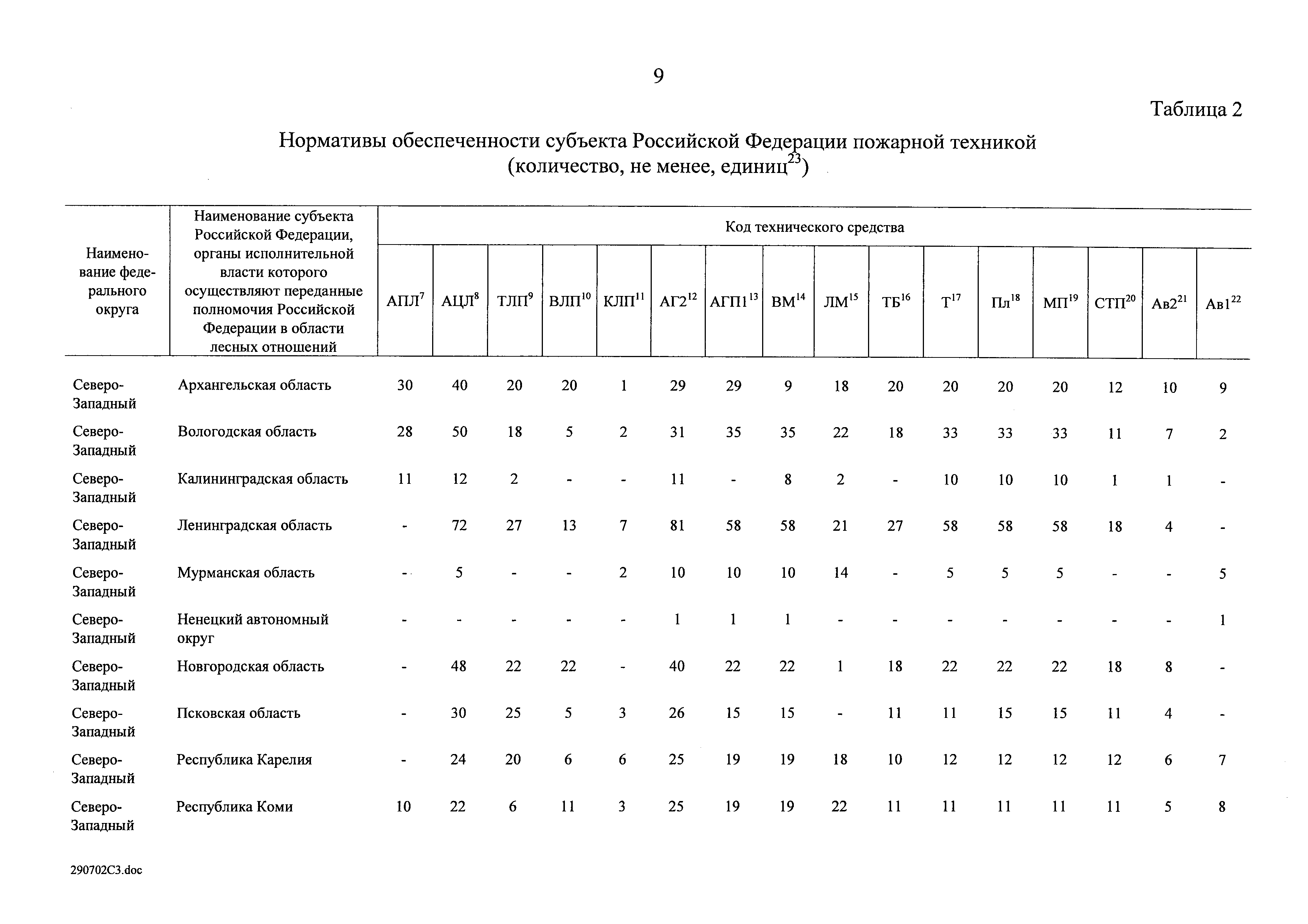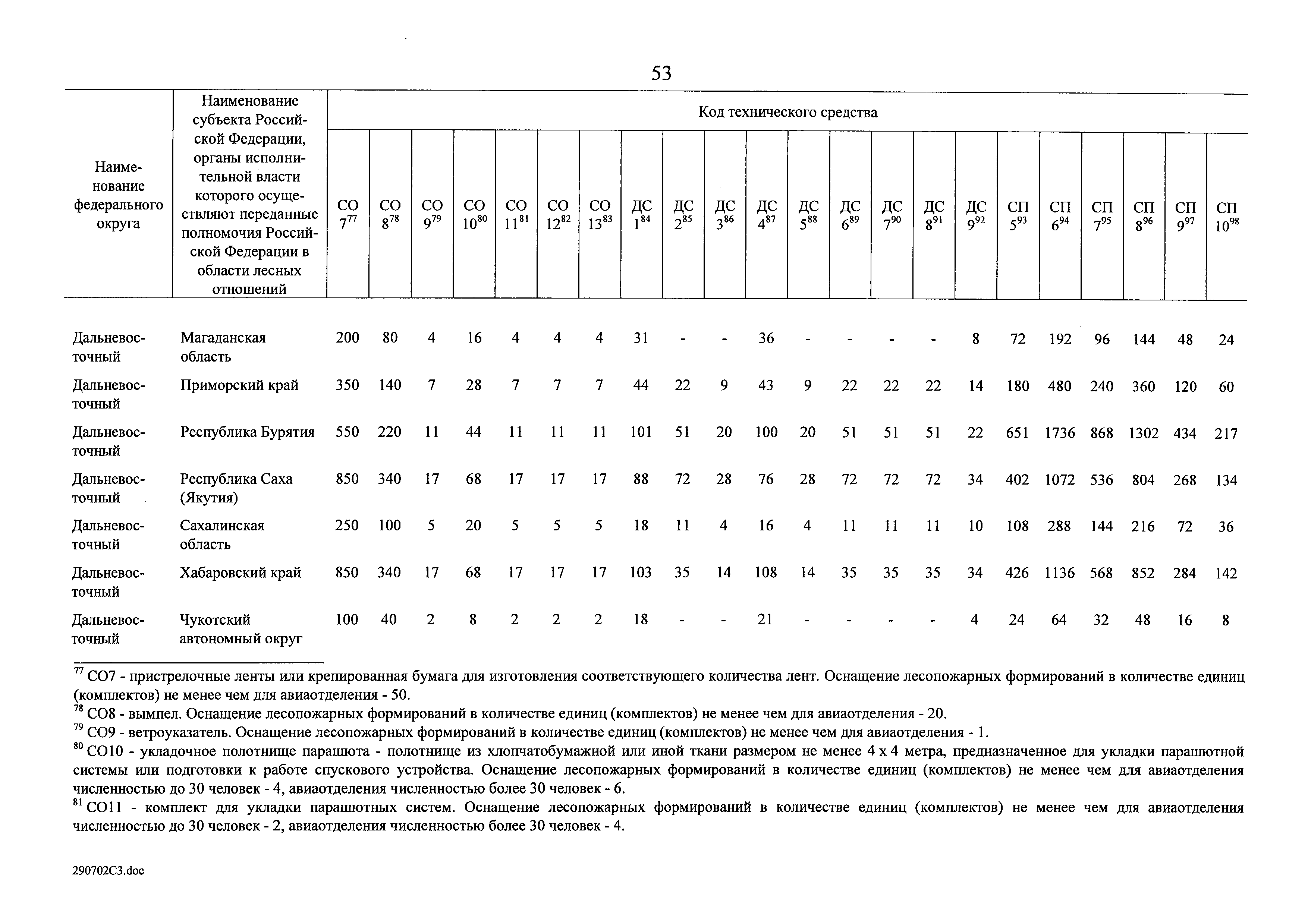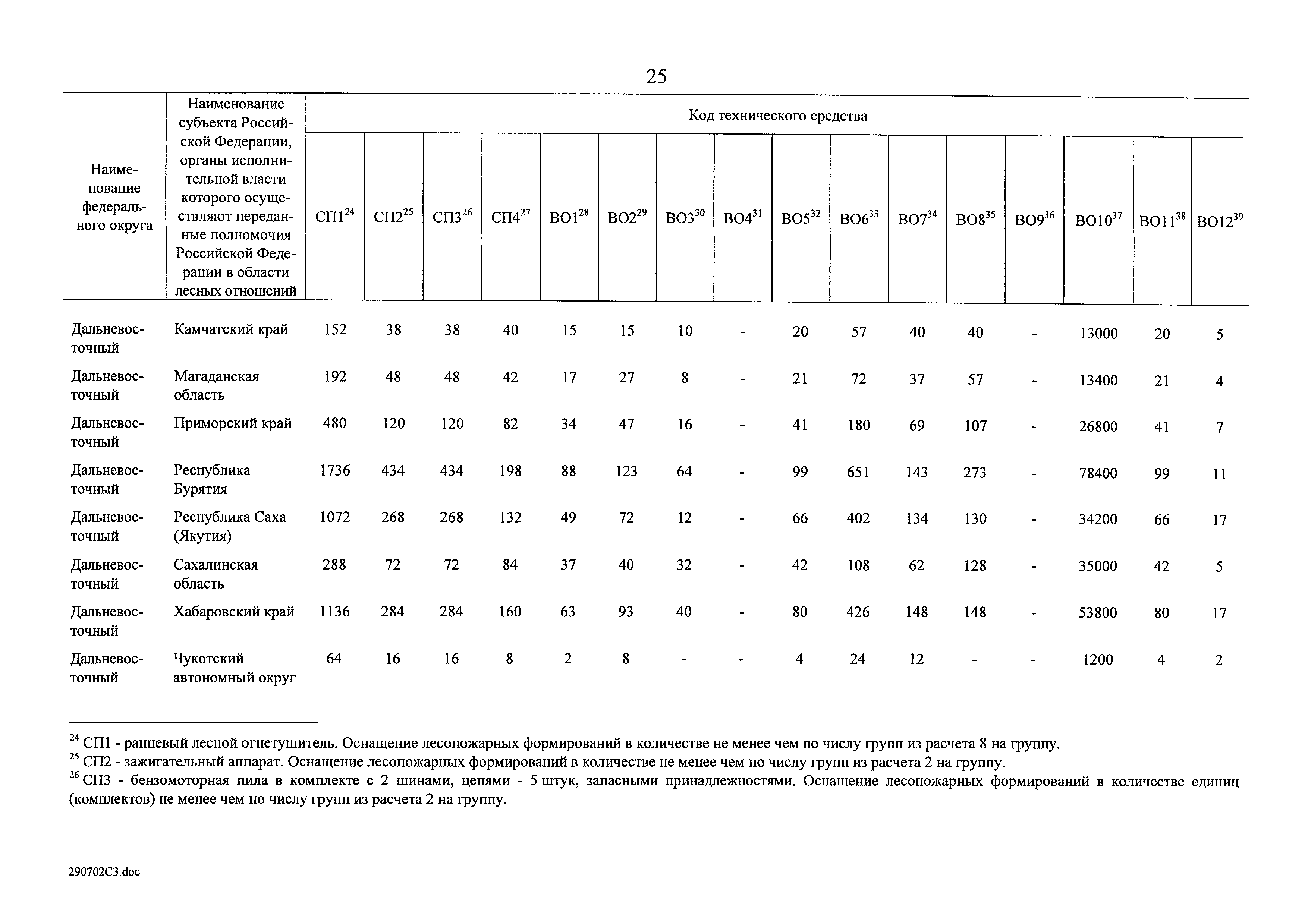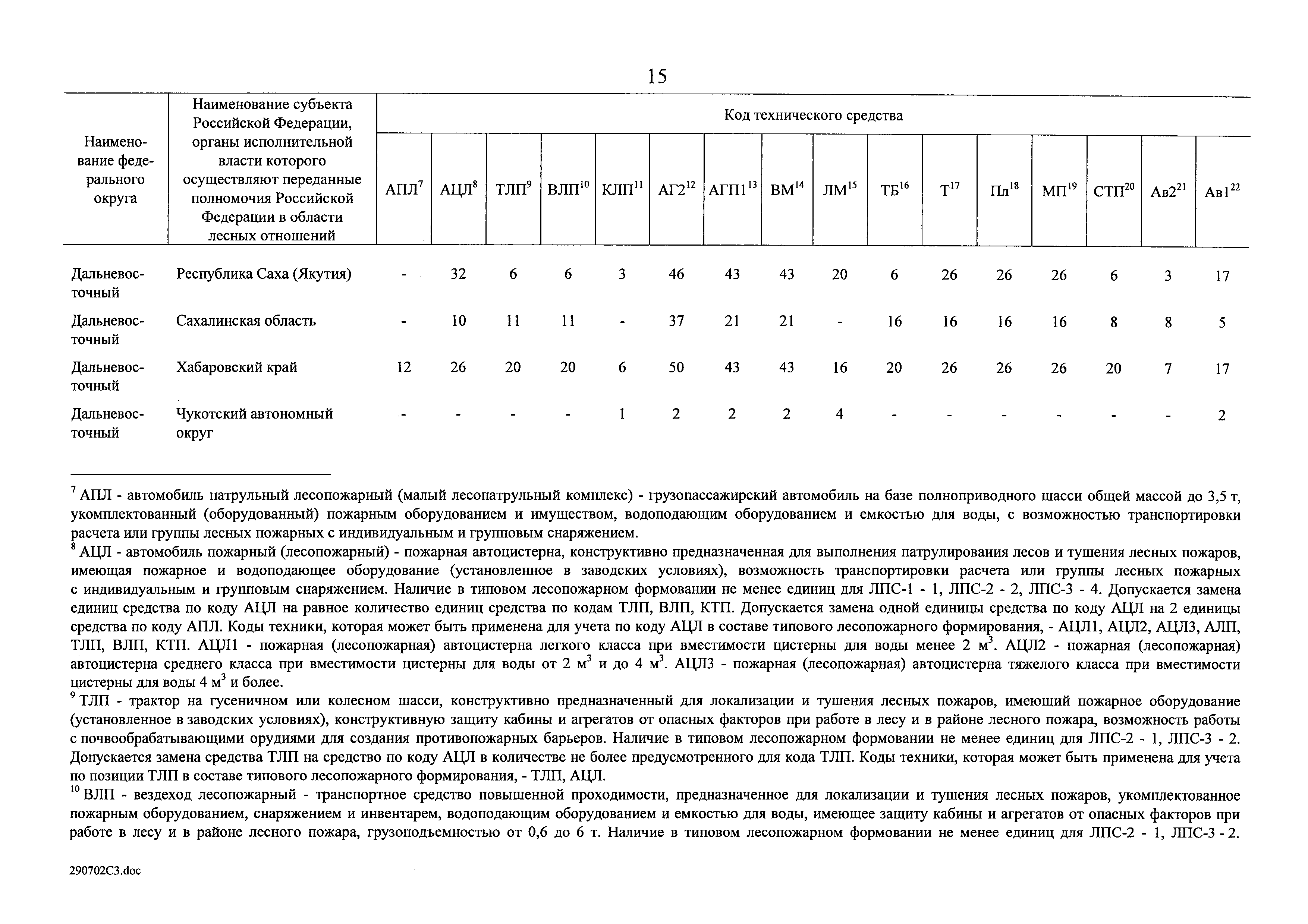 Нормативы обеспеченности субъекта Российской Федерации лесопожарными формированиями, пожарной техникой и оборудованием, противопожарным снаряжением и инвентарем, иными средствами предупреждения и тушения лесных пожаров| Статус: | действует | | Название рус.: | Нормативы обеспеченности субъекта Российской Федерации лесопожарными формированиями, пожарной техникой и оборудованием, противопожарным снаряжением и инвентарем, иными средствами предупреждения и тушения лесных пожаров | | Дата добавления в базу: | 01.02.2020 | | Дата актуализации: | 01.01.2021 | | Дата введения: | 19.07.2019 | | Оглавление: | Таблица 1. Нормативы обеспеченности субъекта Российской Федерации лесопожарными формированиями Таблица 2. Нормативы обеспеченности субъекта Российской Федерации пожарной техникой Таблица 3. Нормативы обеспеченности субъекта Российской Федерации пожарным оборудованием Таблица 4. Нормативы обеспеченности субъекта Российской Федерации иными средствами предупреждения и тушения лесных пожаров Таблица 5. Нормативы обеспеченности субъекта Российской Федерации противопожарным снаряжением и инвентарем | | Утверждён: | 19.07.2019 Правительство Российской Федерации (1605-р)