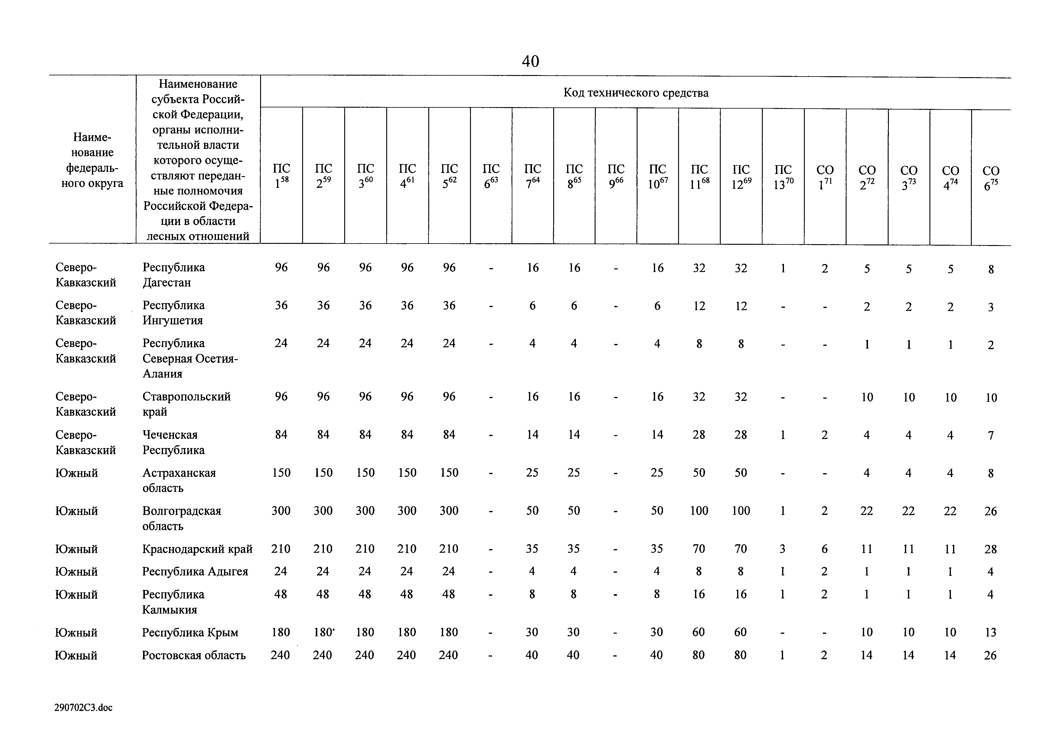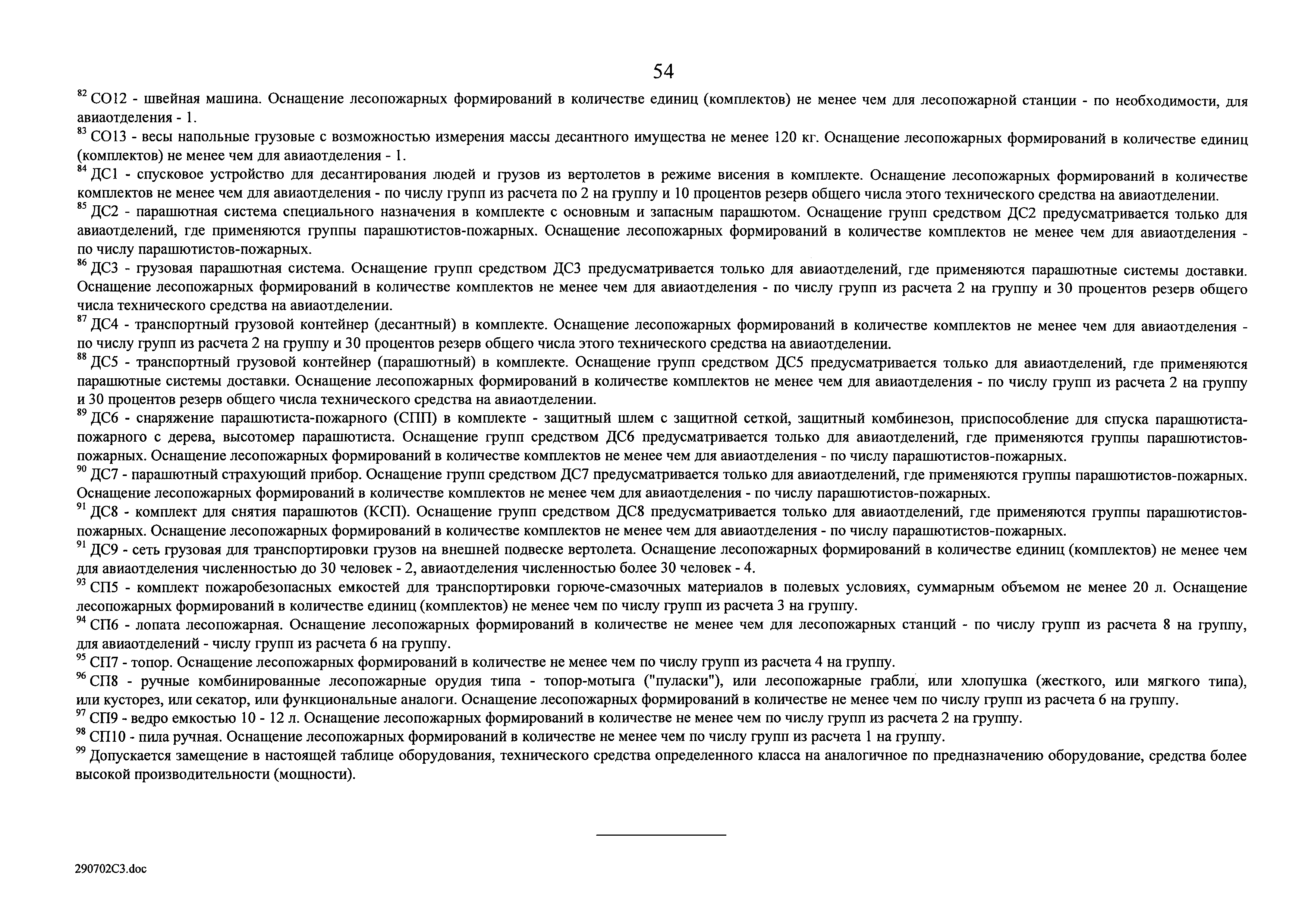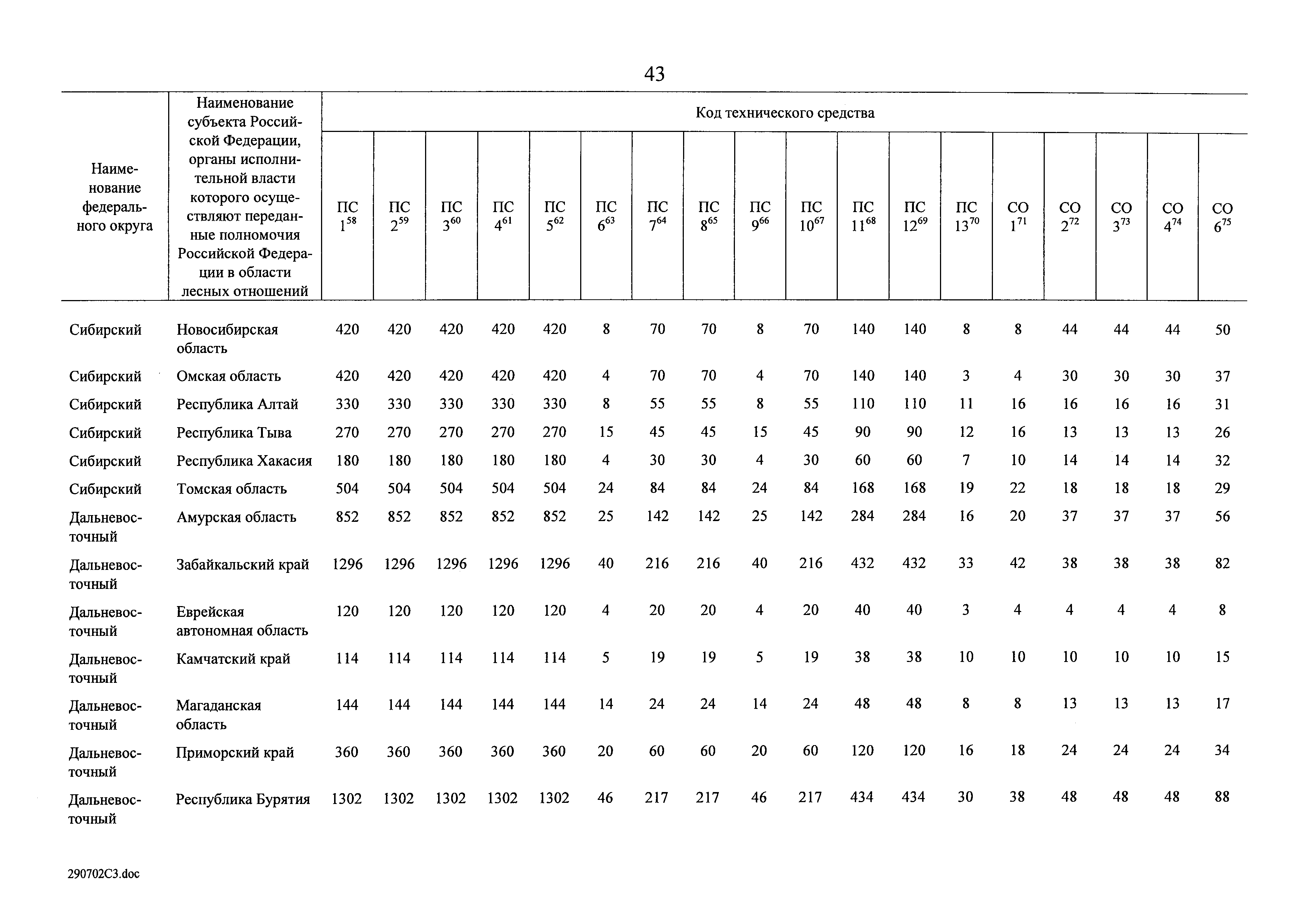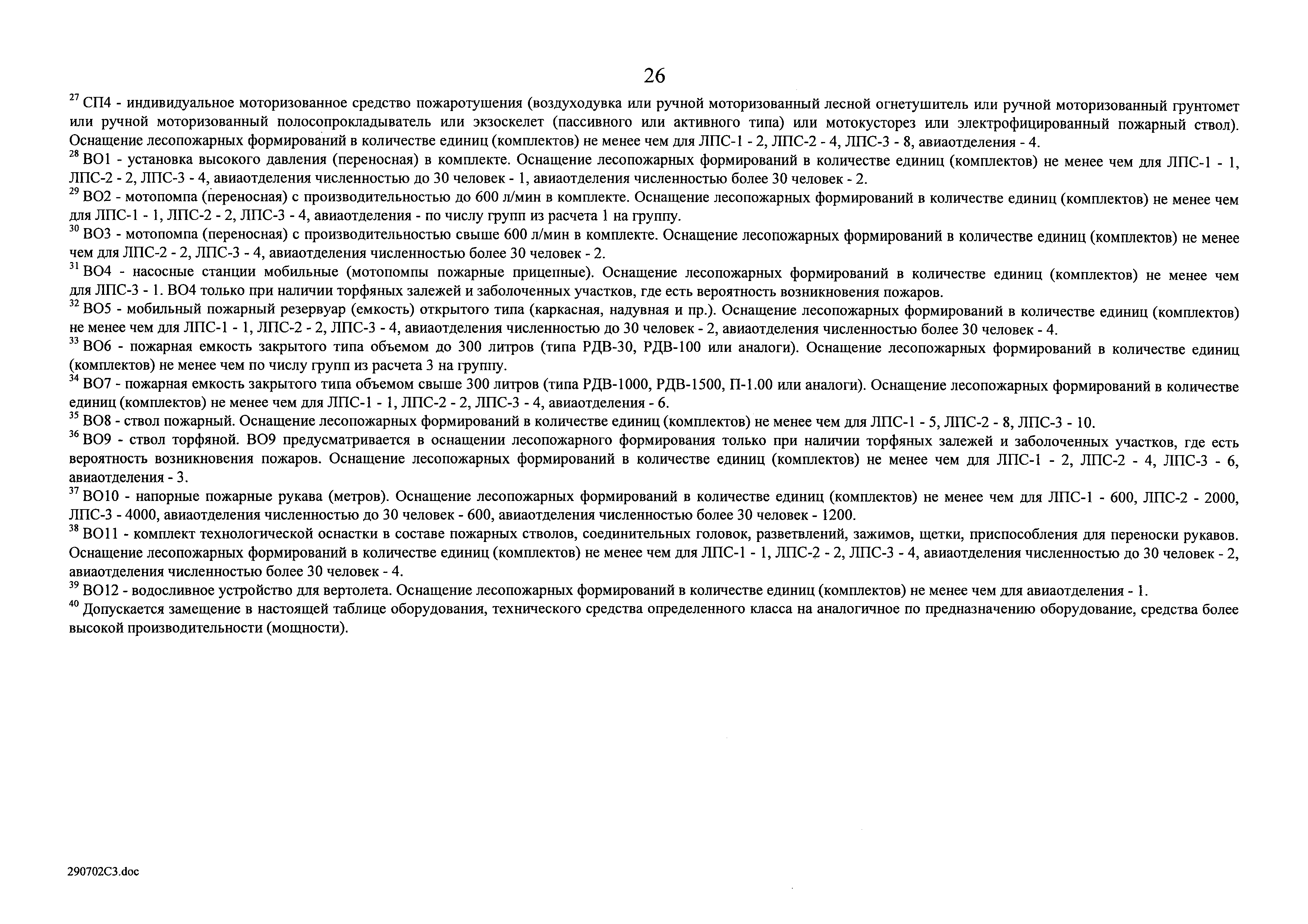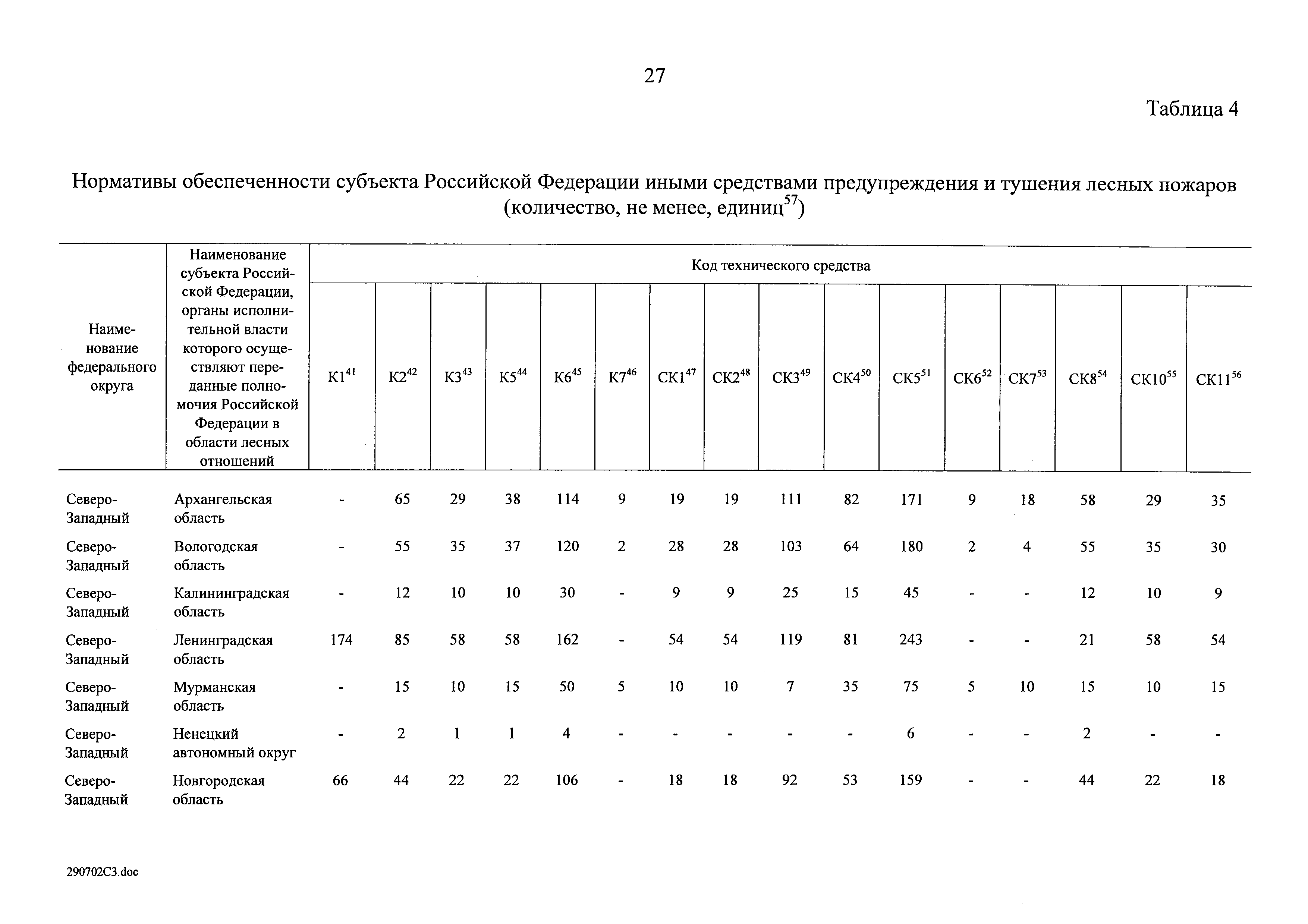 Нормативы обеспеченности субъекта Российской Федерации лесопожарными формированиями, пожарной техникой и оборудованием, противопожарным снаряжением и инвентарем, иными средствами предупреждения и тушения лесных пожаров| Статус: | действует | | Название рус.: | Нормативы обеспеченности субъекта Российской Федерации лесопожарными формированиями, пожарной техникой и оборудованием, противопожарным снаряжением и инвентарем, иными средствами предупреждения и тушения лесных пожаров | | Дата добавления в базу: | 01.02.2020 | | Дата актуализации: | 01.01.2021 | | Дата введения: | 19.07.2019 | | Оглавление: | Таблица 1. Нормативы обеспеченности субъекта Российской Федерации лесопожарными формированиями Таблица 2. Нормативы обеспеченности субъекта Российской Федерации пожарной техникой Таблица 3. Нормативы обеспеченности субъекта Российской Федерации пожарным оборудованием Таблица 4. Нормативы обеспеченности субъекта Российской Федерации иными средствами предупреждения и тушения лесных пожаров Таблица 5. Нормативы обеспеченности субъекта Российской Федерации противопожарным снаряжением и инвентарем | | Утверждён: | 19.07.2019 Правительство Российской Федерации (1605-р)