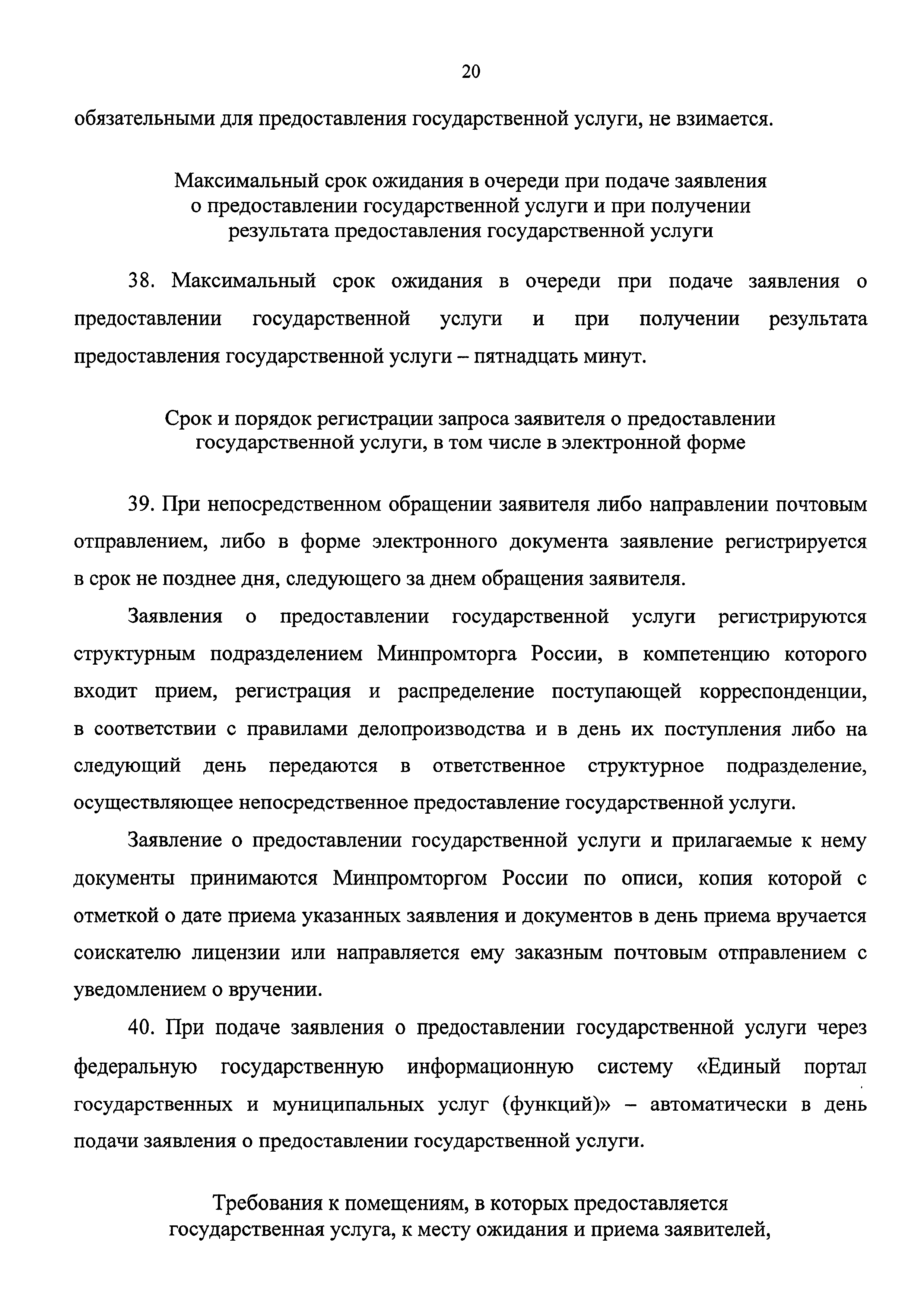 | Оглавление: | I. Общие положения Предмет регулирования регламента Круг заявителей Требования к порядку информирования о предоставлении государственной услуги II. Стандарт предоставления государственной услуги Наименование государственной услуги Наименование органа, предоставляющего государственную услугу Описание результата предоставления государственной услуги Срок предоставления государственной услуги, срок приостановления предоставления государственной услуги, срок выдачи (направления) документов, являющихся результатом предоставления государственной услуги Нормативные правовые акты, регулирующие предоставление государственной услуги Исчерпывающий перечень документов, необходимых в соответствии с нормативными правовыми актами для предоставления государственной услуги и услуг, которые являются необходимыми и обязательными для предоставления государственной услуги, подлежащих представлению заявителем, способы их получения заявителем, в том числе в электронной форме, порядок их представления Исчерпывающий перечень документов, необходимых в соответствии с нормативными правовыми актами для предоставления государственной услуги, которые находятся в распоряжении государственных органов, органов местного самоуправления и иных органов, участвующих в предоставлении государственных или муниципальных услуг, и которые заявитель вправе представить, а также способы их получения заявителями, в том числе в электронной форме, порядок их представления Исчерпывающий перечень оснований для отказа в приеме документов, необходимых для предоставления государственной услуги Исчерпывающий перечень оснований для приостановления или отказа в предоставлении государственной услуги Перечень услуг, которые являются необходимыми и обязательными для предоставления государственной услуги, в том числе сведения о документе (документах), выдаваемом (выдаваемых) организациями, участвующими в предоставлении государственной услуги Порядок, размер и основания взимания государственной пошлины или иной платы, взимаемой за предоставление государственной услуги Порядок, размер и основания взимания платы за предоставление услуг, которые являются необходимыми и обязательными для предоставления государственной услуги, включая информацию о методике расчета размера такой платы Максимальный срок ожидания в очереди при подаче заявления о предоставлении государственной услуги и при получении результата предоставления государственной услуги Срок и порядок регистрации запроса заявителя о предоставлении государственной услуги, в том числе в электронной форме Требования к помещениям, в которых предоставляется государственная услуга, к залу ожидания, местам для заполнения запросов о предоставлении государственной услуги, информационным стендам с образцами их заполнения и перечнем документов, необходимых для предоставления государственной услуги, размещению и оформлению визуальной, текстовой и мультимедийной информации о порядке предоставления государственной услуги, в том числе к обеспечению доступности для инвалидов указанных объектов в соответствии с законодательством Российской Федерации о социальной защите инвалидов Показатели доступности и качества государственной услуги, в том числе количество 