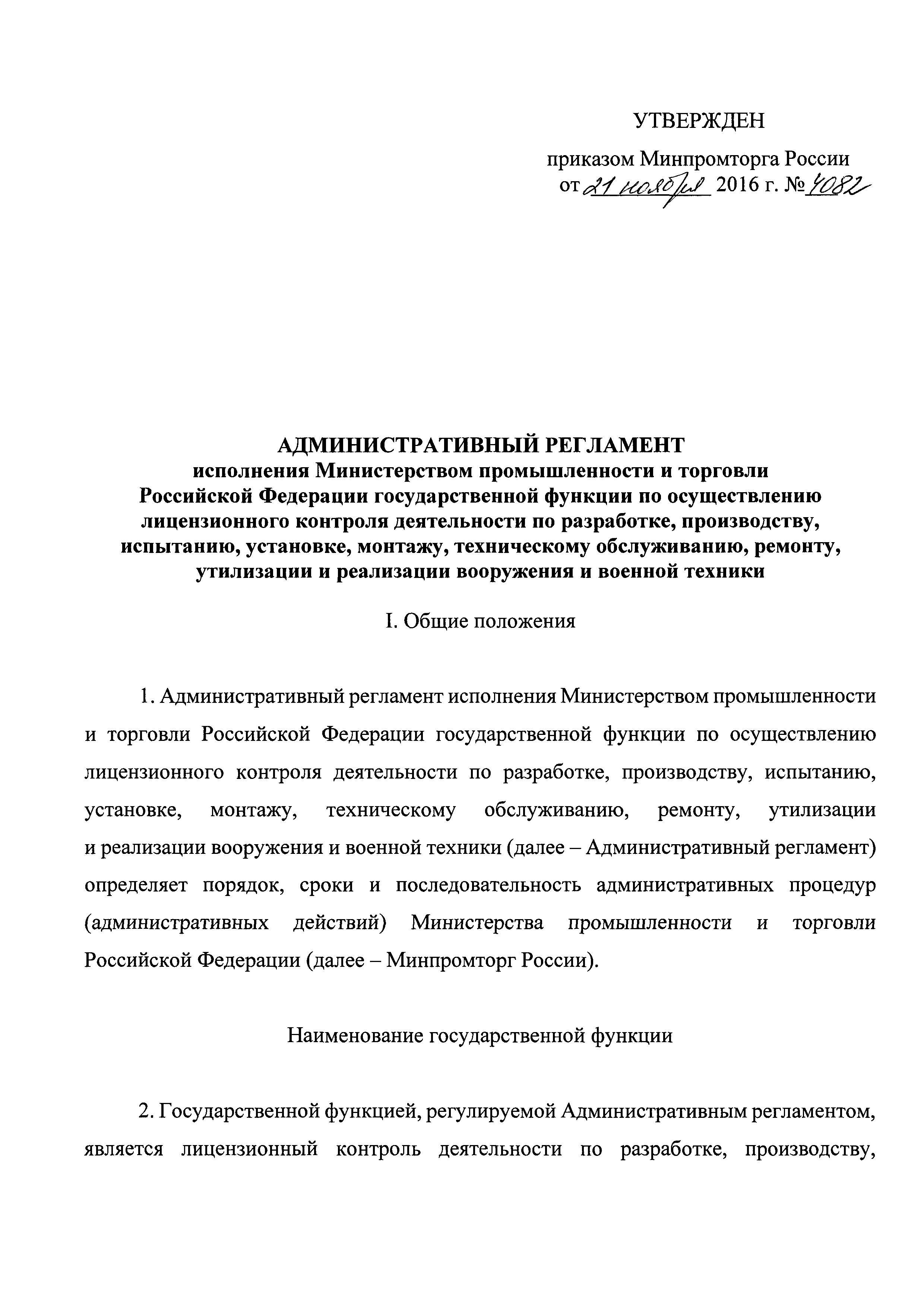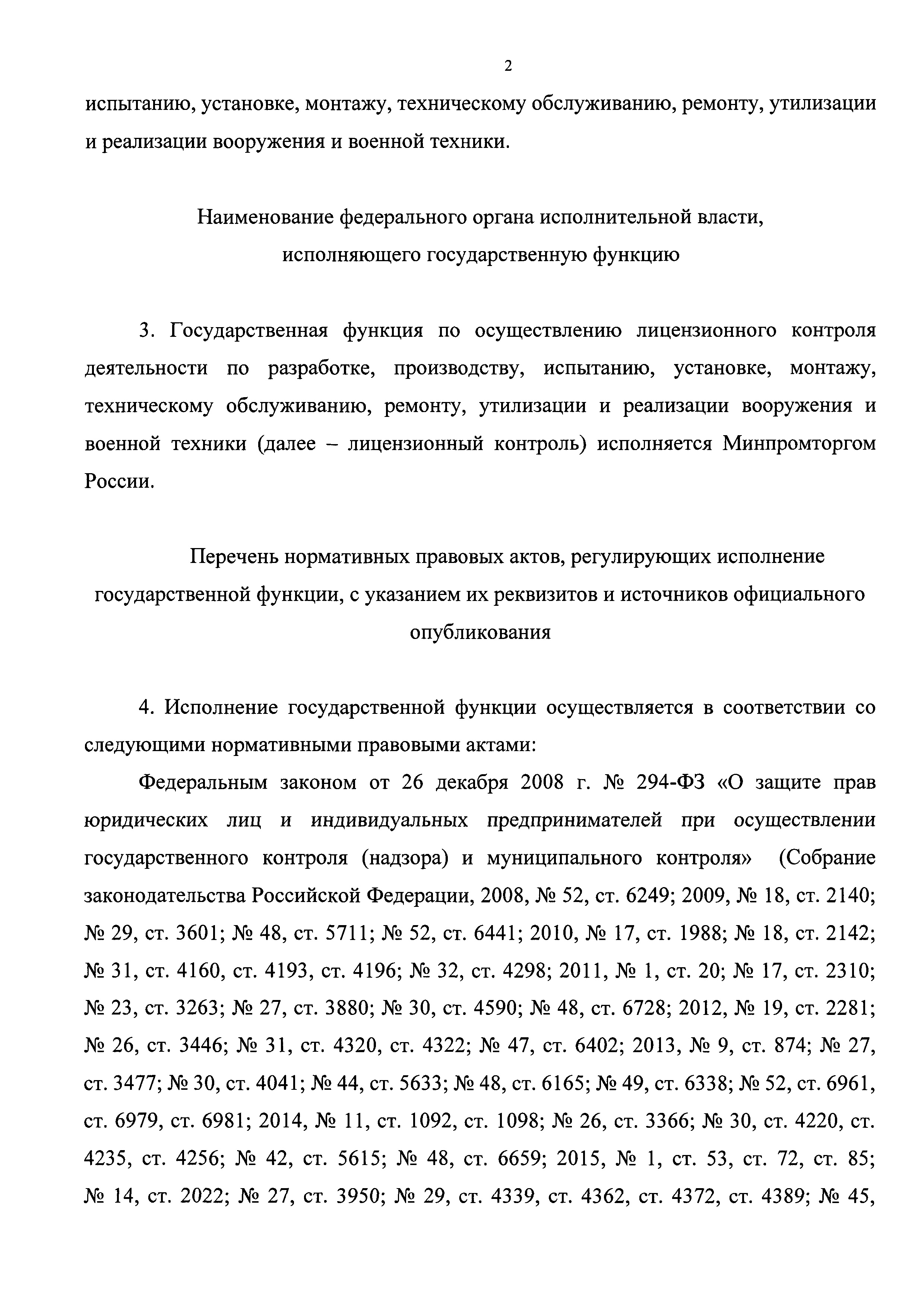 | Название рус.: | Административный регламент исполнения Министерством промышленности и торговли Российской Федерации государственной функции по осуществлению лицензионного контроля деятельности по разработке, производству, испытанию, установке, монтажу, техническому обслуживанию, ремонту, утилизации и реализации вооружения и военной техники |
