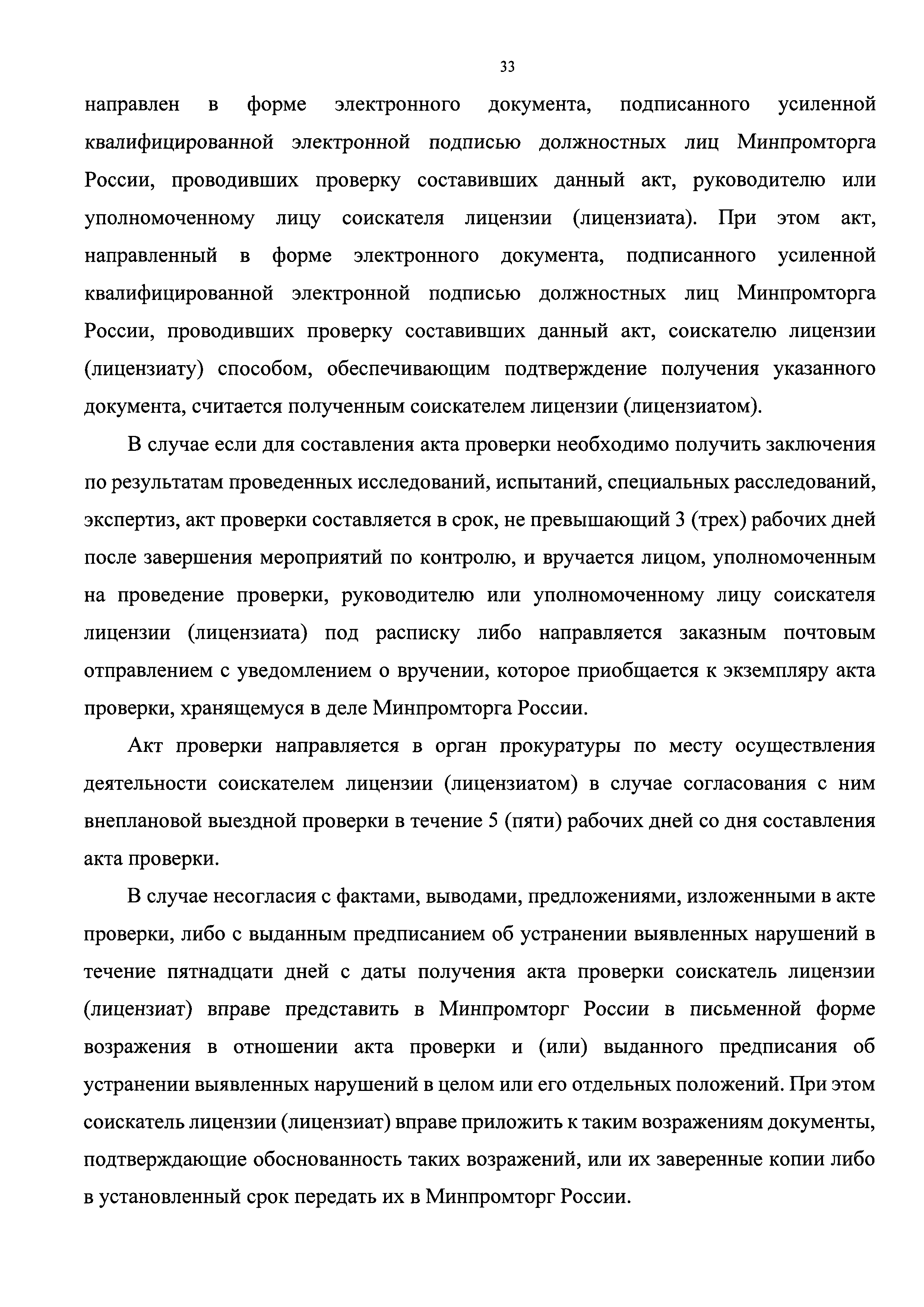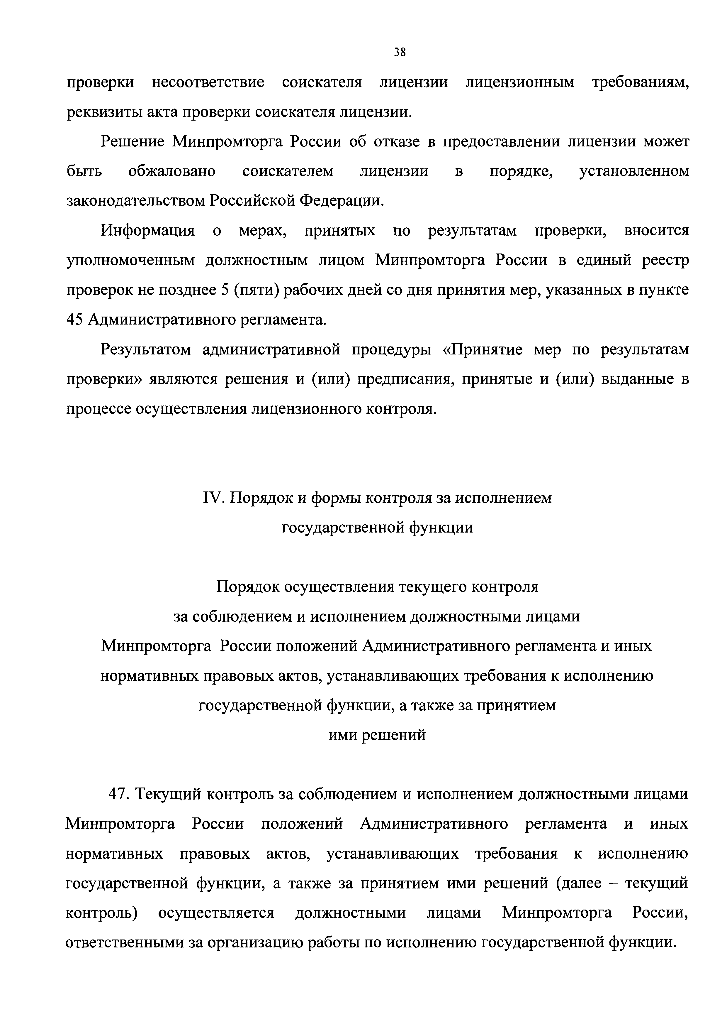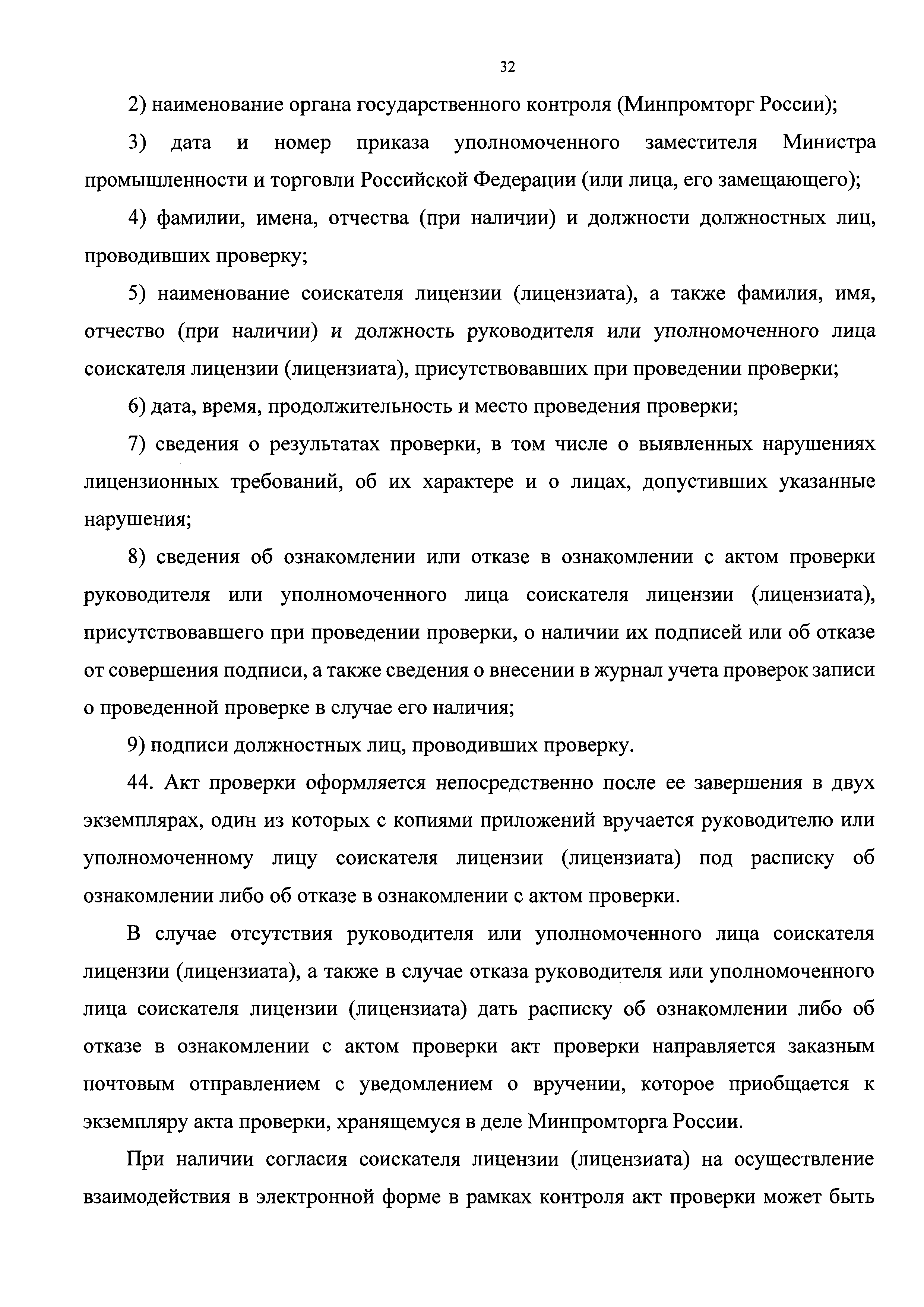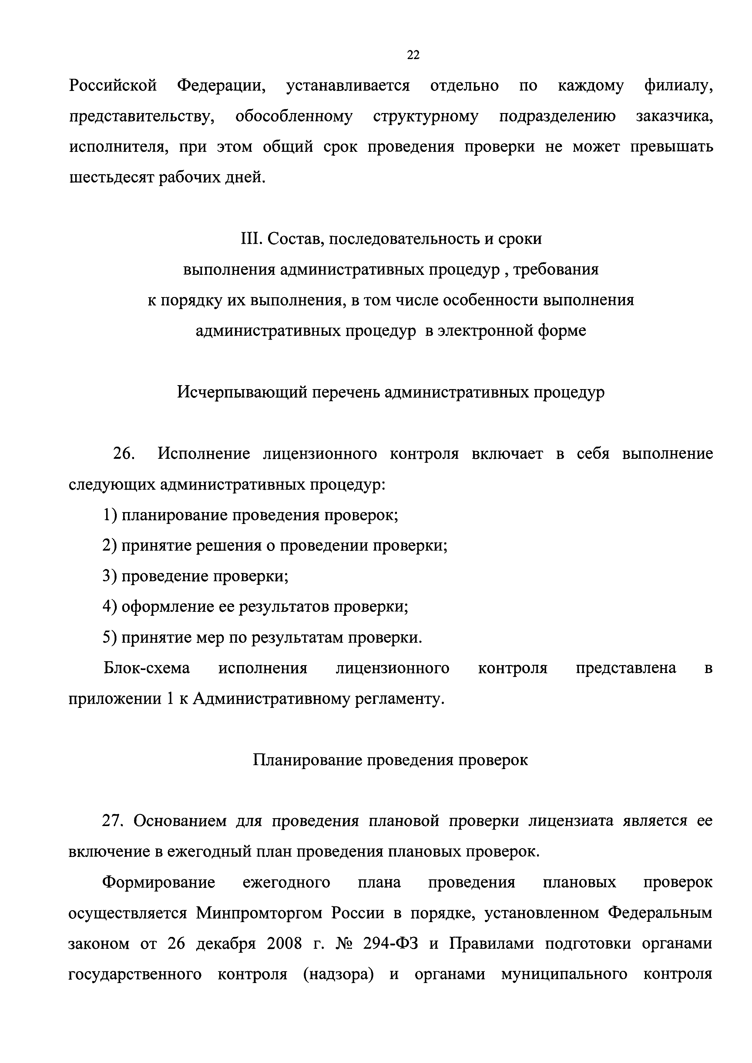 | Оглавление: | I. Общие положения Наименование государственной функции Наименование федерального органа исполнительной власти, исполняющего государственную функцию Перечень нормативных правовых актов, регулирующих исполнение государственной функции, с указанием их реквизитов и источников официального опубликования Предмет государственного контроля Права и обязанности должностных лиц при осуществлении государственного контроля Права и обязанности лиц, в отношении которых осуществляются мероприятия по контролю Описание результата исполнения государственной функции II. Требования к порядку исполнения государственной функции Порядок информирования об исполнении государственной функции Сведения о размере платы за услуги организации (организаций), участвующей (участвующих) в исполнении государственной функции, взимаемой с лица, в отношении которого проводятся мероприятия по контролю Срок исполнения государственной функции III. Состав, последовательность и сроки выполнения административных процедур, требования к порядку их выполнения, в том числе особенности выполнения административных процедур в электронной форме Исчерпывающий перечень административных процедур Планирование проведения проверок Принятие решения о проведении проверки Проведение проверки Оформление результатов проверки Принятие мер по результатам проверки IV. Порядок и формы контроля за исполнением государственной функции Порядок осуществления текущего контроля за соблюдением и исполнением должностными лицами Минпромторга России положений Административного регламента и иных нормативных правовых актов, устанавливающих требования к исполнению государственной функции, а также за принятием ими решений Порядок и периодичность осуществления плановых и внеплановых проверок полноты и качества исполнения государственной функции, в том числе порядок и формы контроля за полнотой и качеством исполнения государственной функции Ответственность должностных лиц Минпромторга России за решения и действия (бездействие), принимаемые (осуществляемые) ими в ходе исполнения государственной функции Положения, характеризующие требования к порядку и формам контроля за исполнением государственной функции, в том числе со стороны граждан, их объединений и организаций V. Досудебный (внесудебный) порядок обжалования решений и действий (бездействия) Минпромторга России, а также должностных лиц Минпромторга России Информация для заинтересованных лиц об их праве на досудебное (внесудебное) обжалование действий (бездействия) и решений, принятых (осуществляемых) в ходе исполнения государственной функции Предмет досудебного (внесудебного) обжалования Исчерпывающий перечень оснований для приостановления рассмотрения жалобы и случаев, в которых ответ на жалобу не дается Основания для начала процедуры досудебного (внесудебного) обжалования Права заинтересованных лиц на получение информации и документов, необходимых для обоснования и рассмотрения жалобы Органы государственной власти и должностные лица, которым может быть направлена жалоба заявителя в досудебном (внесудебном) порядке Сроки рассмотрения жалобы Результат досудебного (внесудебного) обжалования применительно к каждой процедуре либо инстанции обжалования |