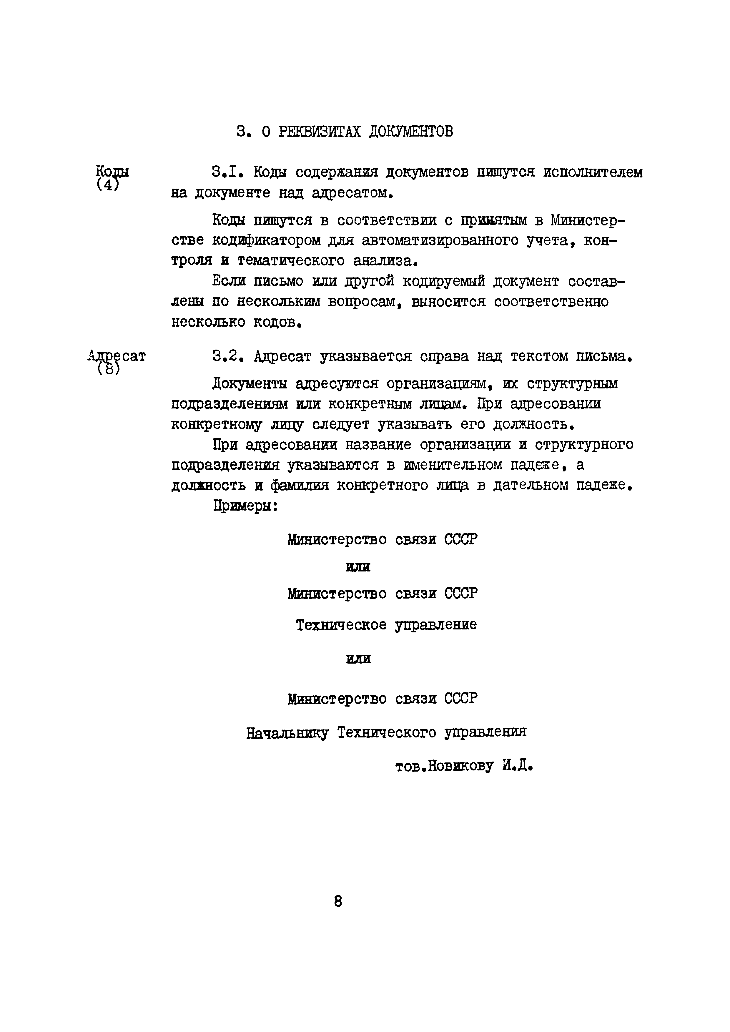 Правила оформления документов в соответствии с ГОСТ 6.39-72 и ГОСТ 6.38-72, правописания отдельных слов и словосочетаний при подготовке управленческой документации в центральном аппарате Министерства угольной промышленности СССР, организациях и предприятиях его системы| Статус: | справочные материалы, мп, тпр | | Название рус.: | Правила оформления документов в соответствии с ГОСТ 6.39-72 и ГОСТ 6.38-72, правописания отдельных слов и словосочетаний при подготовке управленческой документации в центральном аппарате Министерства угольной промышленности СССР, организациях и предприятиях его системы | | Дата добавления в базу: | 01.02.2020 | | Дата актуализации: | 01.01.2021 | | Область применения: | Правила разработаны в целях обеспечения унификации в составлении, оформлении документов, правильного написания отдельных слов и словосочетаний при подготовке документов и обработке их с помощью ЭВМ в центральном аппарате Министерства угольной промышленности СССР, организациях и предприятиях его системы. В Правилах приводятся примеры написания отдельных реквизитов документов, составления текстов распорядительных документов и деловых писем, наиболее часто употребляемых в документах наименований, сокращений, отдельных словосочетаний и слов. | | Оглавление: | 1. Перечень реквизитов документов 2. Схема расположения реквизитов документов 3. О реквизитах документов 4. Наименование партийных, правительственных, комсомольских и профсоюзных организаций, государственных комитетов, министерств, организаций и предприятий 5. Наименование должностей и званий 6. Написание и склонение имен и фамилий 7. Написание единиц измерения 8. О некоторых условностях в написании сроков и в употреблении отдельных слов (согласно, благодаря, вопреки, в том числе из них) 9. Правила переноса слов 10. Правописание частей речи 11. Правописание союзов 12. Правописание частиц 13. Правописание не и ни 14. Требования к машинописному изготовлению материалов 15. Требования к оформлению документов, записанных на магнитные носители 16. Образцы составления и оформления документов 17. Типовые приказы министерства 18. Примеры написания отдельных слов и словосочетаний | | Нормативные ссылки: | |