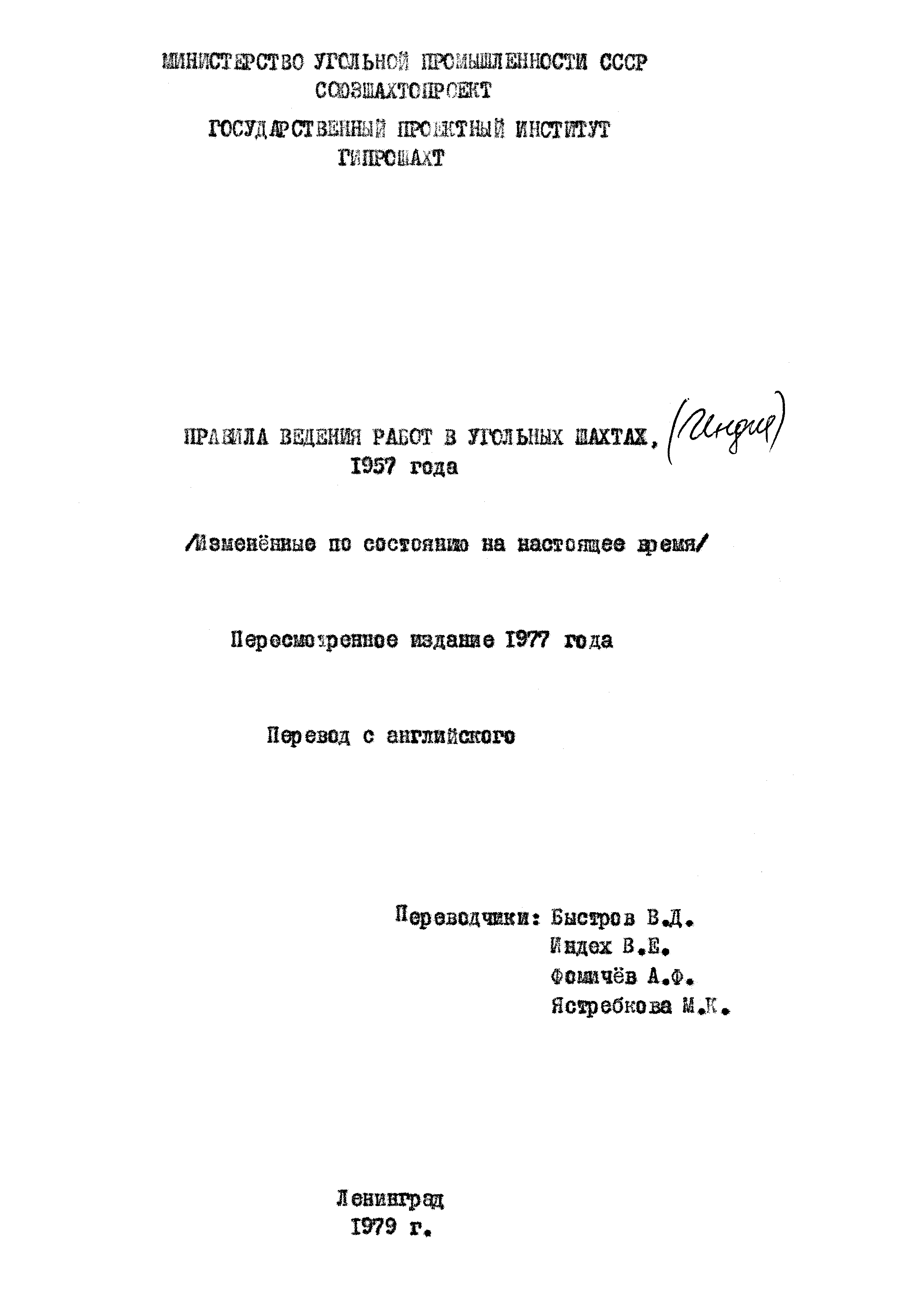 Скачать Правила ведения работ в угольных шахтах 1957 годаДата актуализации: 01.01.2021