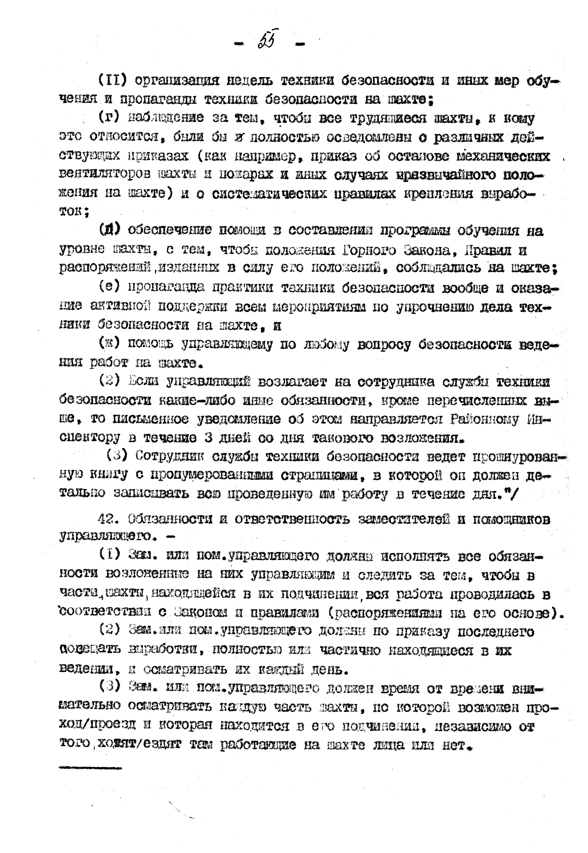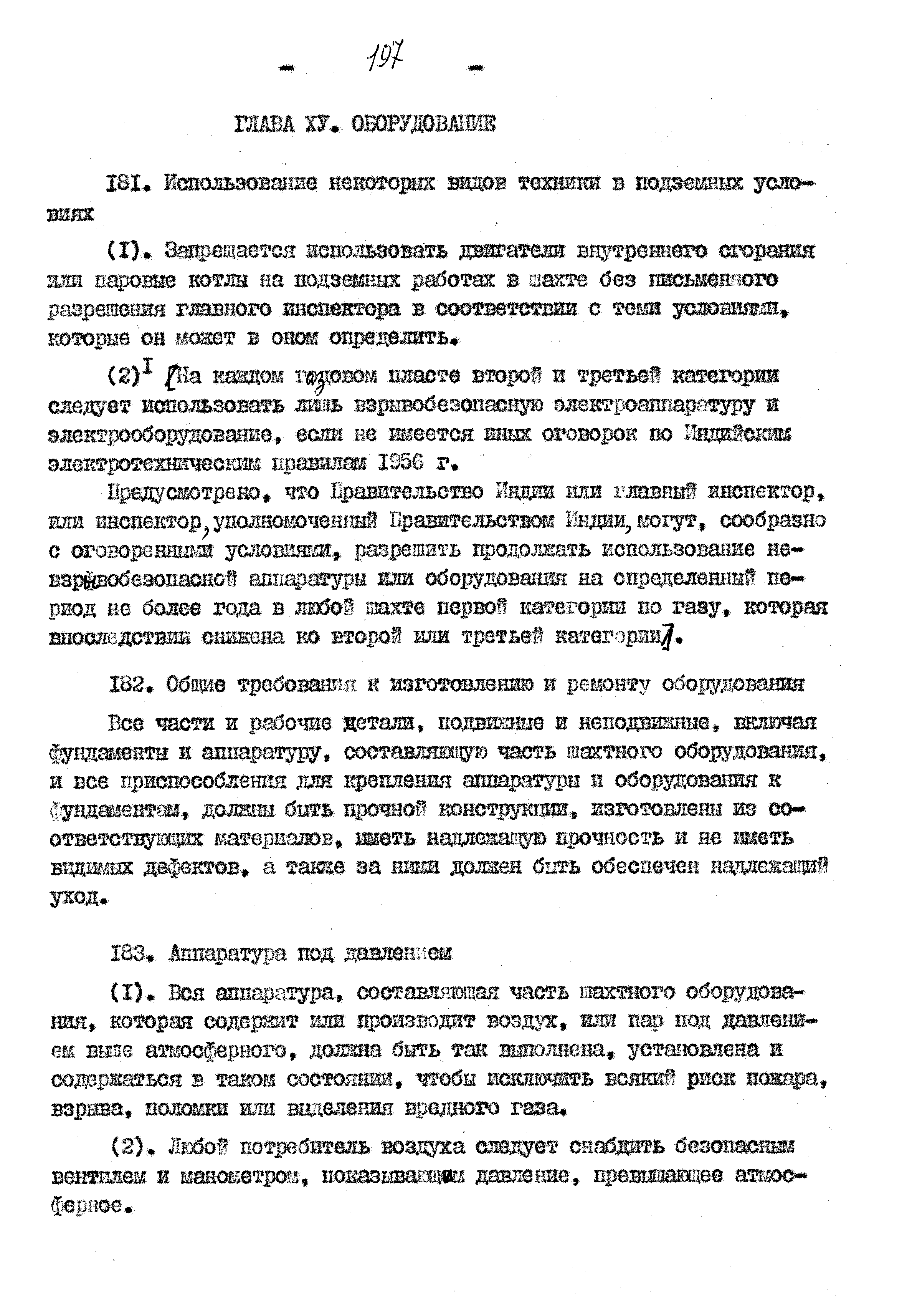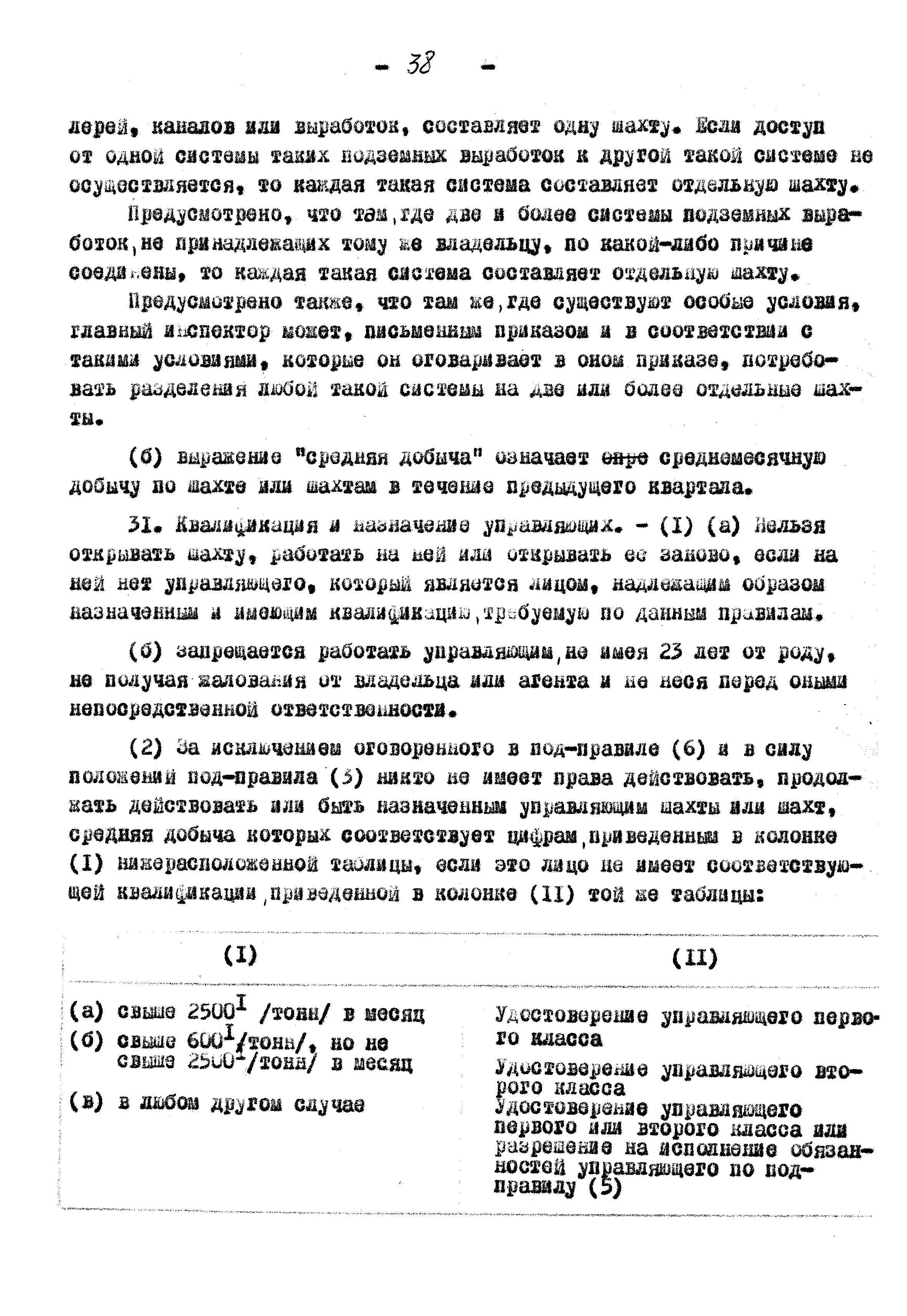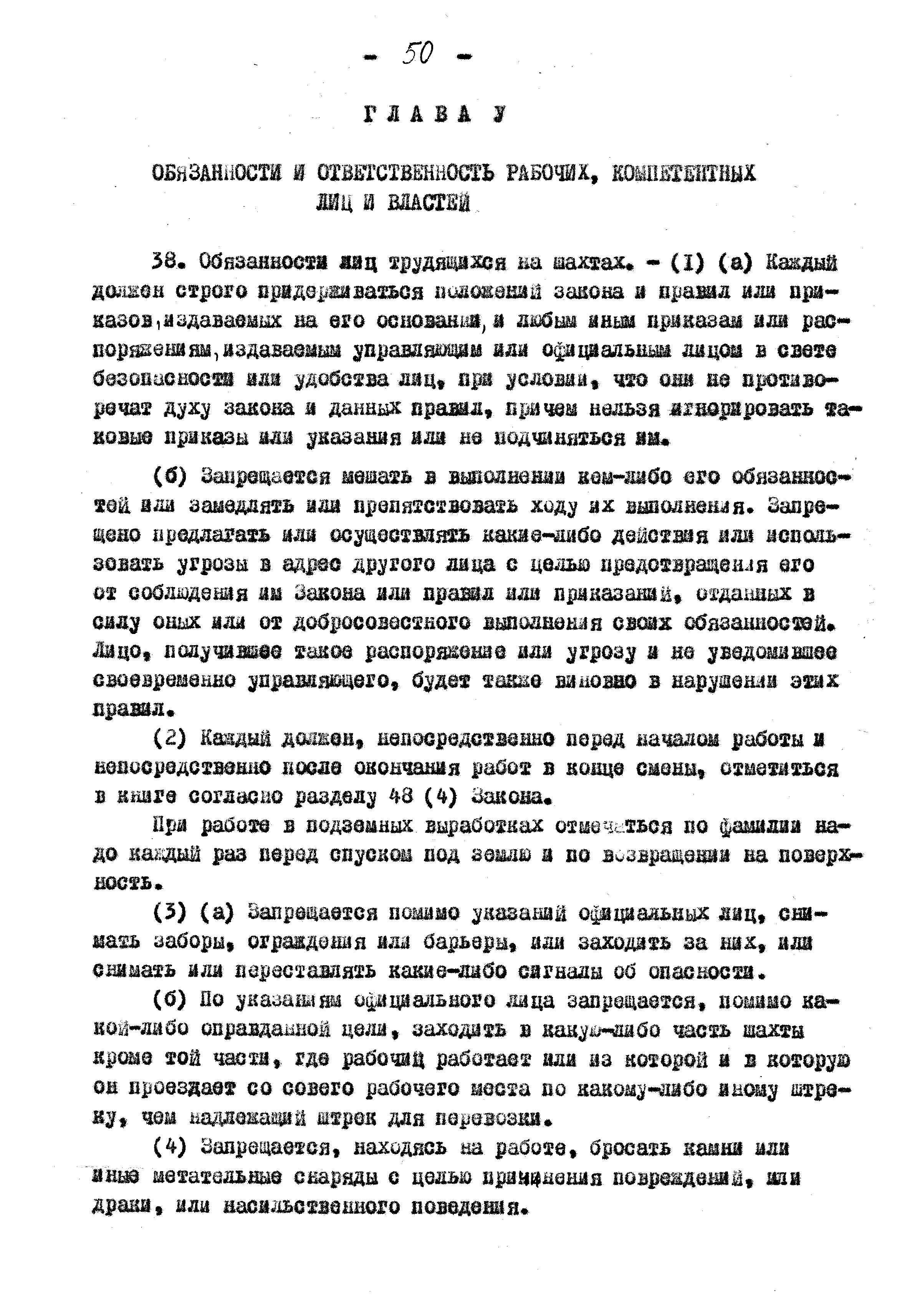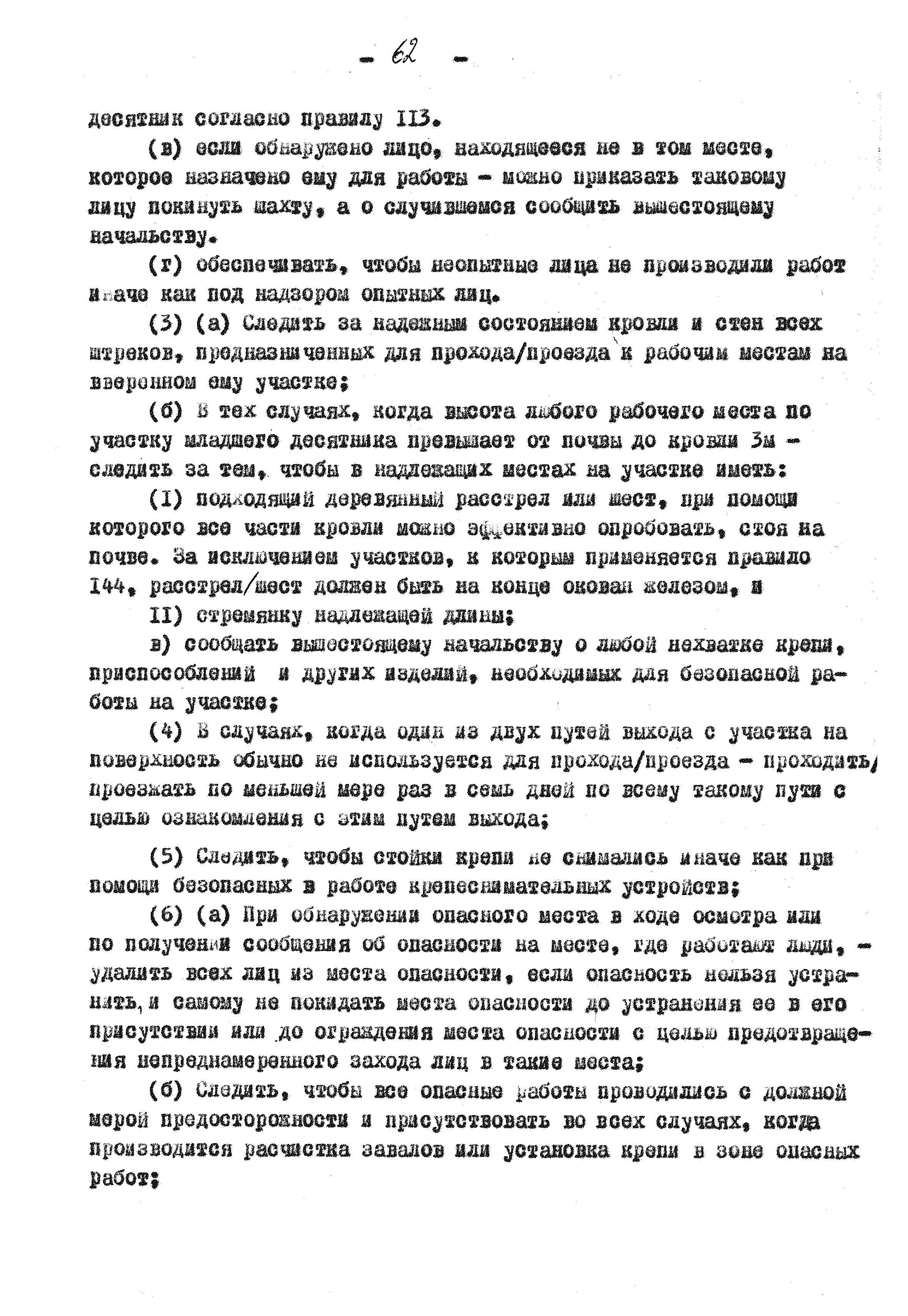 Правила ведения работ в угольных шахтах 1957 года| Статус: | справочные материалы, мп, тпр | | Название рус.: | Правила ведения работ в угольных шахтах 1957 года | | Дата добавления в базу: | 01.02.2020 | | Дата актуализации: | 01.01.2021 | | Оглавление: | I. Предварительные сведения II. Отчёты, уведомления и регистрация III. Проверка компетенции, занимаемых должностей и выдача удостоверений IV. Инспекторы и шахтные власти V. Обязанности и ответственность рабочих, компетентных лиц и властей VI. Планы и сечения VII. Средства для входа и выхода VIII. Транспорт людей и материалов. Подъём в стволах IX. Транспорт людей и материалов. Откатка X. Горные выработки XI. Меры предотвращения опасности, вызываемой огнём, пылью, газом и водой XII. Вентиляция XIII. Освещение и безопасные лампы XIV. Взрывчатые вещества и взрывание XV. Оборудование XVI. Разное Приложение 1 Форма 1 Приложение 2 Условные знаки при разработке планов и сечений Приложение 3 Формы систематических правил крепления |