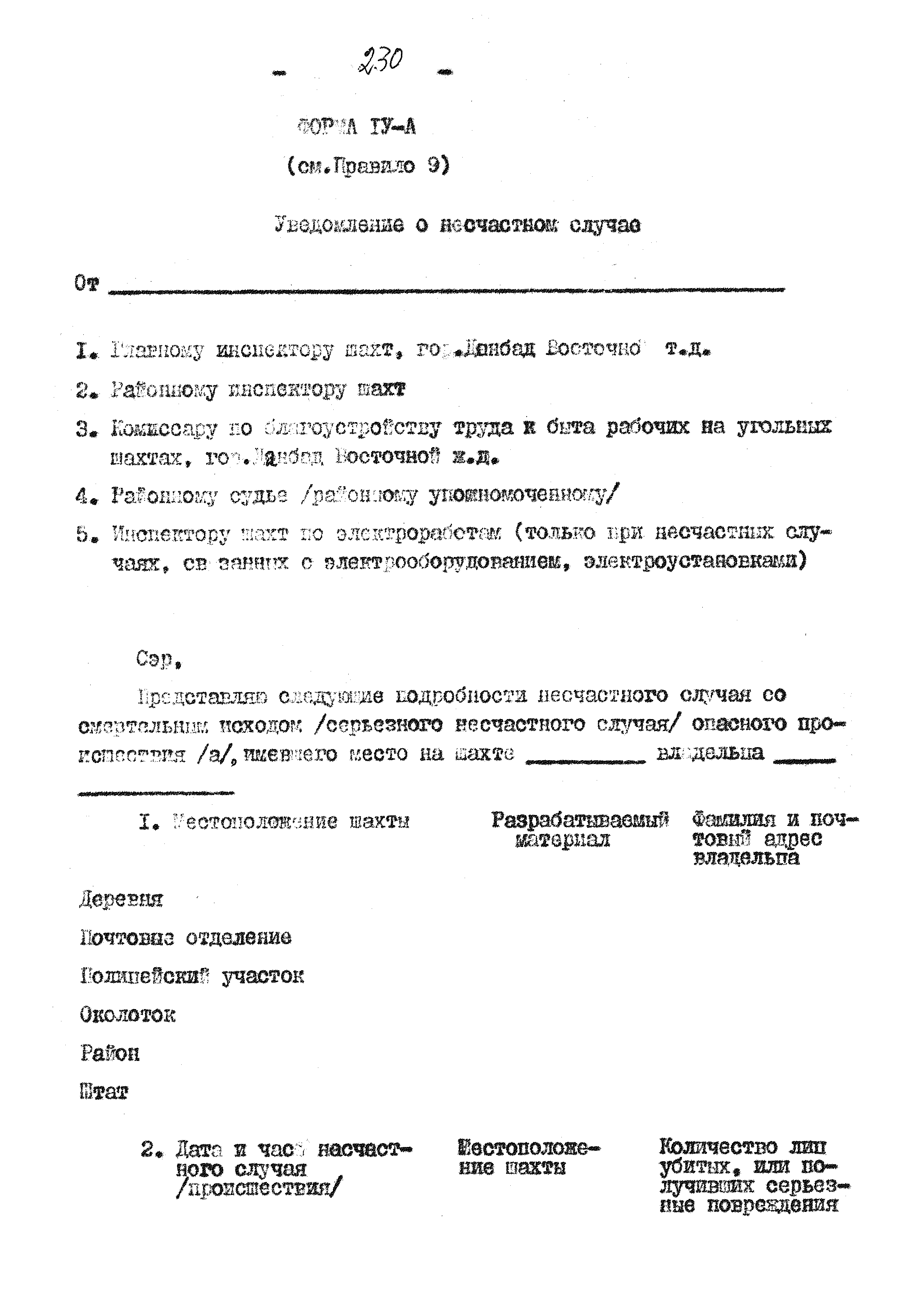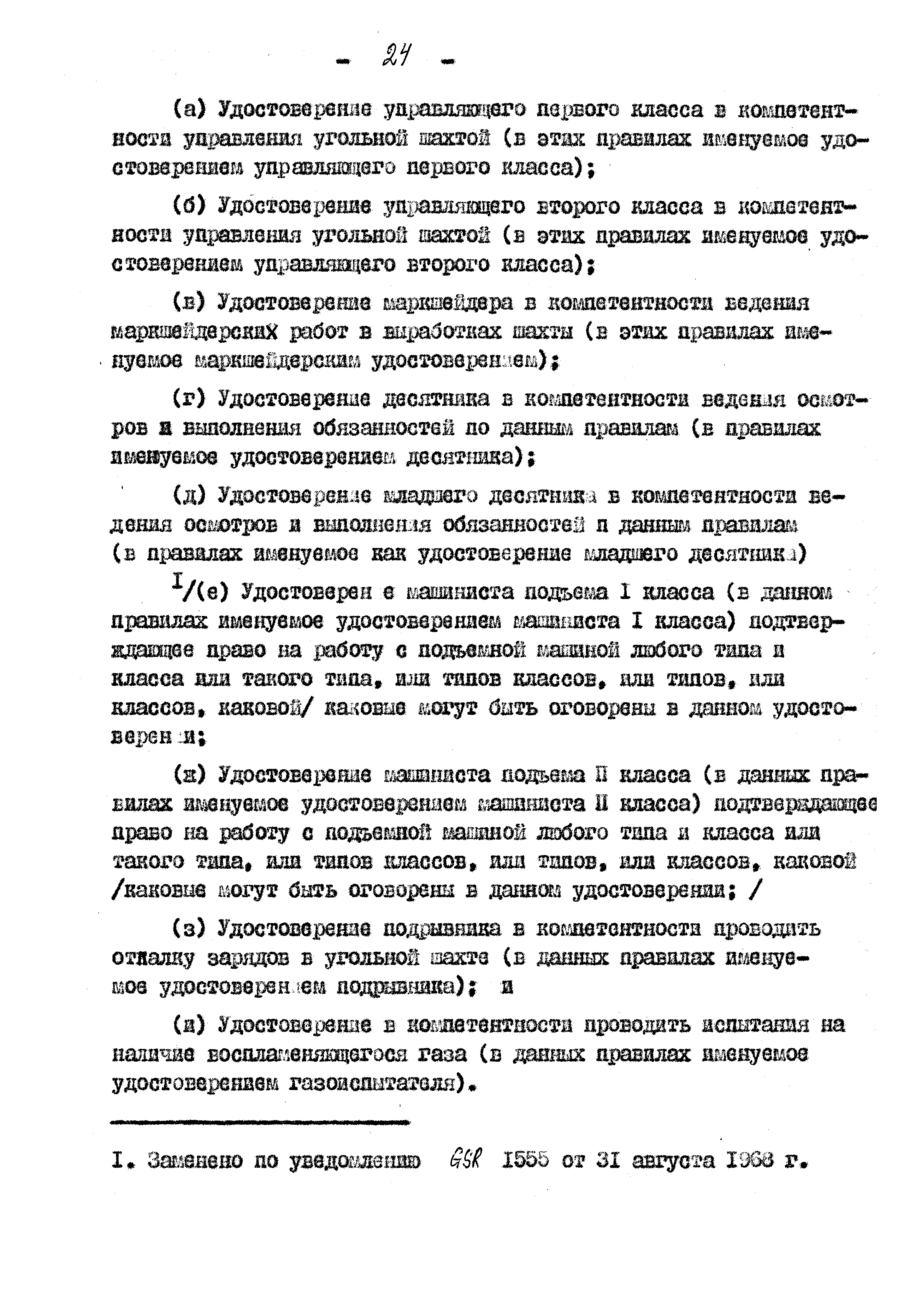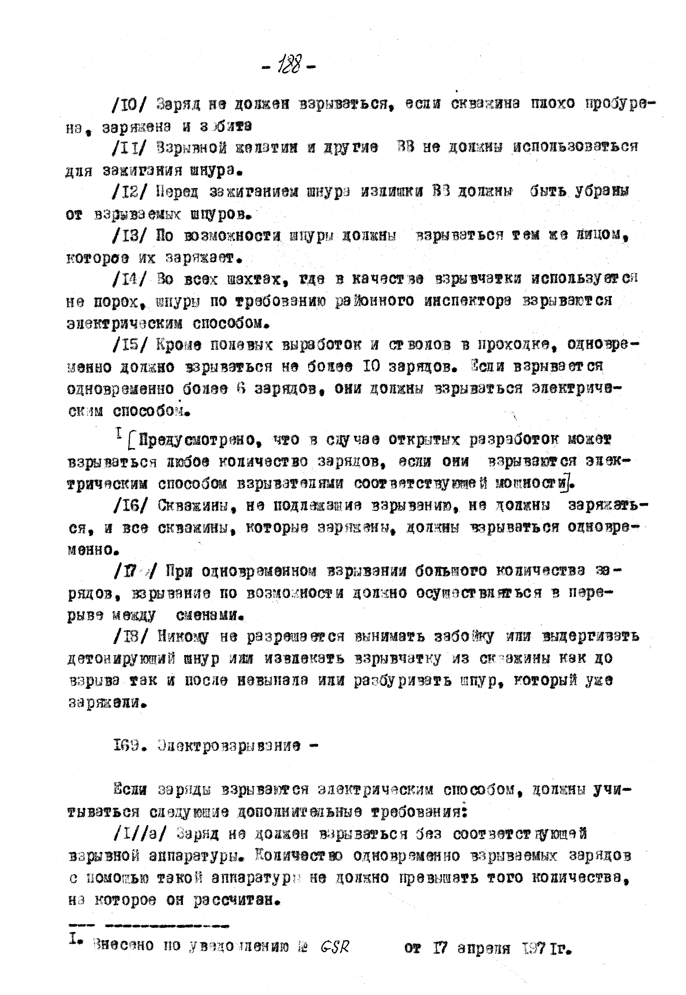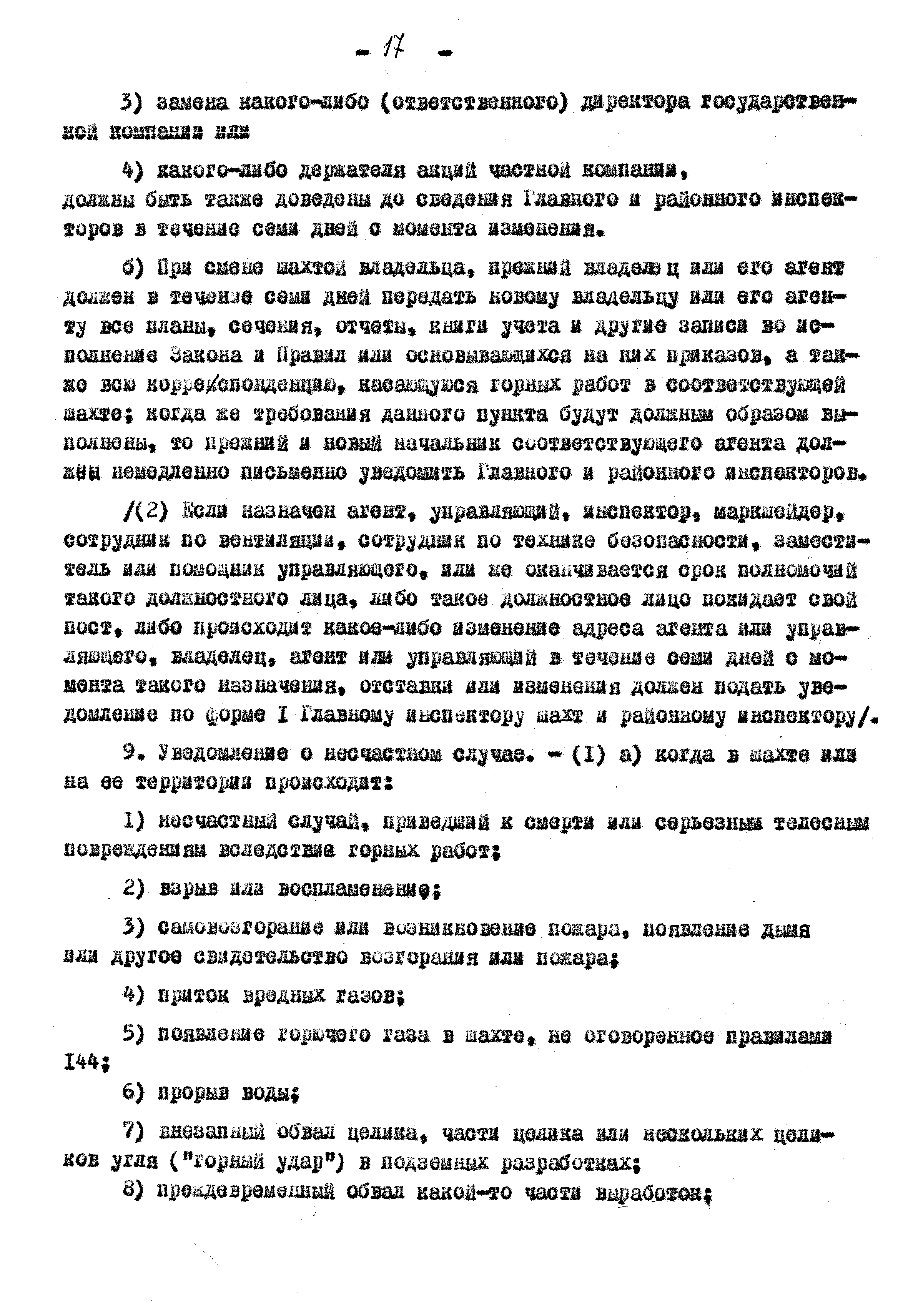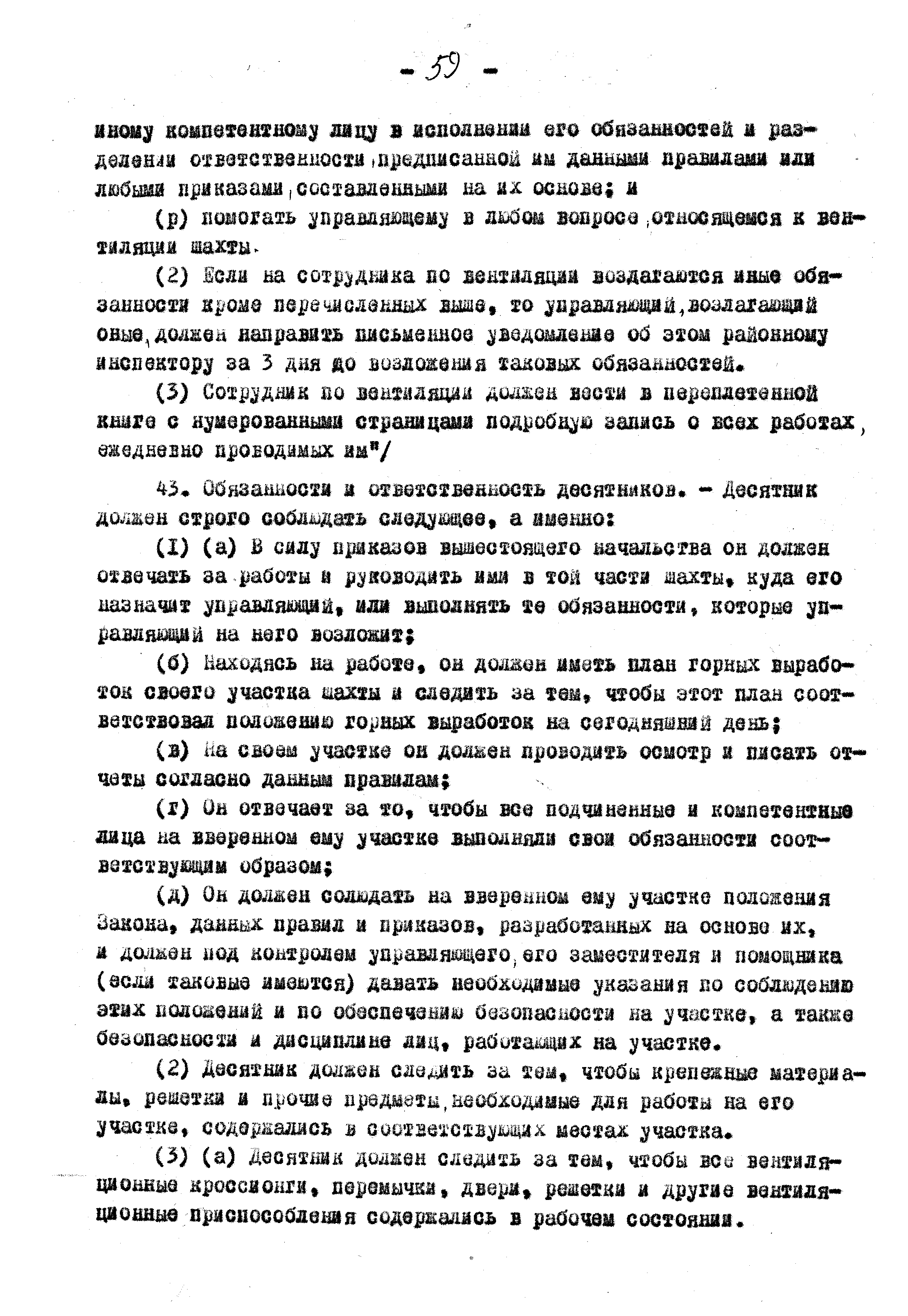 Правила ведения работ в угольных шахтах 1957 года| Статус: | справочные материалы, мп, тпр | | Название рус.: | Правила ведения работ в угольных шахтах 1957 года | | Дата добавления в базу: | 01.02.2020 | | Дата актуализации: | 01.01.2021 | | Оглавление: | I. Предварительные сведения II. Отчёты, уведомления и регистрация III. Проверка компетенции, занимаемых должностей и выдача удостоверений IV. Инспекторы и шахтные власти V. Обязанности и ответственность рабочих, компетентных лиц и властей VI. Планы и сечения VII. Средства для входа и выхода VIII. Транспорт людей и материалов. Подъём в стволах IX. Транспорт людей и материалов. Откатка X. Горные выработки XI. Меры предотвращения опасности, вызываемой огнём, пылью, газом и водой XII. Вентиляция XIII. Освещение и безопасные лампы XIV. Взрывчатые вещества и взрывание XV. Оборудование XVI. Разное Приложение 1 Форма 1 Приложение 2 Условные знаки при разработке планов и сечений Приложение 3 Формы систематических правил крепления |