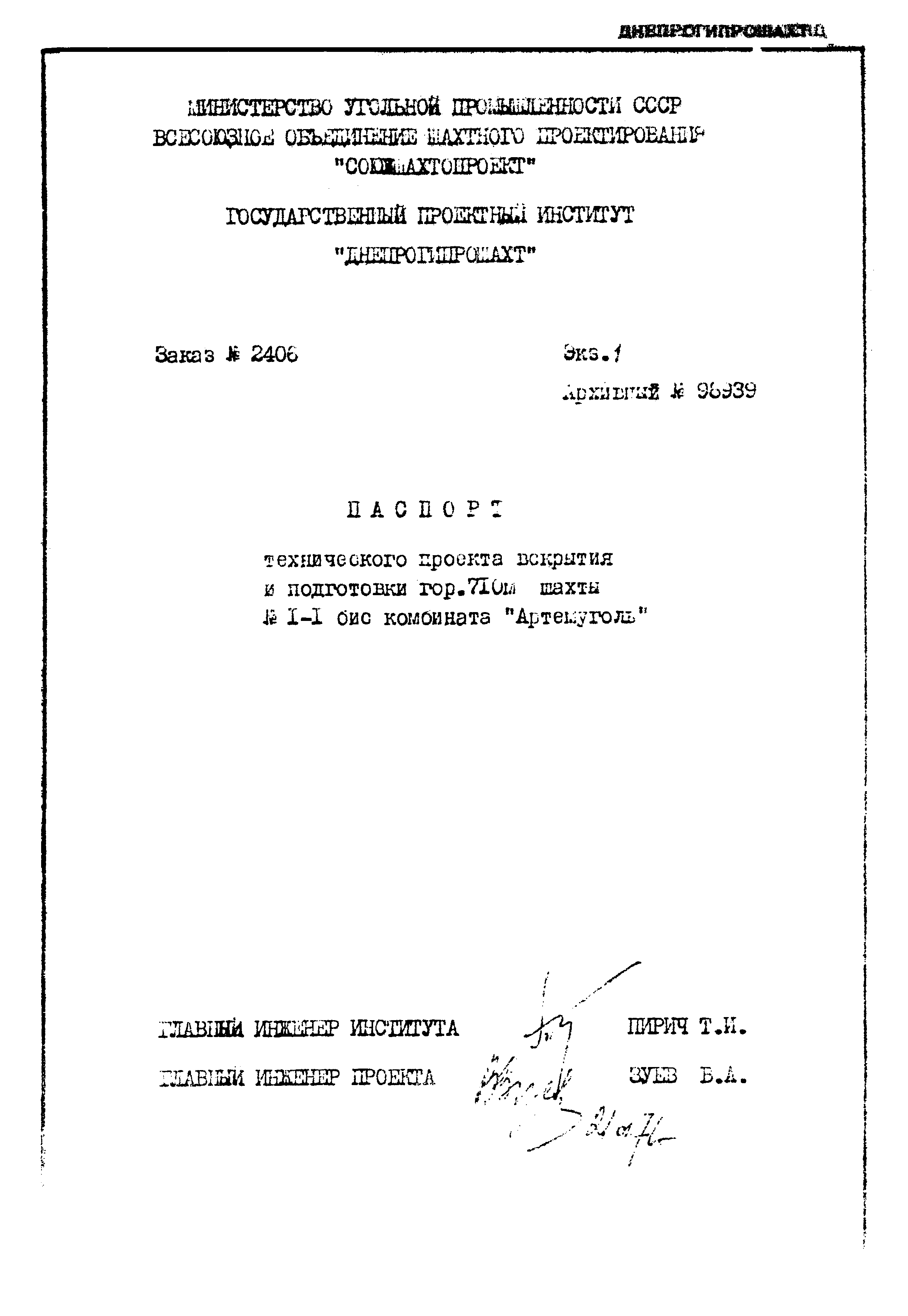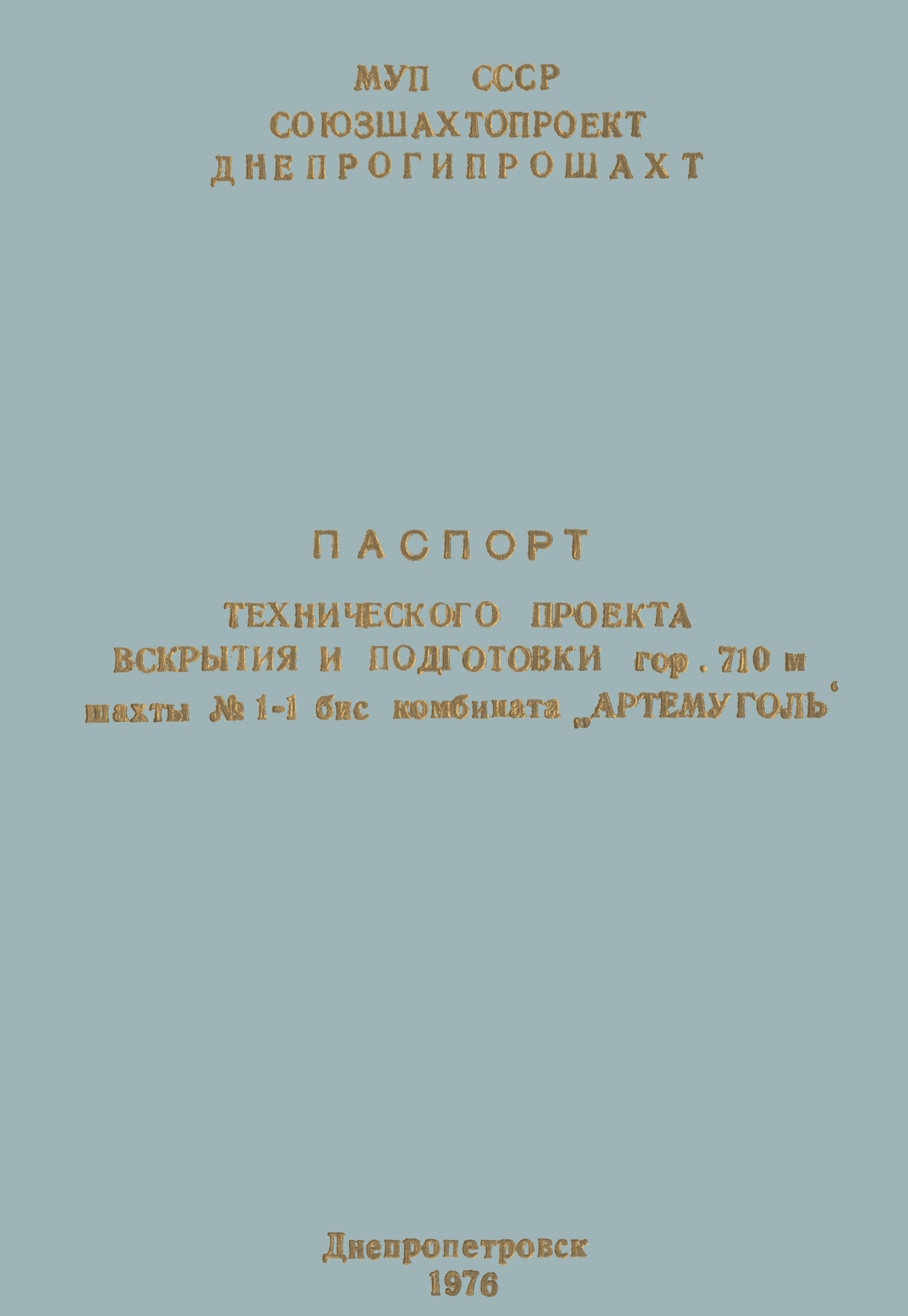 | Название рус.: | Паспорт технического проекта вскрытия и подготовки горизонта 710 м шахты № 1-1 бис комбината "Артемуголь" |