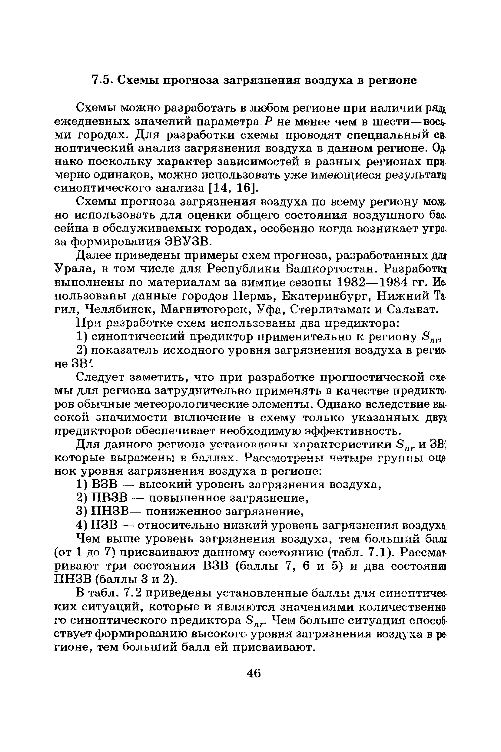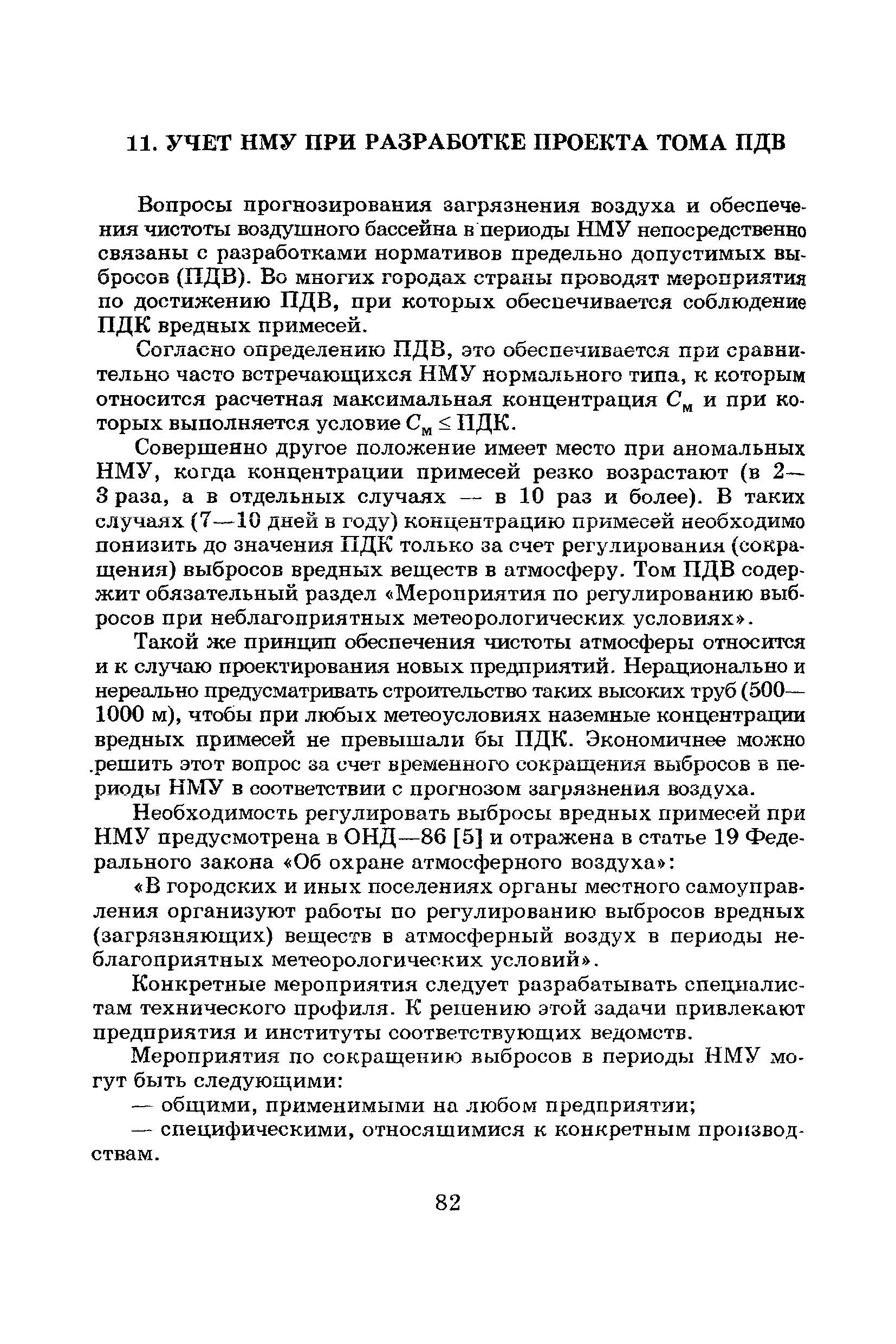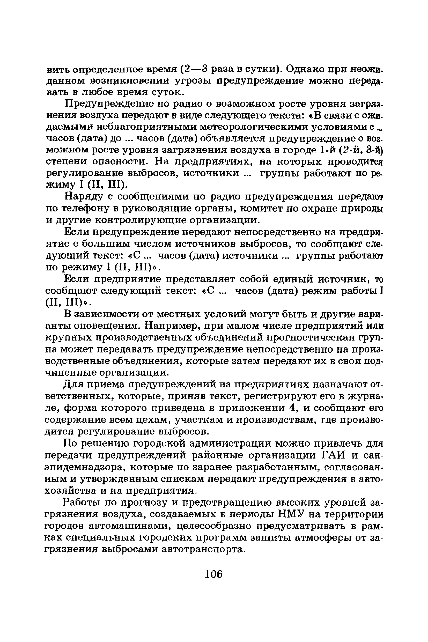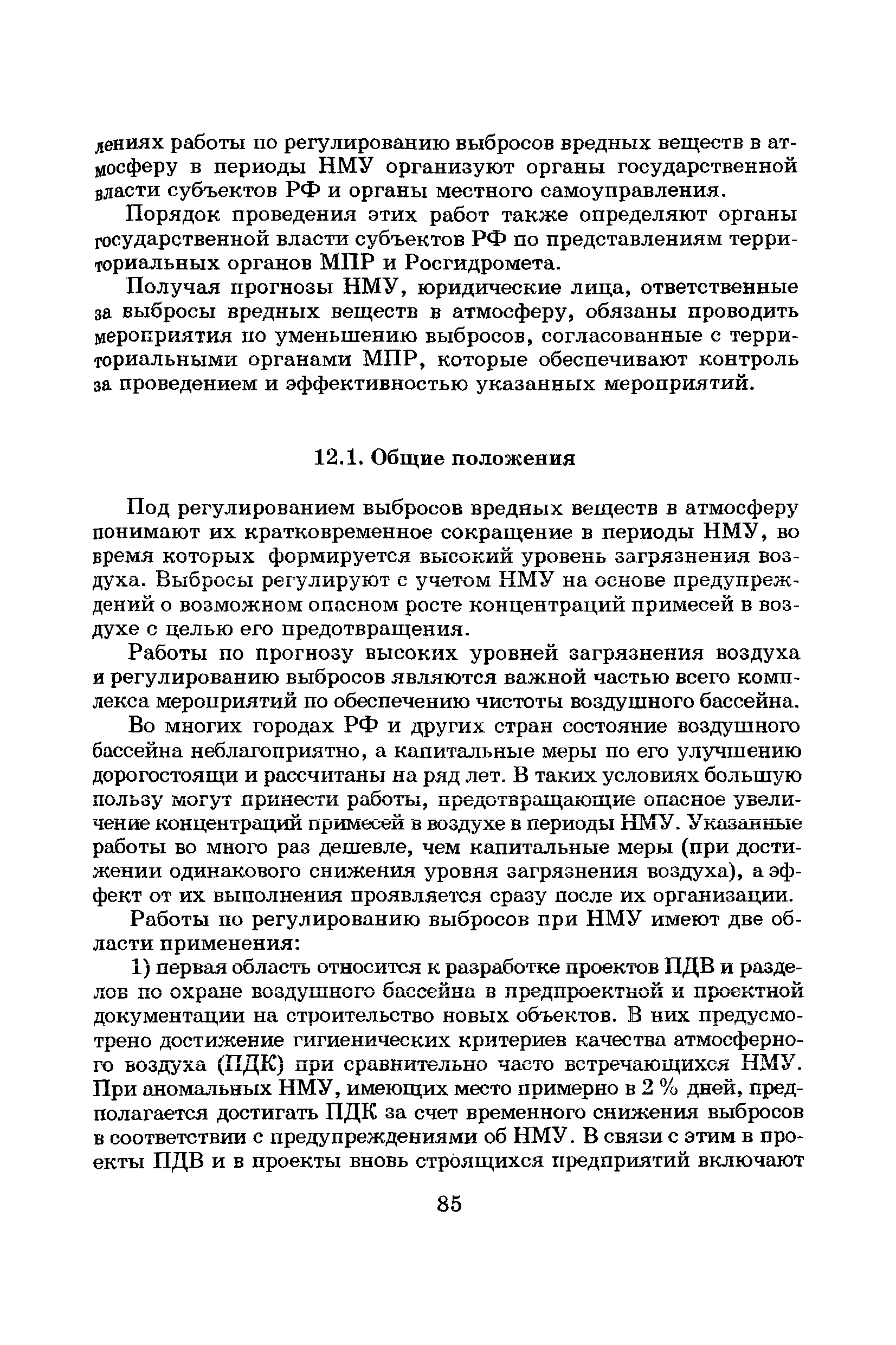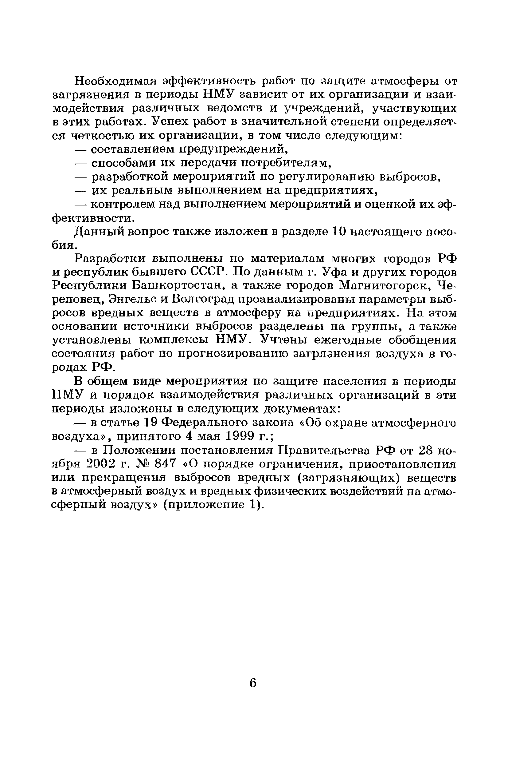 | Оглавление: | Введение Список основных обозначений и сокращений 1 Составление прогнозов загрязнения воздуха для отдельных источников выбросов. Разделение источников на группы и установление комплексов НМУ 2 Составление предупреждений. Определение числа их степеней опасности и режимов работ на предприятиях в периоды НМУ 3 Защита атмосферы от загрязнения, создаваемого выбросами автотранспорта в периоды НМУ 3.1. Прогноз по городу в целом 3.2. Прогноз для отдельных автотрасс и групп автотрасс 3.2.1. Рекомендации для оперативного прогнозирования загрязнения воздуха в районе автотрасс первой группы 3.2.2. Рекомендации для оперативного прогнозирования загрязнения воздуха в районе автотрасс второй группы 3.2.3. Рекомендации для оперативного прогнозирования загрязнения воздуха в районе автотрасс третьей группы 4 Прогнозирование высоких уровней загрязнения воздуха при неполных данных о параметрах источников выбросов на предприятиях 5 Прогноз загрязнения воздуха для предприятий, расположенных за пределами городов 6 Прогноз опасных уровней загрязнения воздуха на территории предприятий 7 Прогноз экстремально высоких уровней загрязнения воздуха в городах и регионах 7.1. Анализ территориального распределения загрязнения воздуха в городах 7.2. Анализ ЭВУЗВ в отдельных городах 7.3. Анализ синоптических условий формирования ЭВУЗВ в городах регионах 7.4. Прогностические правила 7.5. Схемы прогноза загрязнения воздуха в регионе 7.5.1. Схема графической регрессии 7.5.2. Схема линейной регрессии 7.6. Схемы прогноза ЭВУЗВ в городах 7.6.1. Схема по методу графической регрессии 7.6.2. Схема по методу множественной линейной регрессии 8 Прогноз наибольших концентраций примесей в воздухе различных районов города 8.1. Разработка прогностических схем 8.2. Применение метода множественной линейкой регрессии с предварительным исключением нелинейности связей 8.3. Применение метода последовательной графической репрессии 9 Прогноз загрязнения воздуха в городе с заблаговременностью трое суток 10 Организация работ, взаимодействие различных ведомств и учреждений в периоды НМУ 10.1. Работы, выполняемые Росгидрометом 10.2. Работы, выполняемые промышленными и транспортными предприятиями 10.3. Совместные работы подразделений Росгидромета и предприятий 10.4. Работы, выполняемые комитетами охраны природы 10.5. Работы, выполняемые Санэпидемнадзором 10.6. Работы, выполняемые ГАИ 10.7. Работы, выполняемые радиокомитетами 10.8. Работы, выполняемые администрацией субъекта РФ и города 11 Учет НМУ при разработке проекта тома ПДВ 12 Регулирование выбросов при НМУ 12.1. Общие положения 12.2. Основные принципы разработки мероприятий по регулированию выбросов 12.3. Составление предупреждений о повышении уровня загрязнения воздуха 12.3.1. Составление предупреждений для предприятий и отдельных источников 12.3.2. Составление предупреждений по городу в целом 12.4. Выбор городов и предприятий. Установление примесей, выбросы которых следует сокращать в периоды НМУ 12.5. Определение необходимого снижения концентраций примесей в воздухе и выбросов в периоды НМУ 12.5.1. Определение снижения концентраций примесей, создаваемых отдельными источниками выбросов 12.5.2. Определение необходимого снижения концентрации примесей по городу в целом 12.6. Порядок разработки мероприятий по сокращению выбросов в периоды НМУ 12.6.1. 