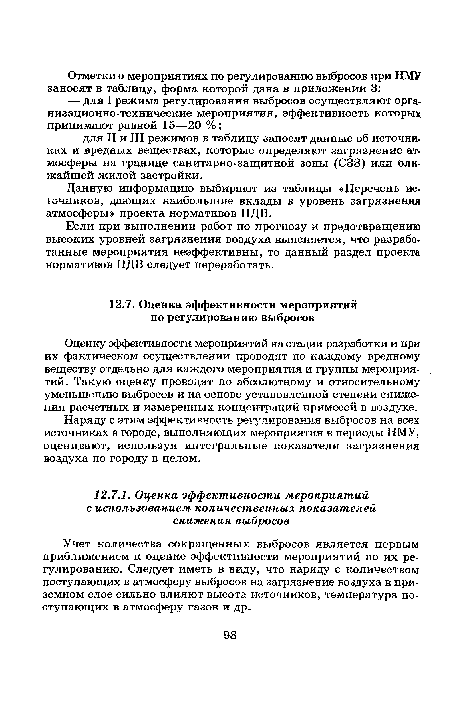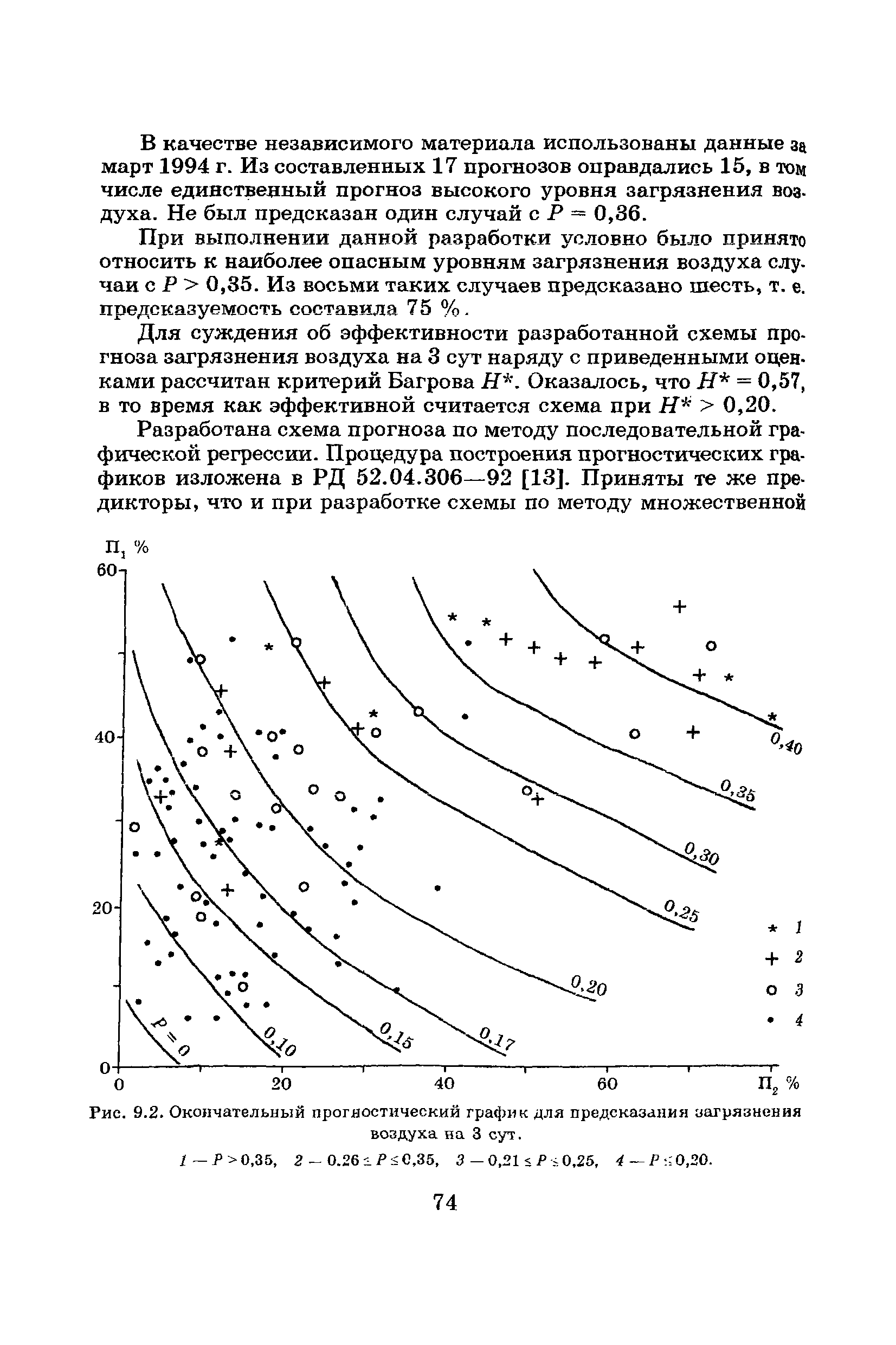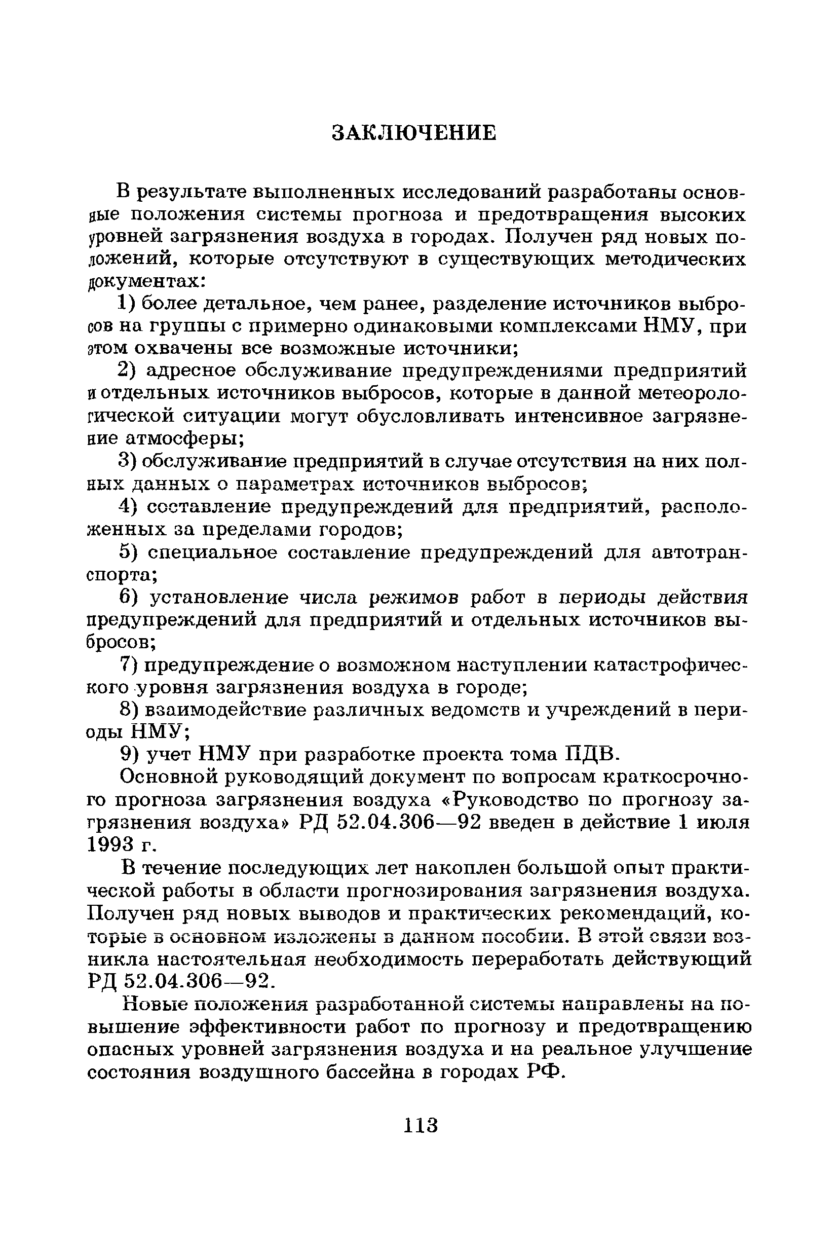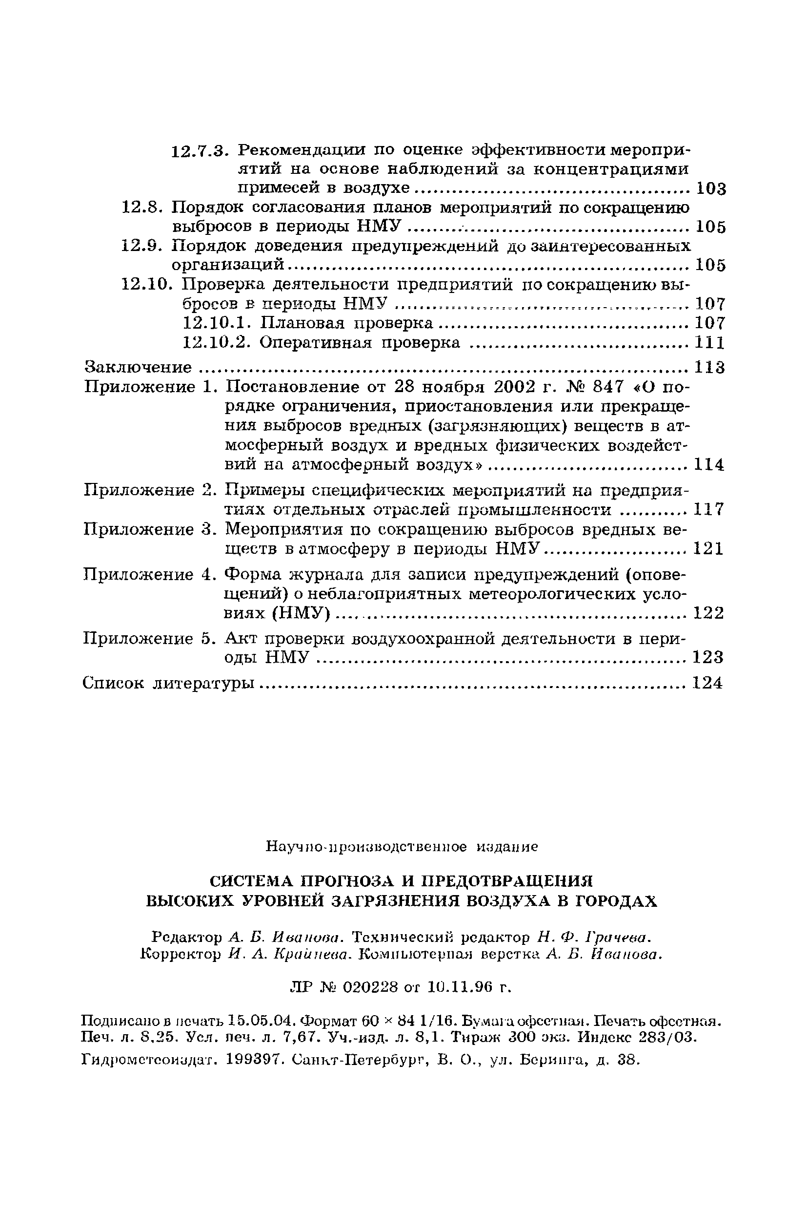 | Оглавление: | Введение Список основных обозначений и сокращений 1 Составление прогнозов загрязнения воздуха для отдельных источников выбросов. Разделение источников на группы и установление комплексов НМУ 2 Составление предупреждений. Определение числа их степеней опасности и режимов работ на предприятиях в периоды НМУ 3 Защита атмосферы от загрязнения, создаваемого выбросами автотранспорта в периоды НМУ 3.1. Прогноз по городу в целом 3.2. Прогноз для отдельных автотрасс и групп автотрасс 3.2.1. Рекомендации для оперативного прогнозирования загрязнения воздуха в районе автотрасс первой группы 3.2.2. Рекомендации для оперативного прогнозирования загрязнения воздуха в районе автотрасс второй группы 3.2.3. Рекомендации для оперативного прогнозирования загрязнения воздуха в районе автотрасс третьей группы 4 Прогнозирование высоких уровней загрязнения воздуха при неполных данных о параметрах источников выбросов на предприятиях 5 Прогноз загрязнения воздуха для предприятий, расположенных за пределами городов 6 Прогноз опасных уровней загрязнения воздуха на территории предприятий 7 Прогноз экстремально высоких уровней загрязнения воздуха в городах и регионах 7.1. Анализ территориального распределения загрязнения воздуха в городах 7.2. Анализ ЭВУЗВ в отдельных городах 7.3. Анализ синоптических условий формирования ЭВУЗВ в городах регионах 7.4. Прогностические правила 7.5. Схемы прогноза загрязнения воздуха в регионе 7.5.1. Схема графической регрессии 7.5.2. Схема линейной регрессии 7.6. Схемы прогноза ЭВУЗВ в городах 7.6.1. Схема по методу графической регрессии 7.6.2. Схема по методу множественной линейной регрессии 8 Прогноз наибольших концентраций примесей в воздухе различных районов города 8.1. Разработка прогностических схем 8.2. Применение метода множественной линейкой регрессии с предварительным исключением нелинейности связей 8.3. Применение метода последовательной графической репрессии 9 Прогноз загрязнения воздуха в городе с заблаговременностью трое суток 10 Организация работ, взаимодействие различных ведомств и учреждений в периоды НМУ 10.1. Работы, выполняемые Росгидрометом 10.2. Работы, выполняемые промышленными и транспортными предприятиями 10.3. Совместные работы подразделений Росгидромета и предприятий 10.4. Работы, выполняемые комитетами охраны природы 10.5. Работы, выполняемые Санэпидемнадзором 10.6. Работы, выполняемые ГАИ 10.7. Работы, выполняемые радиокомитетами 10.8. Работы, выполняемые администрацией субъекта РФ и города 11 Учет НМУ при разработке проекта тома ПДВ 12 Регулирование выбросов при НМУ 12.1. Общие положения 12.2. Основные принципы разработки мероприятий по регулированию выбросов 12.3. Составление предупреждений о повышении уровня загрязнения воздуха 12.3.1. Составление предупреждений для предприятий и отдельных источников 12.3.2. Составление предупреждений по городу в целом 12.4. Выбор городов и предприятий. Установление примесей, выбросы которых следует сокращать в периоды НМУ 12.5. Определение необходимого снижения концентраций примесей в воздухе и выбросов в периоды НМУ 12.5.1. Определение снижения концентраций примесей, создаваемых отдельными источниками выбросов 12.5.2. Определение необходимого снижения концентрации примесей по городу в целом 12.6. Порядок разработки мероприятий по сокращению выбросов в периоды НМУ 12.6.1. 