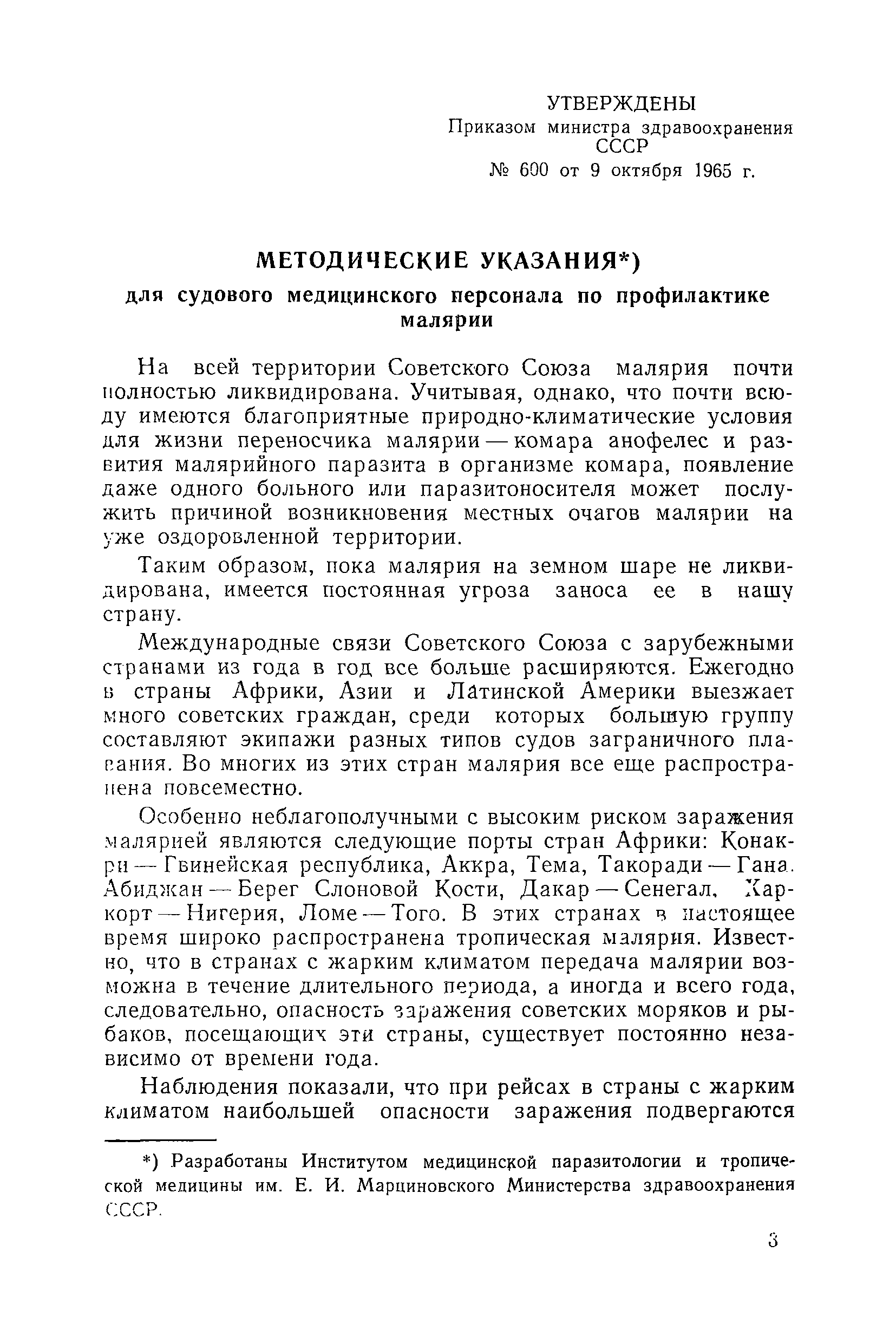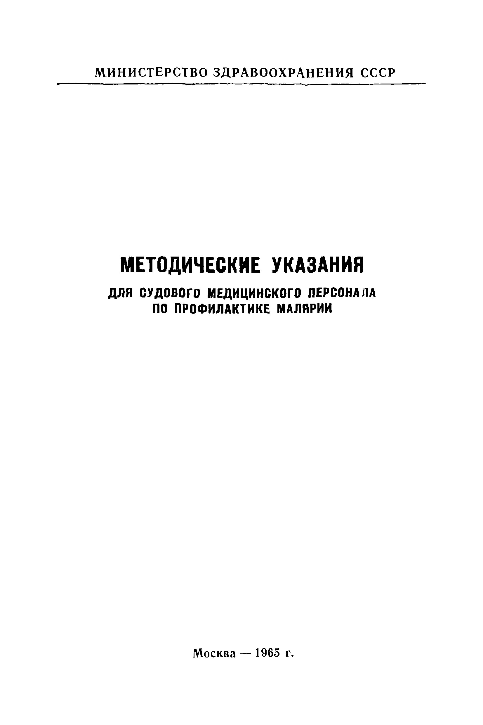 | Название рус.: | Методические указания для судового медицинского персонала по профилактике малярии |