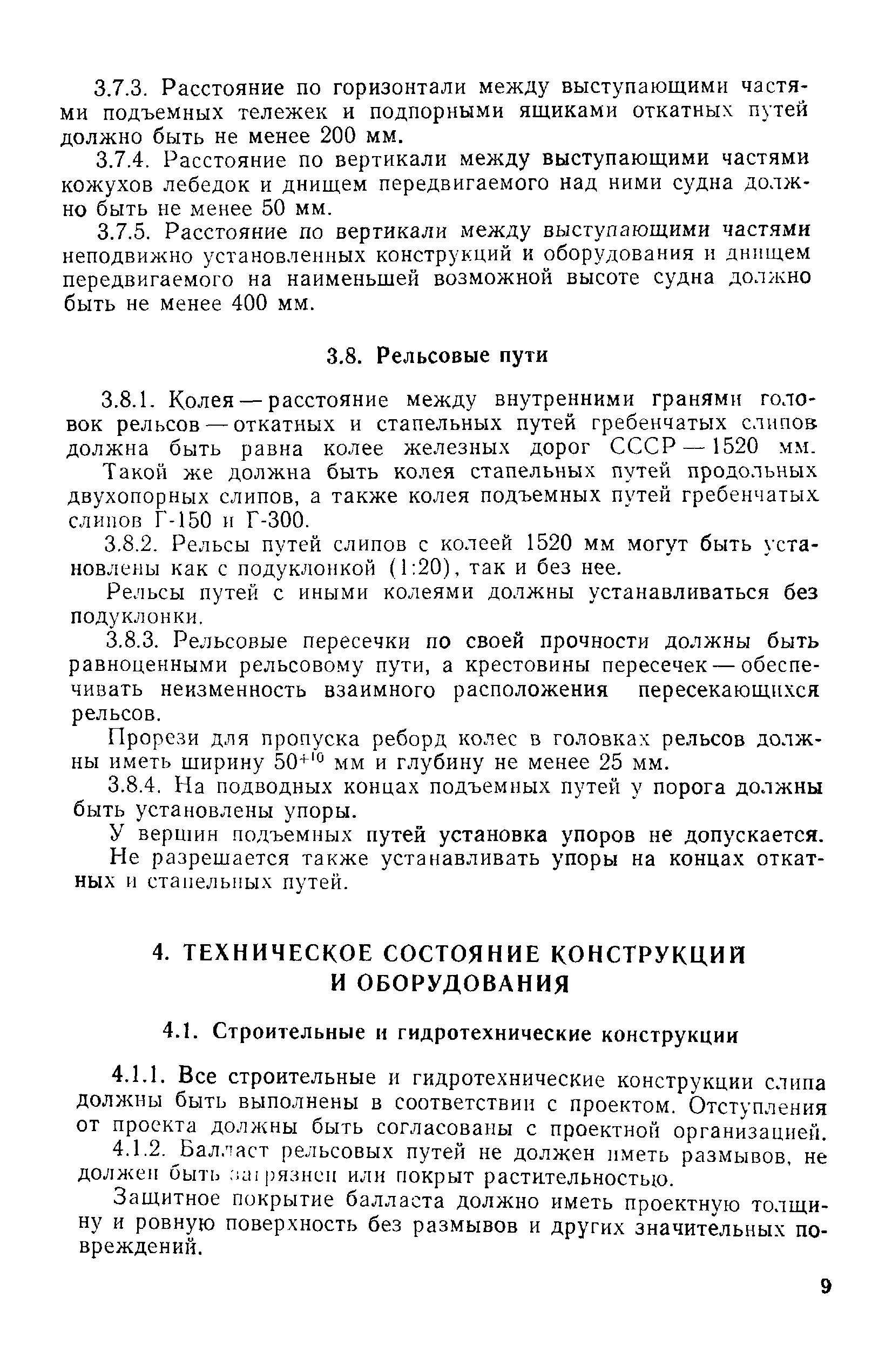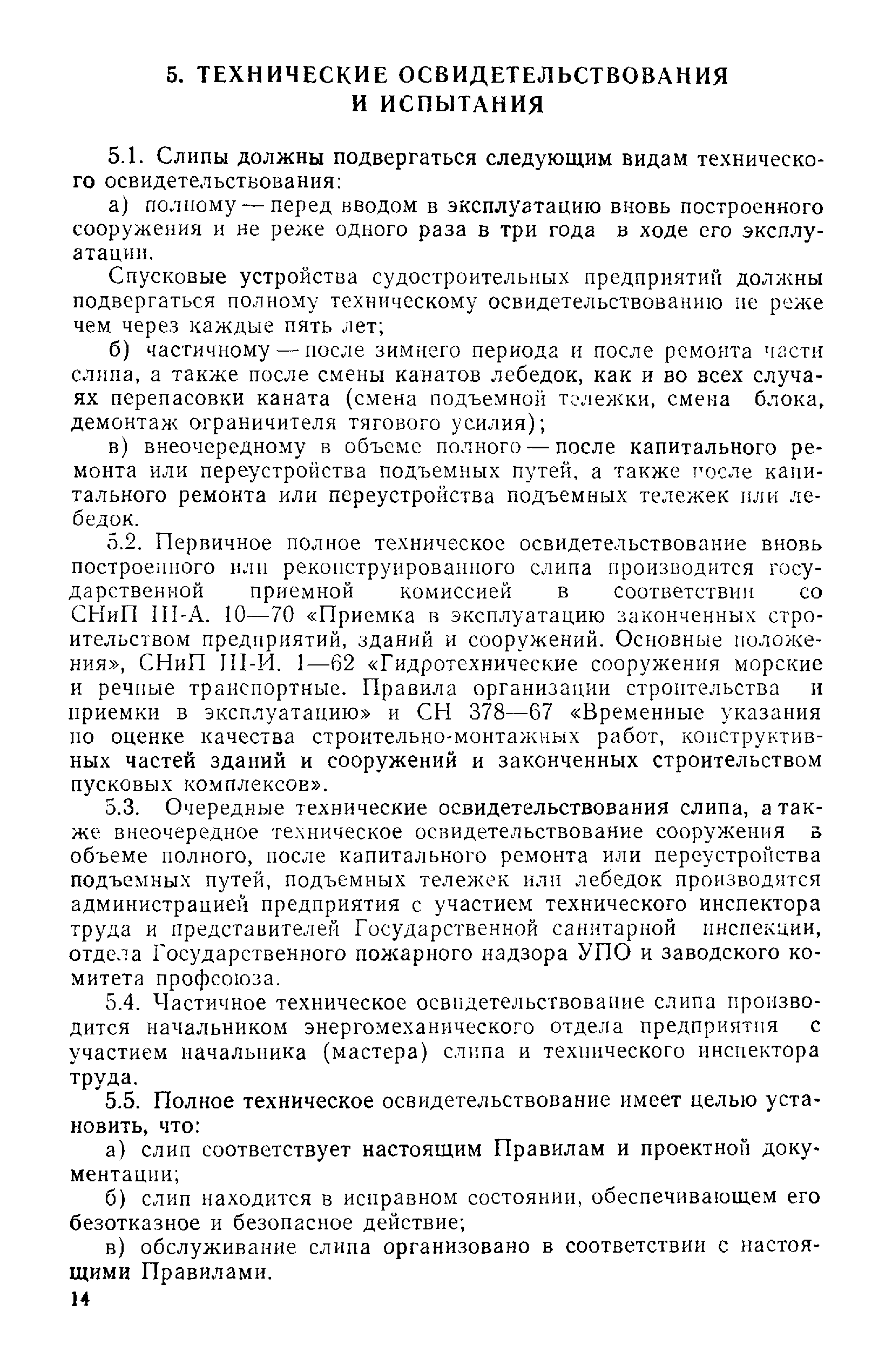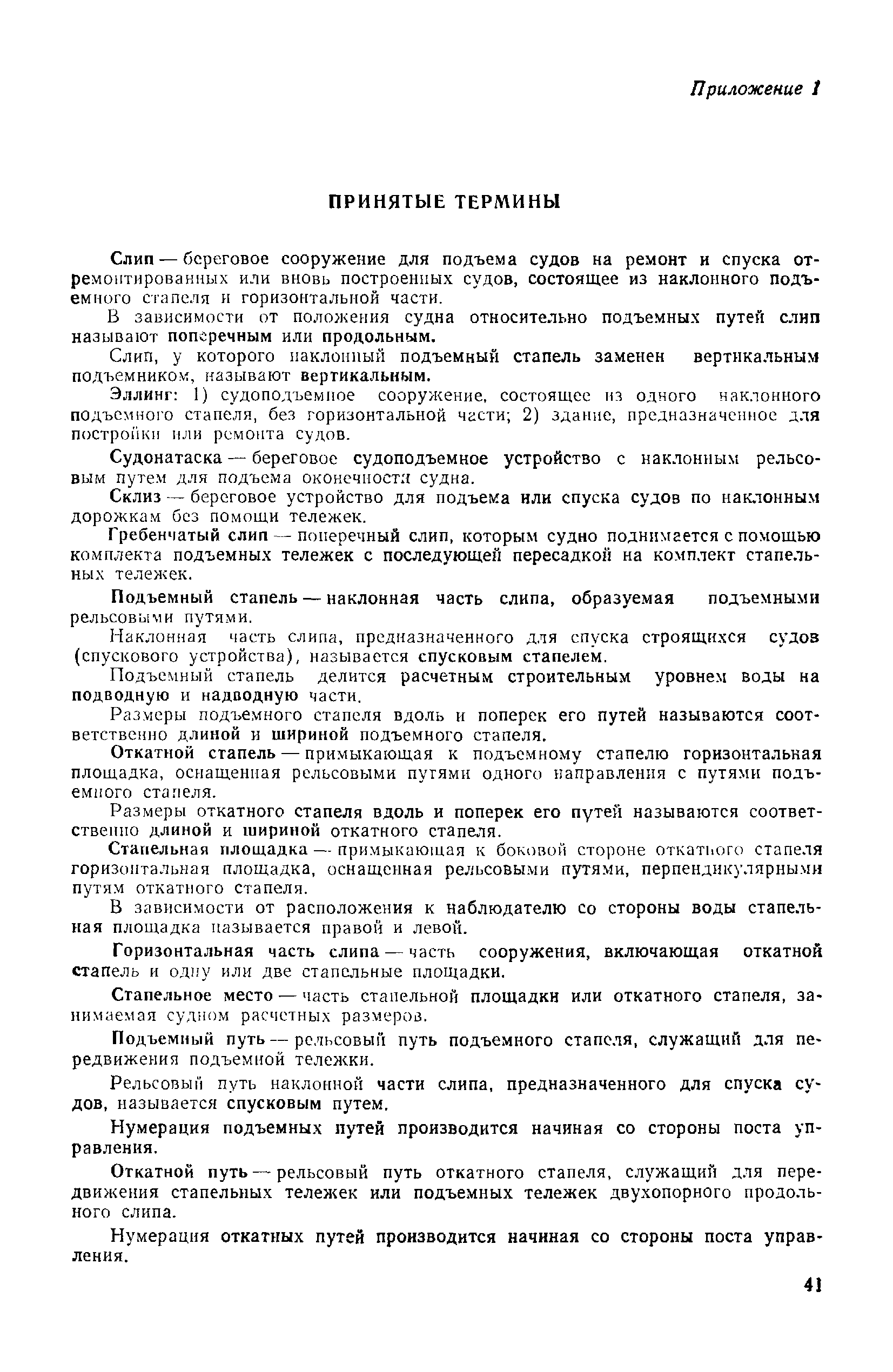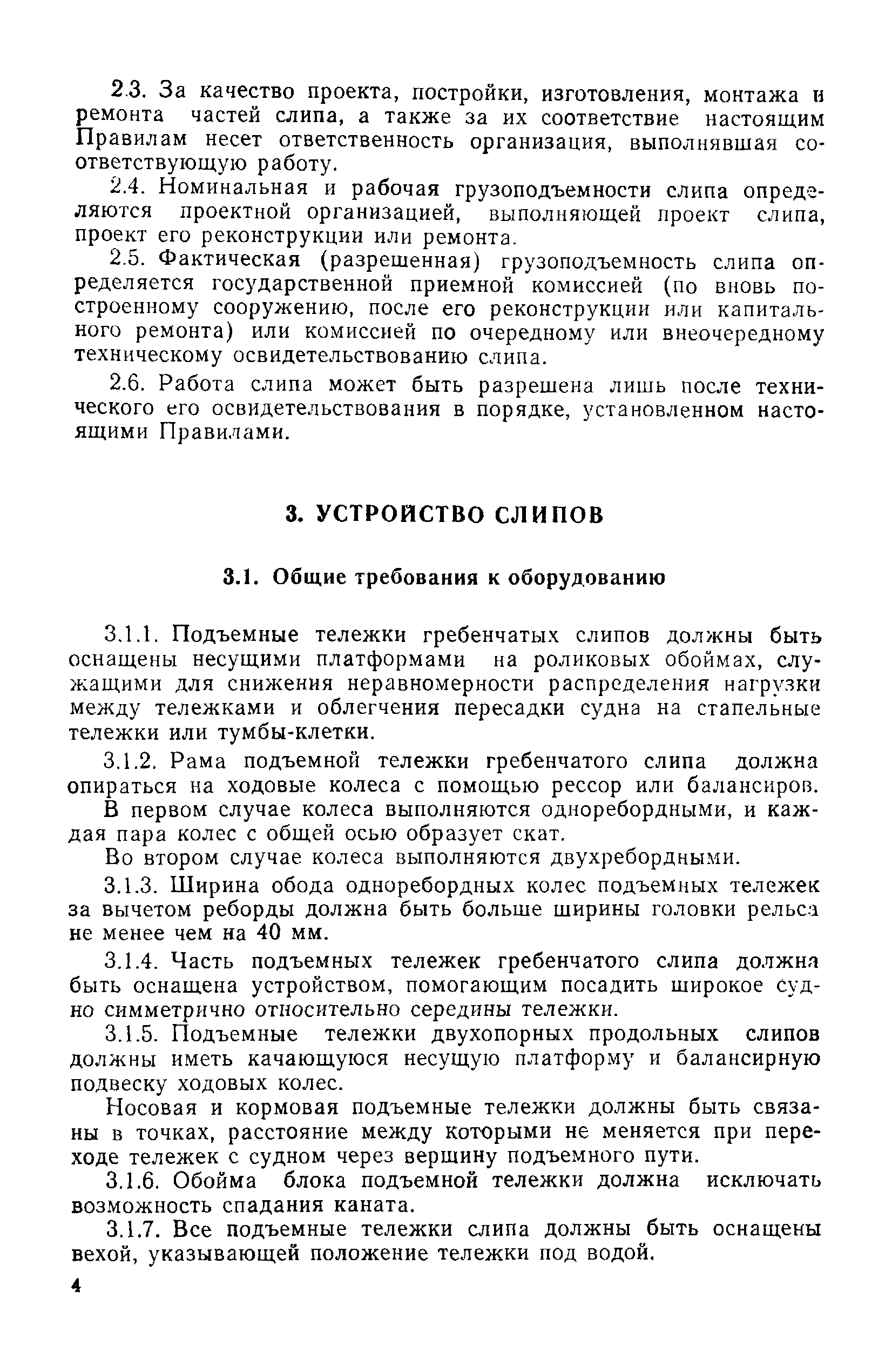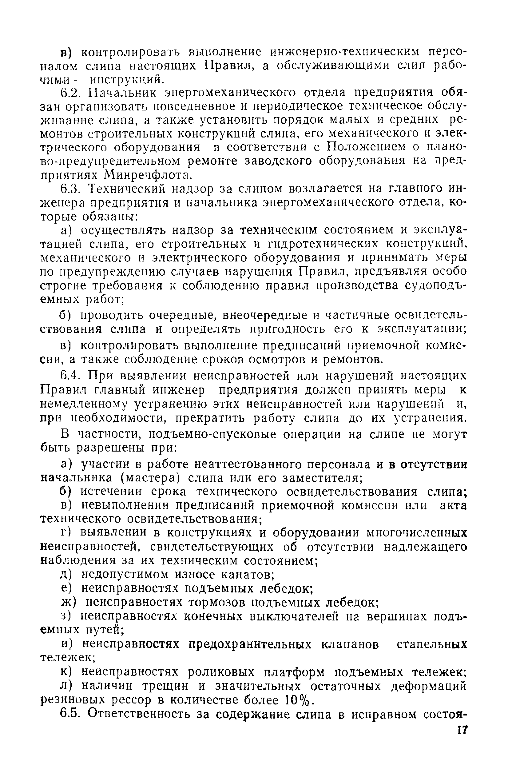 | Область применения: | Правила распространяются на гребенчатые поперечные и двухопорные продольные слипы, принадлежащие промышленным предприятиям Министерства речного флота. Правила не распространяются на поперечные слипы с двухъярусной или одноярусной подъемными тележками, передвигающимися как по подъемным, так и по откатным путям, и продольные слипы с косяковой подъемной тележкой. |