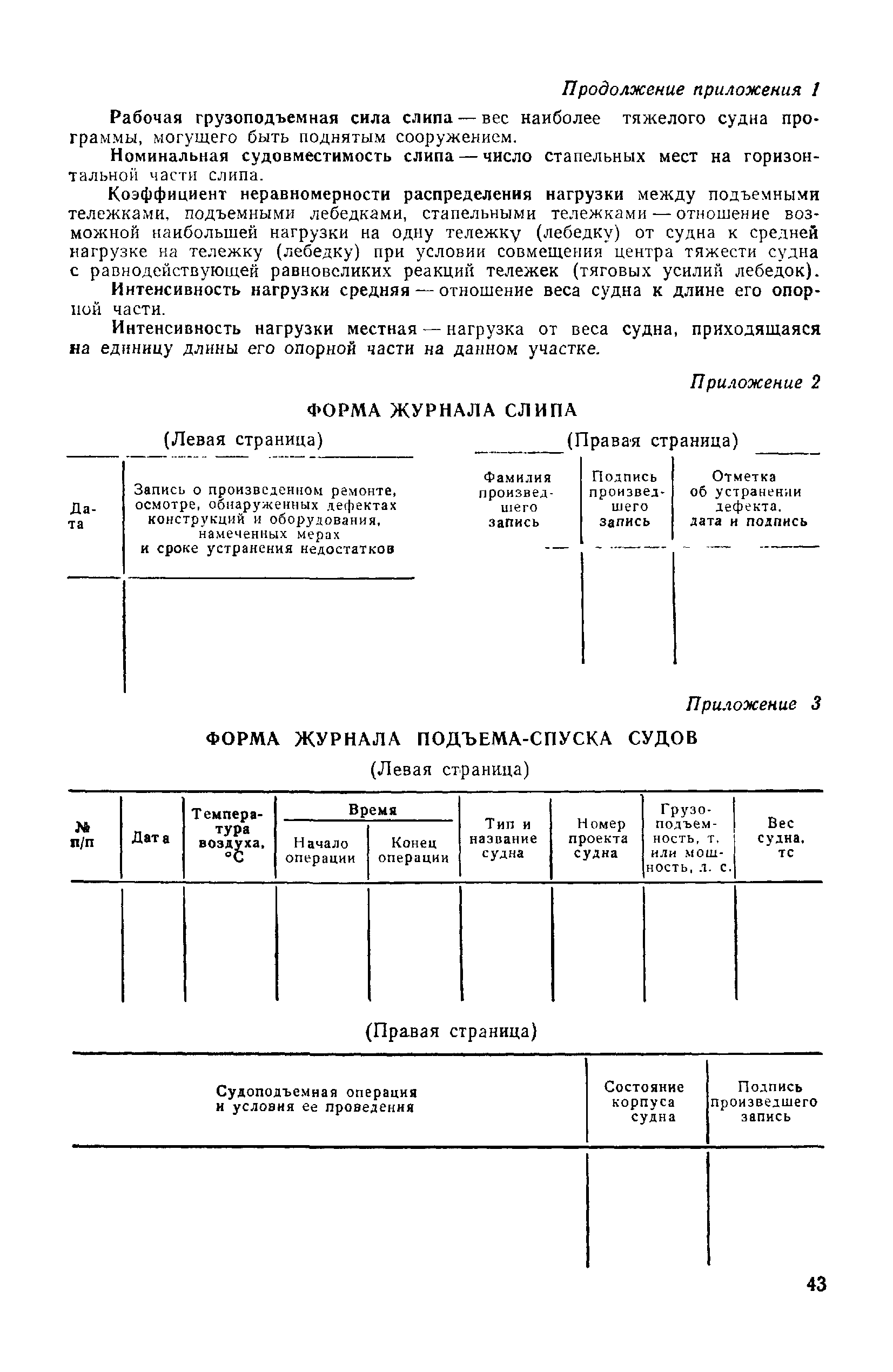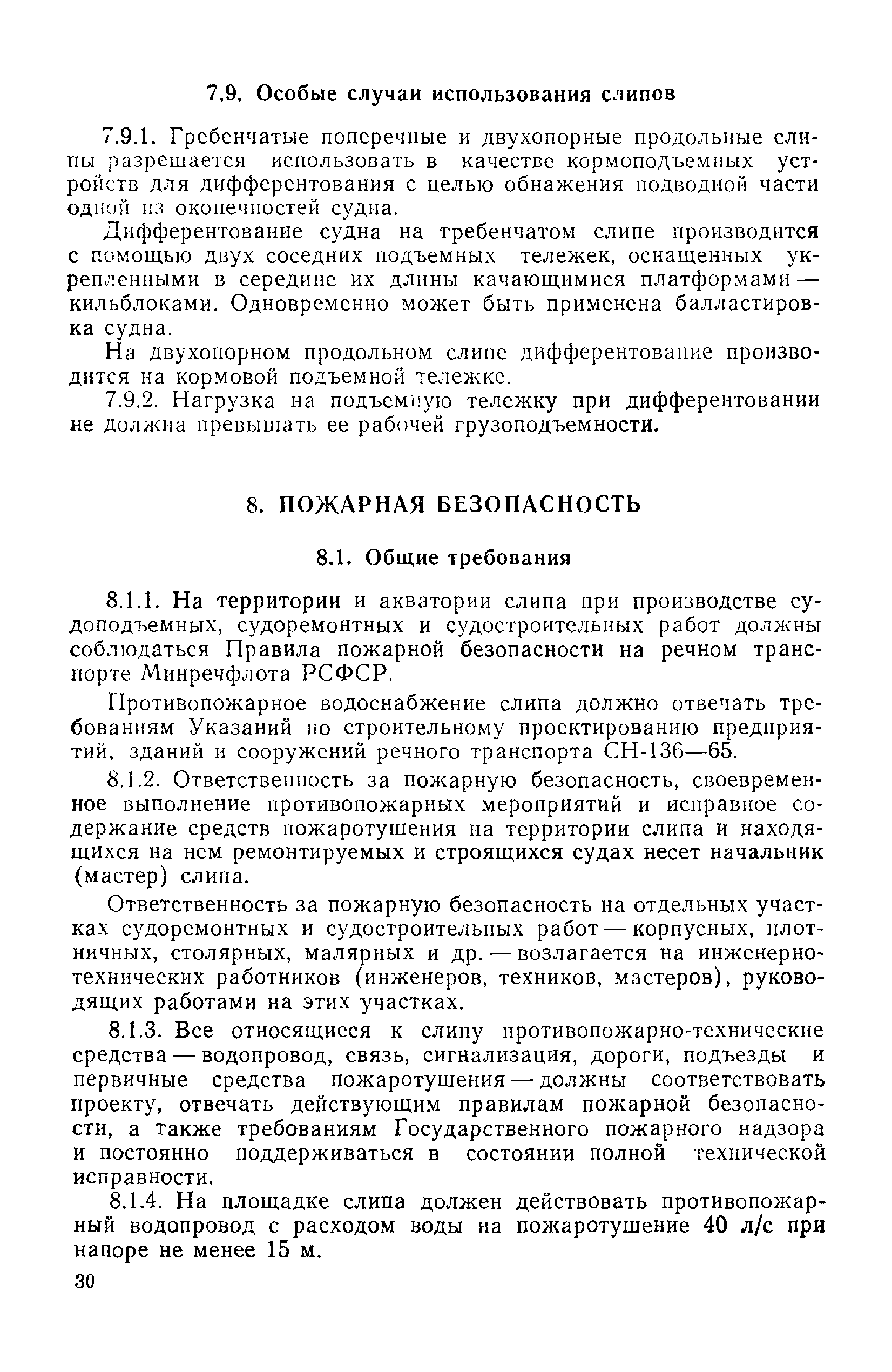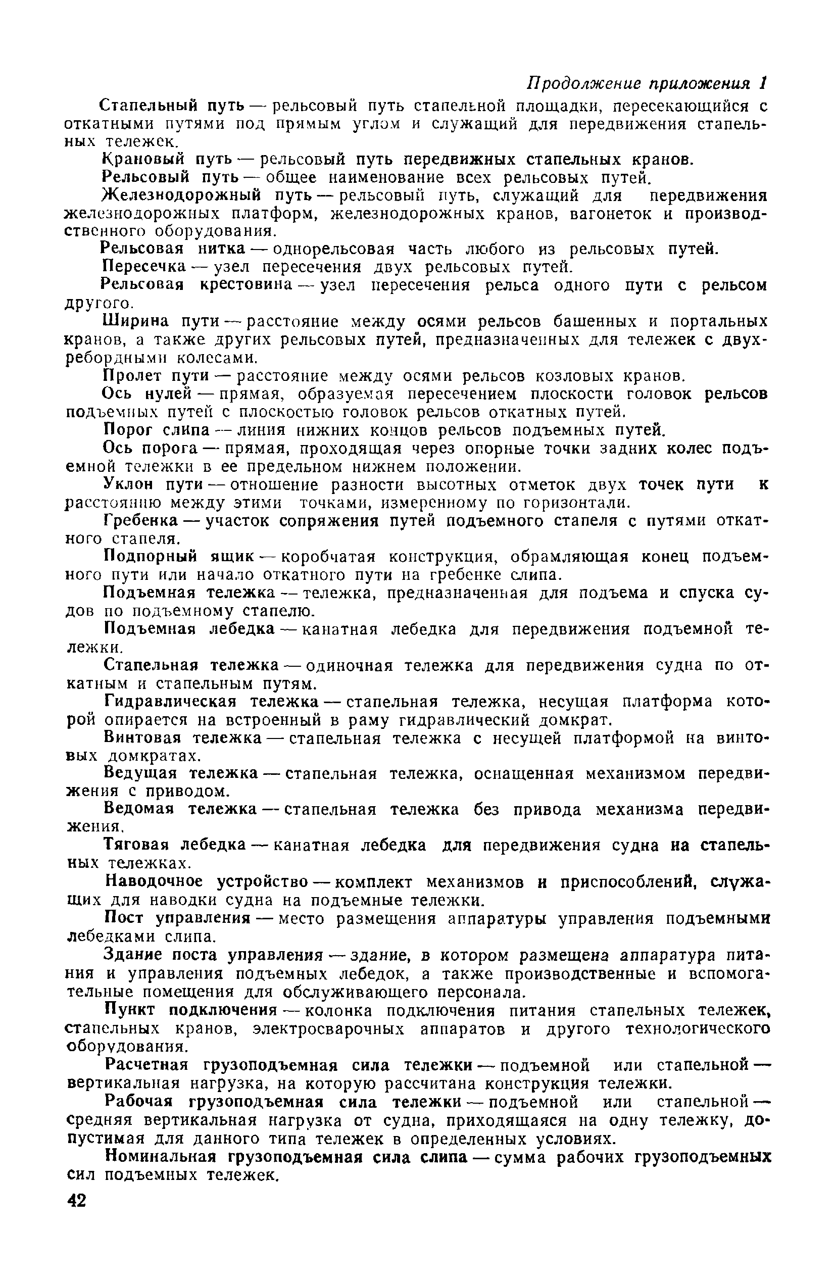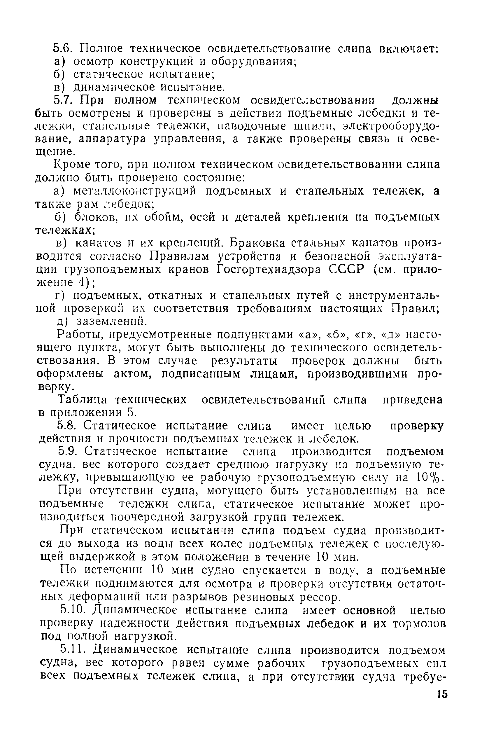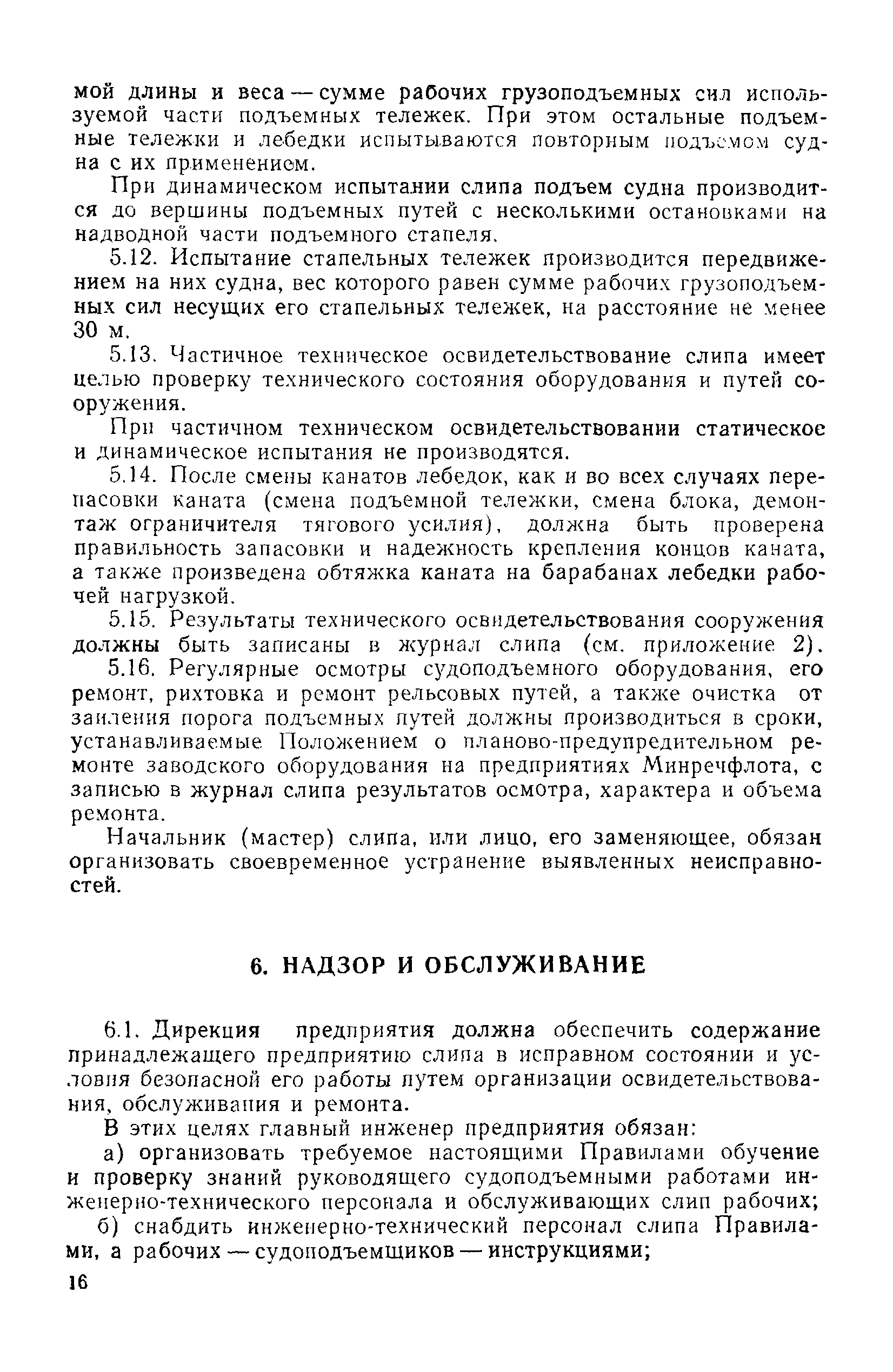 | Область применения: | Правила распространяются на гребенчатые поперечные и двухопорные продольные слипы, принадлежащие промышленным предприятиям Министерства речного флота. Правила не распространяются на поперечные слипы с двухъярусной или одноярусной подъемными тележками, передвигающимися как по подъемным, так и по откатным путям, и продольные слипы с косяковой подъемной тележкой. |