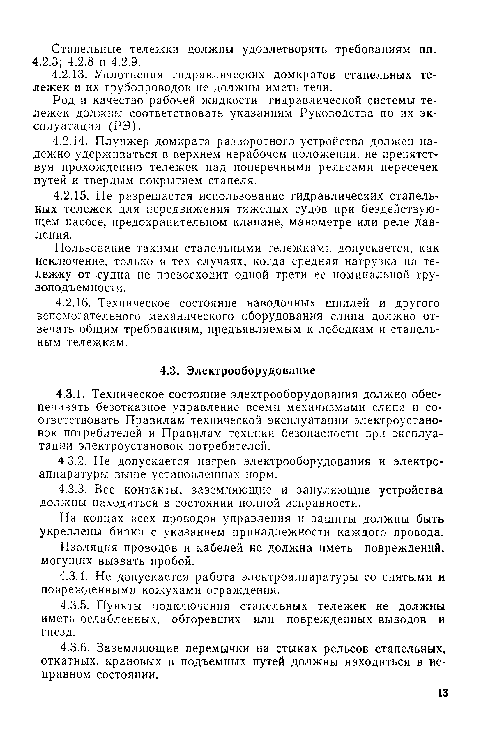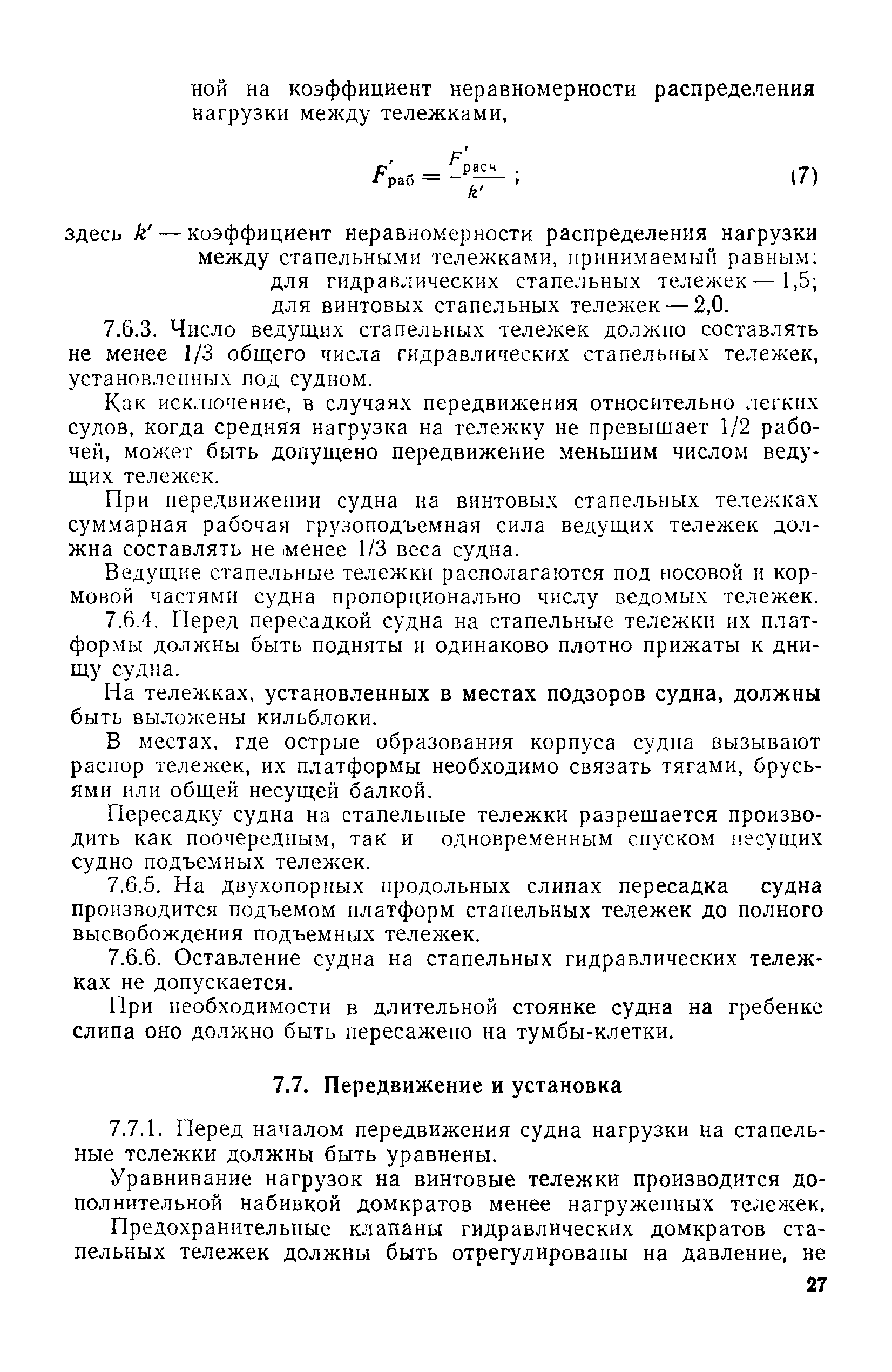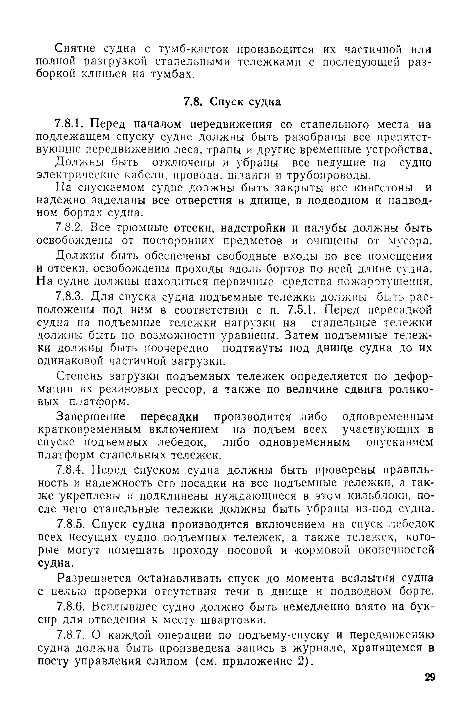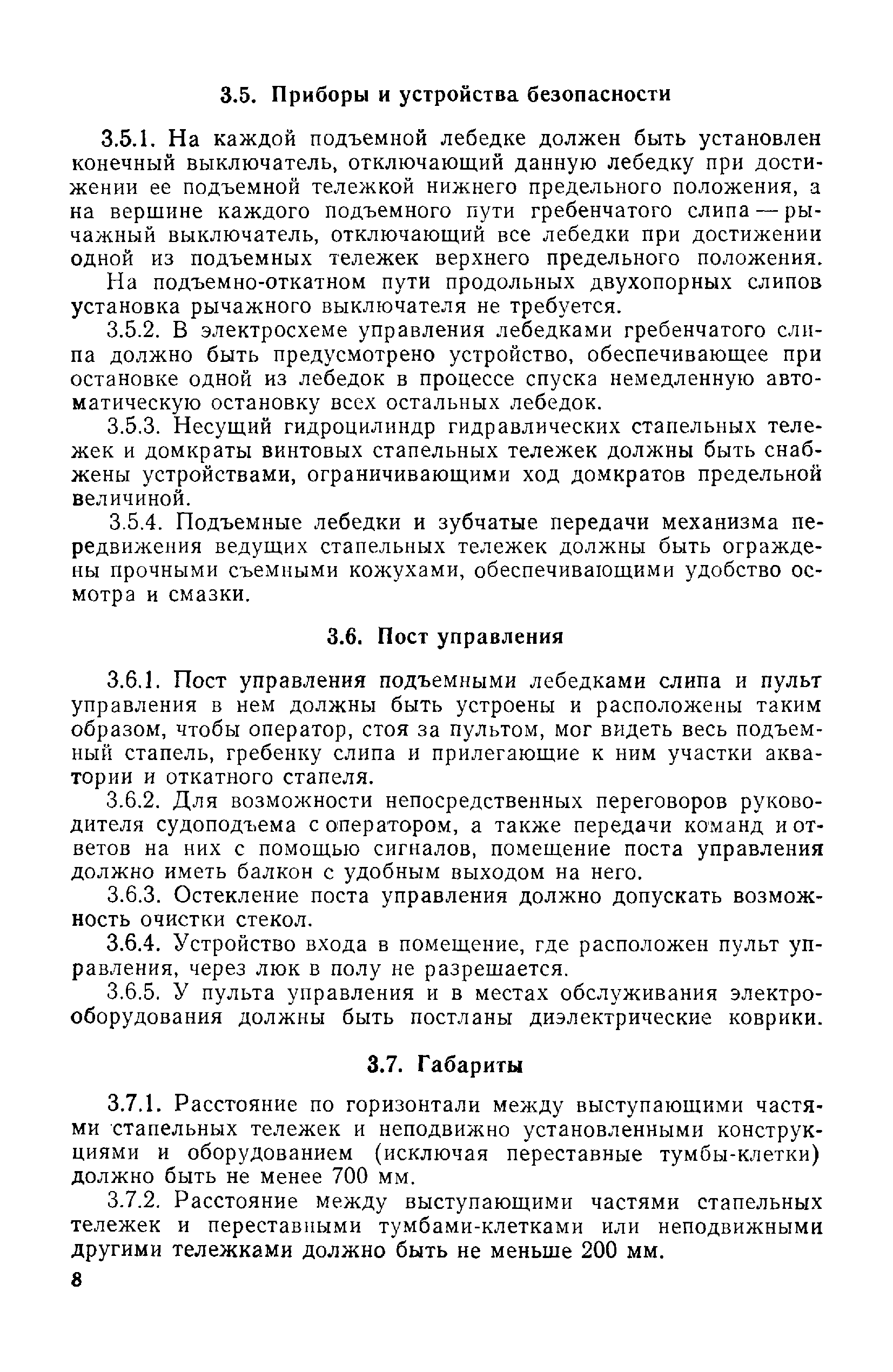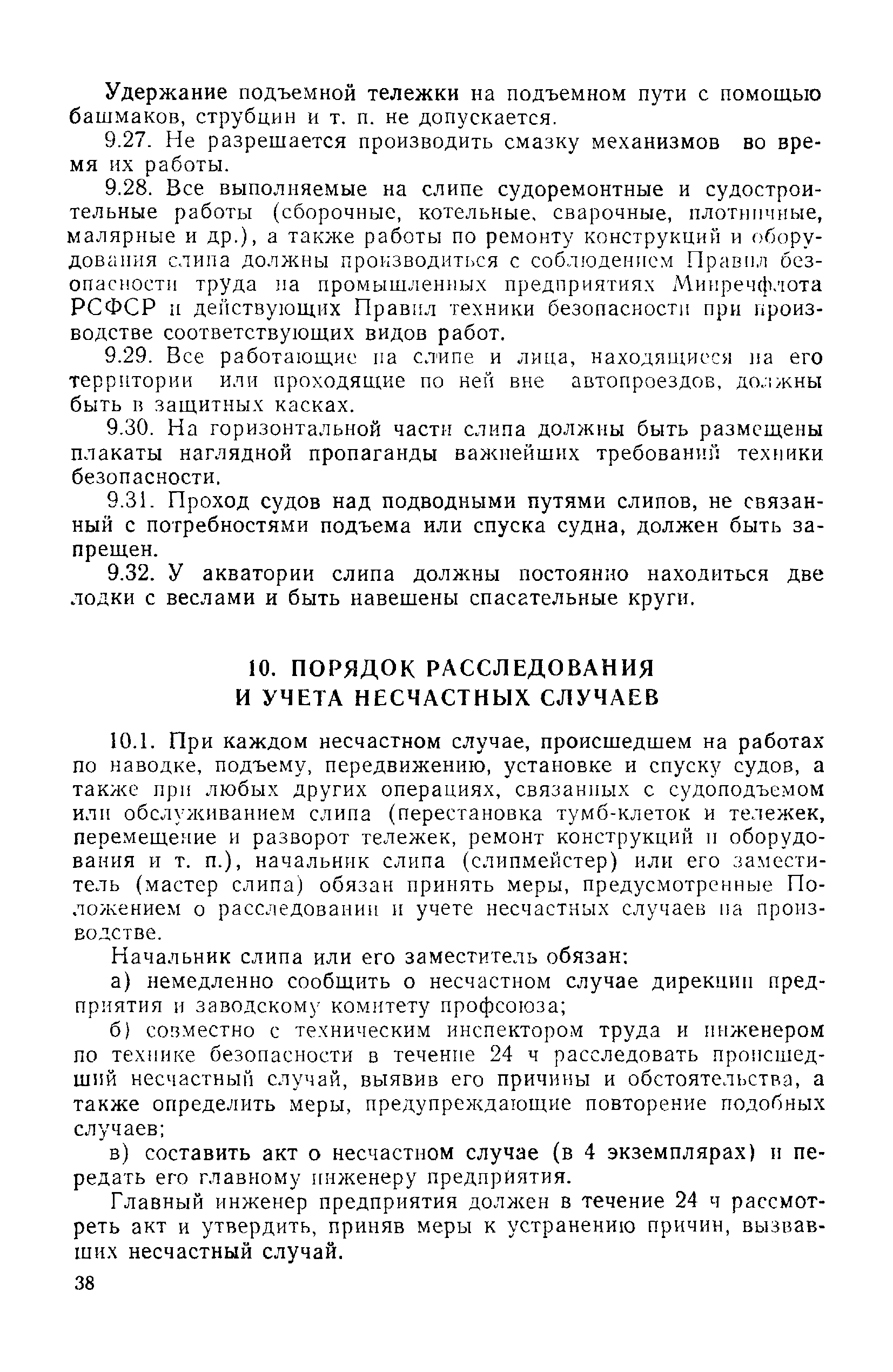 | Область применения: | Правила распространяются на гребенчатые поперечные и двухопорные продольные слипы, принадлежащие промышленным предприятиям Министерства речного флота. Правила не распространяются на поперечные слипы с двухъярусной или одноярусной подъемными тележками, передвигающимися как по подъемным, так и по откатным путям, и продольные слипы с косяковой подъемной тележкой. |