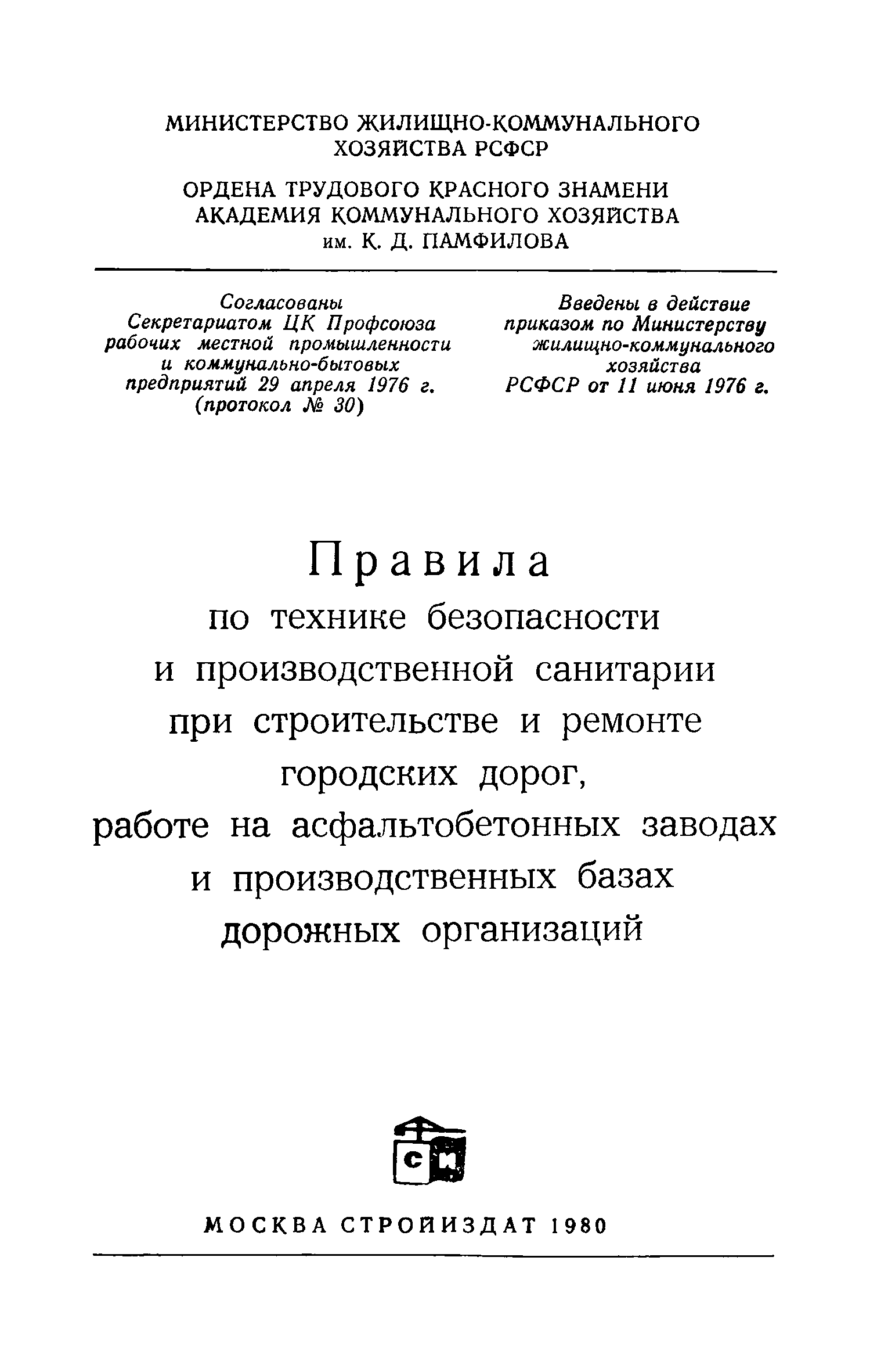 | Утверждён: | 11.06.1976 Министерство жилищно-коммунального хозяйства РСФСР |
