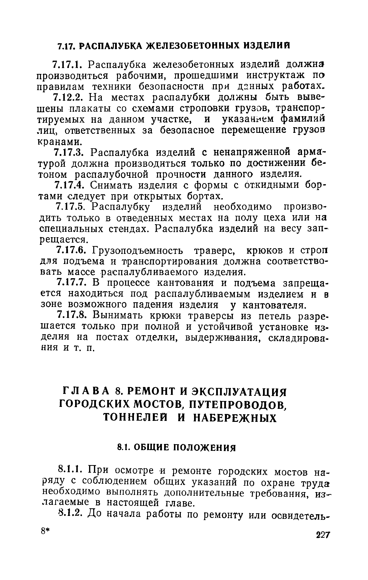 | Оглавление: | Глава 1 Общие положения Глава 2 Организация производства работ Глава 3 Погрузочно-разгрузочные работы Глава 4 Строительство и ремонт городских дорог и тротуаров Глава 5 Строительство, ремонт и эксплуатация ливневой канализации Глава 6 Эксплуатация дорожно-строительных машин и подъемных механизмов Глава 7 Заводы и производственные базы Глава 8 Ремонт и эксплуатация городских мостов, путепроводов, тоннелей и набережных Глава 9 Строительство малых и средних городских мостов и путепроводов Приложение 1 Положение о расследовании и учете несчастных случаев на производстве Приложение 2 Журнал регистрации вводного инструктажа Приложение 3 Наименьший допустимый коэффициент запаса прочности канатов Приложение 4 Дальность разлета кусков и осколков мерзлого грунта при рыхлении его экскаватором с клин-молотом Приложение 5 Высота защитных сеток для ограничения разлета кусков мерзлого грунта при разрыхлении его экскаватором с клин-молотом Приложение 6 Характеристика и классификация грузов Приложение 7 Ремонтно-строительные работы Приложение 8 Типовая сводная номенклатура мероприятий по охране труда Приложение 9 Нормы освещенности строительных площадок |