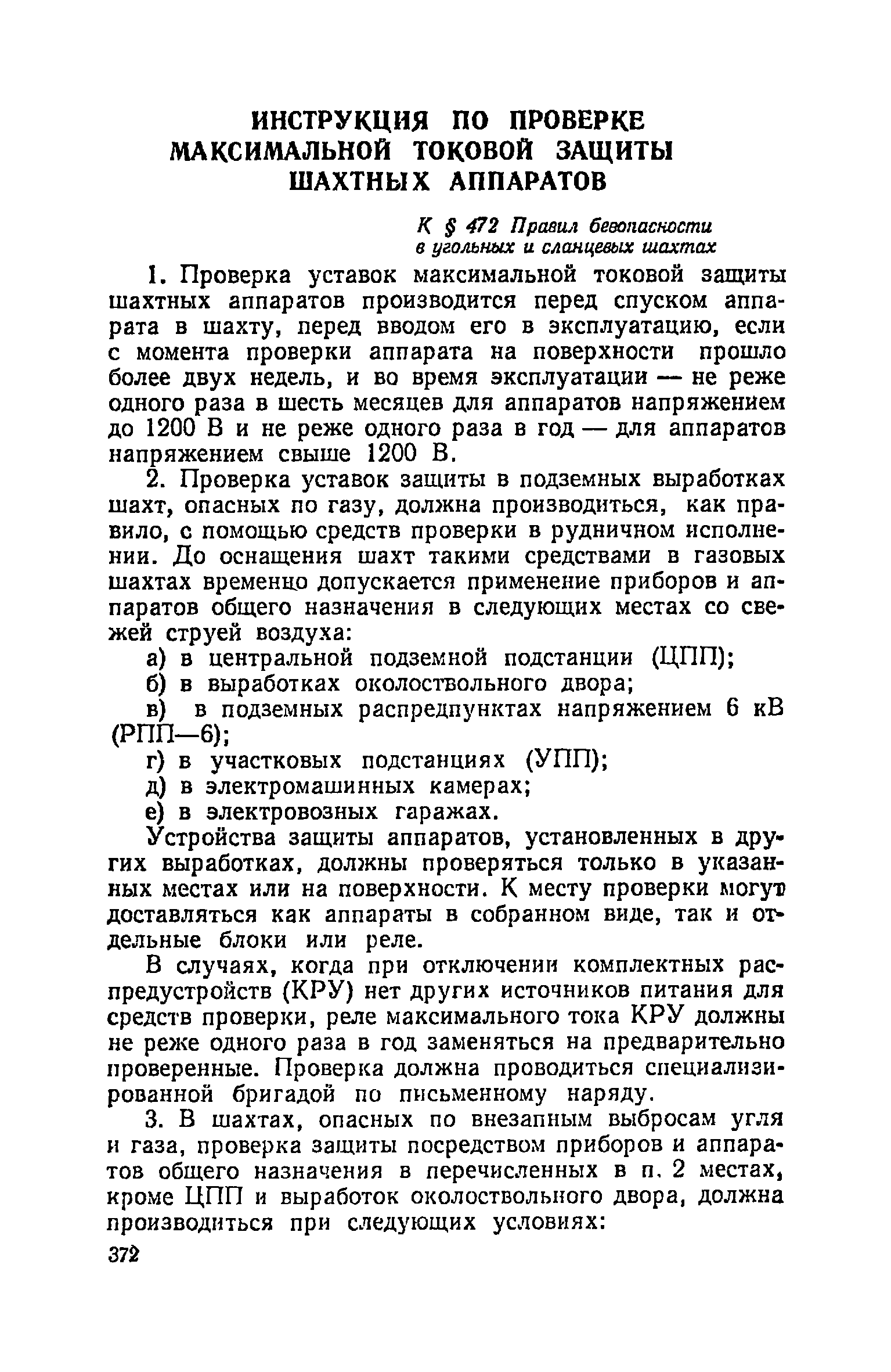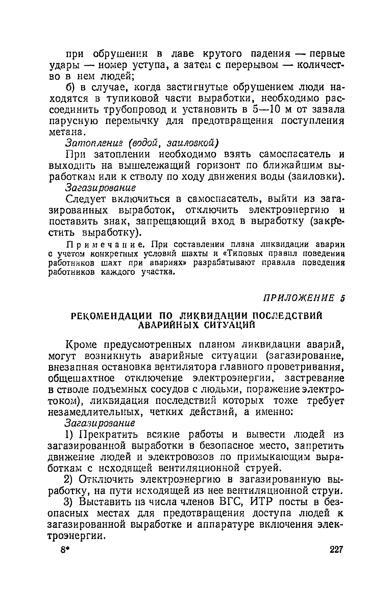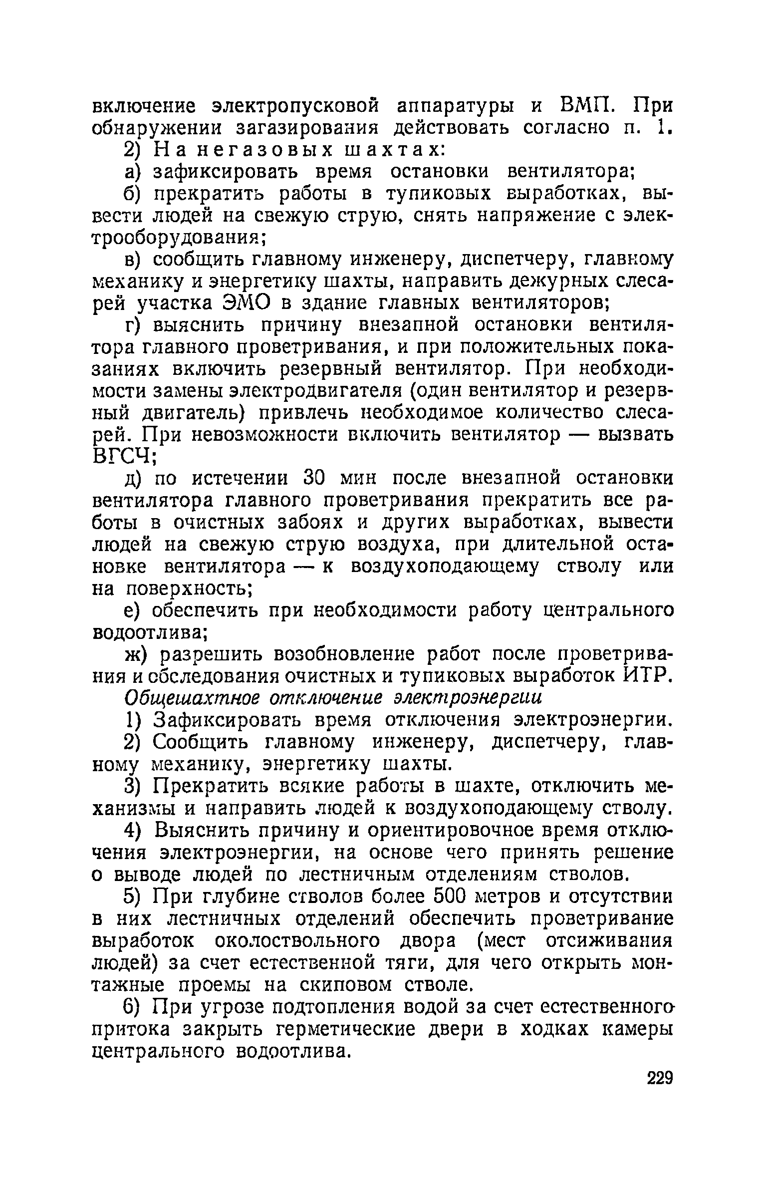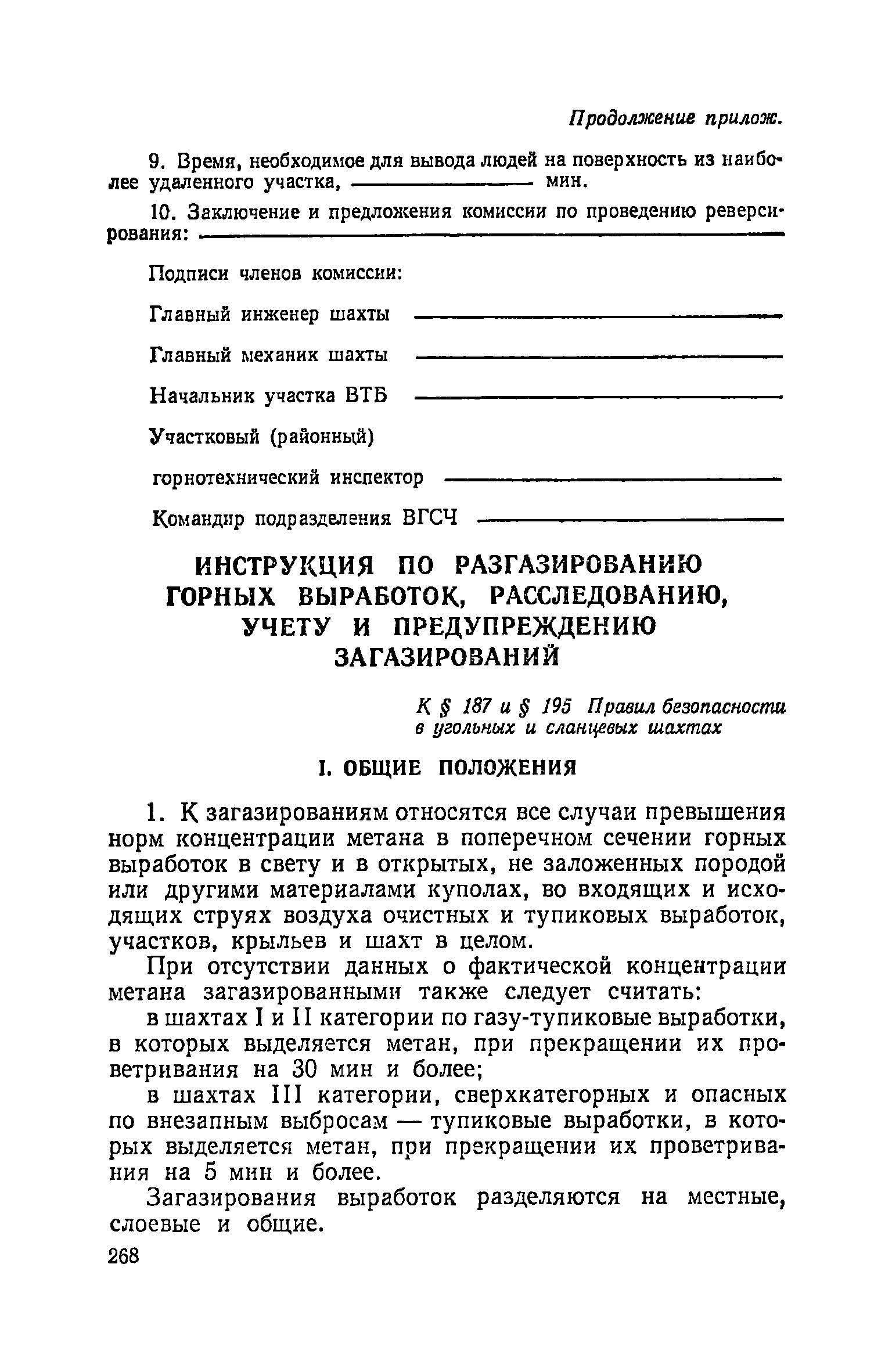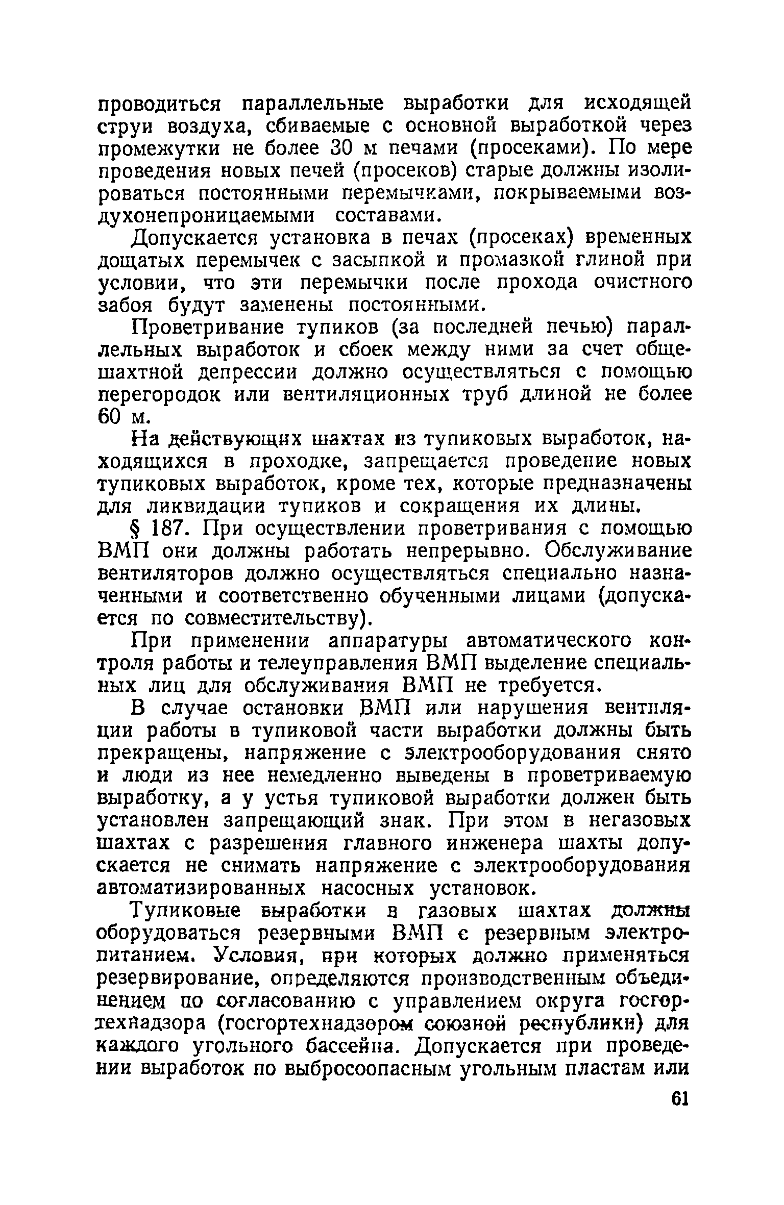 | Оглавление: | Глава I. Общие правила Глава II. Ведение горных работ Глава III. Проветривание подземных выработок и пылегазовый режим Глава IV. Рудничный транспорт и подъем Глава V. Электротехническое хозяйства Глава VI. Предупреждение и тушение пожара Глава VII. Предотвращение затоплении действующих выработок Глава VIII. Производственная санитария Глава IХ. Ответственность за нарушение Правил безопасности Инструкция по составлению паспортов выемочного участка, проведения и крепления подземных выработок Инструкция по составлению планов ликвидации аварий Инструкция по проверке состава рудничного воздуха, определению газообильности и установлению категорий шахт по метану Инструкция по безопасному применению установок кондиционирования рудничного воздуха Инструкция по реверсированию вентиляционной струн и проверке действия реверсивных устройств вентиляционных установок Инструкция по разгазированию горных выработок, расследованию, учету и предупреждению загазирований Инструкция по составлению вентиляционных платов Инструкция по замеру концентрации газов в шахтах и применению автоматических приборов контроля содержания метана Инструкция по электроснабжению и применению электрооборудования на шахтах, опасных по внезапным выбросам, разрабатывающих крутые пласты Инструкция по электроснабжению и применению электрооборудования в проветриваемых ВМП тупиковых выработках шахт, опасных по газу Инструкция по применению электрооборудования в рудничном нормальном исполнении и электрооборудования общего назначения в шахтах, опасных по газу или пыли Инструкция по определению токов короткого замыкания, выбору и проверке уставок максимальной токовой защиты в сетях напряжением до 1140 В Инструкция по устройству, осмотру и измерению сопротивления шахтных заземлений Инструкция по осмотру и ревизии рудничного взрывобезопасного электрооборудования Инструкция по безопасному производству работ в подземных электроустановках Инструкция по проверке максимальной токовой защиты шахтных аппаратов Инструкция по противопожарной защите угольных и сланцевых шахт Инструкция по ведению огневых работ в подземных выработках н надшахтных зданиях Книга инструктажа по безопасности работ Книга осмотра стволов шахт Книга осмотра вентиляционных установок и проверки реверсирования Книга учета работы вентиляционной установки Книга замеров метана и учета загазирований (повышенных концентраций углекислого газа) Вентиляционный журнал Книга осмотра подъемной установки Книга приемки и сдачи смен Книга осмотра канатов и их расхода Книга регистрации состояния электрооборудования и заземления Книга по наблюдениям за пожарными участками и проверки состояния изоляционных перемычек Книга осмотра и учета работы водоотливных установок |