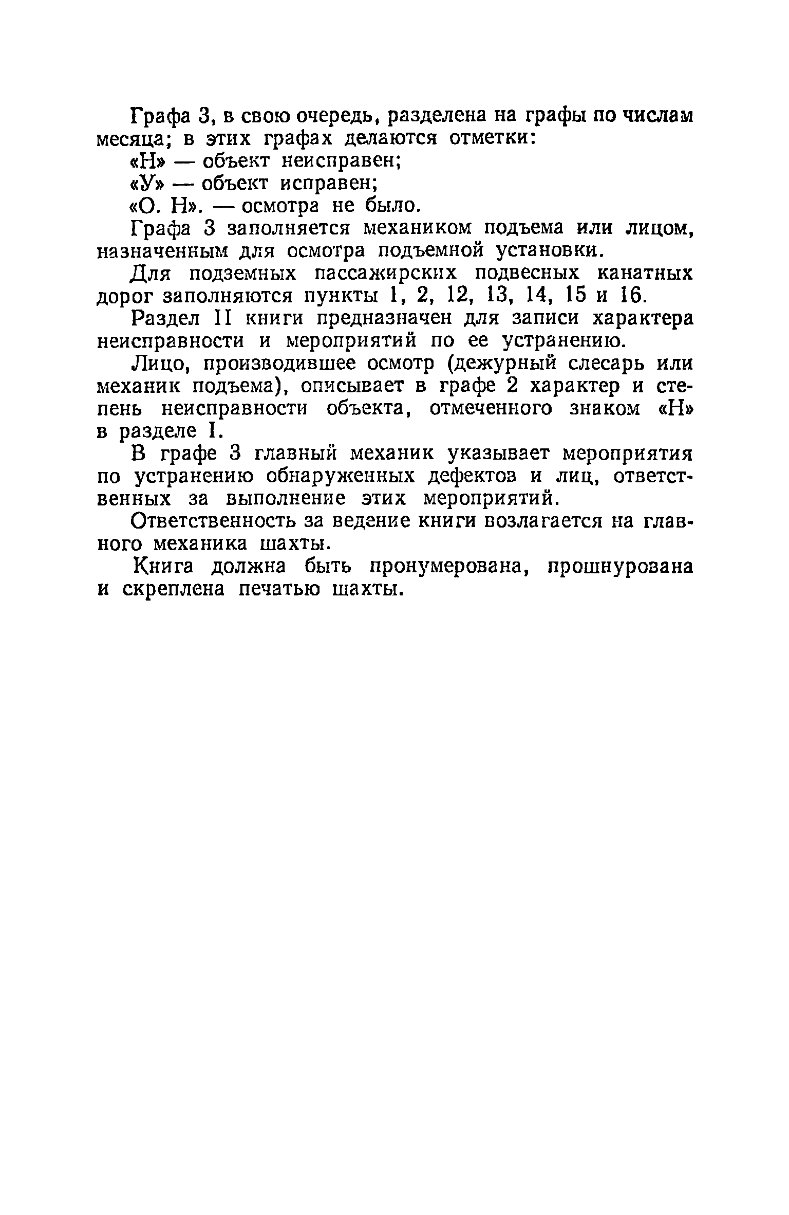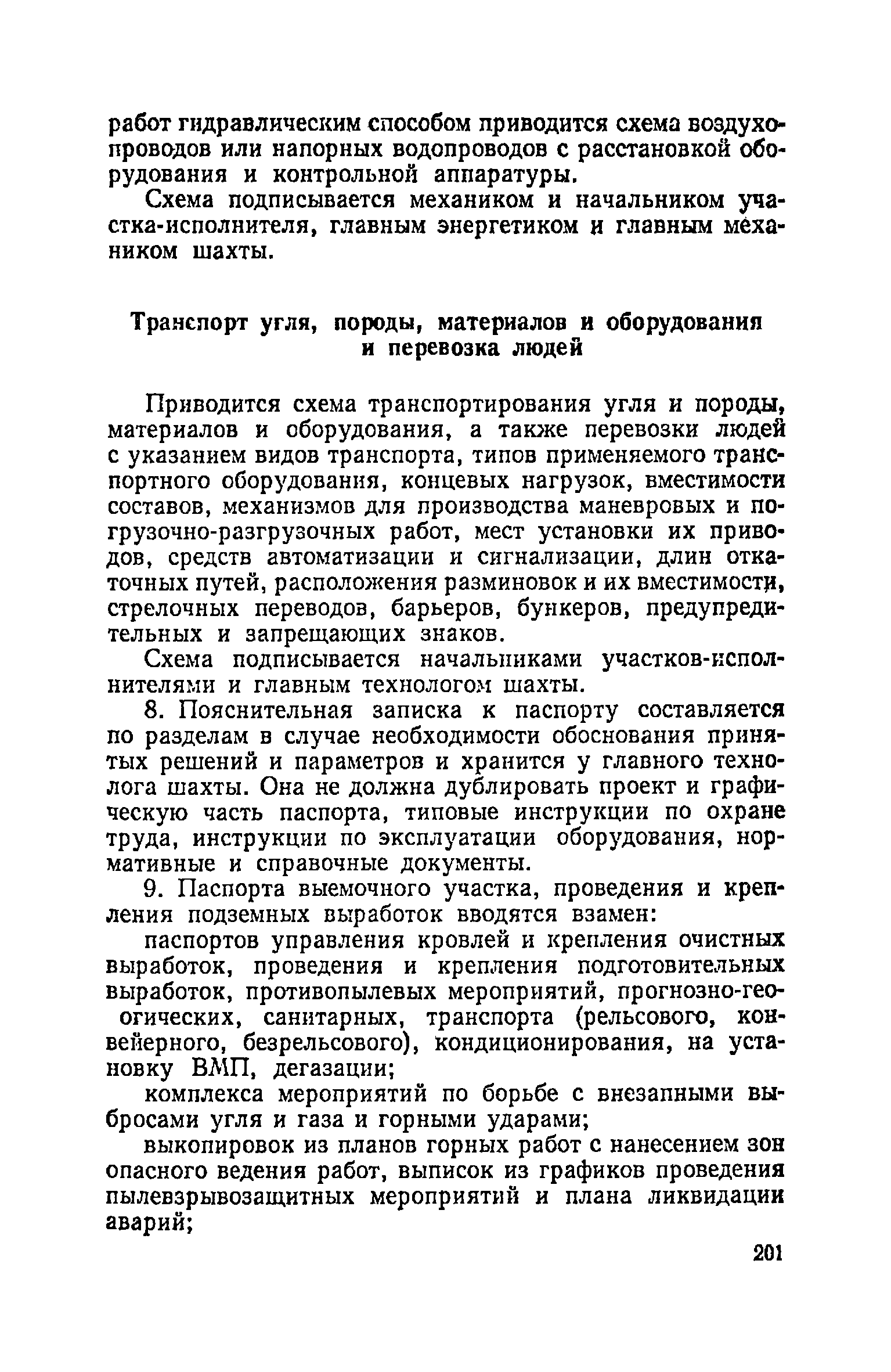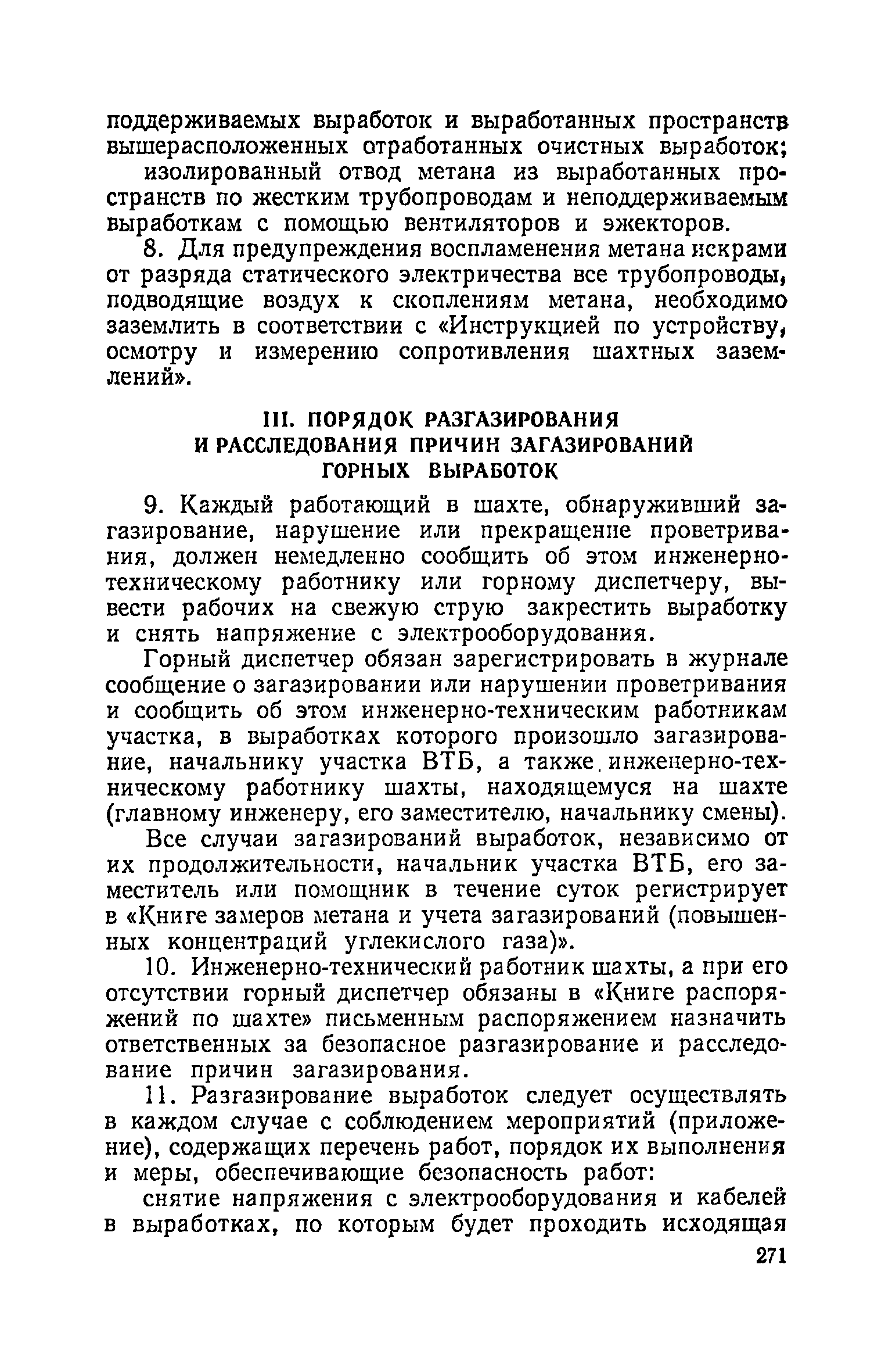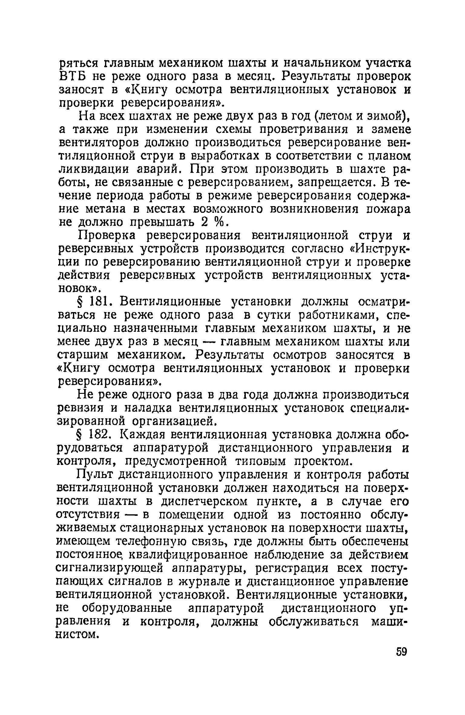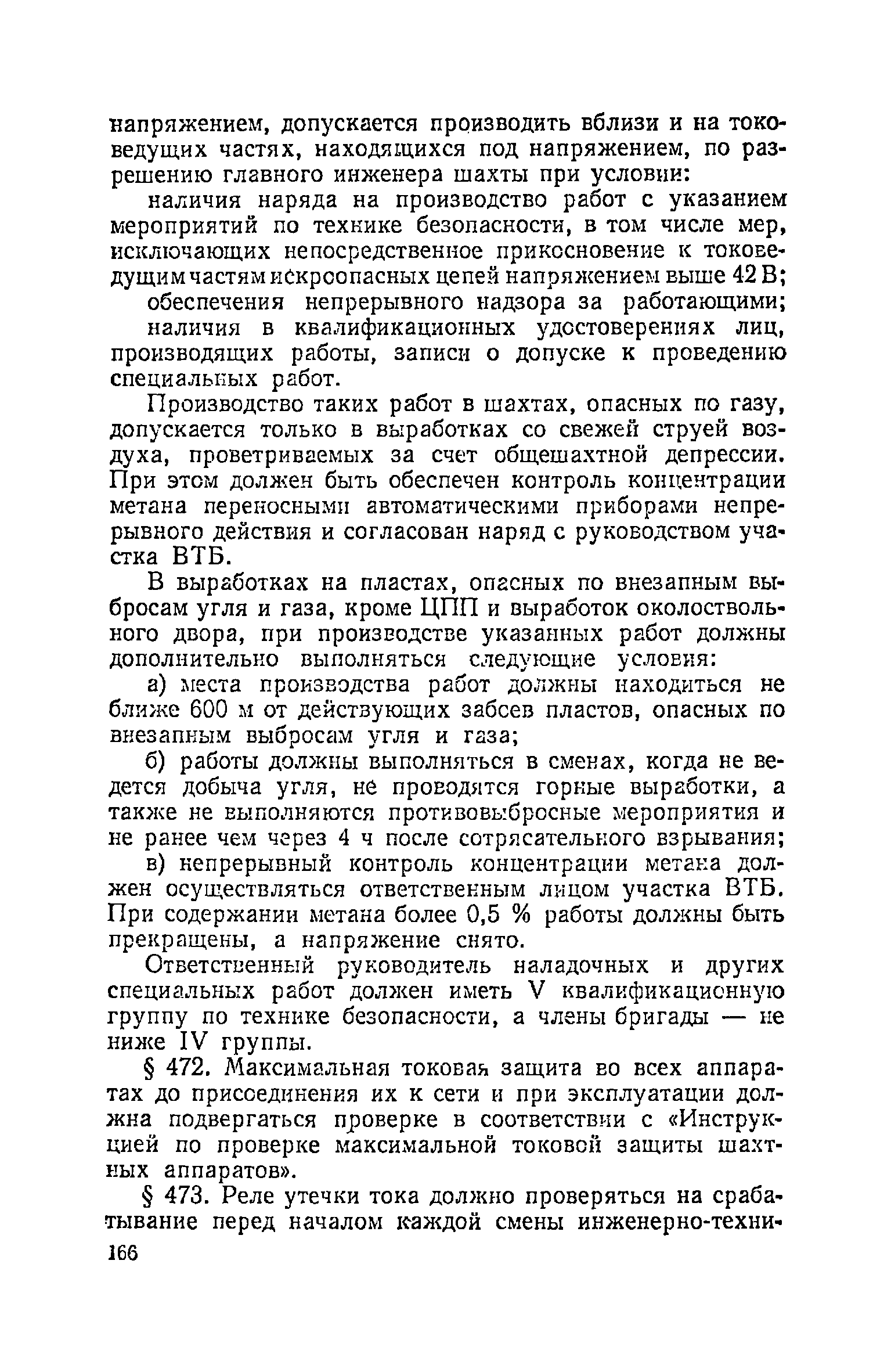 | Оглавление: | Глава I. Общие правила Глава II. Ведение горных работ Глава III. Проветривание подземных выработок и пылегазовый режим Глава IV. Рудничный транспорт и подъем Глава V. Электротехническое хозяйства Глава VI. Предупреждение и тушение пожара Глава VII. Предотвращение затоплении действующих выработок Глава VIII. Производственная санитария Глава IХ. Ответственность за нарушение Правил безопасности Инструкция по составлению паспортов выемочного участка, проведения и крепления подземных выработок Инструкция по составлению планов ликвидации аварий Инструкция по проверке состава рудничного воздуха, определению газообильности и установлению категорий шахт по метану Инструкция по безопасному применению установок кондиционирования рудничного воздуха Инструкция по реверсированию вентиляционной струн и проверке действия реверсивных устройств вентиляционных установок Инструкция по разгазированию горных выработок, расследованию, учету и предупреждению загазирований Инструкция по составлению вентиляционных платов Инструкция по замеру концентрации газов в шахтах и применению автоматических приборов контроля содержания метана Инструкция по электроснабжению и применению электрооборудования на шахтах, опасных по внезапным выбросам, разрабатывающих крутые пласты Инструкция по электроснабжению и применению электрооборудования в проветриваемых ВМП тупиковых выработках шахт, опасных по газу Инструкция по применению электрооборудования в рудничном нормальном исполнении и электрооборудования общего назначения в шахтах, опасных по газу или пыли Инструкция по определению токов короткого замыкания, выбору и проверке уставок максимальной токовой защиты в сетях напряжением до 1140 В Инструкция по устройству, осмотру и измерению сопротивления шахтных заземлений Инструкция по осмотру и ревизии рудничного взрывобезопасного электрооборудования Инструкция по безопасному производству работ в подземных электроустановках Инструкция по проверке максимальной токовой защиты шахтных аппаратов Инструкция по противопожарной защите угольных и сланцевых шахт Инструкция по ведению огневых работ в подземных выработках н надшахтных зданиях Книга инструктажа по безопасности работ Книга осмотра стволов шахт Книга осмотра вентиляционных установок и проверки реверсирования Книга учета работы вентиляционной установки Книга замеров метана и учета загазирований (повышенных концентраций углекислого газа) Вентиляционный журнал Книга осмотра подъемной установки Книга приемки и сдачи смен Книга осмотра канатов и их расхода Книга регистрации состояния электрооборудования и заземления Книга по наблюдениям за пожарными участками и проверки состояния изоляционных перемычек Книга осмотра и учета работы водоотливных установок |