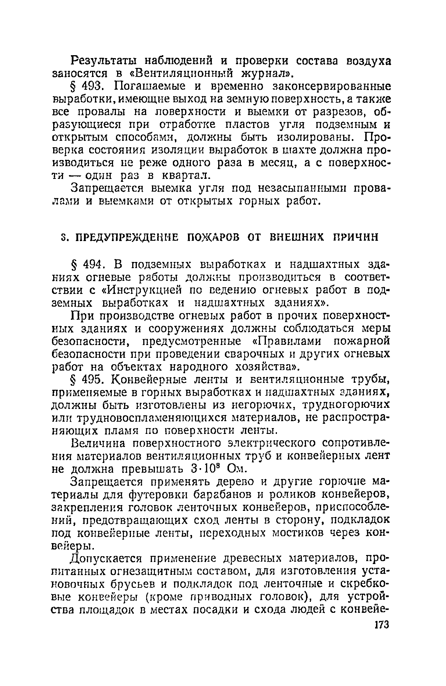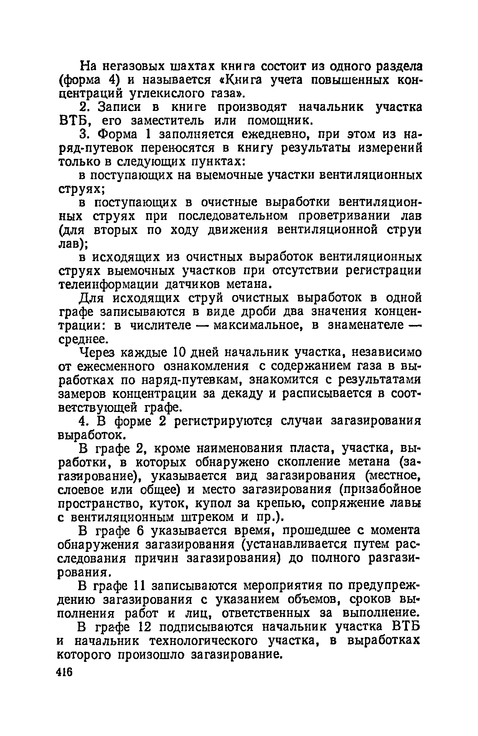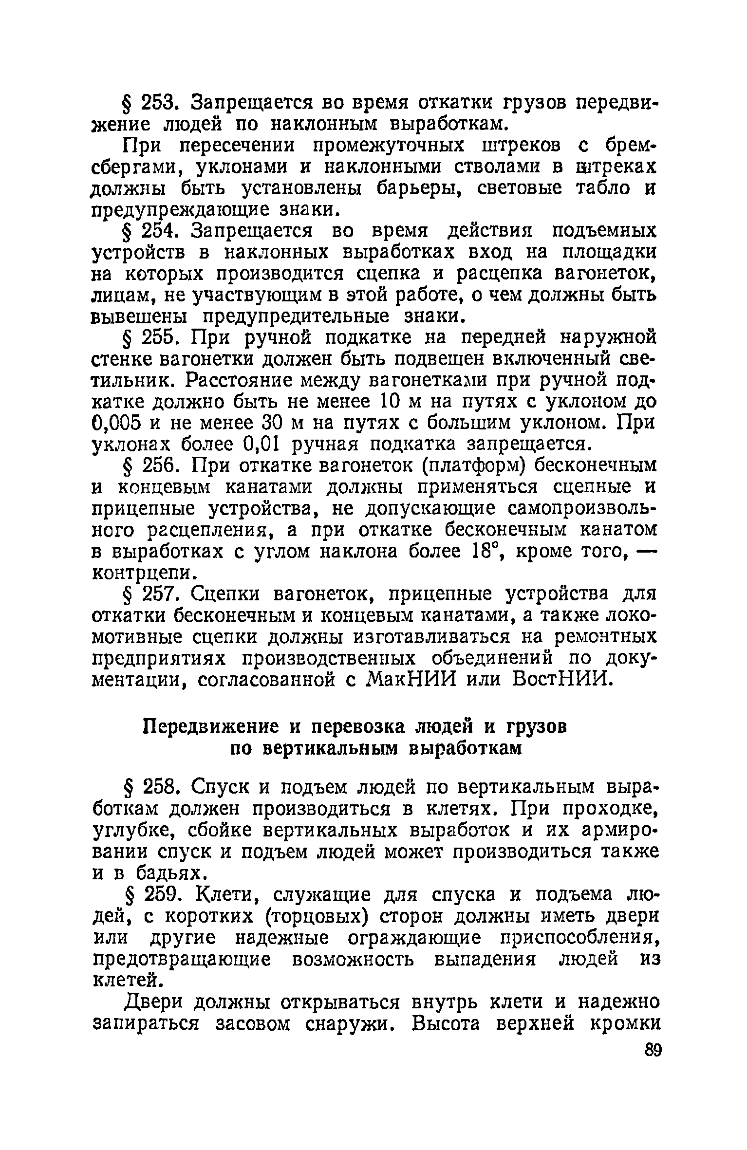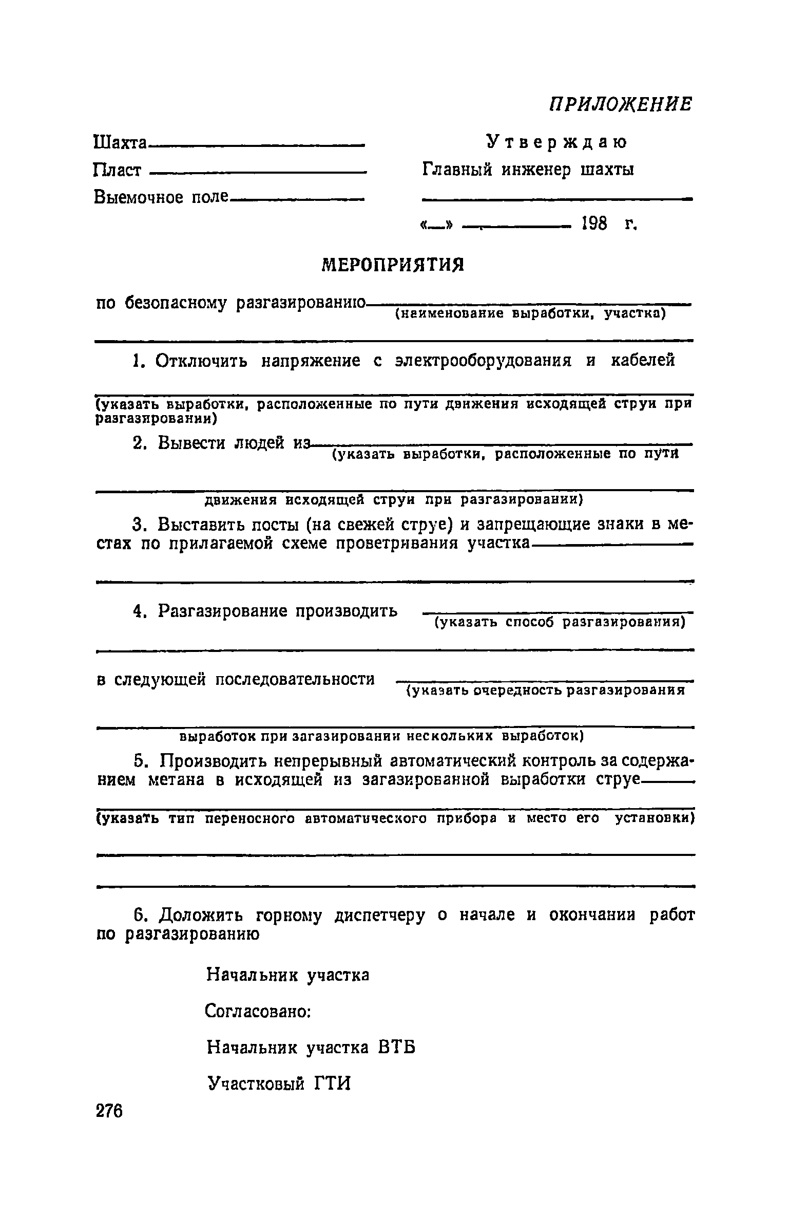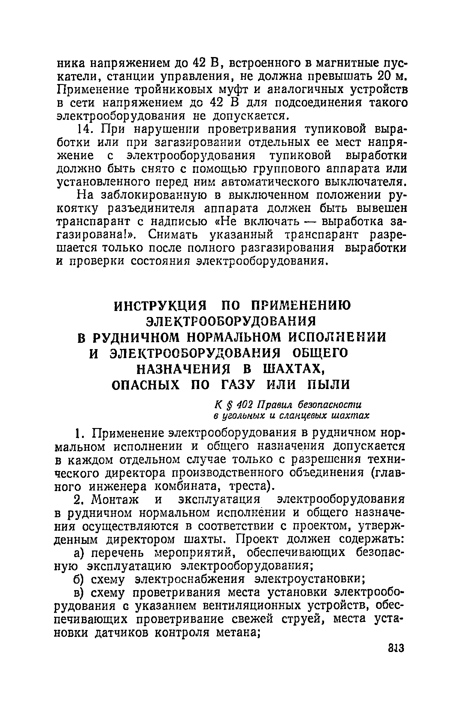 | Оглавление: | Глава I. Общие правила Глава II. Ведение горных работ Глава III. Проветривание подземных выработок и пылегазовый режим Глава IV. Рудничный транспорт и подъем Глава V. Электротехническое хозяйства Глава VI. Предупреждение и тушение пожара Глава VII. Предотвращение затоплении действующих выработок Глава VIII. Производственная санитария Глава IХ. Ответственность за нарушение Правил безопасности Инструкция по составлению паспортов выемочного участка, проведения и крепления подземных выработок Инструкция по составлению планов ликвидации аварий Инструкция по проверке состава рудничного воздуха, определению газообильности и установлению категорий шахт по метану Инструкция по безопасному применению установок кондиционирования рудничного воздуха Инструкция по реверсированию вентиляционной струн и проверке действия реверсивных устройств вентиляционных установок Инструкция по разгазированию горных выработок, расследованию, учету и предупреждению загазирований Инструкция по составлению вентиляционных платов Инструкция по замеру концентрации газов в шахтах и применению автоматических приборов контроля содержания метана Инструкция по электроснабжению и применению электрооборудования на шахтах, опасных по внезапным выбросам, разрабатывающих крутые пласты Инструкция по электроснабжению и применению электрооборудования в проветриваемых ВМП тупиковых выработках шахт, опасных по газу Инструкция по применению электрооборудования в рудничном нормальном исполнении и электрооборудования общего назначения в шахтах, опасных по газу или пыли Инструкция по определению токов короткого замыкания, выбору и проверке уставок максимальной токовой защиты в сетях напряжением до 1140 В Инструкция по устройству, осмотру и измерению сопротивления шахтных заземлений Инструкция по осмотру и ревизии рудничного взрывобезопасного электрооборудования Инструкция по безопасному производству работ в подземных электроустановках Инструкция по проверке максимальной токовой защиты шахтных аппаратов Инструкция по противопожарной защите угольных и сланцевых шахт Инструкция по ведению огневых работ в подземных выработках н надшахтных зданиях Книга инструктажа по безопасности работ Книга осмотра стволов шахт Книга осмотра вентиляционных установок и проверки реверсирования Книга учета работы вентиляционной установки Книга замеров метана и учета загазирований (повышенных концентраций углекислого газа) Вентиляционный журнал Книга осмотра подъемной установки Книга приемки и сдачи смен Книга осмотра канатов и их расхода Книга регистрации состояния электрооборудования и заземления Книга по наблюдениям за пожарными участками и проверки состояния изоляционных перемычек Книга осмотра и учета работы водоотливных установок |
