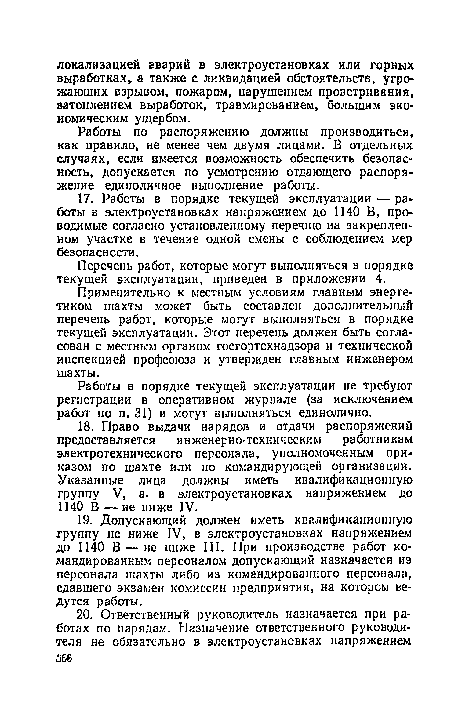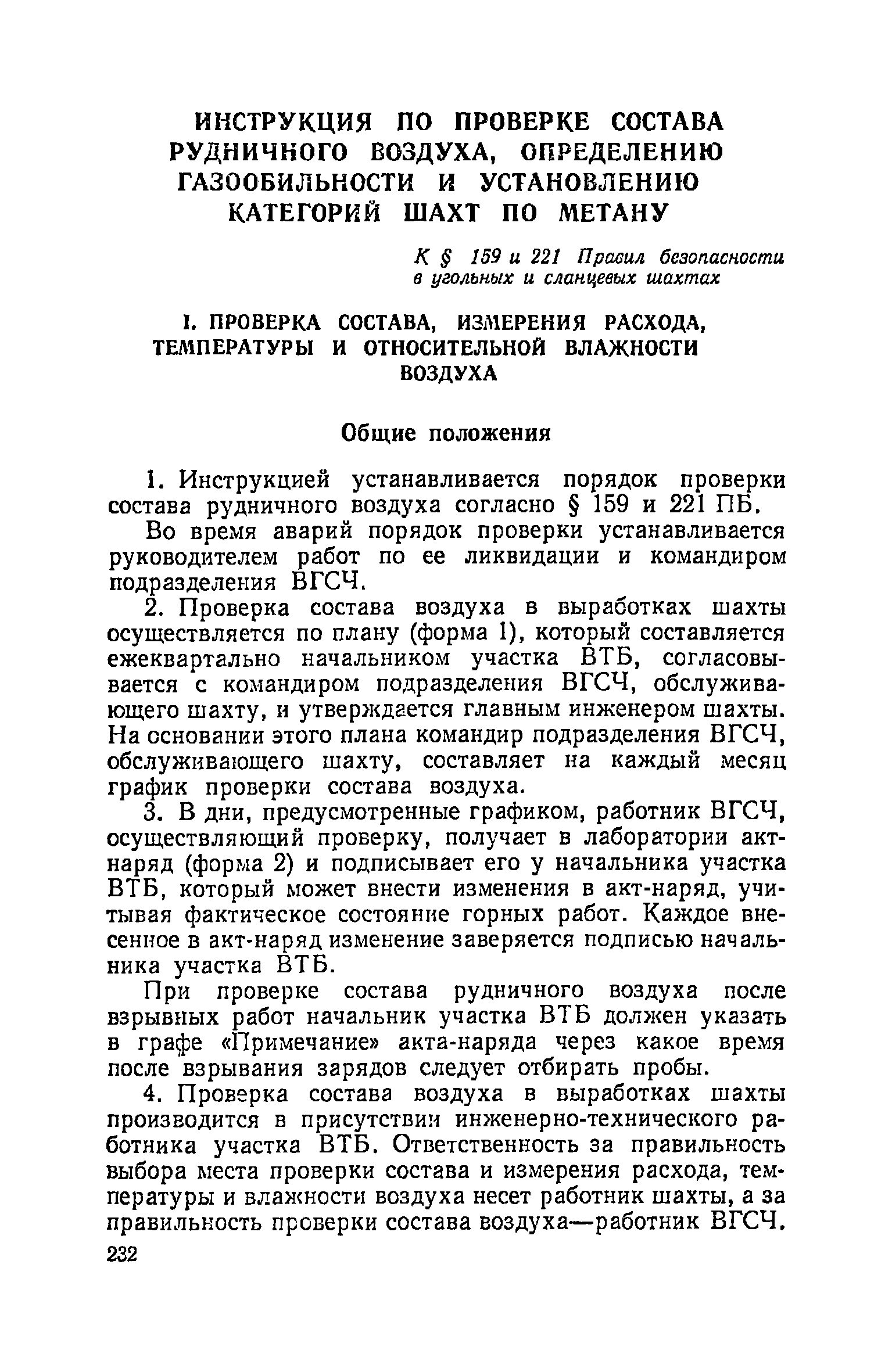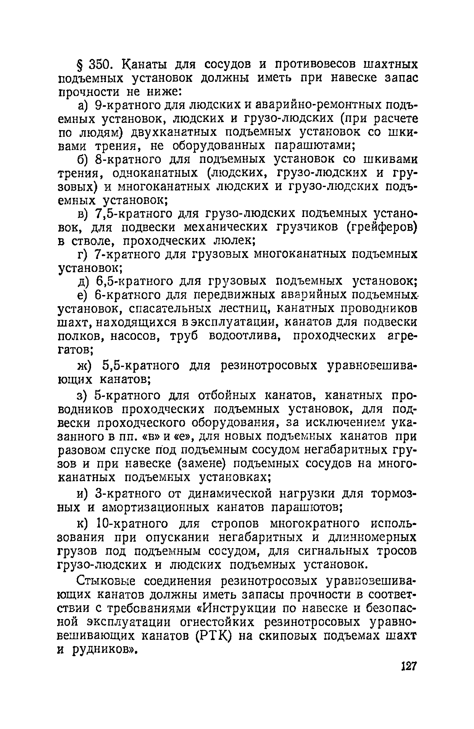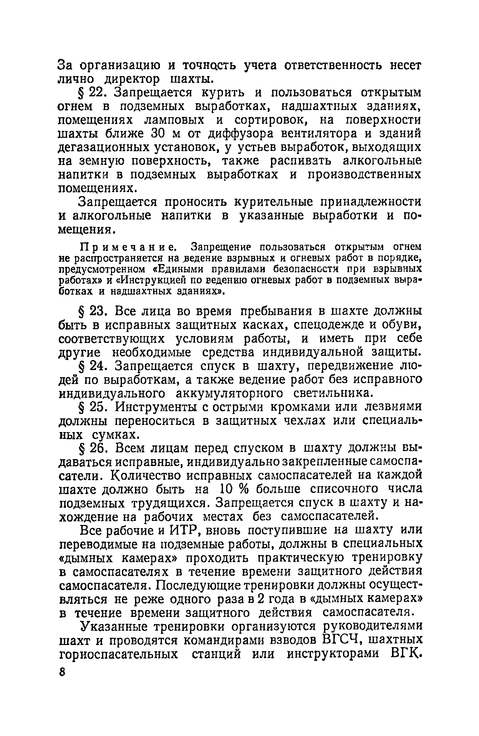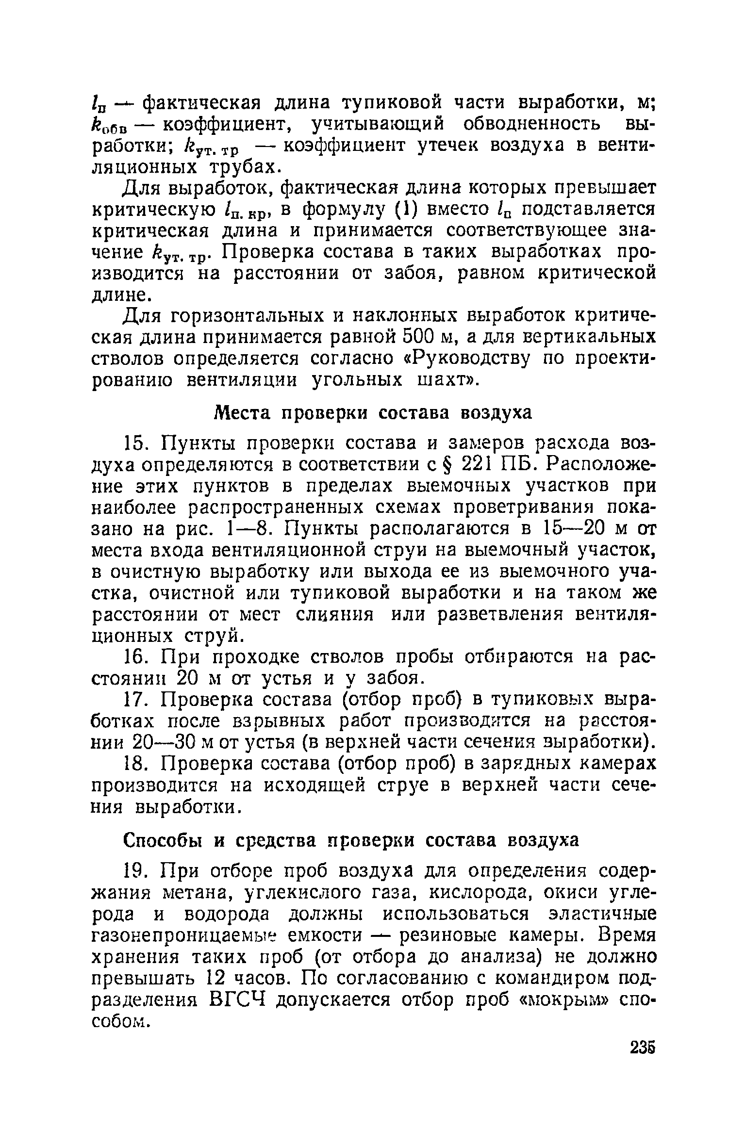 | Оглавление: | Глава I. Общие правила Глава II. Ведение горных работ Глава III. Проветривание подземных выработок и пылегазовый режим Глава IV. Рудничный транспорт и подъем Глава V. Электротехническое хозяйства Глава VI. Предупреждение и тушение пожара Глава VII. Предотвращение затоплении действующих выработок Глава VIII. Производственная санитария Глава IХ. Ответственность за нарушение Правил безопасности Инструкция по составлению паспортов выемочного участка, проведения и крепления подземных выработок Инструкция по составлению планов ликвидации аварий Инструкция по проверке состава рудничного воздуха, определению газообильности и установлению категорий шахт по метану Инструкция по безопасному применению установок кондиционирования рудничного воздуха Инструкция по реверсированию вентиляционной струн и проверке действия реверсивных устройств вентиляционных установок Инструкция по разгазированию горных выработок, расследованию, учету и предупреждению загазирований Инструкция по составлению вентиляционных платов Инструкция по замеру концентрации газов в шахтах и применению автоматических приборов контроля содержания метана Инструкция по электроснабжению и применению электрооборудования на шахтах, опасных по внезапным выбросам, разрабатывающих крутые пласты Инструкция по электроснабжению и применению электрооборудования в проветриваемых ВМП тупиковых выработках шахт, опасных по газу Инструкция по применению электрооборудования в рудничном нормальном исполнении и электрооборудования общего назначения в шахтах, опасных по газу или пыли Инструкция по определению токов короткого замыкания, выбору и проверке уставок максимальной токовой защиты в сетях напряжением до 1140 В Инструкция по устройству, осмотру и измерению сопротивления шахтных заземлений Инструкция по осмотру и ревизии рудничного взрывобезопасного электрооборудования Инструкция по безопасному производству работ в подземных электроустановках Инструкция по проверке максимальной токовой защиты шахтных аппаратов Инструкция по противопожарной защите угольных и сланцевых шахт Инструкция по ведению огневых работ в подземных выработках н надшахтных зданиях Книга инструктажа по безопасности работ Книга осмотра стволов шахт Книга осмотра вентиляционных установок и проверки реверсирования Книга учета работы вентиляционной установки Книга замеров метана и учета загазирований (повышенных концентраций углекислого газа) Вентиляционный журнал Книга осмотра подъемной установки Книга приемки и сдачи смен Книга осмотра канатов и их расхода Книга регистрации состояния электрооборудования и заземления Книга по наблюдениям за пожарными участками и проверки состояния изоляционных перемычек Книга осмотра и учета работы водоотливных установок |