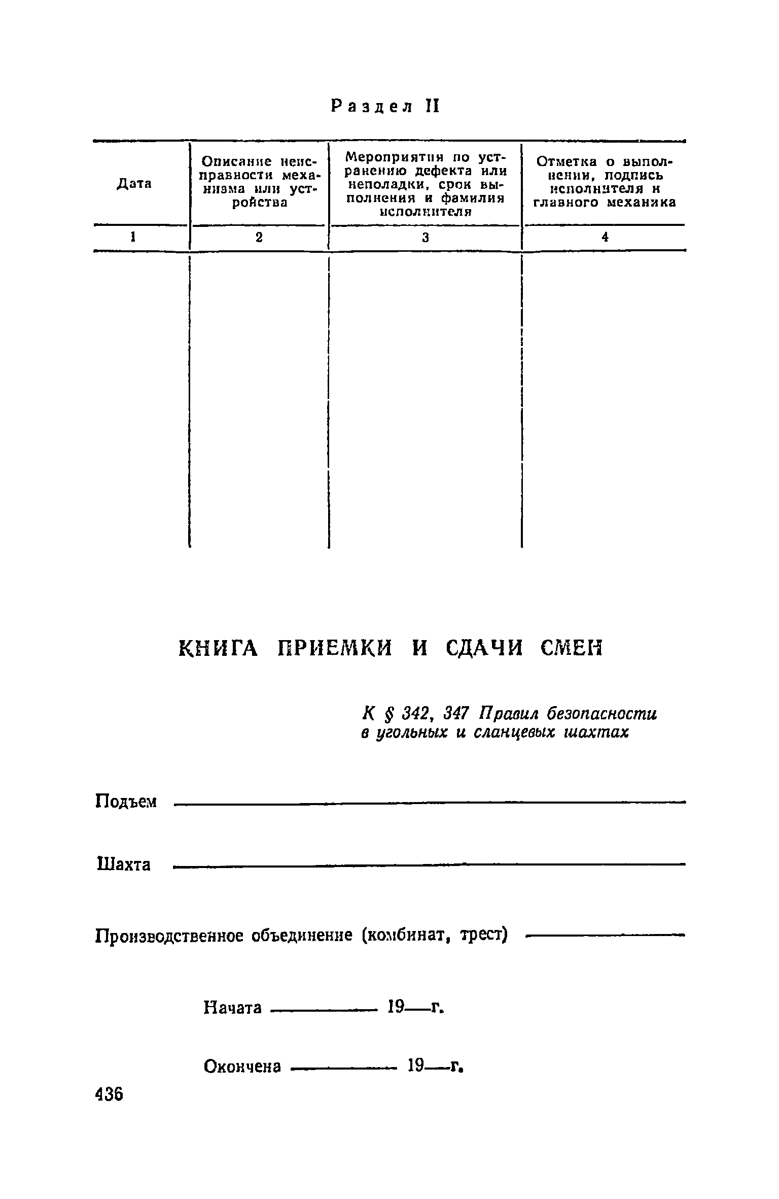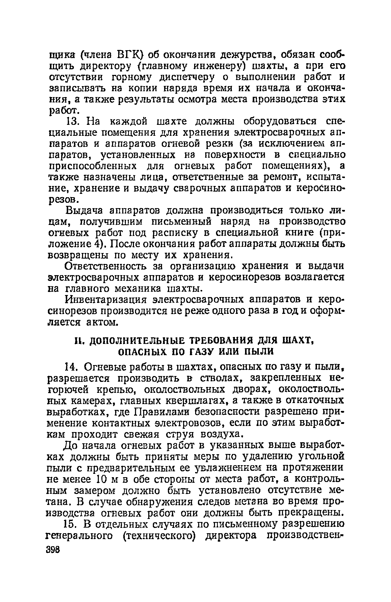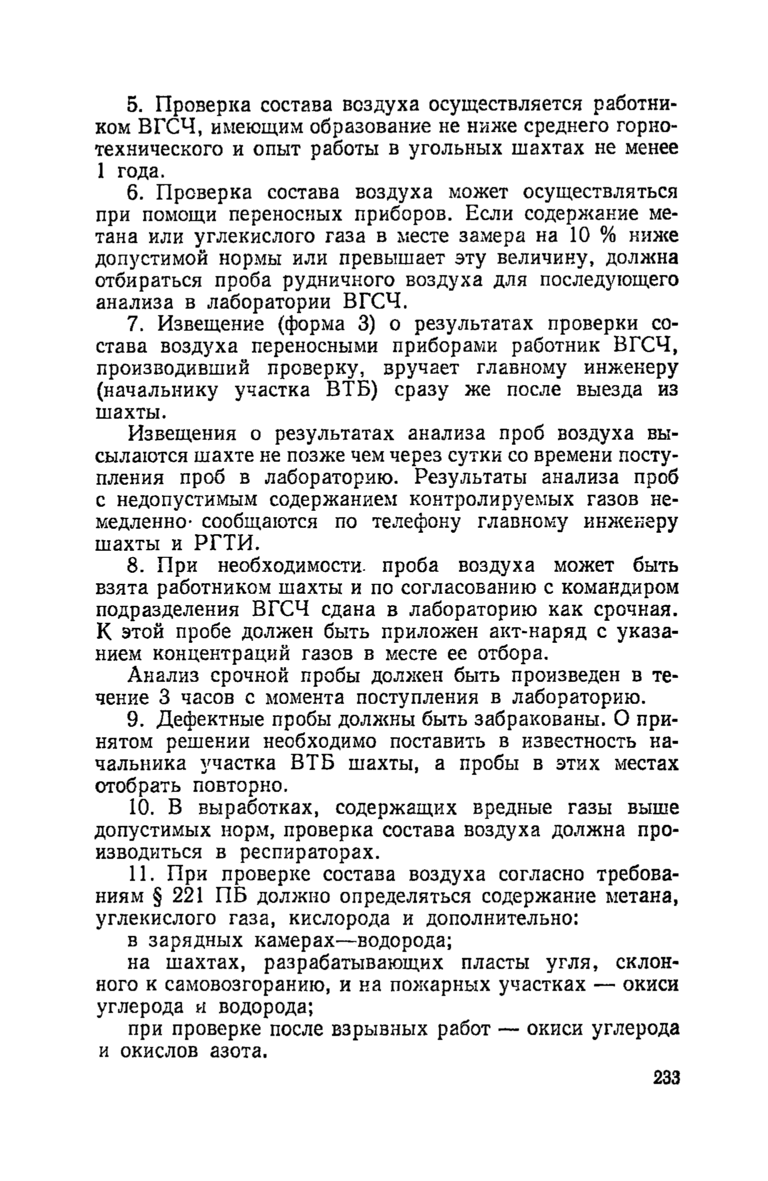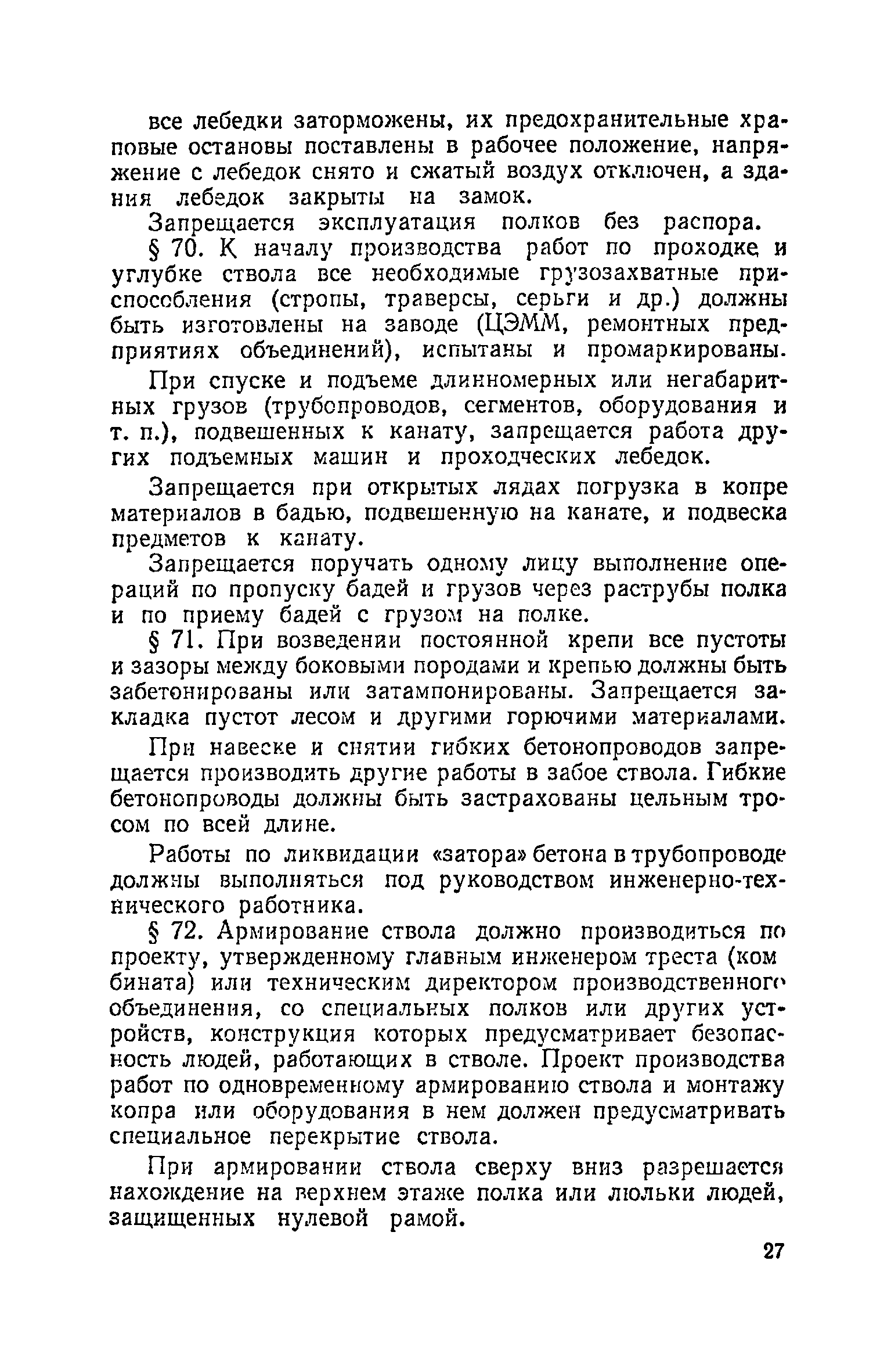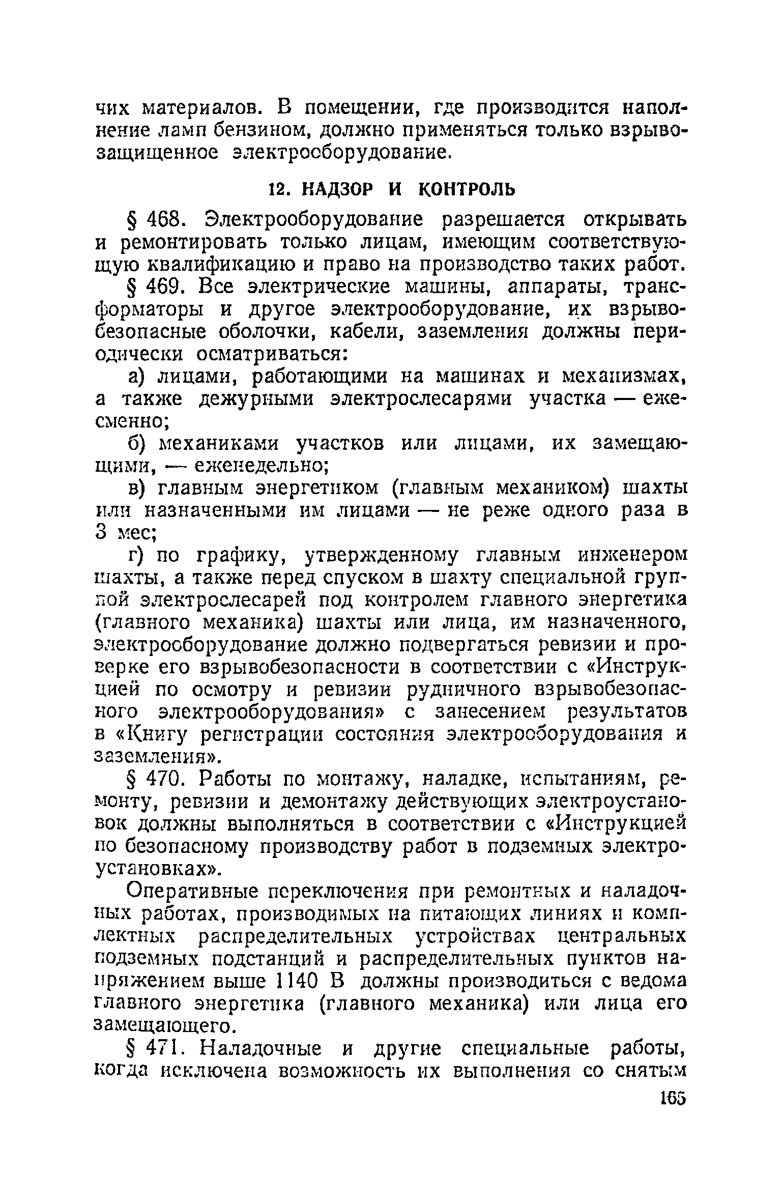 | Оглавление: | Глава I. Общие правила Глава II. Ведение горных работ Глава III. Проветривание подземных выработок и пылегазовый режим Глава IV. Рудничный транспорт и подъем Глава V. Электротехническое хозяйства Глава VI. Предупреждение и тушение пожара Глава VII. Предотвращение затоплении действующих выработок Глава VIII. Производственная санитария Глава IХ. Ответственность за нарушение Правил безопасности Инструкция по составлению паспортов выемочного участка, проведения и крепления подземных выработок Инструкция по составлению планов ликвидации аварий Инструкция по проверке состава рудничного воздуха, определению газообильности и установлению категорий шахт по метану Инструкция по безопасному применению установок кондиционирования рудничного воздуха Инструкция по реверсированию вентиляционной струн и проверке действия реверсивных устройств вентиляционных установок Инструкция по разгазированию горных выработок, расследованию, учету и предупреждению загазирований Инструкция по составлению вентиляционных платов Инструкция по замеру концентрации газов в шахтах и применению автоматических приборов контроля содержания метана Инструкция по электроснабжению и применению электрооборудования на шахтах, опасных по внезапным выбросам, разрабатывающих крутые пласты Инструкция по электроснабжению и применению электрооборудования в проветриваемых ВМП тупиковых выработках шахт, опасных по газу Инструкция по применению электрооборудования в рудничном нормальном исполнении и электрооборудования общего назначения в шахтах, опасных по газу или пыли Инструкция по определению токов короткого замыкания, выбору и проверке уставок максимальной токовой защиты в сетях напряжением до 1140 В Инструкция по устройству, осмотру и измерению сопротивления шахтных заземлений Инструкция по осмотру и ревизии рудничного взрывобезопасного электрооборудования Инструкция по безопасному производству работ в подземных электроустановках Инструкция по проверке максимальной токовой защиты шахтных аппаратов Инструкция по противопожарной защите угольных и сланцевых шахт Инструкция по ведению огневых работ в подземных выработках н надшахтных зданиях Книга инструктажа по безопасности работ Книга осмотра стволов шахт Книга осмотра вентиляционных установок и проверки реверсирования Книга учета работы вентиляционной установки Книга замеров метана и учета загазирований (повышенных концентраций углекислого газа) Вентиляционный журнал Книга осмотра подъемной установки Книга приемки и сдачи смен Книга осмотра канатов и их расхода Книга регистрации состояния электрооборудования и заземления Книга по наблюдениям за пожарными участками и проверки состояния изоляционных перемычек Книга осмотра и учета работы водоотливных установок |