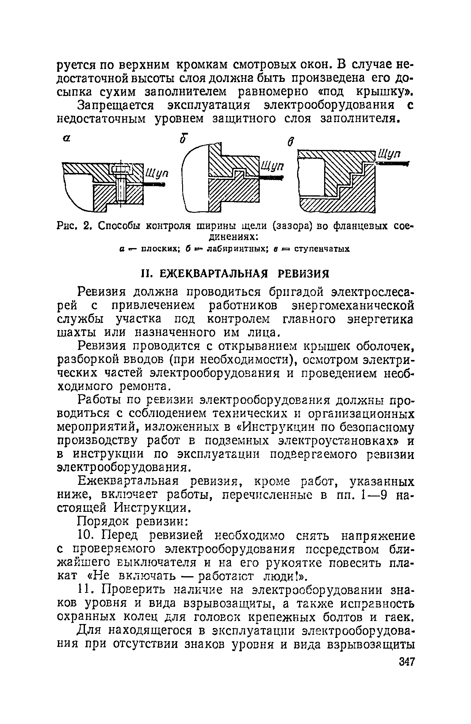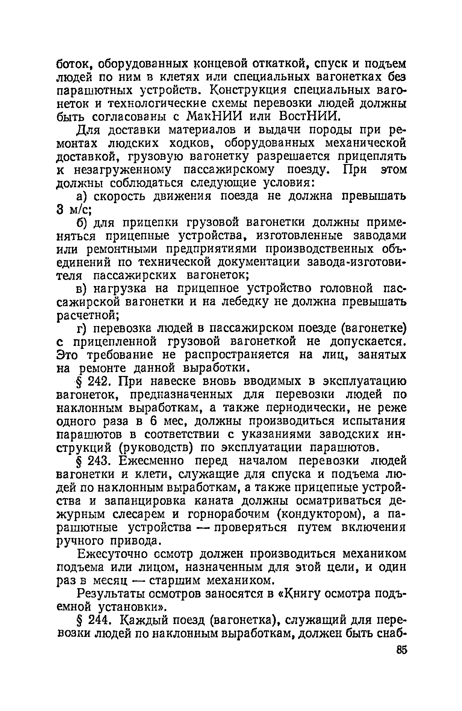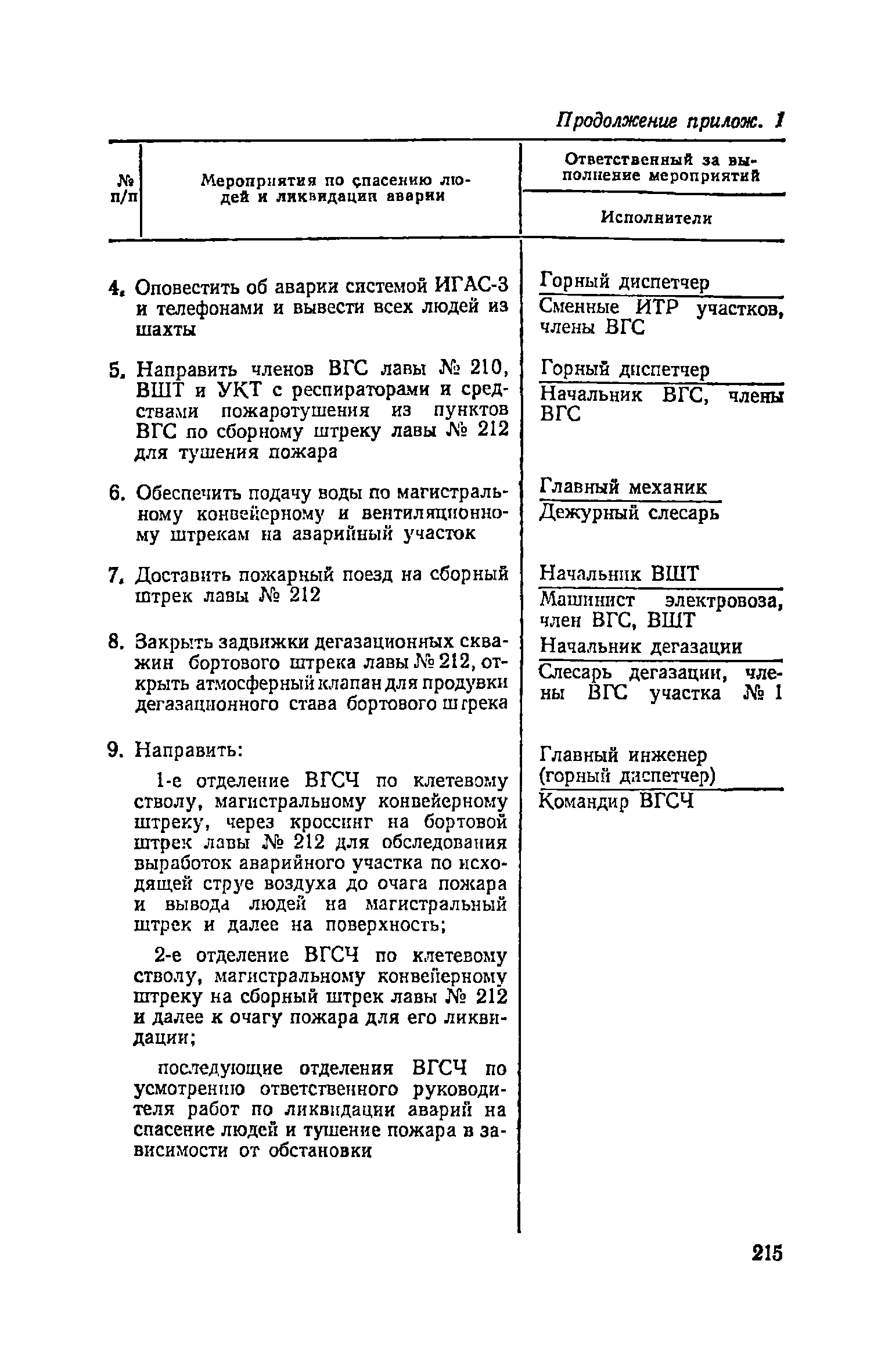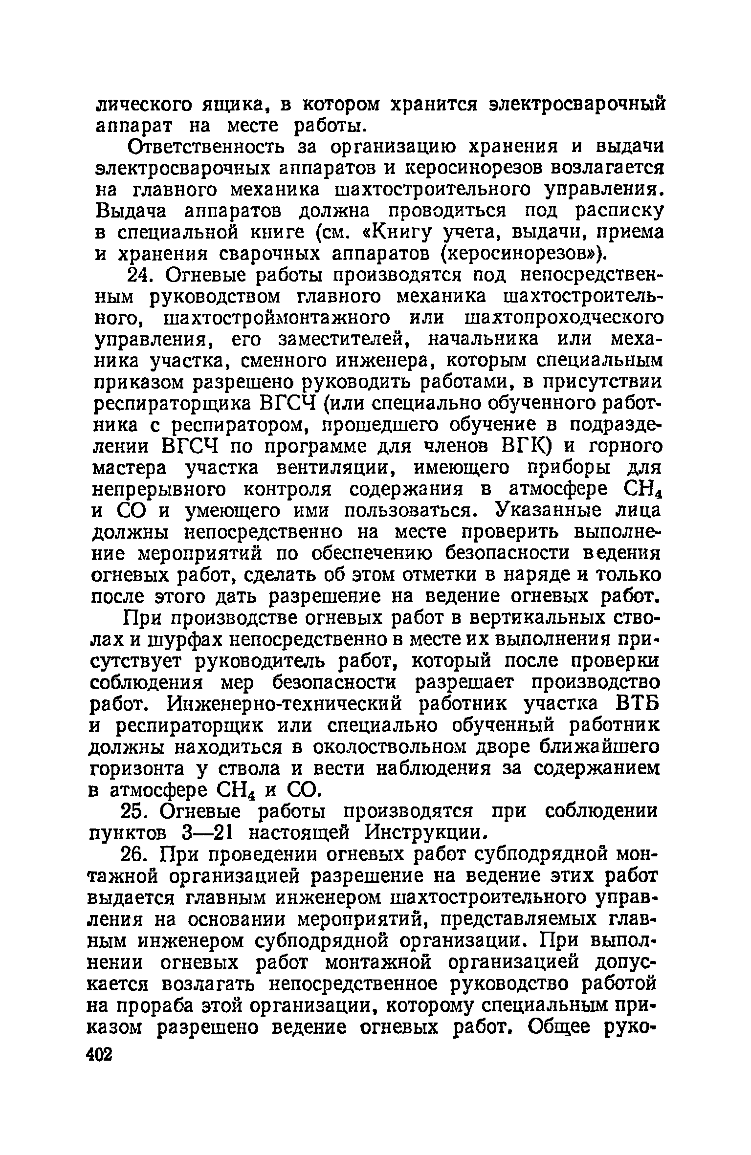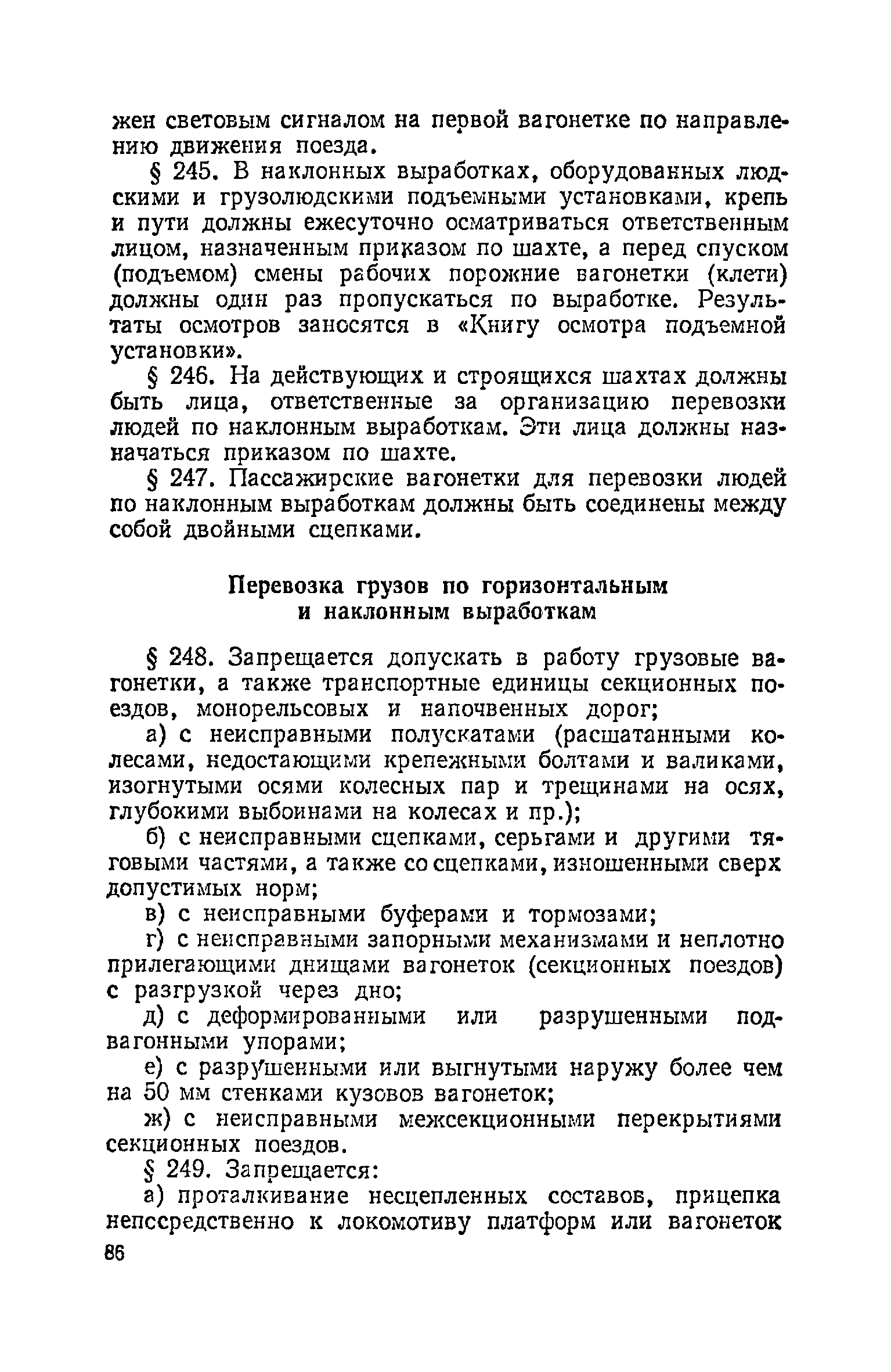 | Оглавление: | Глава I. Общие правила Глава II. Ведение горных работ Глава III. Проветривание подземных выработок и пылегазовый режим Глава IV. Рудничный транспорт и подъем Глава V. Электротехническое хозяйства Глава VI. Предупреждение и тушение пожара Глава VII. Предотвращение затоплении действующих выработок Глава VIII. Производственная санитария Глава IХ. Ответственность за нарушение Правил безопасности Инструкция по составлению паспортов выемочного участка, проведения и крепления подземных выработок Инструкция по составлению планов ликвидации аварий Инструкция по проверке состава рудничного воздуха, определению газообильности и установлению категорий шахт по метану Инструкция по безопасному применению установок кондиционирования рудничного воздуха Инструкция по реверсированию вентиляционной струн и проверке действия реверсивных устройств вентиляционных установок Инструкция по разгазированию горных выработок, расследованию, учету и предупреждению загазирований Инструкция по составлению вентиляционных платов Инструкция по замеру концентрации газов в шахтах и применению автоматических приборов контроля содержания метана Инструкция по электроснабжению и применению электрооборудования на шахтах, опасных по внезапным выбросам, разрабатывающих крутые пласты Инструкция по электроснабжению и применению электрооборудования в проветриваемых ВМП тупиковых выработках шахт, опасных по газу Инструкция по применению электрооборудования в рудничном нормальном исполнении и электрооборудования общего назначения в шахтах, опасных по газу или пыли Инструкция по определению токов короткого замыкания, выбору и проверке уставок максимальной токовой защиты в сетях напряжением до 1140 В Инструкция по устройству, осмотру и измерению сопротивления шахтных заземлений Инструкция по осмотру и ревизии рудничного взрывобезопасного электрооборудования Инструкция по безопасному производству работ в подземных электроустановках Инструкция по проверке максимальной токовой защиты шахтных аппаратов Инструкция по противопожарной защите угольных и сланцевых шахт Инструкция по ведению огневых работ в подземных выработках н надшахтных зданиях Книга инструктажа по безопасности работ Книга осмотра стволов шахт Книга осмотра вентиляционных установок и проверки реверсирования Книга учета работы вентиляционной установки Книга замеров метана и учета загазирований (повышенных концентраций углекислого газа) Вентиляционный журнал Книга осмотра подъемной установки Книга приемки и сдачи смен Книга осмотра канатов и их расхода Книга регистрации состояния электрооборудования и заземления Книга по наблюдениям за пожарными участками и проверки состояния изоляционных перемычек Книга осмотра и учета работы водоотливных установок |