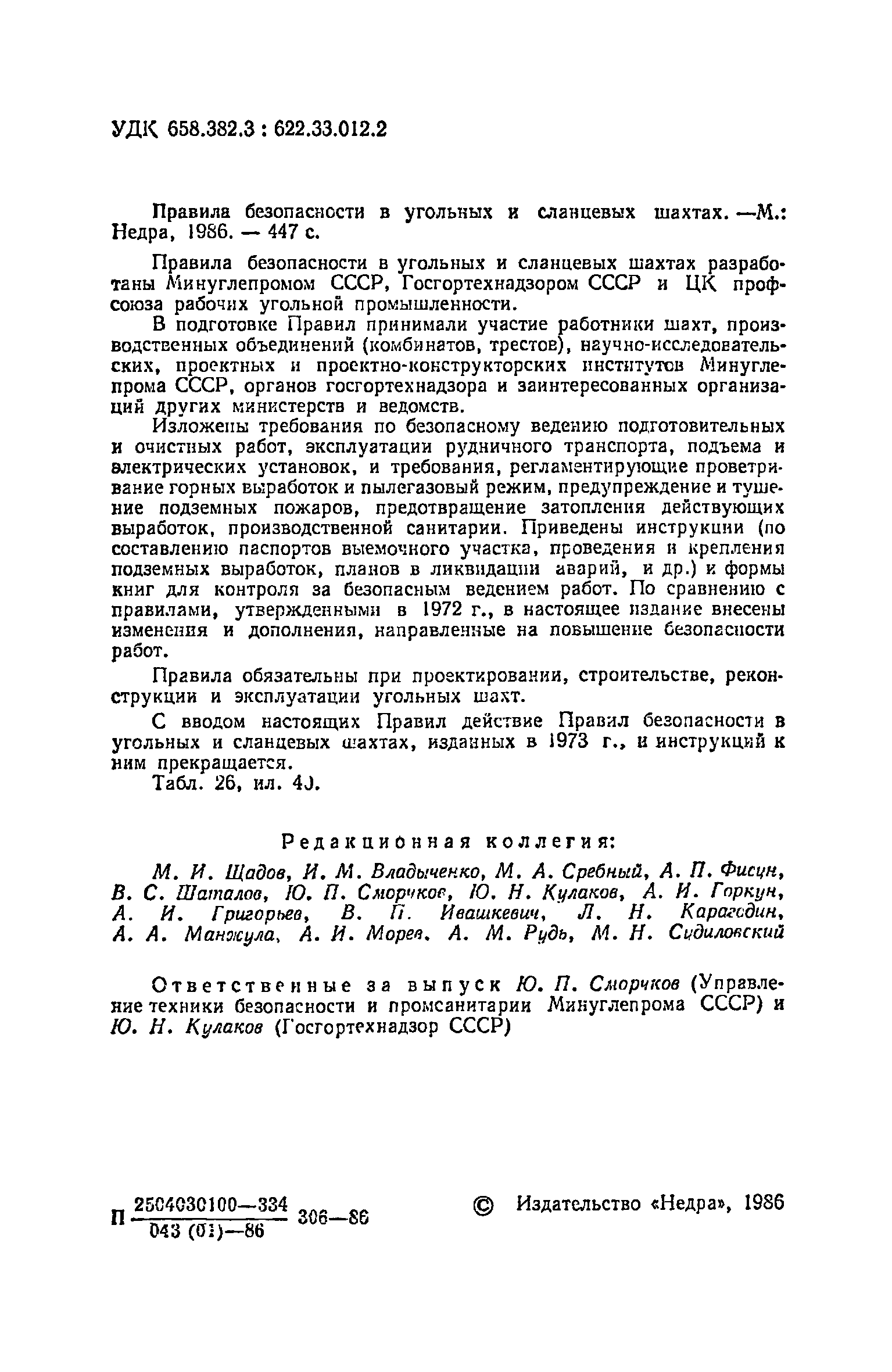 | Утверждён: | 12.09.1986 Госгортехнадзор СССР (USSR Gosgortekhnadzor ) 18.08.1986 Минуглепром СССР (USSR Minugleprom )