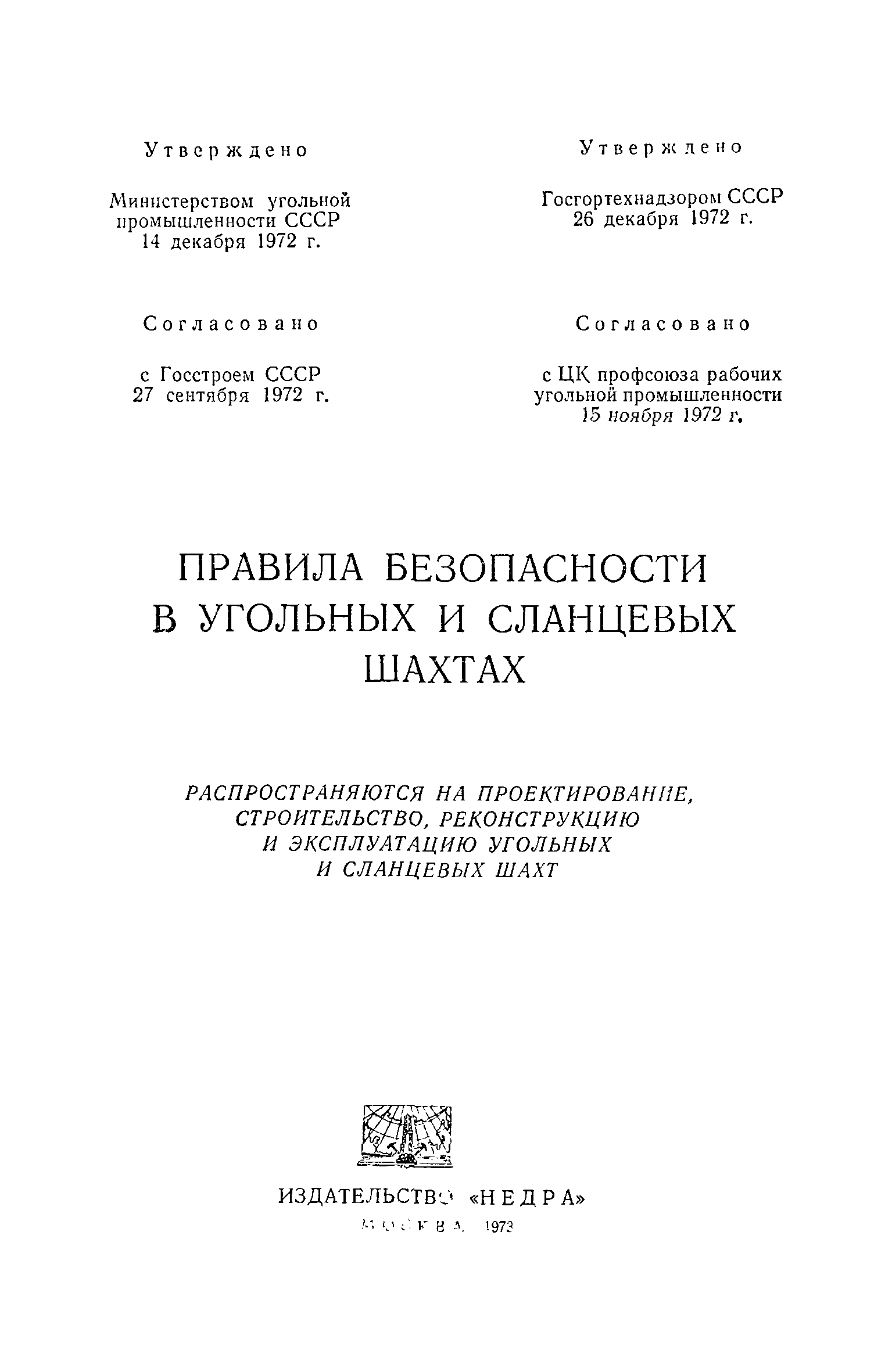 | | Утверждён: | 26.12.1972 Госгортехнадзор (Gosgortekhnadzor ) 14.12.1972 Министерство угольной промышленности СССР (USSR Ministry of the Coal Industry )
