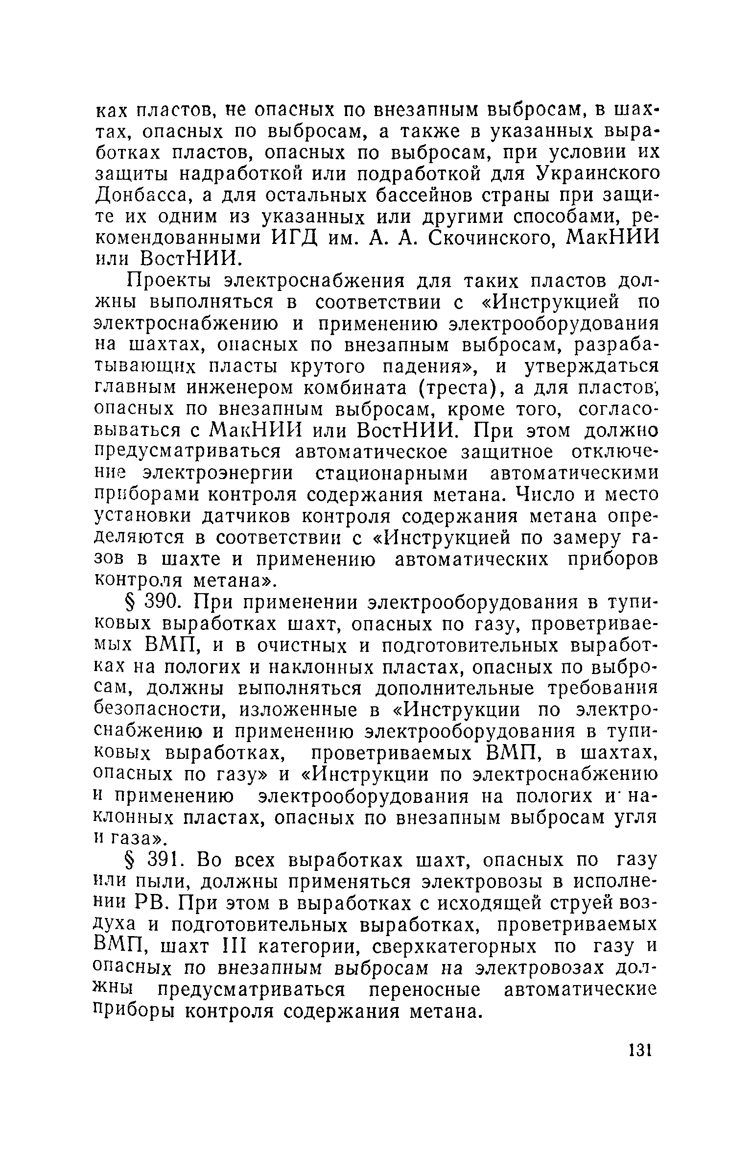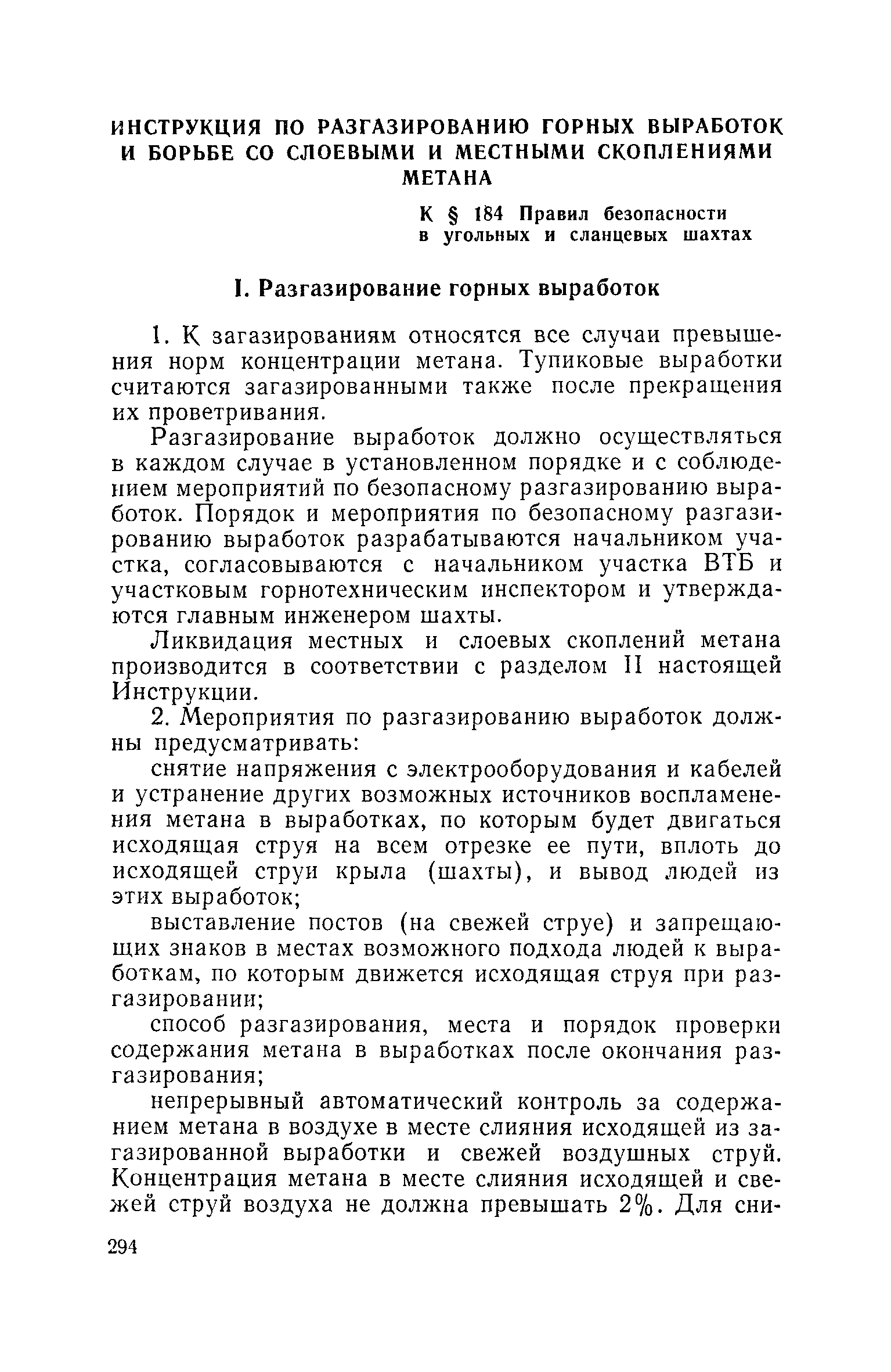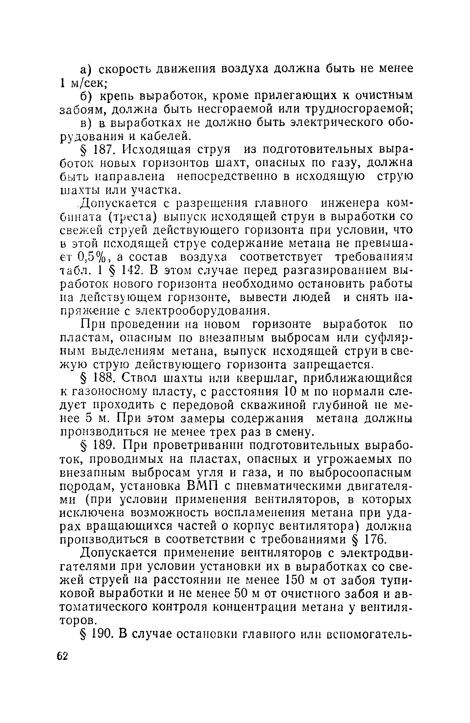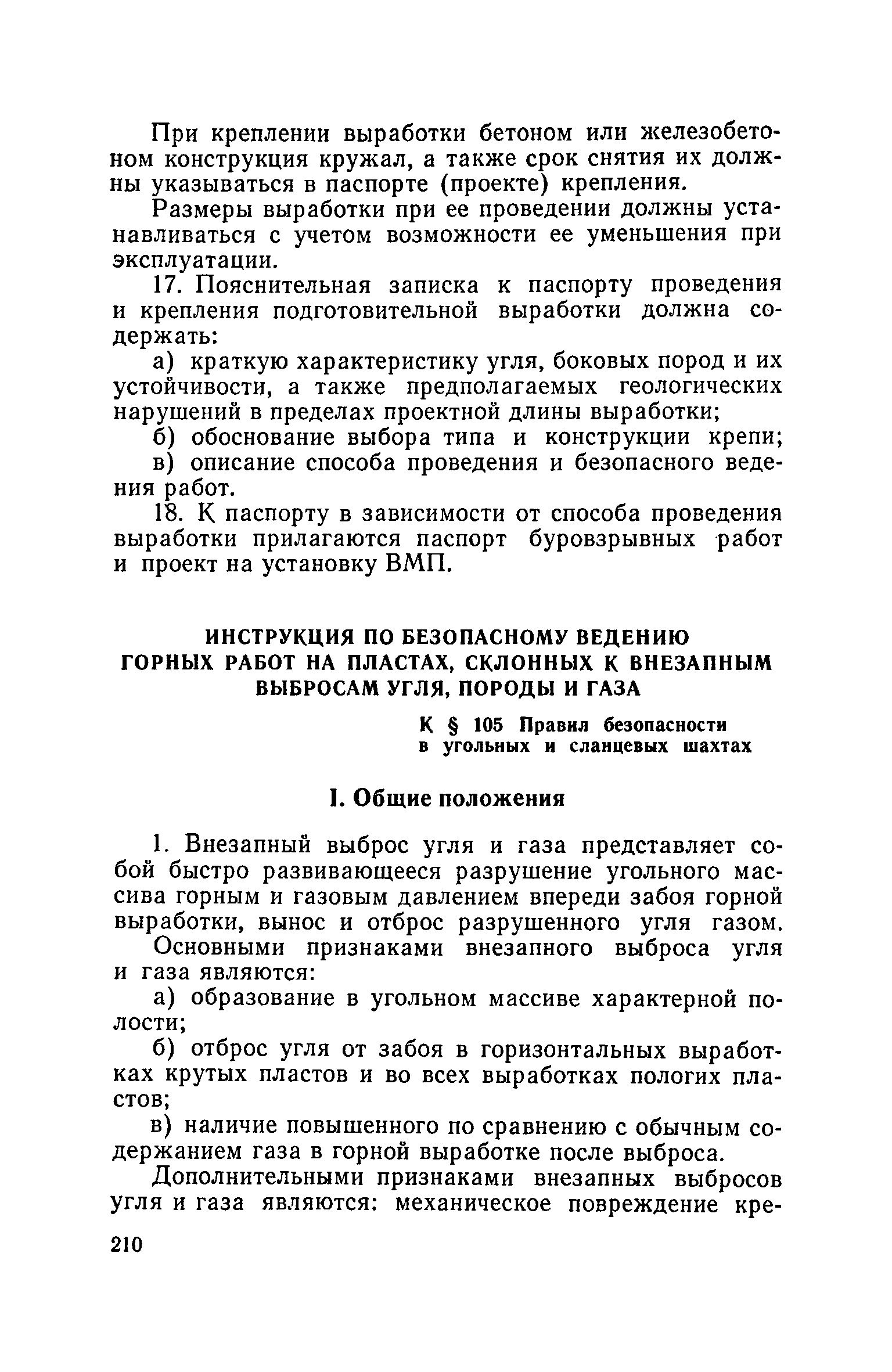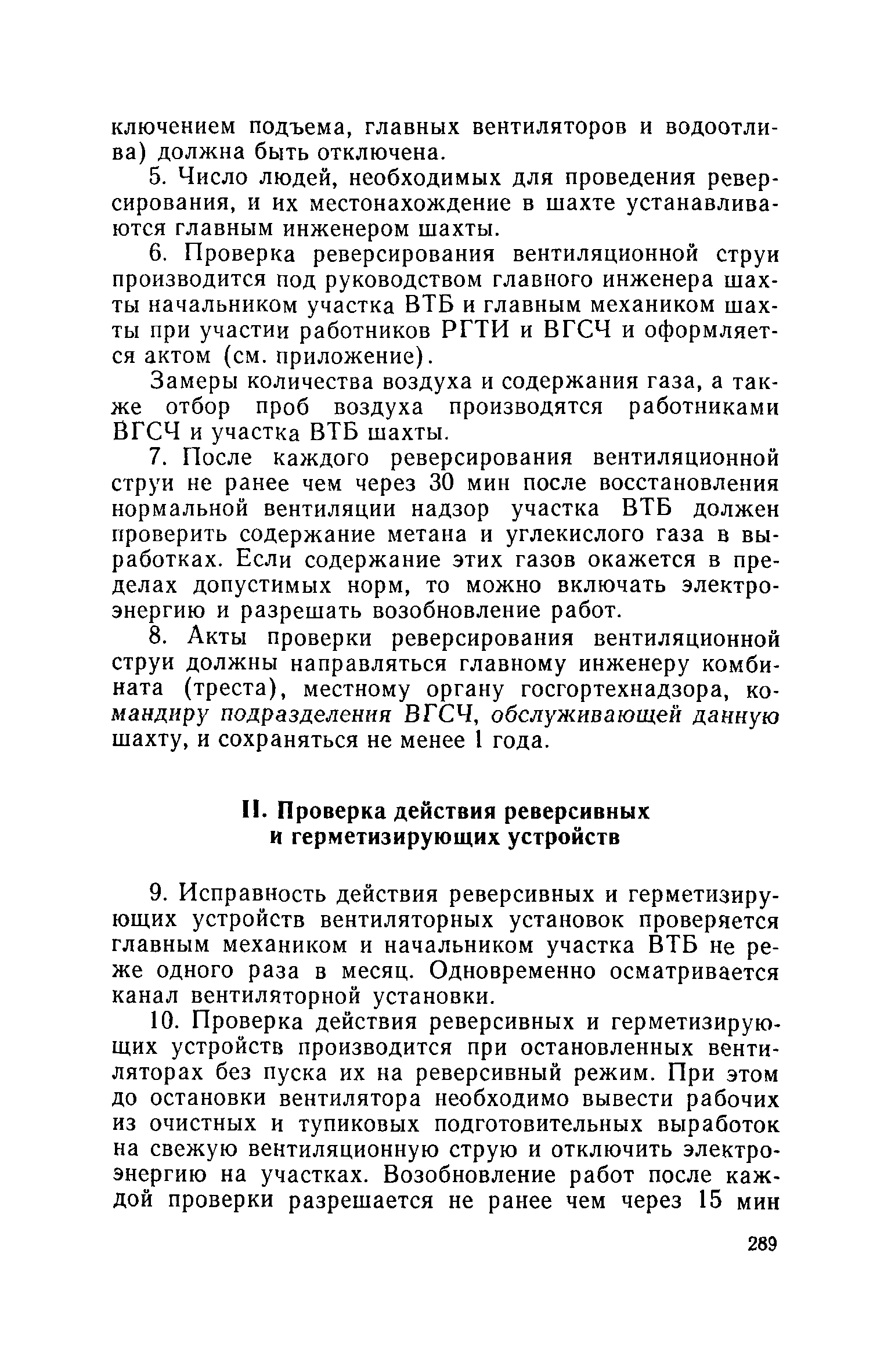 Правила безопасности в угольных и сланцевых шахтах| Статус: | не действует | | Название рус.: | Правила безопасности в угольных и сланцевых шахтах | | Дата добавления в базу: | 01.02.2020 | | Дата актуализации: | 01.01.2021 | | Область применения: | Правила обязательны для административно-технических руководителей и других должностных лиц действующих и строящихся шахт, а также для работников научно-исследовательских, проектных и других организаций и учреждений. Правила распространяются на проектирование, строительство, реконструкцию и эксплуатацию угольных и сланцевых шахт. | | Оглавление: | Глава I. Общие правила Глава II. Ведение горных работ Глава III. Проветривание подземных выработок и пылегазовый режим Глава IV. Рудничный транспорт и подъем Глава V. Электротехническое хозяйство Глава VI. Предупреждение и тушение рудничных пожаров Глава VII. Предотвращение затоплений действующих выработок Глава VIII. Промышленная санитарии Глава IХ. Ответственность за нарушение правил безопасности Инструкция по составлению планов ликвидации аварий Инструкция по составлению проектов вскрытия и подготовки выемочных участков, подготовки очистных забоев, паспортов управления кровлей, проведения и крепления подземных выработок Инструкция по безопасному ведению горных работ на пластах, склонных к внезапным выбросам угля, породы и газа Инструкция по безопасному ведению горных работ на шахтах, разрабатывающих пласты, опасные по горным ударам Инструкция по отбору проб рудничного воздуха, определению газообильности и установлению категорий шахт по метану Инструкция по безопасной эксплуатации установок кондиционирования рудничного воздуха Инструкция по реверсированию вентиляционной струи и проверке действия реверсивных устройств вентиляторных установок Инструкция по разгазированию горных выработок и борьбе со слоевыми и местными скоплениями метана Инструкция по безопасному ведению дегазационных работ на шахтах Инструкция по предупреждению и локализации взрывов угольной пыли Инструкция по составлению вентиляционных планов Инструкция по замеру концентрации газов в шахте и применению автоматических приборов контроля содержания метана Инструкция по безопасной эксплуатации подземных пассажирских подвесных канатных дорог Инструкция по электроснабжению и применению электрооборудования в тупиковых выработках, проветриваемых ВМП, в шахтах, опасных по газу Инструкция по электроснабжению и применению электрооборудования на пологих и наклонных пластах, опасных по внезапным выбросам угля и газа Инструкция по электроснабжению и применению электрооборудования на шахтах, опасных по внезапным выбросам, разрабатывающих крутые пласты Инструкция по применению электрооборудования в рудничном нормальном и общепромышленном исполнении в шахтах, опасных по газу или пыли Инструкция по выбору и проверке уставок реле максимального тока и плавких вставок предохранителей в шахтных электрических сетях Инструкция по устройству, осмотру и измерению сопротивления шахтных заземлений Инструкция по осмотру и ревизии рудничного взрывобезопасного электрооборудования Инструкция по проверке максимальной токовой защиты шахтных аппаратов Инструкция по противопожарной защите угольных и сланцевых шахт Инструкция по ведению огневых работ в подземных выработк