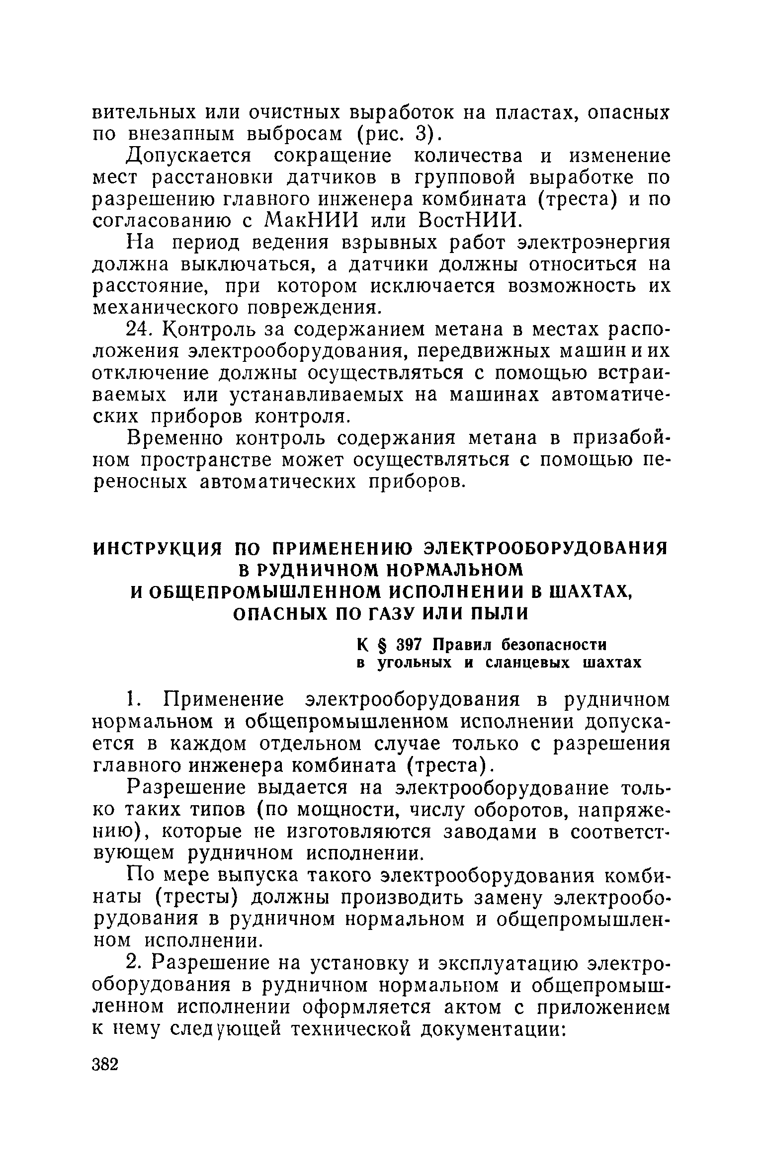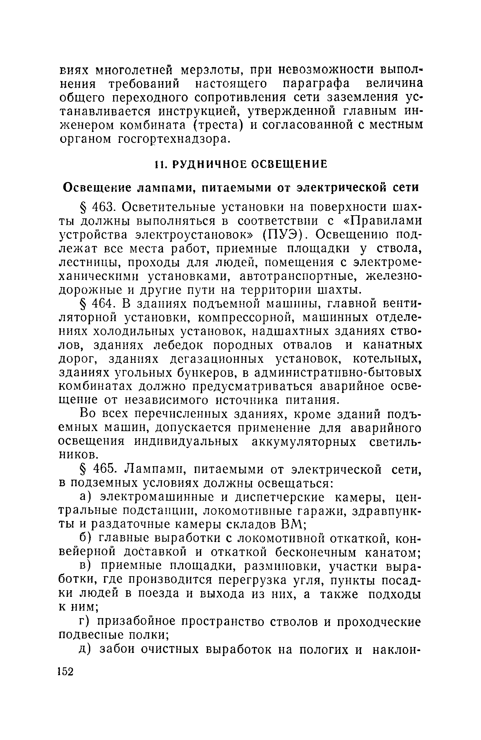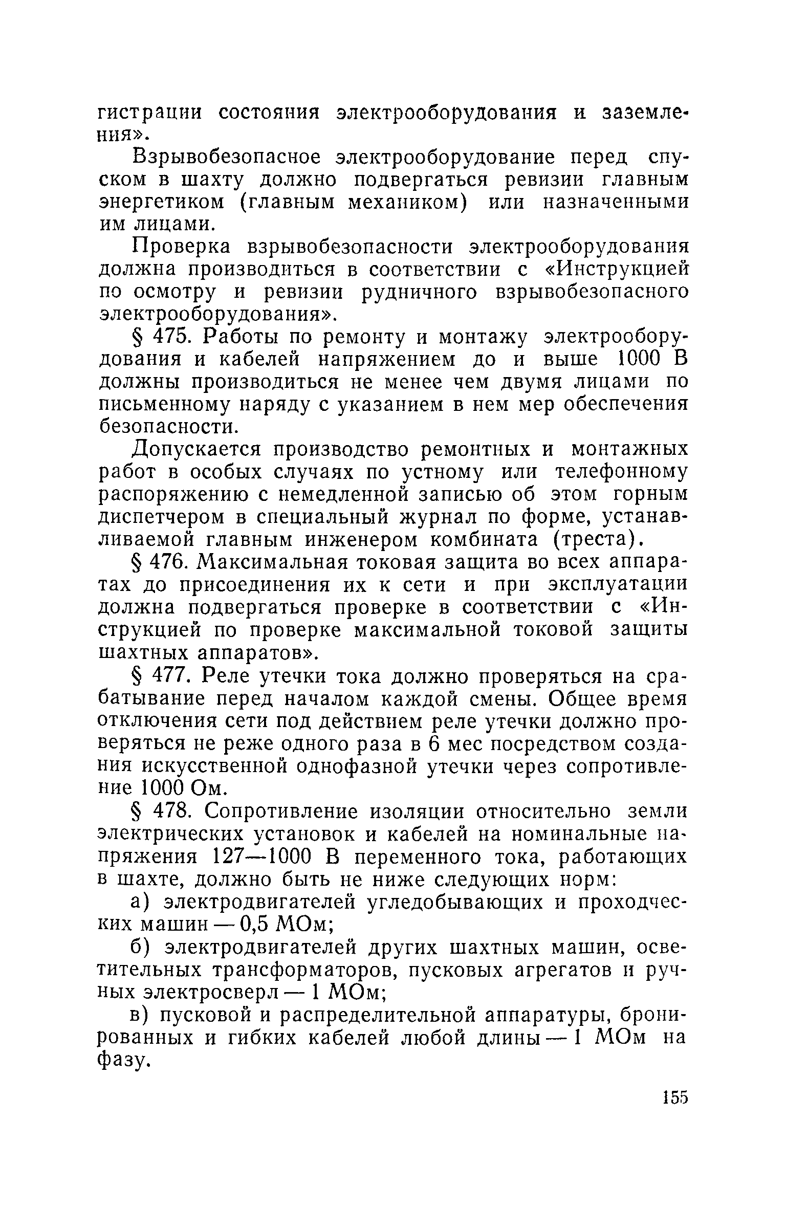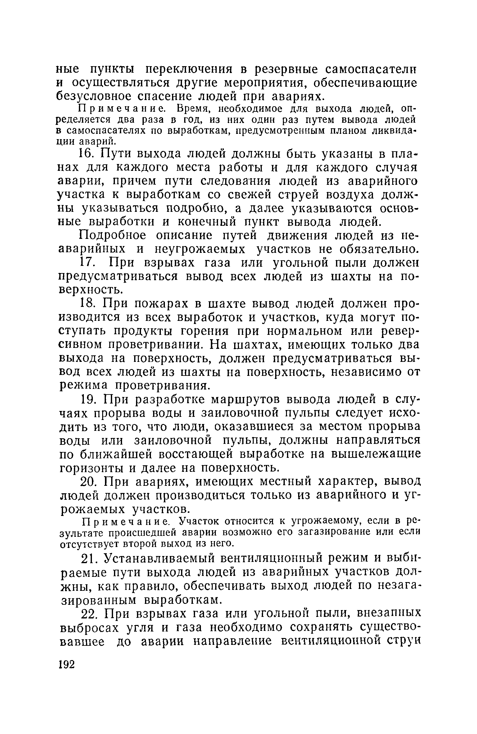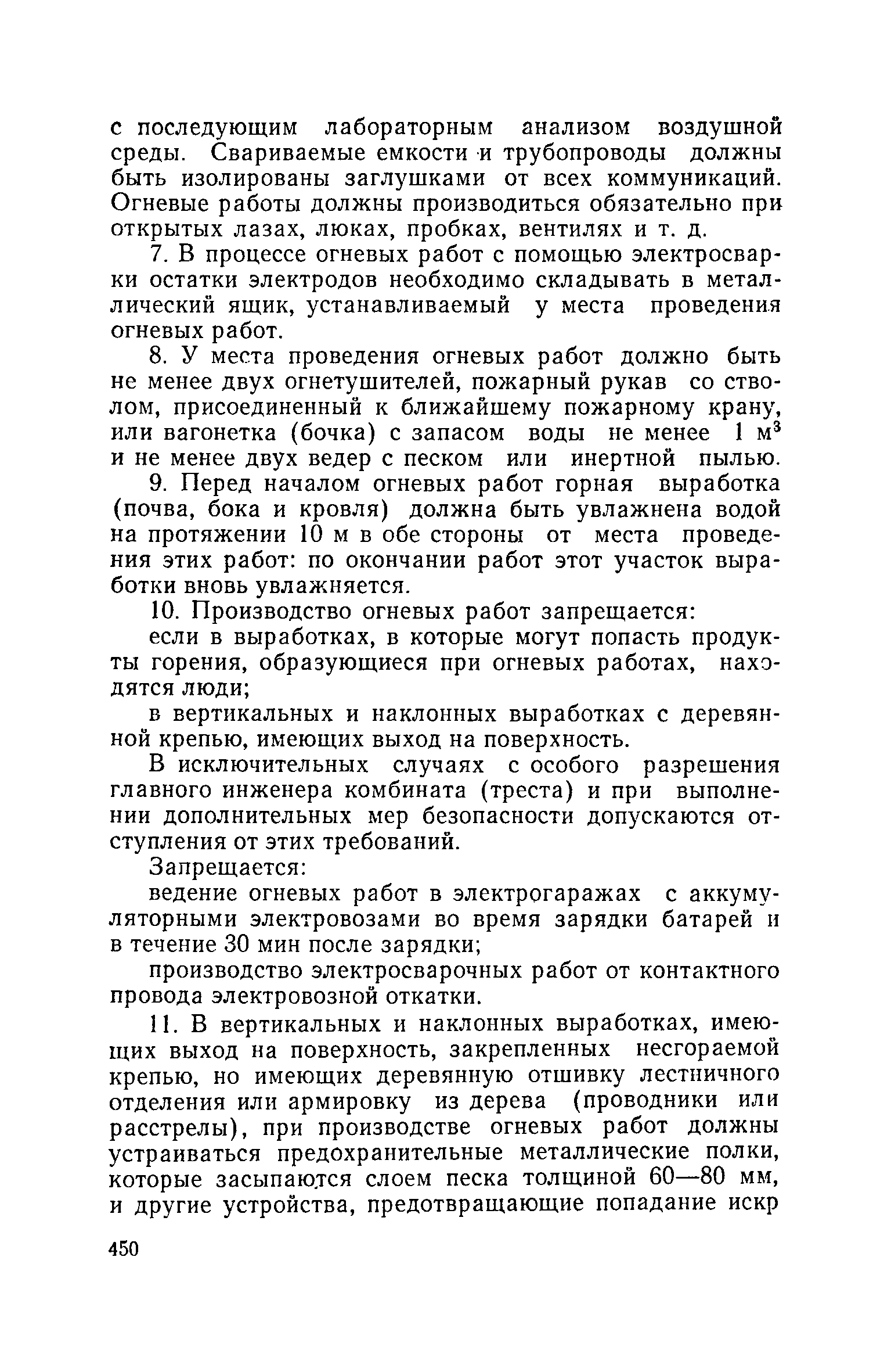 Правила безопасности в угольных и сланцевых шахтах| Статус: | не действует | | Название рус.: | Правила безопасности в угольных и сланцевых шахтах | | Дата добавления в базу: | 01.02.2020 | | Дата актуализации: | 01.01.2021 | | Область применения: | Правила обязательны для административно-технических руководителей и других должностных лиц действующих и строящихся шахт, а также для работников научно-исследовательских, проектных и других организаций и учреждений. Правила распространяются на проектирование, строительство, реконструкцию и эксплуатацию угольных и сланцевых шахт. | | Оглавление: | Глава I. Общие правила Глава II. Ведение горных работ Глава III. Проветривание подземных выработок и пылегазовый режим Глава IV. Рудничный транспорт и подъем Глава V. Электротехническое хозяйство Глава VI. Предупреждение и тушение рудничных пожаров Глава VII. Предотвращение затоплений действующих выработок Глава VIII. Промышленная санитарии Глава IХ. Ответственность за нарушение правил безопасности Инструкция по составлению планов ликвидации аварий Инструкция по составлению проектов вскрытия и подготовки выемочных участков, подготовки очистных забоев, паспортов управления кровлей, проведения и крепления подземных выработок Инструкция по безопасному ведению горных работ на пластах, склонных к внезапным выбросам угля, породы и газа Инструкция по безопасному ведению горных работ на шахтах, разрабатывающих пласты, опасные по горным ударам Инструкция по отбору проб рудничного воздуха, определению газообильности и установлению категорий шахт по метану Инструкция по безопасной эксплуатации установок кондиционирования рудничного воздуха Инструкция по реверсированию вентиляционной струи и проверке действия реверсивных устройств вентиляторных установок Инструкция по разгазированию горных выработок и борьбе со слоевыми и местными скоплениями метана Инструкция по безопасному ведению дегазационных работ на шахтах Инструкция по предупреждению и локализации взрывов угольной пыли Инструкция по составлению вентиляционных планов Инструкция по замеру концентрации газов в шахте и применению автоматических приборов контроля содержания метана Инструкция по безопасной эксплуатации подземных пассажирских подвесных канатных дорог Инструкция по электроснабжению и применению электрооборудования в тупиковых выработках, проветриваемых ВМП, в шахтах, опасных по газу Инструкция по электроснабжению и применению электрооборудования на пологих и наклонных пластах, опасных по внезапным выбросам угля и газа Инструкция по электроснабжению и применению электрооборудования на шахтах, опасных по внезапным выбросам, разрабатывающих крутые пласты Инструкция по применению электрооборудования в рудничном нормальном и общепромышленном исполнении в шахтах, опасных по газу или пыли Инструкция по выбору и проверке уставок реле максимального тока и плавких вставок предохранителей в шахтных электрических сетях Инструкция по устройству, осмотру и измерению сопротивления шахтных заземлений Инструкция по осмотру и ревизии рудничного взрывобезопасного электрооборудования Инструкция по проверке максимальной токовой защиты шахтных аппаратов Инструкция по противопожарной защите угольных и сланцевых шахт Инструкция по ведению огневых работ в подземных выработк