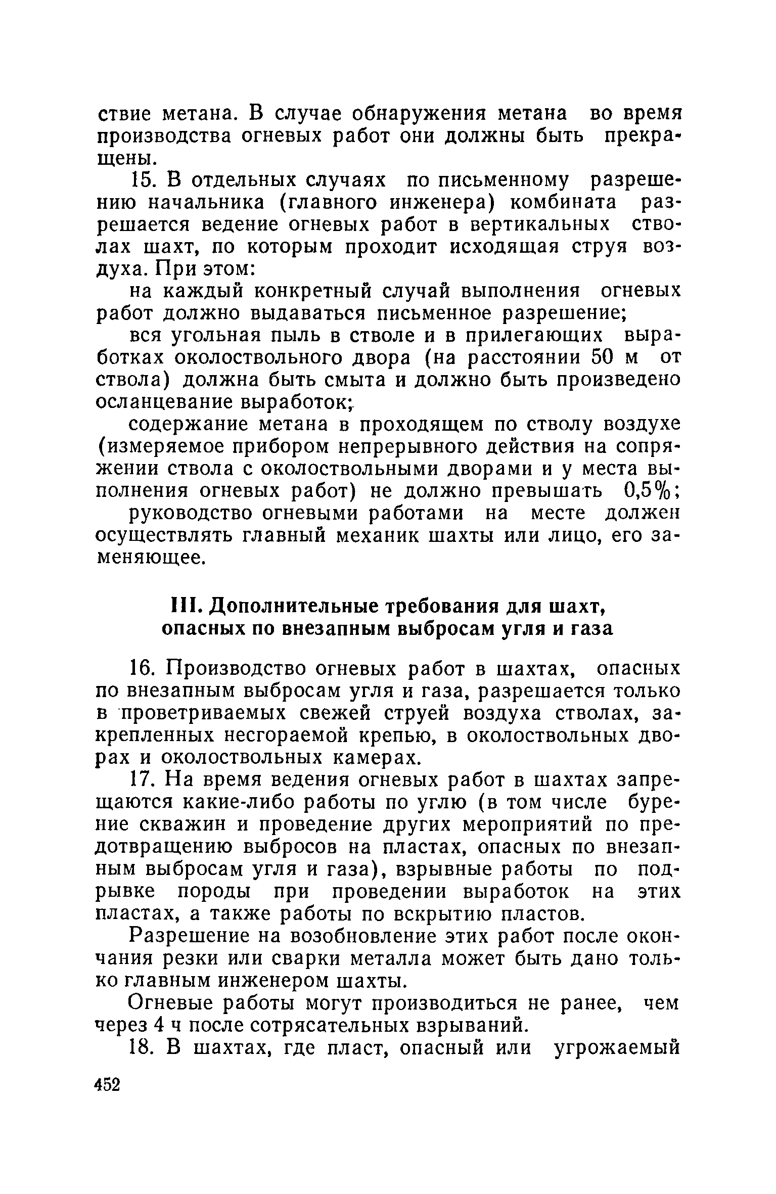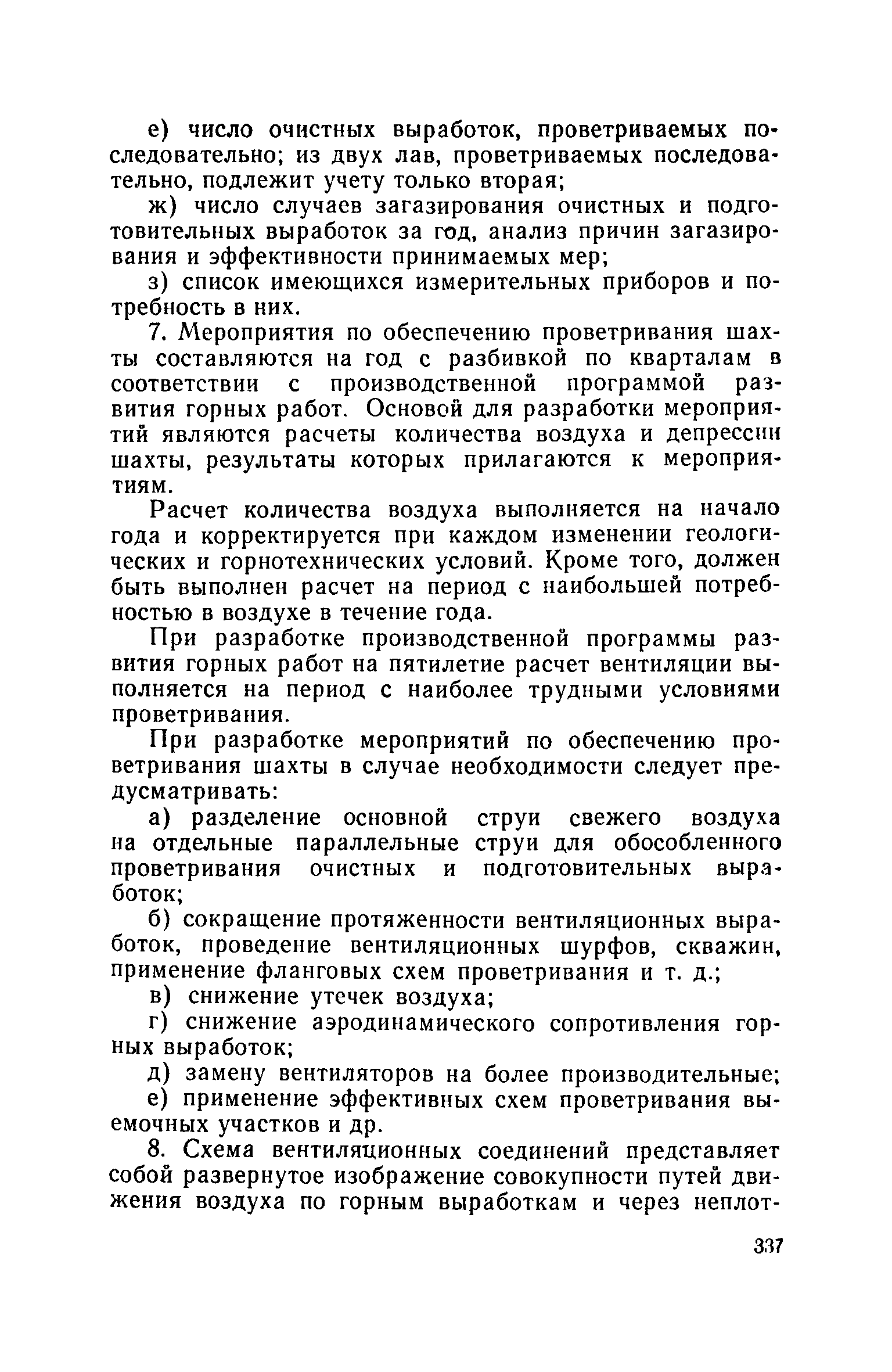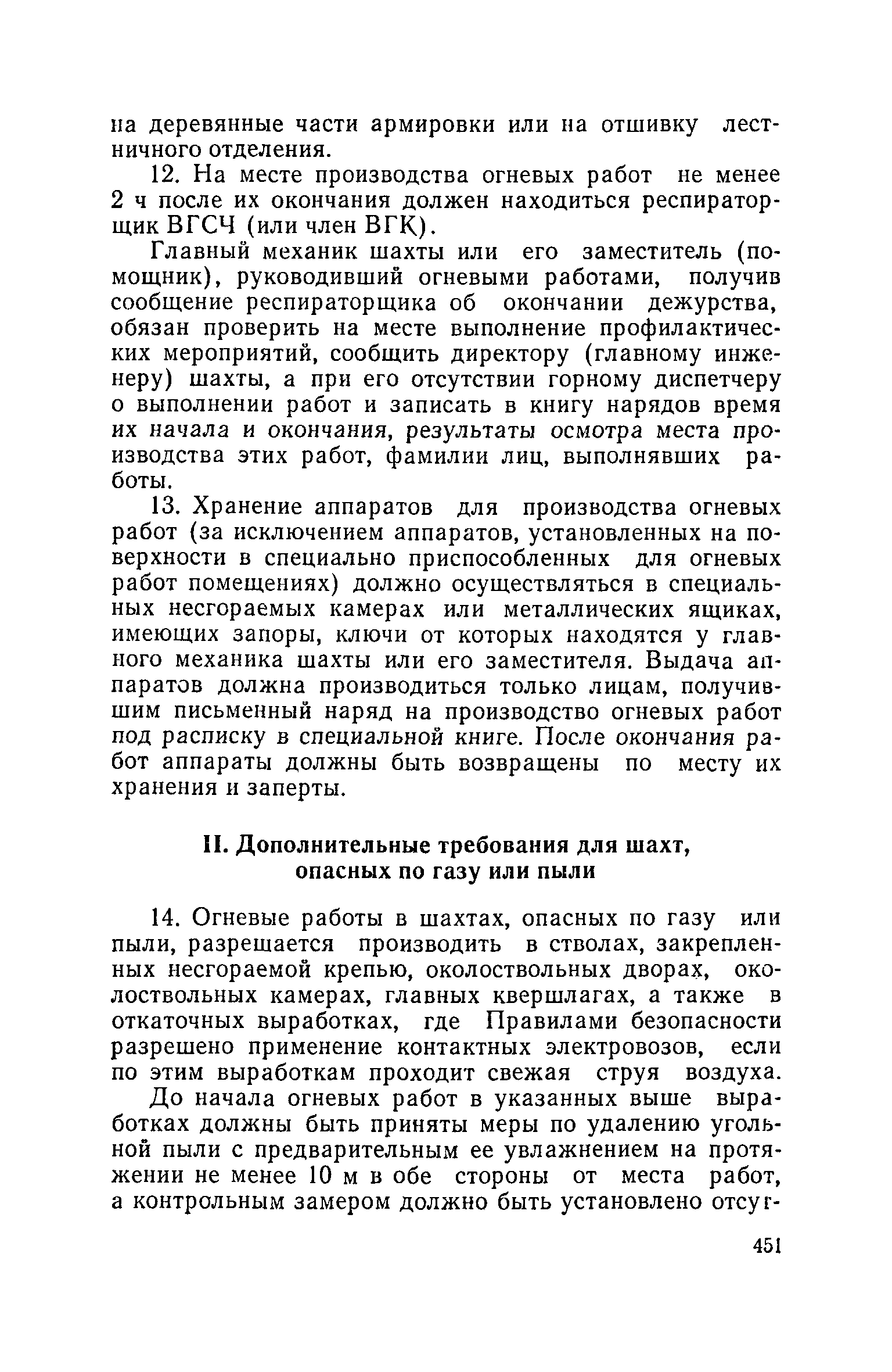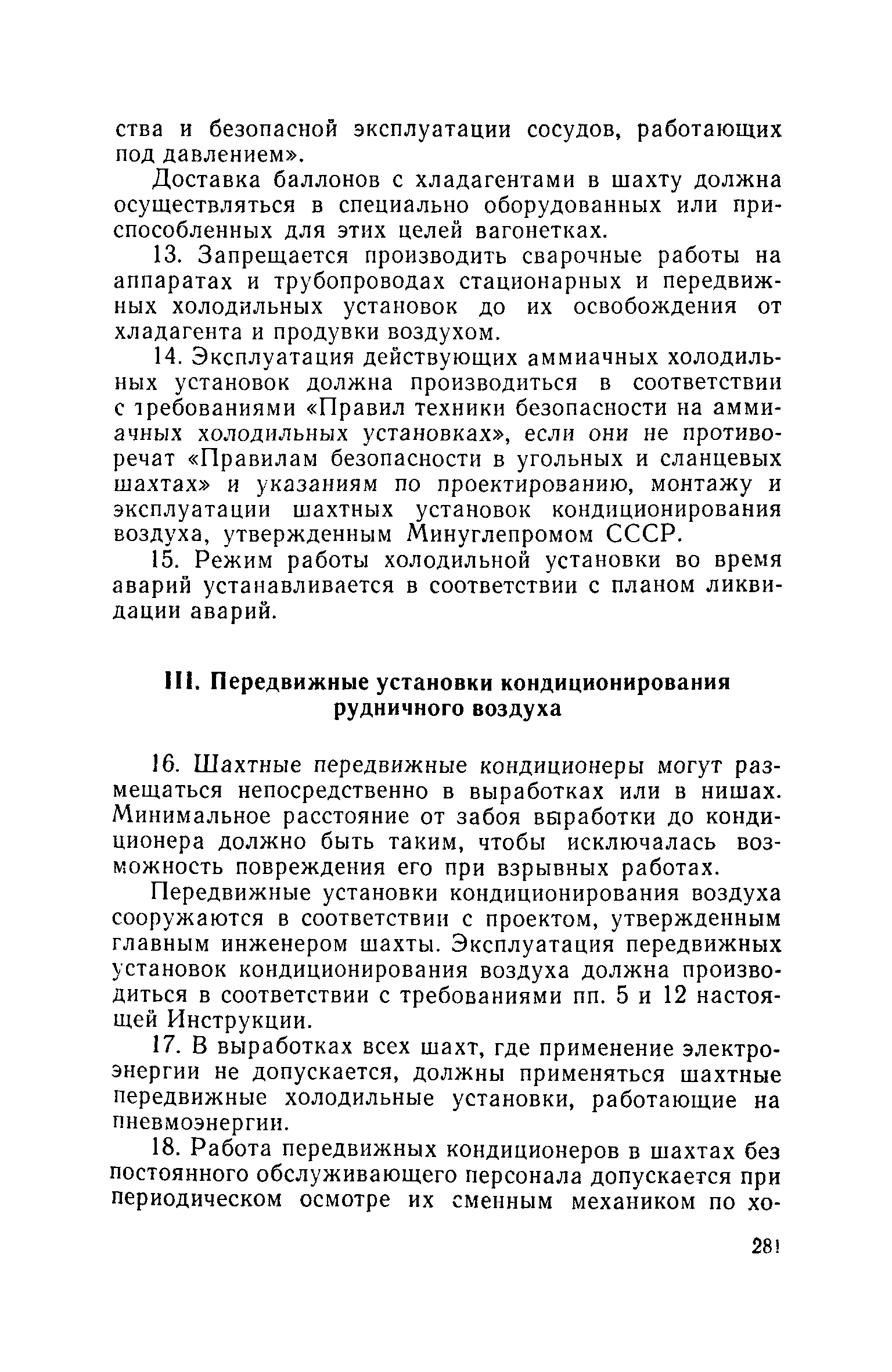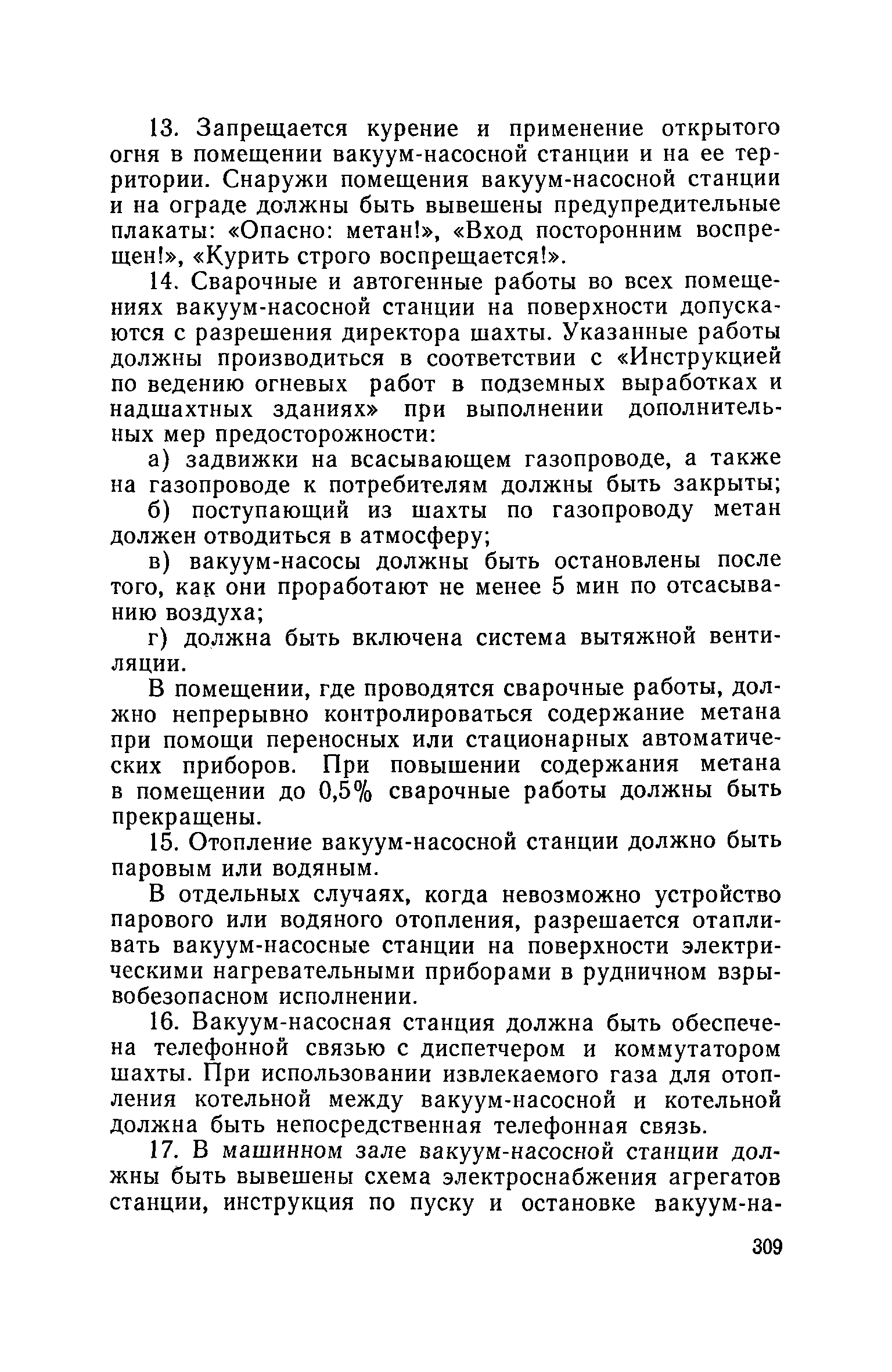 Правила безопасности в угольных и сланцевых шахтах| Статус: | не действует | | Название рус.: | Правила безопасности в угольных и сланцевых шахтах | | Дата добавления в базу: | 01.02.2020 | | Дата актуализации: | 01.01.2021 | | Область применения: | Правила обязательны для административно-технических руководителей и других должностных лиц действующих и строящихся шахт, а также для работников научно-исследовательских, проектных и других организаций и учреждений. Правила распространяются на проектирование, строительство, реконструкцию и эксплуатацию угольных и сланцевых шахт. | | Оглавление: | Глава I. Общие правила Глава II. Ведение горных работ Глава III. Проветривание подземных выработок и пылегазовый режим Глава IV. Рудничный транспорт и подъем Глава V. Электротехническое хозяйство Глава VI. Предупреждение и тушение рудничных пожаров Глава VII. Предотвращение затоплений действующих выработок Глава VIII. Промышленная санитарии Глава IХ. Ответственность за нарушение правил безопасности Инструкция по составлению планов ликвидации аварий Инструкция по составлению проектов вскрытия и подготовки выемочных участков, подготовки очистных забоев, паспортов управления кровлей, проведения и крепления подземных выработок Инструкция по безопасному ведению горных работ на пластах, склонных к внезапным выбросам угля, породы и газа Инструкция по безопасному ведению горных работ на шахтах, разрабатывающих пласты, опасные по горным ударам Инструкция по отбору проб рудничного воздуха, определению газообильности и установлению категорий шахт по метану Инструкция по безопасной эксплуатации установок кондиционирования рудничного воздуха Инструкция по реверсированию вентиляционной струи и проверке действия реверсивных устройств вентиляторных установок Инструкция по разгазированию горных выработок и борьбе со слоевыми и местными скоплениями метана Инструкция по безопасному ведению дегазационных работ на шахтах Инструкция по предупреждению и локализации взрывов угольной пыли Инструкция по составлению вентиляционных планов Инструкция по замеру концентрации газов в шахте и применению автоматических приборов контроля содержания метана Инструкция по безопасной эксплуатации подземных пассажирских подвесных канатных дорог Инструкция по электроснабжению и применению электрооборудования в тупиковых выработках, проветриваемых ВМП, в шахтах, опасных по газу Инструкция по электроснабжению и применению электрооборудования на пологих и наклонных пластах, опасных по внезапным выбросам угля и газа Инструкция по электроснабжению и применению электрооборудования на шахтах, опасных по внезапным выбросам, разрабатывающих крутые пласты Инструкция по применению электрооборудования в рудничном нормальном и общепромышленном исполнении в шахтах, опасных по газу или пыли Инструкция по выбору и проверке уставок реле максимального тока и плавких вставок предохранителей в шахтных электрических сетях Инструкция по устройству, осмотру и измерению сопротивления шахтных заземлений Инструкция по осмотру и ревизии рудничного взрывобезопасного электрооборудования Инструкция по проверке максимальной токовой защиты шахтных аппаратов Инструкция по противопожарной защите угольных и сланцевых шахт Инструкция по ведению огневых работ в подземных выработк