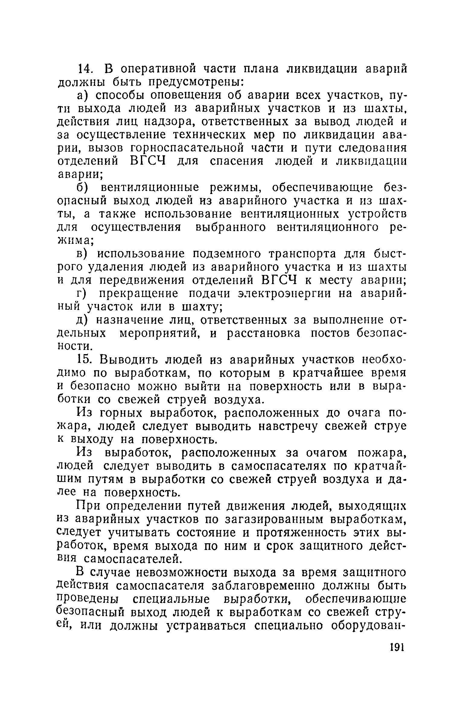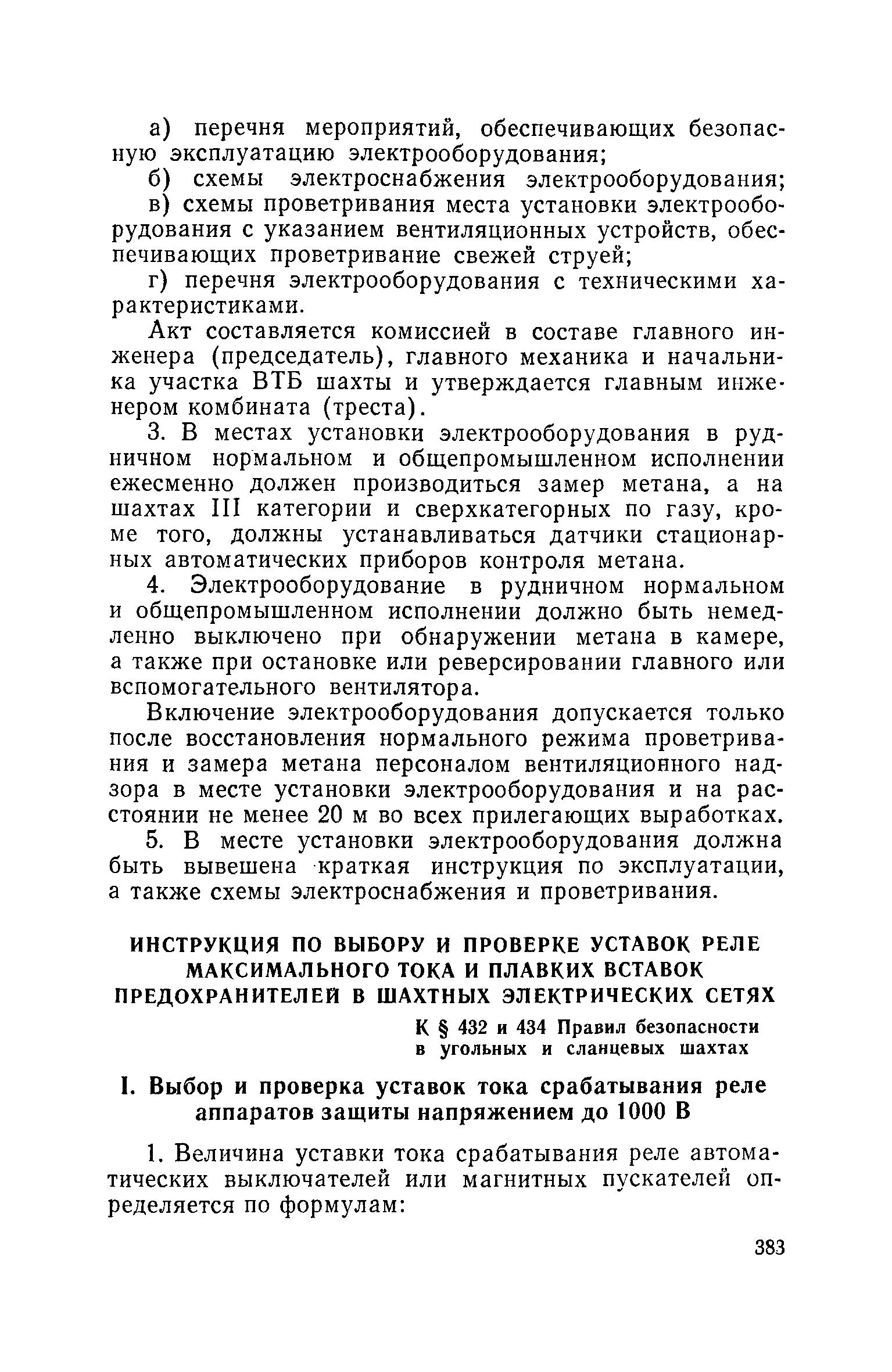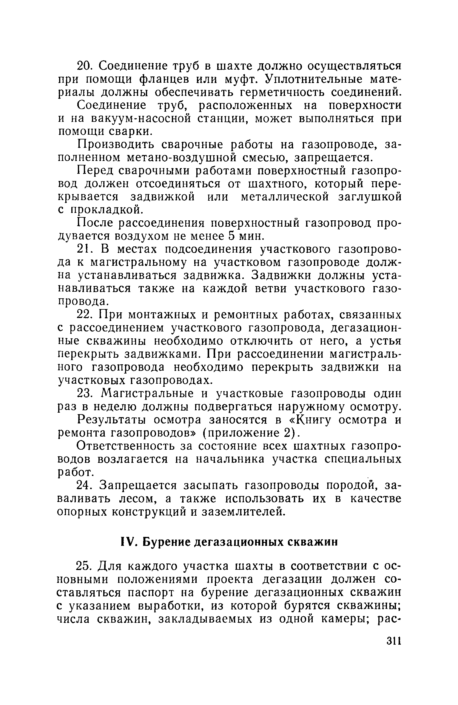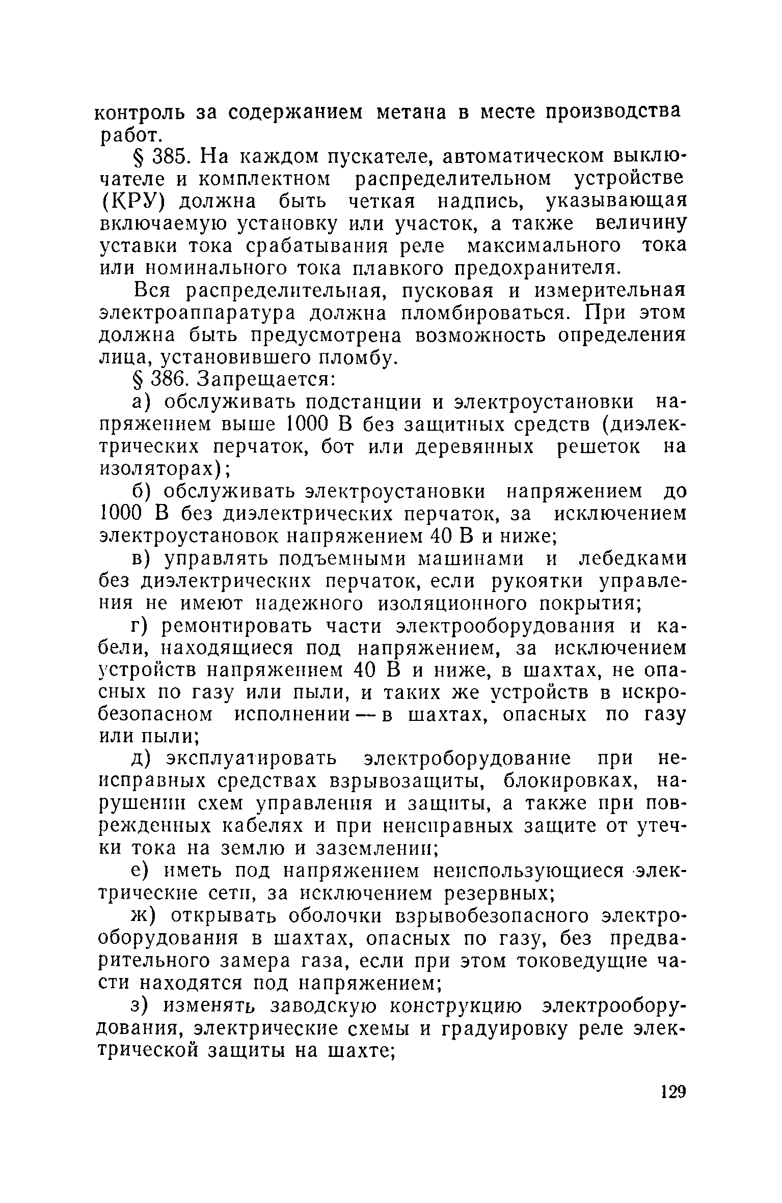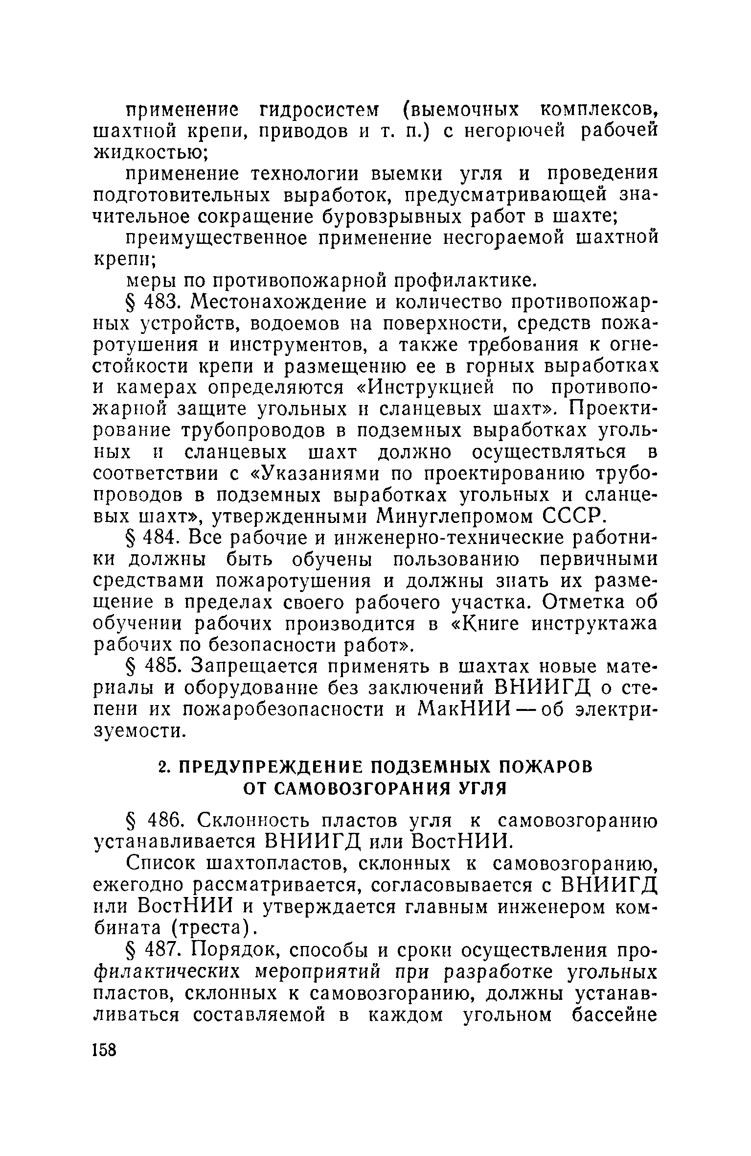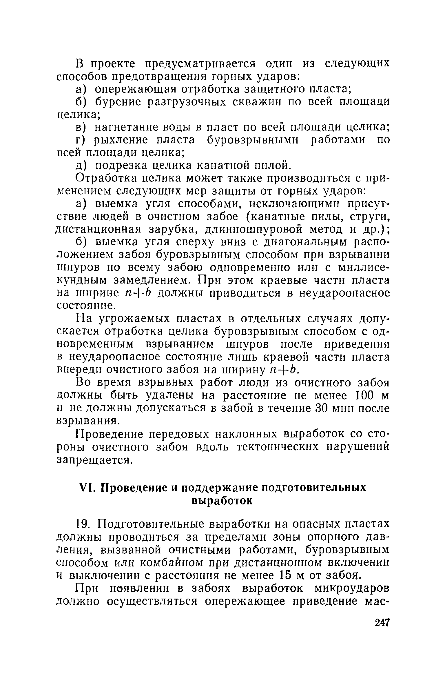 Правила безопасности в угольных и сланцевых шахтах| Статус: | не действует | | Название рус.: | Правила безопасности в угольных и сланцевых шахтах | | Дата добавления в базу: | 01.02.2020 | | Дата актуализации: | 01.01.2021 | | Область применения: | Правила обязательны для административно-технических руководителей и других должностных лиц действующих и строящихся шахт, а также для работников научно-исследовательских, проектных и других организаций и учреждений. Правила распространяются на проектирование, строительство, реконструкцию и эксплуатацию угольных и сланцевых шахт. | | Оглавление: | Глава I. Общие правила Глава II. Ведение горных работ Глава III. Проветривание подземных выработок и пылегазовый режим Глава IV. Рудничный транспорт и подъем Глава V. Электротехническое хозяйство Глава VI. Предупреждение и тушение рудничных пожаров Глава VII. Предотвращение затоплений действующих выработок Глава VIII. Промышленная санитарии Глава IХ. Ответственность за нарушение правил безопасности Инструкция по составлению планов ликвидации аварий Инструкция по составлению проектов вскрытия и подготовки выемочных участков, подготовки очистных забоев, паспортов управления кровлей, проведения и крепления подземных выработок Инструкция по безопасному ведению горных работ на пластах, склонных к внезапным выбросам угля, породы и газа Инструкция по безопасному ведению горных работ на шахтах, разрабатывающих пласты, опасные по горным ударам Инструкция по отбору проб рудничного воздуха, определению газообильности и установлению категорий шахт по метану Инструкция по безопасной эксплуатации установок кондиционирования рудничного воздуха Инструкция по реверсированию вентиляционной струи и проверке действия реверсивных устройств вентиляторных установок Инструкция по разгазированию горных выработок и борьбе со слоевыми и местными скоплениями метана Инструкция по безопасному ведению дегазационных работ на шахтах Инструкция по предупреждению и локализации взрывов угольной пыли Инструкция по составлению вентиляционных планов Инструкция по замеру концентрации газов в шахте и применению автоматических приборов контроля содержания метана Инструкция по безопасной эксплуатации подземных пассажирских подвесных канатных дорог Инструкция по электроснабжению и применению электрооборудования в тупиковых выработках, проветриваемых ВМП, в шахтах, опасных по газу Инструкция по электроснабжению и применению электрооборудования на пологих и наклонных пластах, опасных по внезапным выбросам угля и газа Инструкция по электроснабжению и применению электрооборудования на шахтах, опасных по внезапным выбросам, разрабатывающих крутые пласты Инструкция по применению электрооборудования в рудничном нормальном и общепромышленном исполнении в шахтах, опасных по газу или пыли Инструкция по выбору и проверке уставок реле максимального тока и плавких вставок предохранителей в шахтных электрических сетях Инструкция по устройству, осмотру и измерению сопротивления шахтных заземлений Инструкция по осмотру и ревизии рудничного взрывобезопасного электрооборудования Инструкция по проверке максимальной токовой защиты шахтных аппаратов Инструкция по противопожарной защите угольных и сланцевых шахт Инструкция по ведению огневых работ в подземных выработк