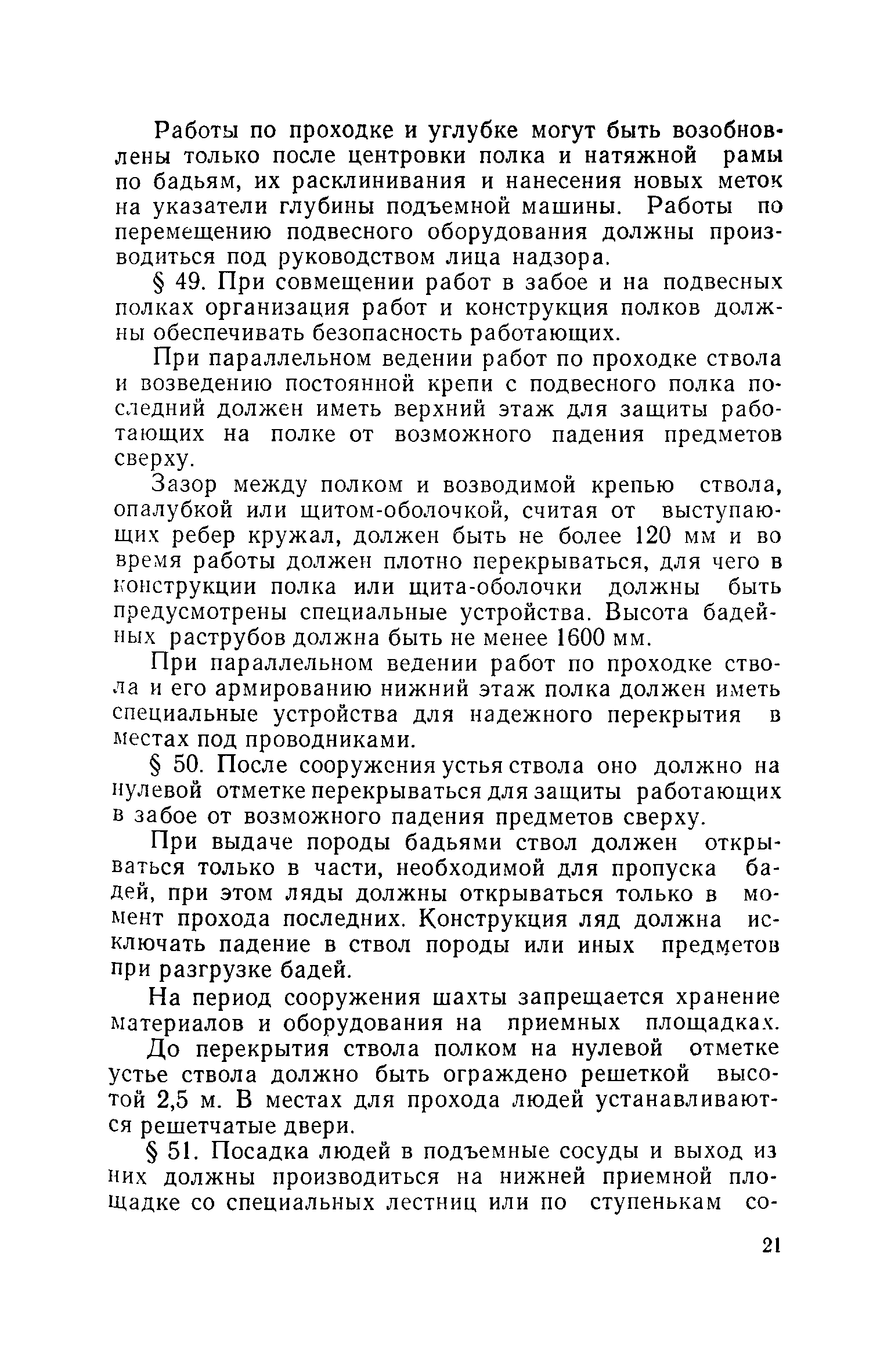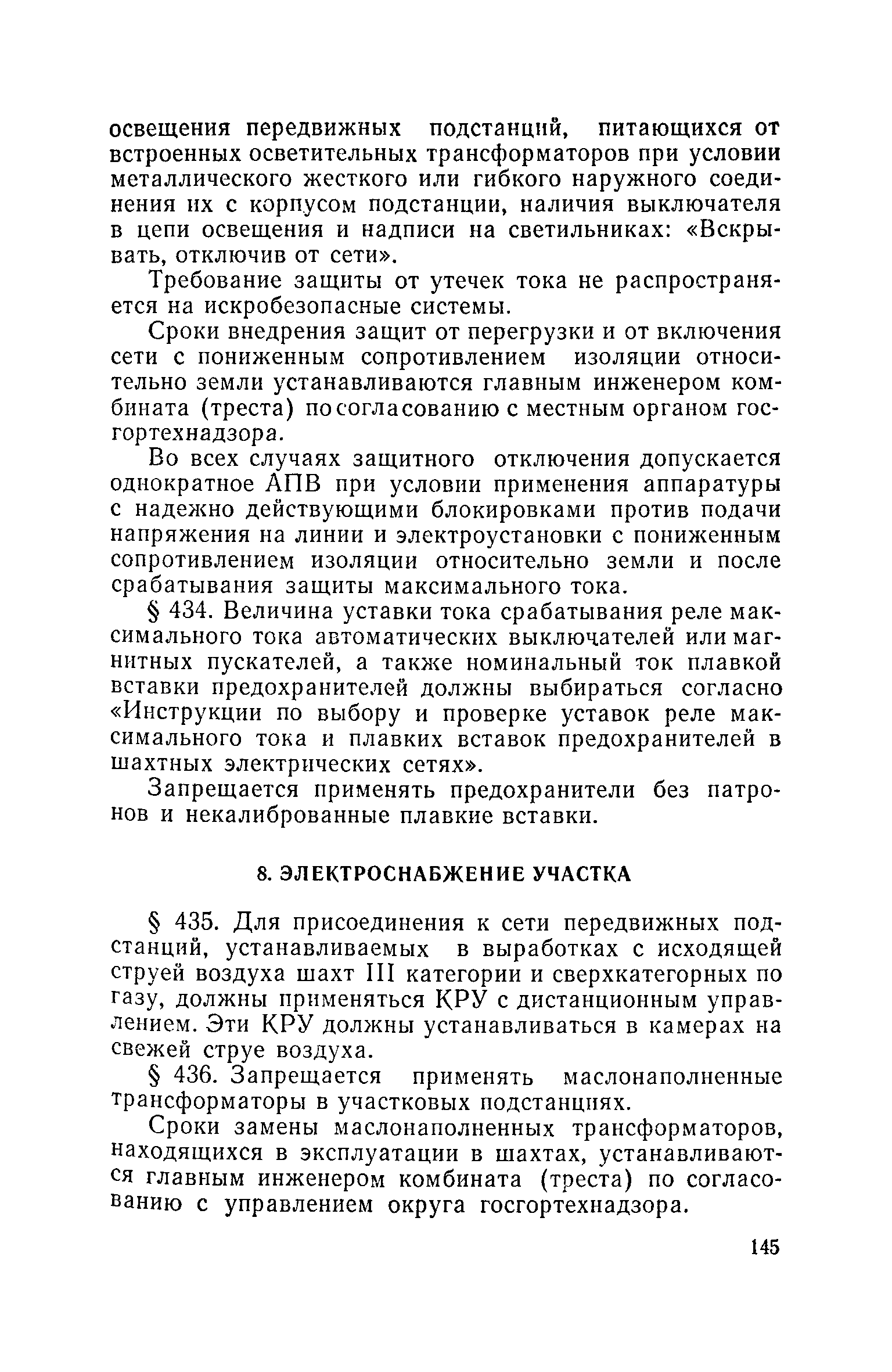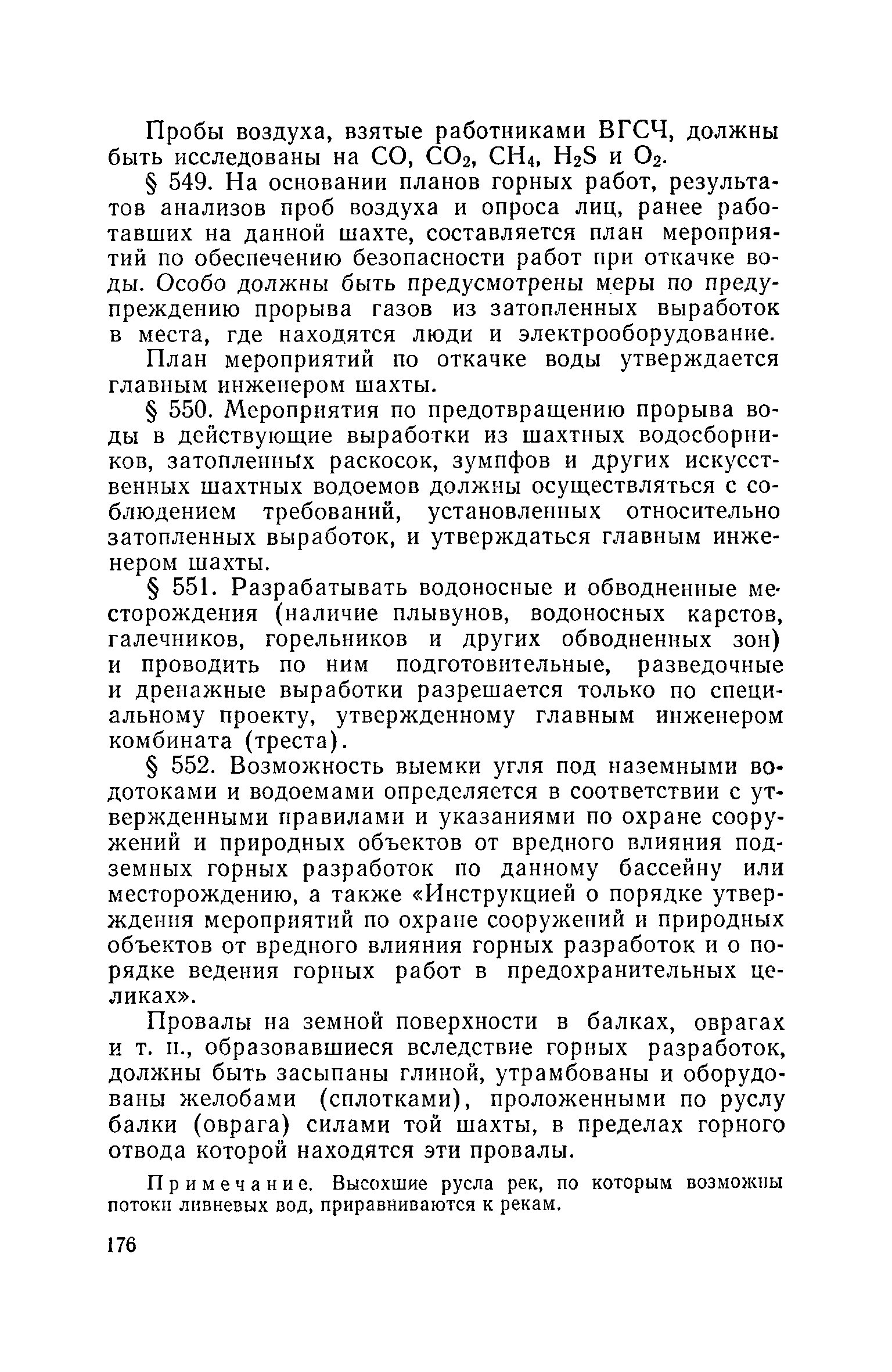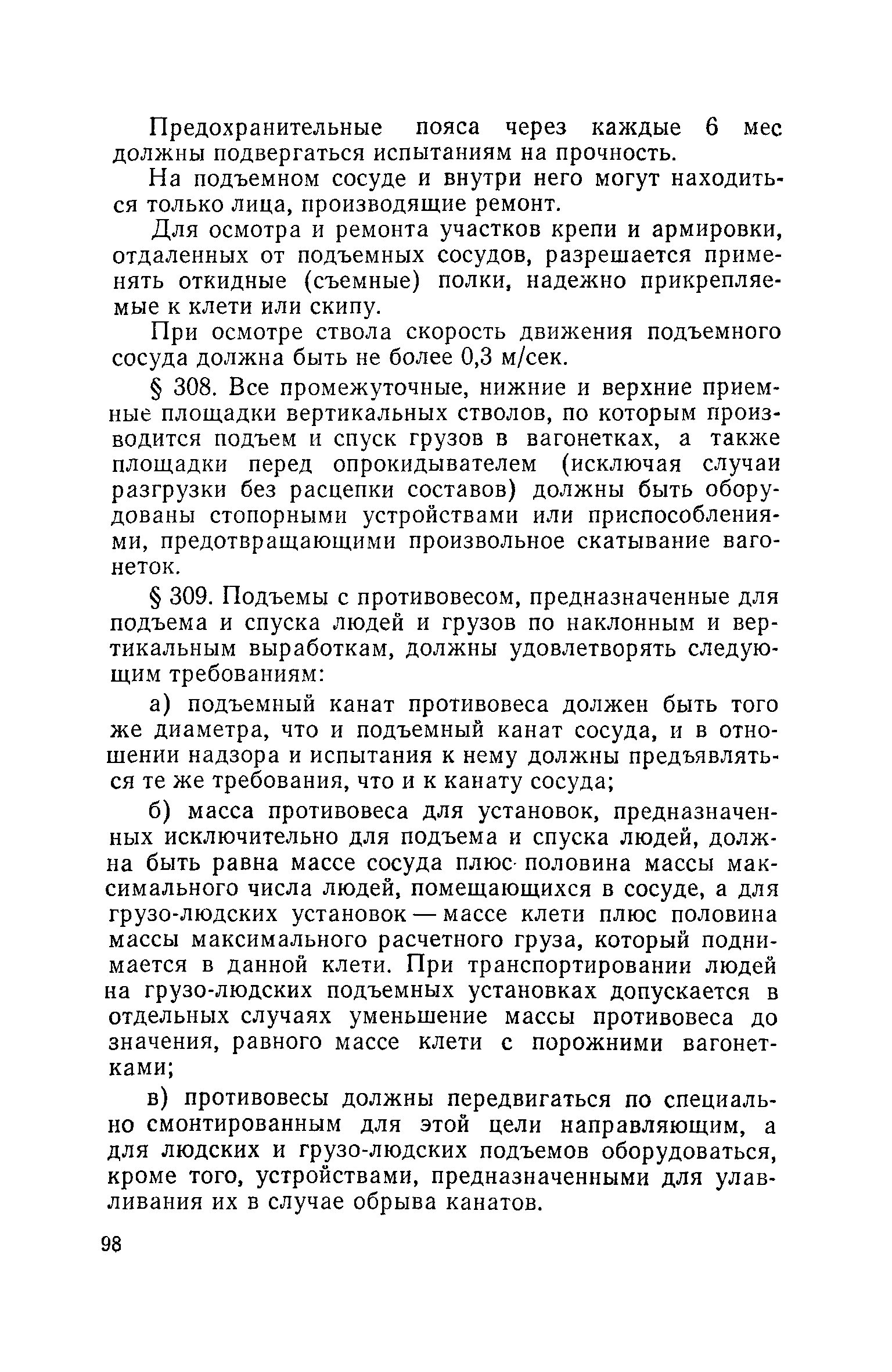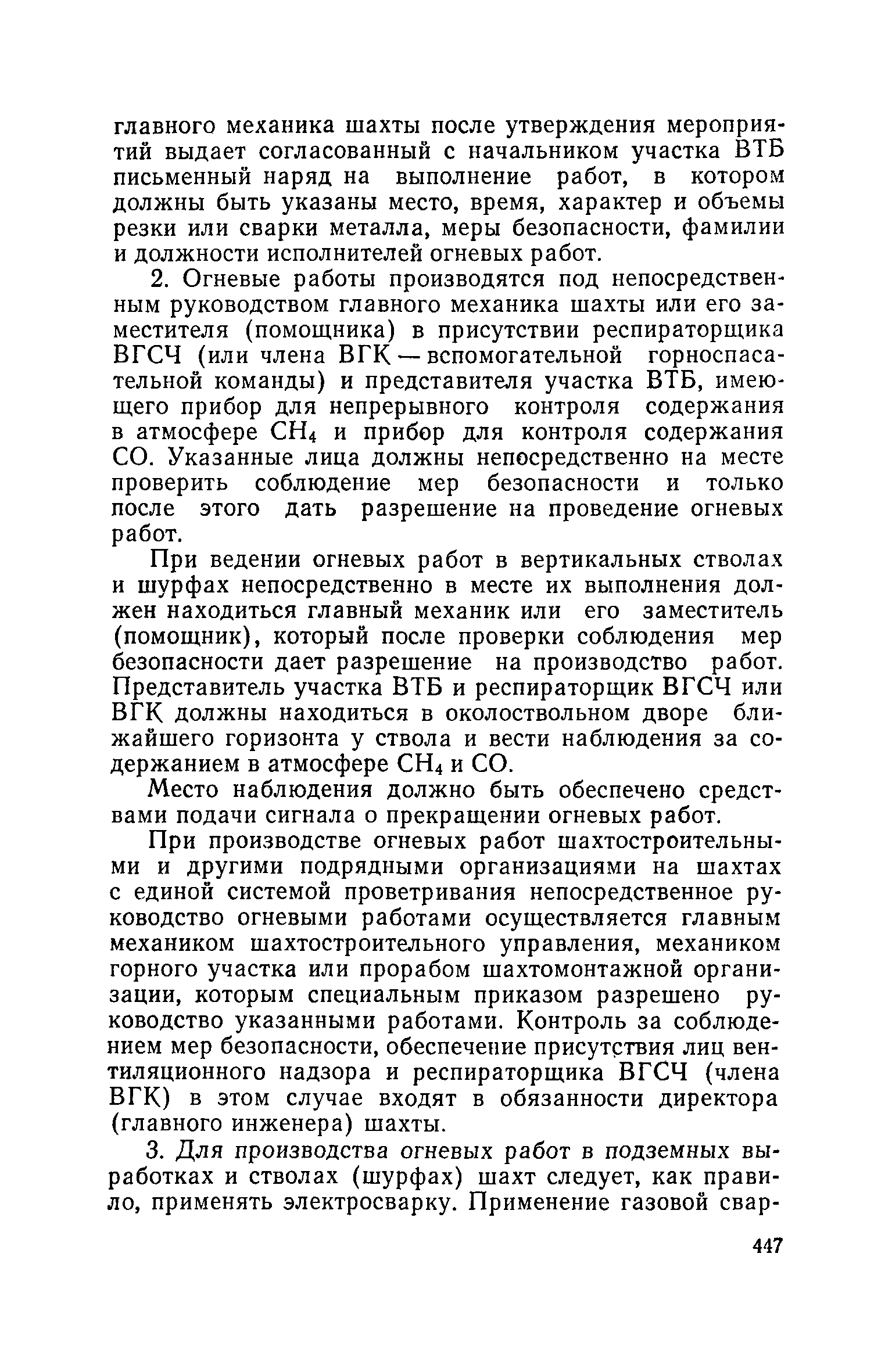 Правила безопасности в угольных и сланцевых шахтах| Статус: | не действует | | Название рус.: | Правила безопасности в угольных и сланцевых шахтах | | Дата добавления в базу: | 01.02.2020 | | Дата актуализации: | 01.01.2021 | | Область применения: | Правила обязательны для административно-технических руководителей и других должностных лиц действующих и строящихся шахт, а также для работников научно-исследовательских, проектных и других организаций и учреждений. Правила распространяются на проектирование, строительство, реконструкцию и эксплуатацию угольных и сланцевых шахт. | | Оглавление: | Глава I. Общие правила Глава II. Ведение горных работ Глава III. Проветривание подземных выработок и пылегазовый режим Глава IV. Рудничный транспорт и подъем Глава V. Электротехническое хозяйство Глава VI. Предупреждение и тушение рудничных пожаров Глава VII. Предотвращение затоплений действующих выработок Глава VIII. Промышленная санитарии Глава IХ. Ответственность за нарушение правил безопасности Инструкция по составлению планов ликвидации аварий Инструкция по составлению проектов вскрытия и подготовки выемочных участков, подготовки очистных забоев, паспортов управления кровлей, проведения и крепления подземных выработок Инструкция по безопасному ведению горных работ на пластах, склонных к внезапным выбросам угля, породы и газа Инструкция по безопасному ведению горных работ на шахтах, разрабатывающих пласты, опасные по горным ударам Инструкция по отбору проб рудничного воздуха, определению газообильности и установлению категорий шахт по метану Инструкция по безопасной эксплуатации установок кондиционирования рудничного воздуха Инструкция по реверсированию вентиляционной струи и проверке действия реверсивных устройств вентиляторных установок Инструкция по разгазированию горных выработок и борьбе со слоевыми и местными скоплениями метана Инструкция по безопасному ведению дегазационных работ на шахтах Инструкция по предупреждению и локализации взрывов угольной пыли Инструкция по составлению вентиляционных планов Инструкция по замеру концентрации газов в шахте и применению автоматических приборов контроля содержания метана Инструкция по безопасной эксплуатации подземных пассажирских подвесных канатных дорог Инструкция по электроснабжению и применению электрооборудования в тупиковых выработках, проветриваемых ВМП, в шахтах, опасных по газу Инструкция по электроснабжению и применению электрооборудования на пологих и наклонных пластах, опасных по внезапным выбросам угля и газа Инструкция по электроснабжению и применению электрооборудования на шахтах, опасных по внезапным выбросам, разрабатывающих крутые пласты Инструкция по применению электрооборудования в рудничном нормальном и общепромышленном исполнении в шахтах, опасных по газу или пыли Инструкция по выбору и проверке уставок реле максимального тока и плавких вставок предохранителей в шахтных электрических сетях Инструкция по устройству, осмотру и измерению сопротивления шахтных заземлений Инструкция по осмотру и ревизии рудничного взрывобезопасного электрооборудования Инструкция по проверке максимальной токовой защиты шахтных аппаратов Инструкция по противопожарной защите угольных и сланцевых шахт Инструкция по ведению огневых работ в подземных выработк
