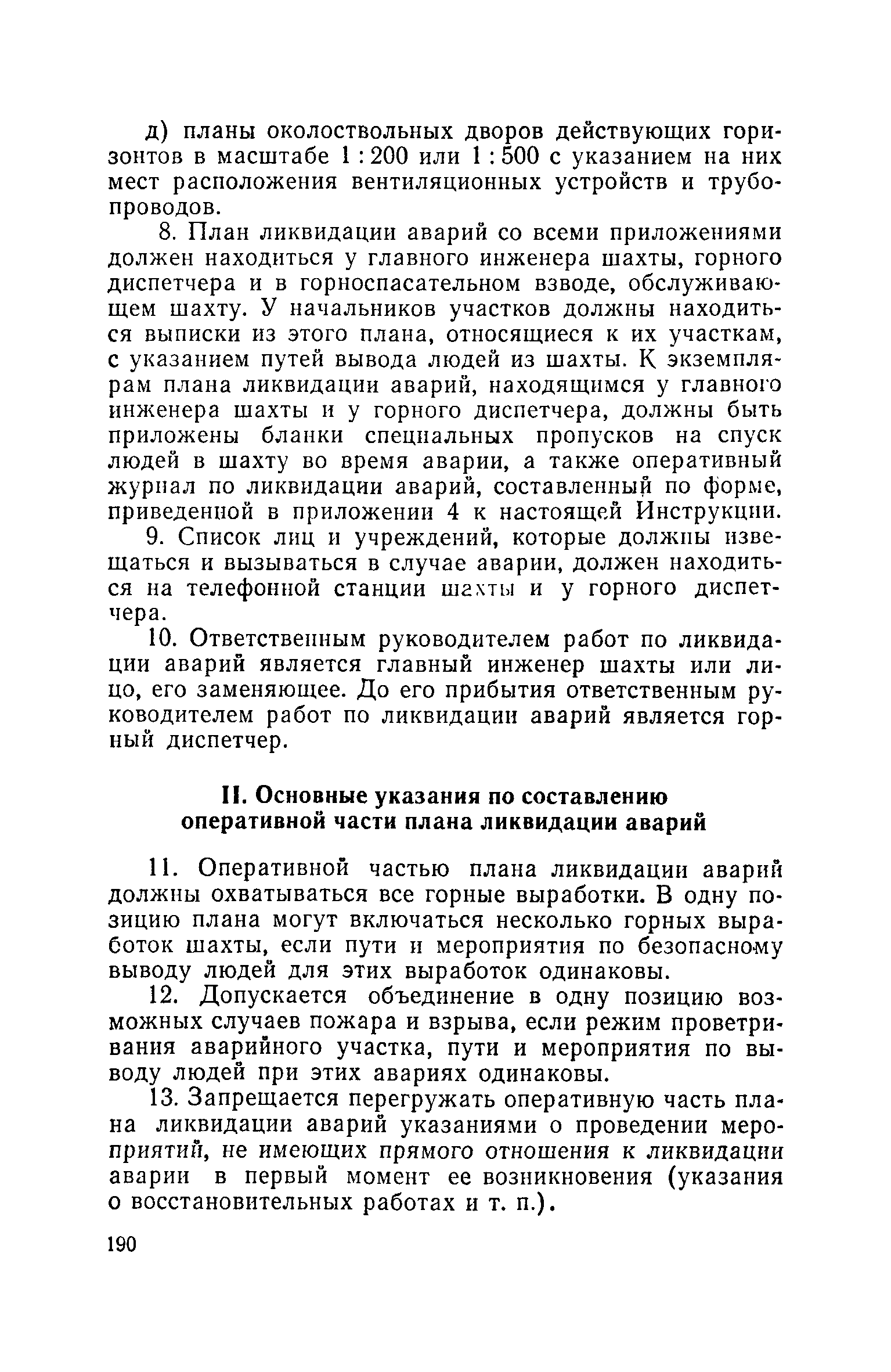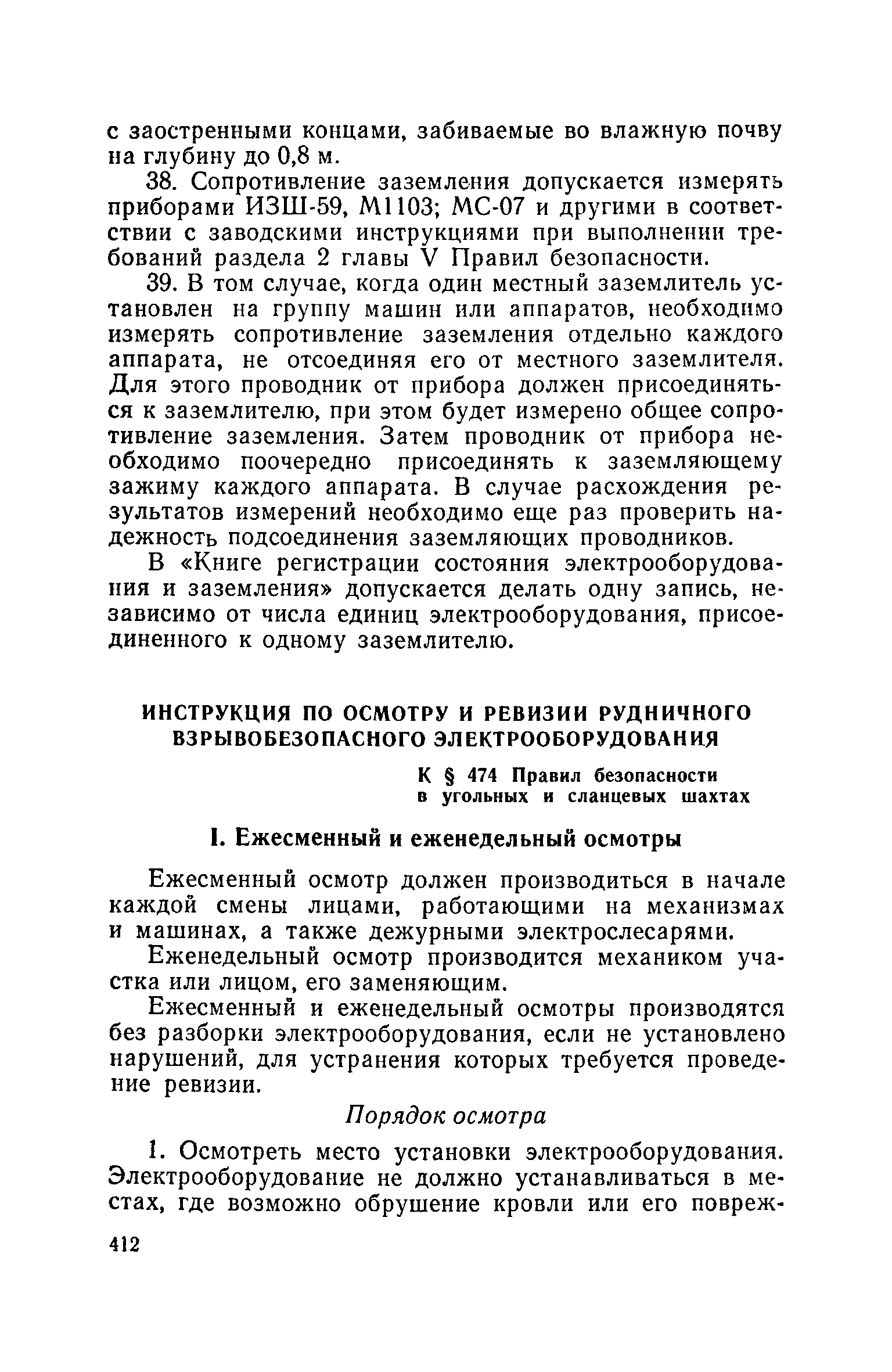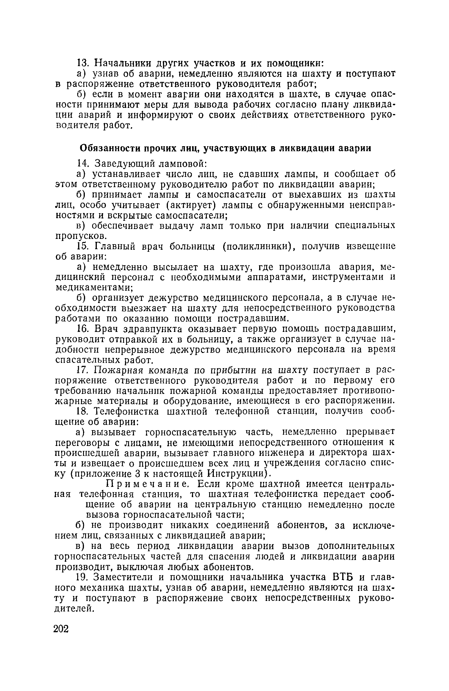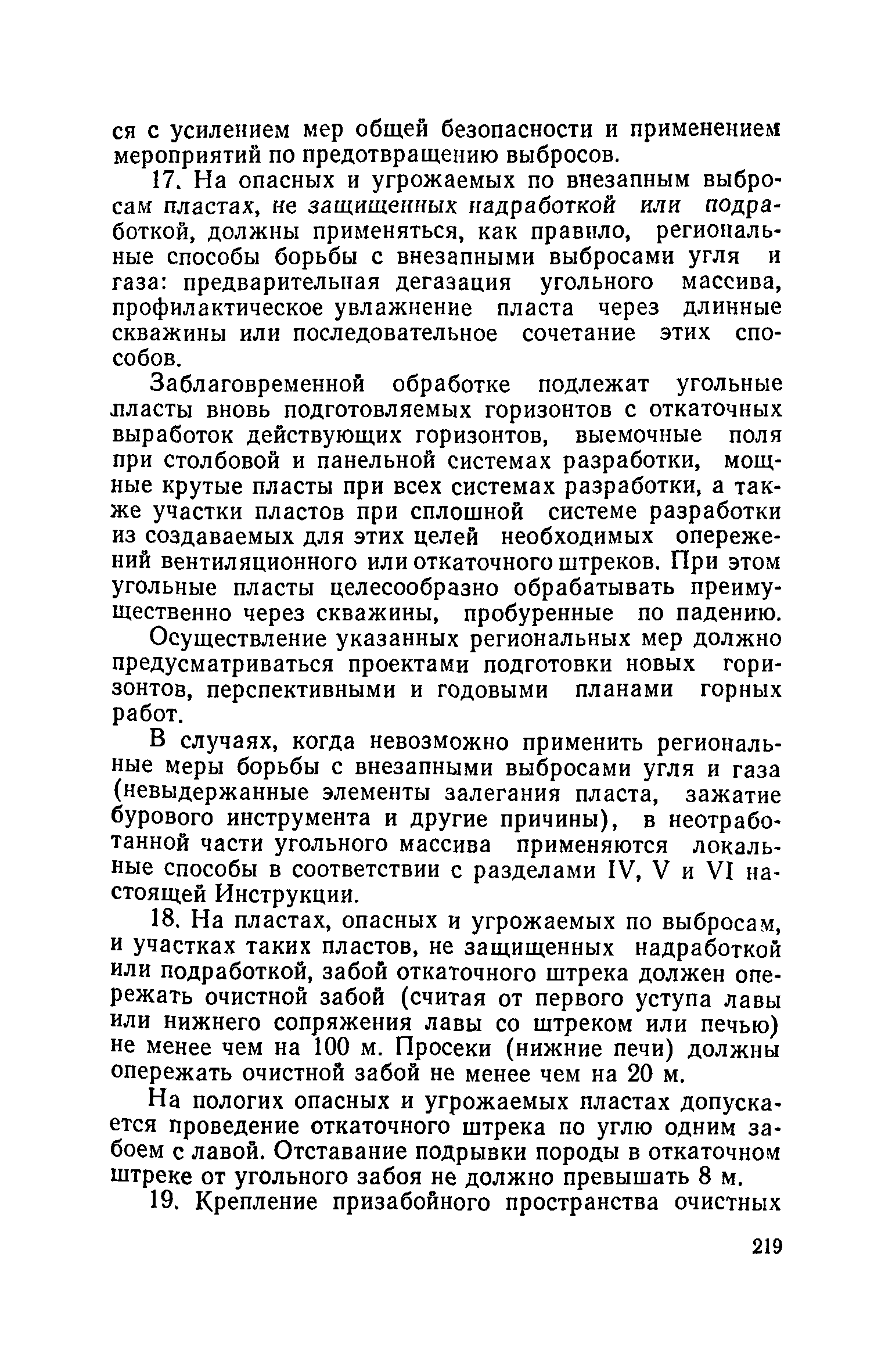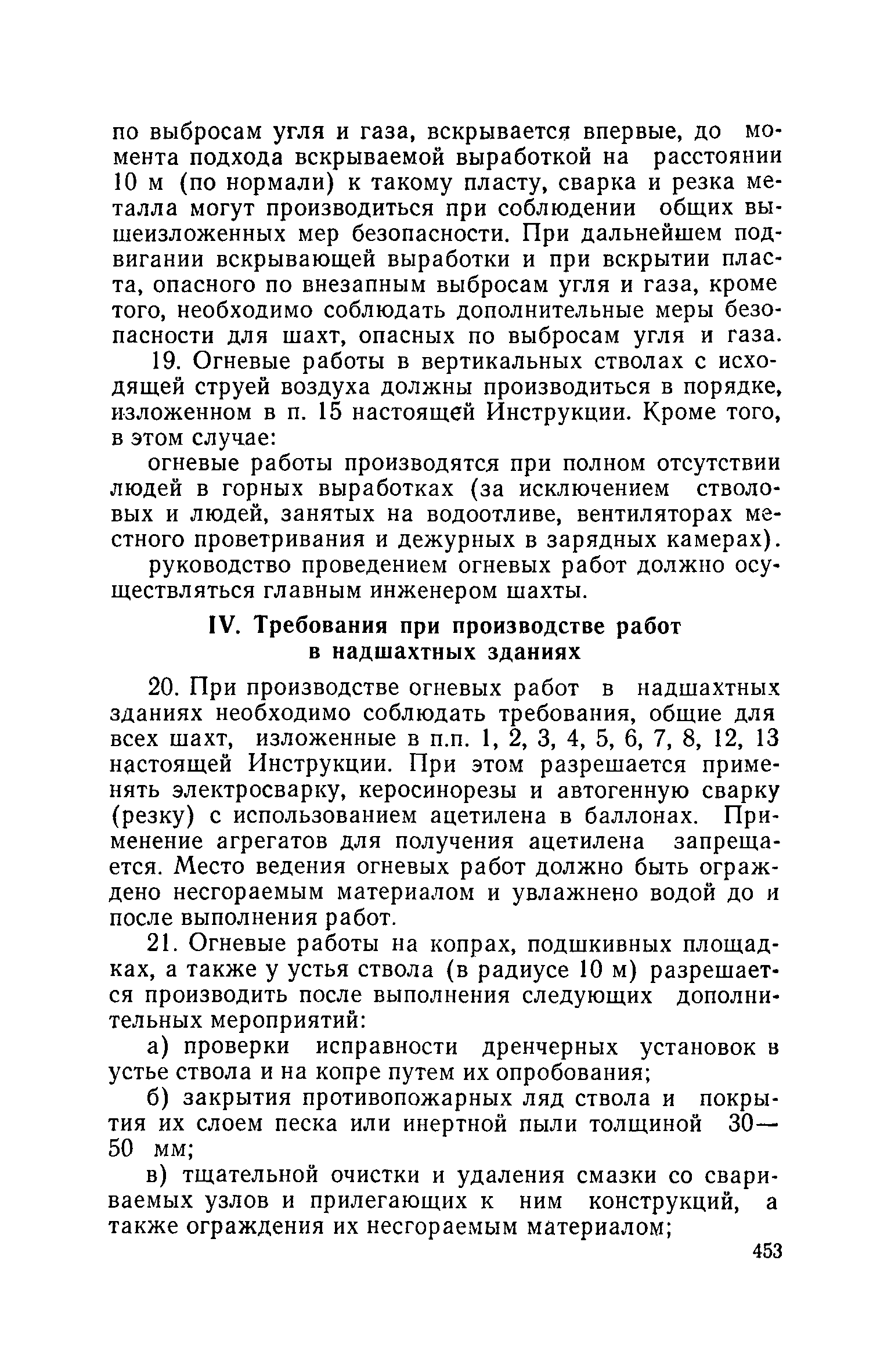 Правила безопасности в угольных и сланцевых шахтах| Статус: | не действует | | Название рус.: | Правила безопасности в угольных и сланцевых шахтах | | Дата добавления в базу: | 01.02.2020 | | Дата актуализации: | 01.01.2021 | | Область применения: | Правила обязательны для административно-технических руководителей и других должностных лиц действующих и строящихся шахт, а также для работников научно-исследовательских, проектных и других организаций и учреждений. Правила распространяются на проектирование, строительство, реконструкцию и эксплуатацию угольных и сланцевых шахт. | | Оглавление: | Глава I. Общие правила Глава II. Ведение горных работ Глава III. Проветривание подземных выработок и пылегазовый режим Глава IV. Рудничный транспорт и подъем Глава V. Электротехническое хозяйство Глава VI. Предупреждение и тушение рудничных пожаров Глава VII. Предотвращение затоплений действующих выработок Глава VIII. Промышленная санитарии Глава IХ. Ответственность за нарушение правил безопасности Инструкция по составлению планов ликвидации аварий Инструкция по составлению проектов вскрытия и подготовки выемочных участков, подготовки очистных забоев, паспортов управления кровлей, проведения и крепления подземных выработок Инструкция по безопасному ведению горных работ на пластах, склонных к внезапным выбросам угля, породы и газа Инструкция по безопасному ведению горных работ на шахтах, разрабатывающих пласты, опасные по горным ударам Инструкция по отбору проб рудничного воздуха, определению газообильности и установлению категорий шахт по метану Инструкция по безопасной эксплуатации установок кондиционирования рудничного воздуха Инструкция по реверсированию вентиляционной струи и проверке действия реверсивных устройств вентиляторных установок Инструкция по разгазированию горных выработок и борьбе со слоевыми и местными скоплениями метана Инструкция по безопасному ведению дегазационных работ на шахтах Инструкция по предупреждению и локализации взрывов угольной пыли Инструкция по составлению вентиляционных планов Инструкция по замеру концентрации газов в шахте и применению автоматических приборов контроля содержания метана Инструкция по безопасной эксплуатации подземных пассажирских подвесных канатных дорог Инструкция по электроснабжению и применению электрооборудования в тупиковых выработках, проветриваемых ВМП, в шахтах, опасных по газу Инструкция по электроснабжению и применению электрооборудования на пологих и наклонных пластах, опасных по внезапным выбросам угля и газа Инструкция по электроснабжению и применению электрооборудования на шахтах, опасных по внезапным выбросам, разрабатывающих крутые пласты Инструкция по применению электрооборудования в рудничном нормальном и общепромышленном исполнении в шахтах, опасных по газу или пыли Инструкция по выбору и проверке уставок реле максимального тока и плавких вставок предохранителей в шахтных электрических сетях Инструкция по устройству, осмотру и измерению сопротивления шахтных заземлений Инструкция по осмотру и ревизии рудничного взрывобезопасного электрооборудования Инструкция по проверке максимальной токовой защиты шахтных аппаратов Инструкция по противопожарной защите угольных и сланцевых шахт Инструкция по ведению огневых работ в подземных выработк