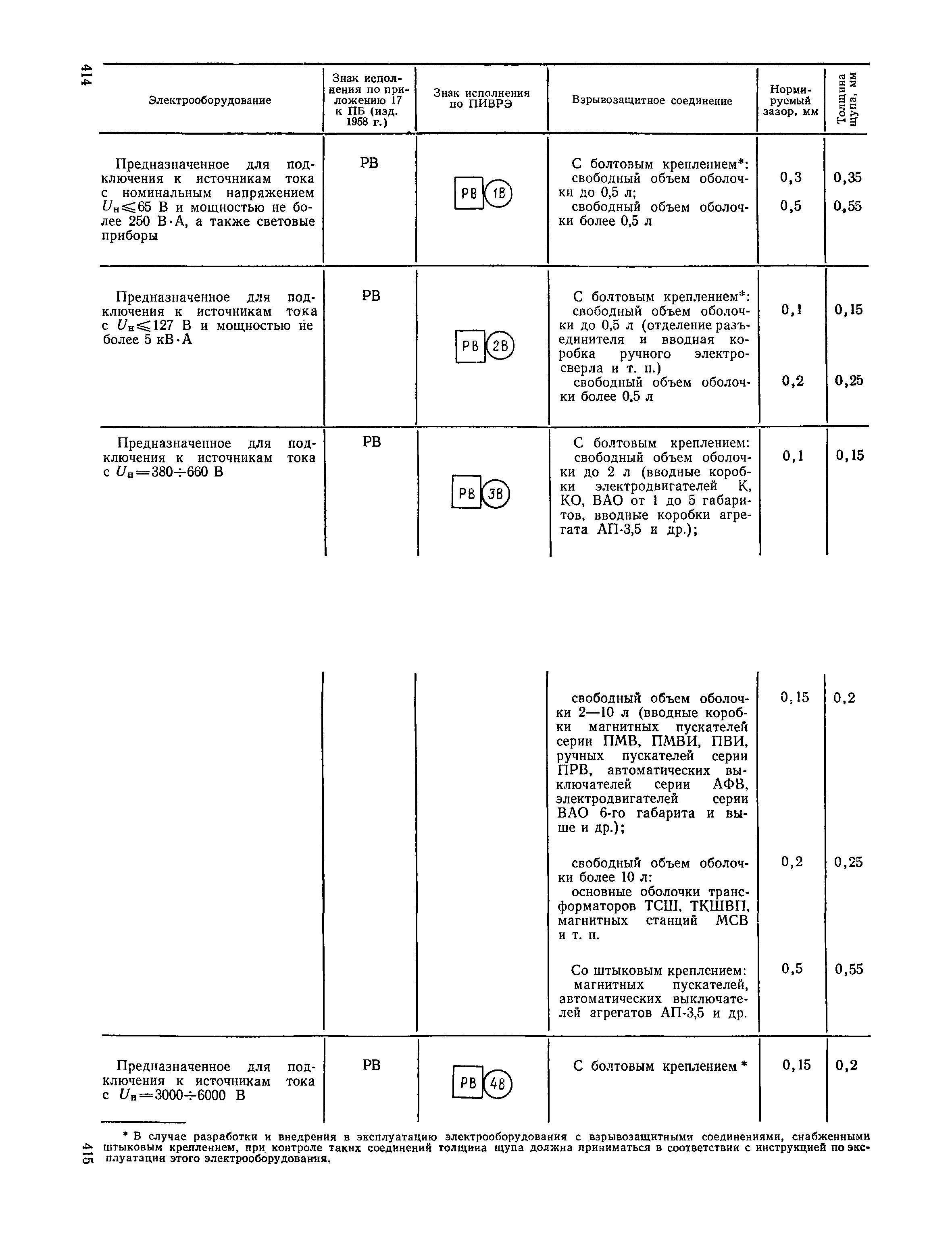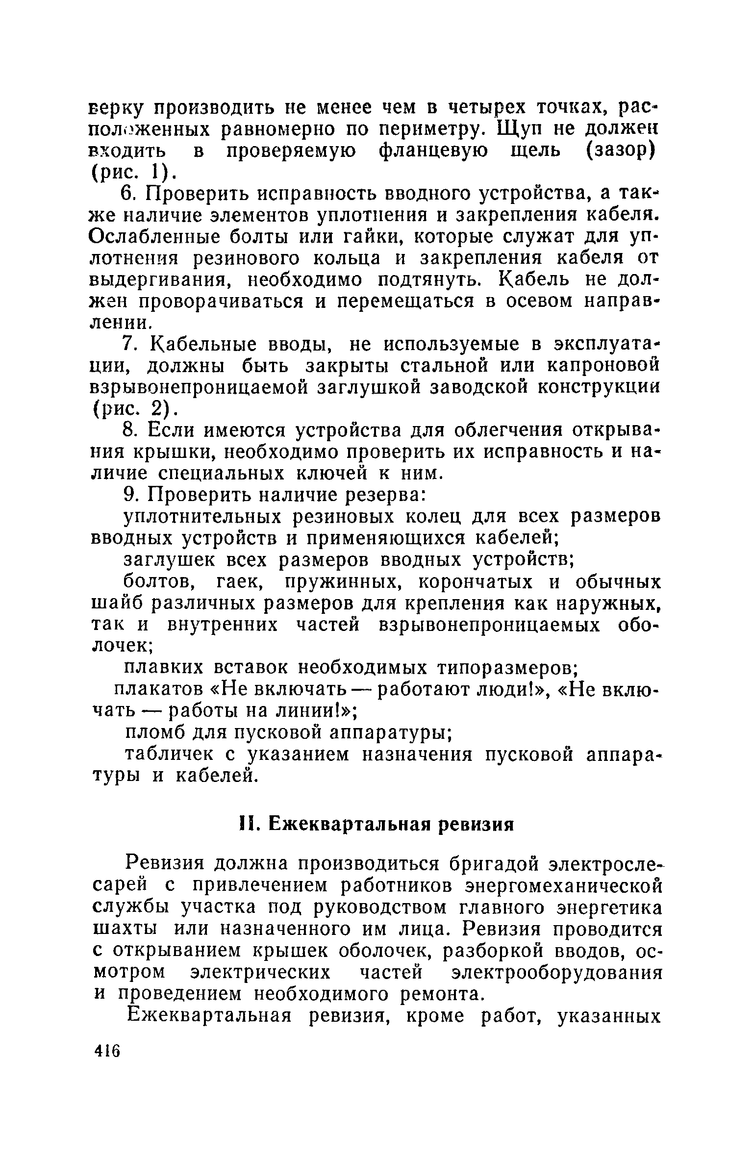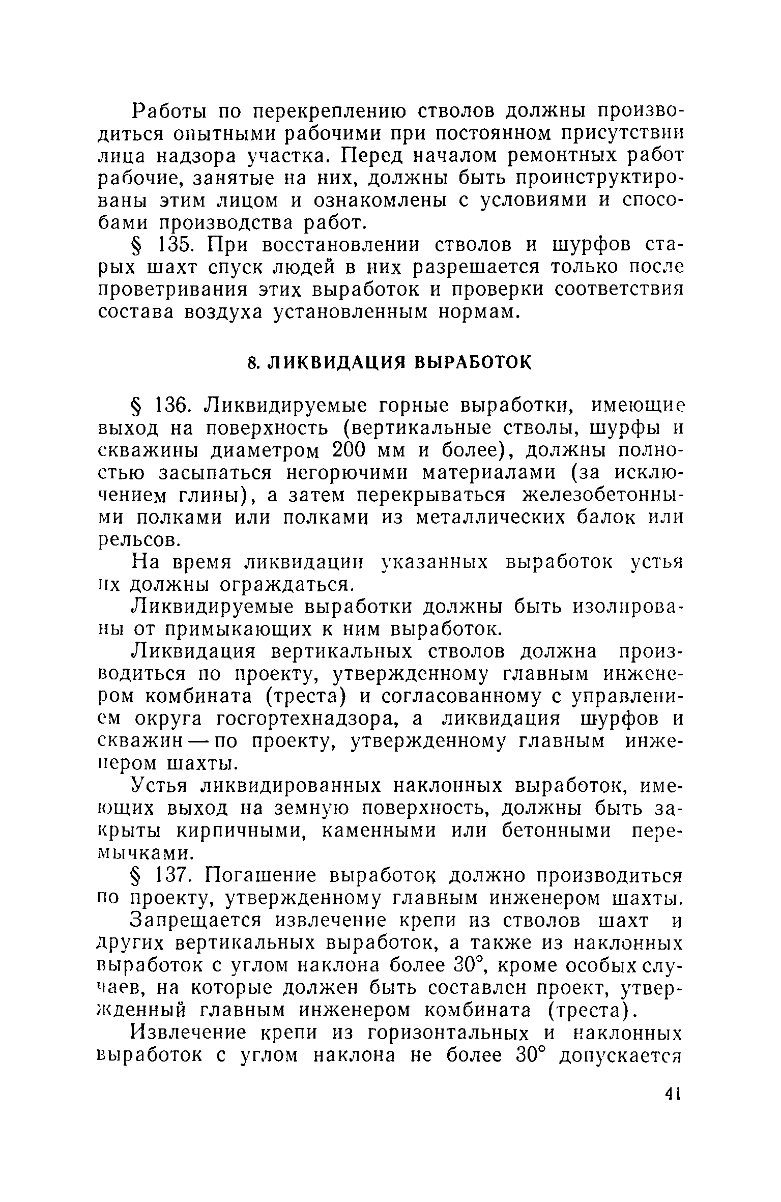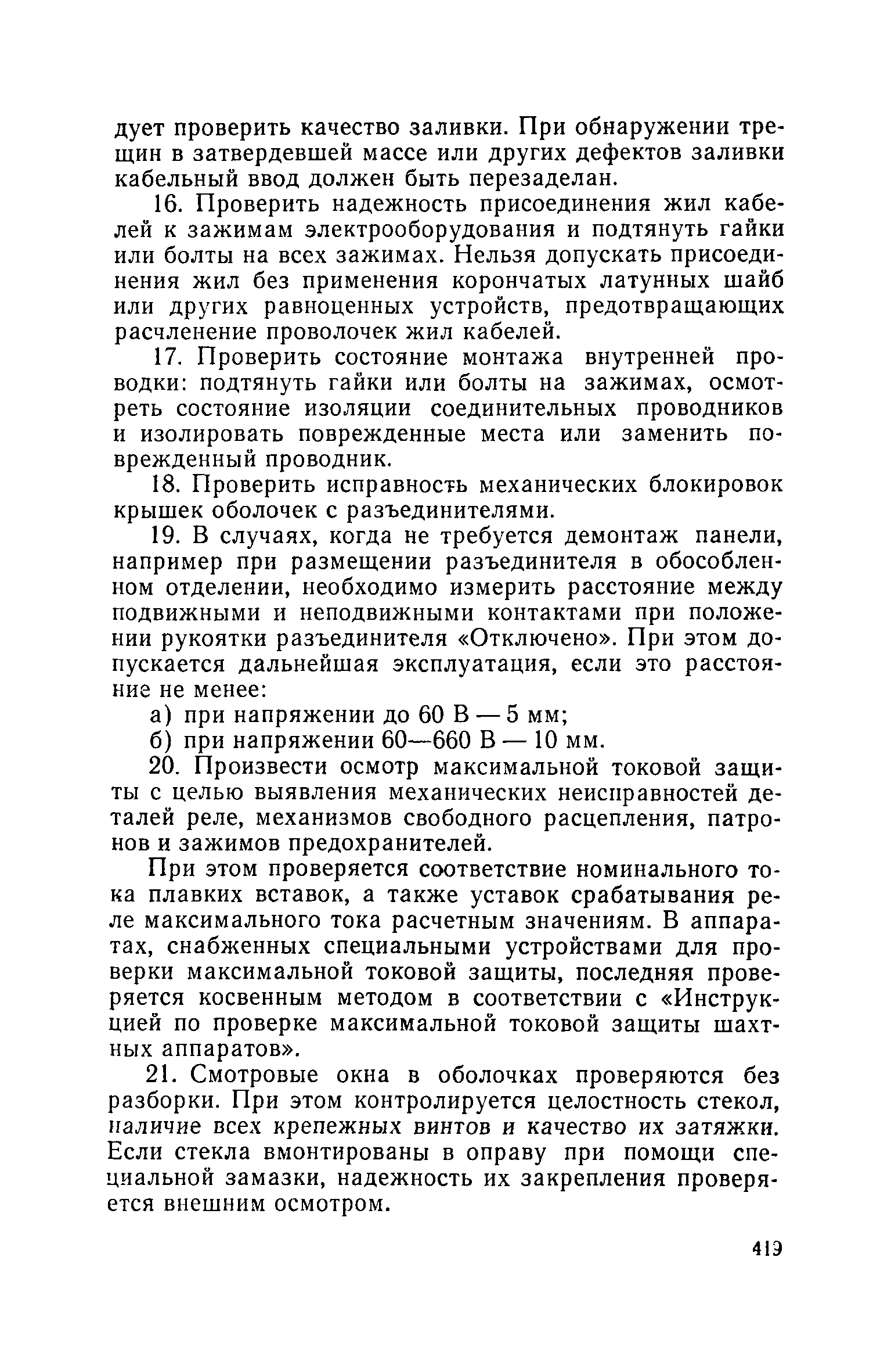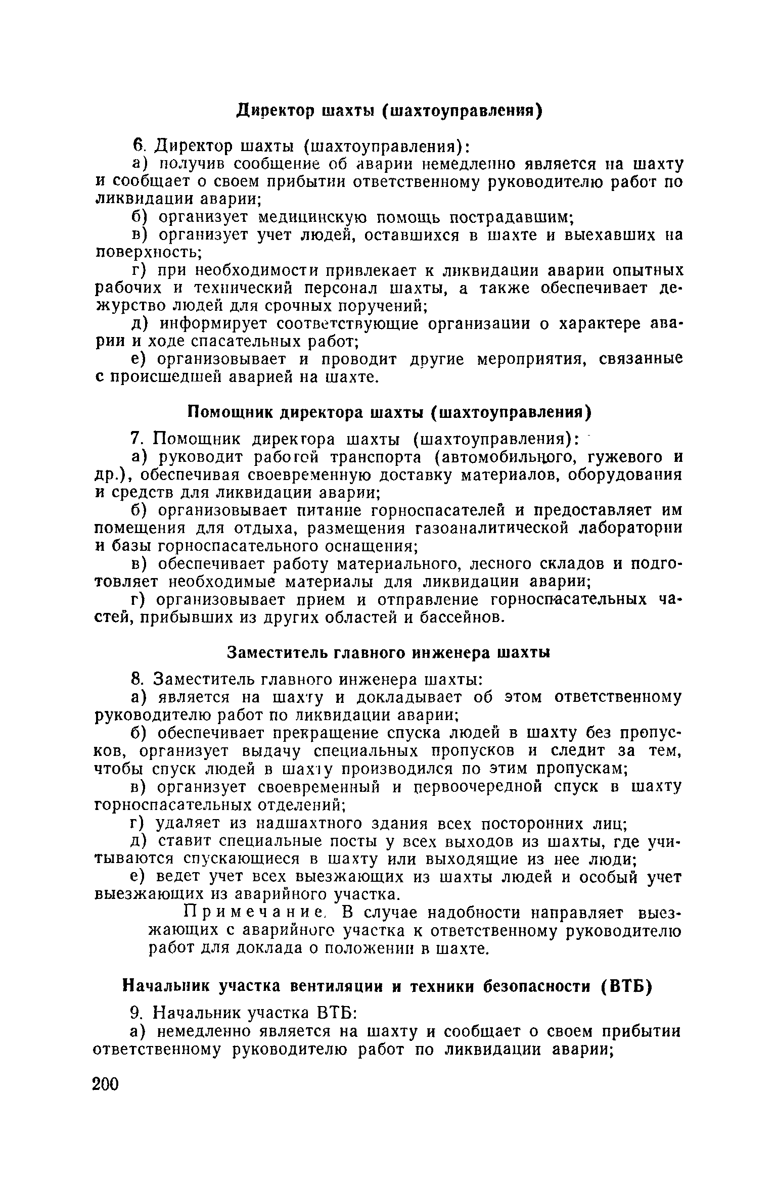 Правила безопасности в угольных и сланцевых шахтах| Статус: | не действует | | Название рус.: | Правила безопасности в угольных и сланцевых шахтах | | Дата добавления в базу: | 01.02.2020 | | Дата актуализации: | 01.01.2021 | | Область применения: | Правила обязательны для административно-технических руководителей и других должностных лиц действующих и строящихся шахт, а также для работников научно-исследовательских, проектных и других организаций и учреждений. Правила распространяются на проектирование, строительство, реконструкцию и эксплуатацию угольных и сланцевых шахт. | | Оглавление: | Глава I. Общие правила Глава II. Ведение горных работ Глава III. Проветривание подземных выработок и пылегазовый режим Глава IV. Рудничный транспорт и подъем Глава V. Электротехническое хозяйство Глава VI. Предупреждение и тушение рудничных пожаров Глава VII. Предотвращение затоплений действующих выработок Глава VIII. Промышленная санитарии Глава IХ. Ответственность за нарушение правил безопасности Инструкция по составлению планов ликвидации аварий Инструкция по составлению проектов вскрытия и подготовки выемочных участков, подготовки очистных забоев, паспортов управления кровлей, проведения и крепления подземных выработок Инструкция по безопасному ведению горных работ на пластах, склонных к внезапным выбросам угля, породы и газа Инструкция по безопасному ведению горных работ на шахтах, разрабатывающих пласты, опасные по горным ударам Инструкция по отбору проб рудничного воздуха, определению газообильности и установлению категорий шахт по метану Инструкция по безопасной эксплуатации установок кондиционирования рудничного воздуха Инструкция по реверсированию вентиляционной струи и проверке действия реверсивных устройств вентиляторных установок Инструкция по разгазированию горных выработок и борьбе со слоевыми и местными скоплениями метана Инструкция по безопасному ведению дегазационных работ на шахтах Инструкция по предупреждению и локализации взрывов угольной пыли Инструкция по составлению вентиляционных планов Инструкция по замеру концентрации газов в шахте и применению автоматических приборов контроля содержания метана Инструкция по безопасной эксплуатации подземных пассажирских подвесных канатных дорог Инструкция по электроснабжению и применению электрооборудования в тупиковых выработках, проветриваемых ВМП, в шахтах, опасных по газу Инструкция по электроснабжению и применению электрооборудования на пологих и наклонных пластах, опасных по внезапным выбросам угля и газа Инструкция по электроснабжению и применению электрооборудования на шахтах, опасных по внезапным выбросам, разрабатывающих крутые пласты Инструкция по применению электрооборудования в рудничном нормальном и общепромышленном исполнении в шахтах, опасных по газу или пыли Инструкция по выбору и проверке уставок реле максимального тока и плавких вставок предохранителей в шахтных электрических сетях Инструкция по устройству, осмотру и измерению сопротивления шахтных заземлений Инструкция по осмотру и ревизии рудничного взрывобезопасного электрооборудования Инструкция по проверке максимальной токовой защиты шахтных аппаратов Инструкция по противопожарной защите угольных и сланцевых шахт Инструкция по ведению огневых работ в подземных выработк