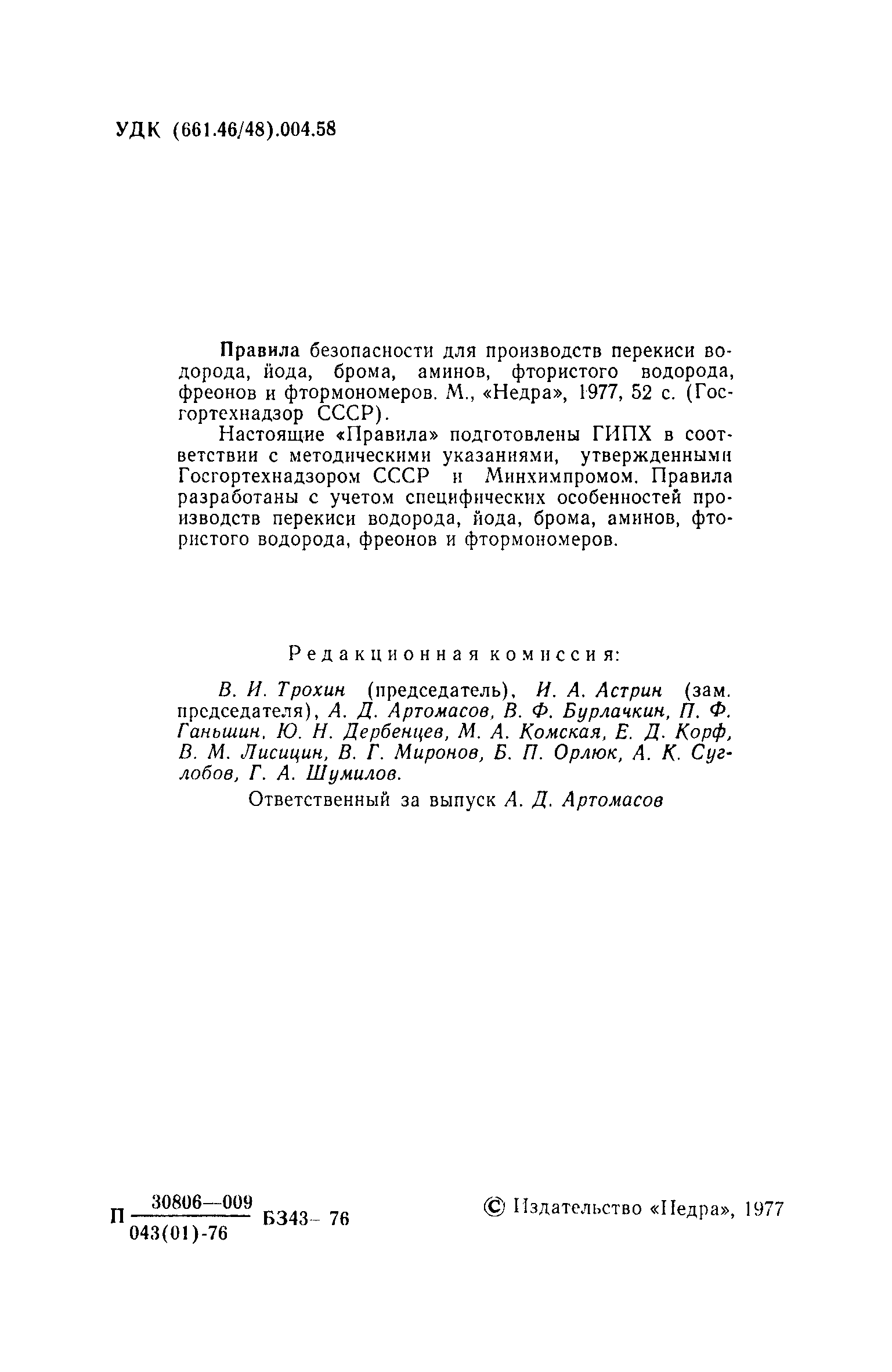 - «Правила и нормы техники безопасности и промышленной санитарии для проектирования, строительства и эксплуатации производства перекиси водорода (пергидроля) электрохимическим способом» (Издание 1963 г)