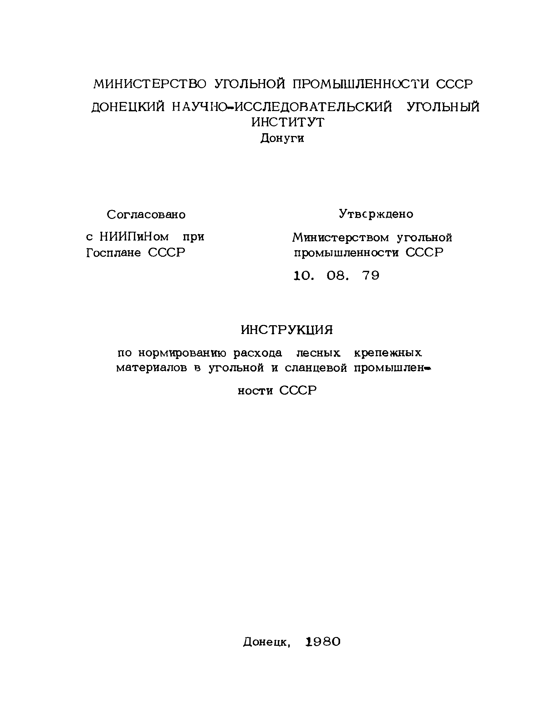 | Утверждён: | 10.08.1979 Министерство угольной промышленности СССР (USSR Ministry of the Coal Industry )