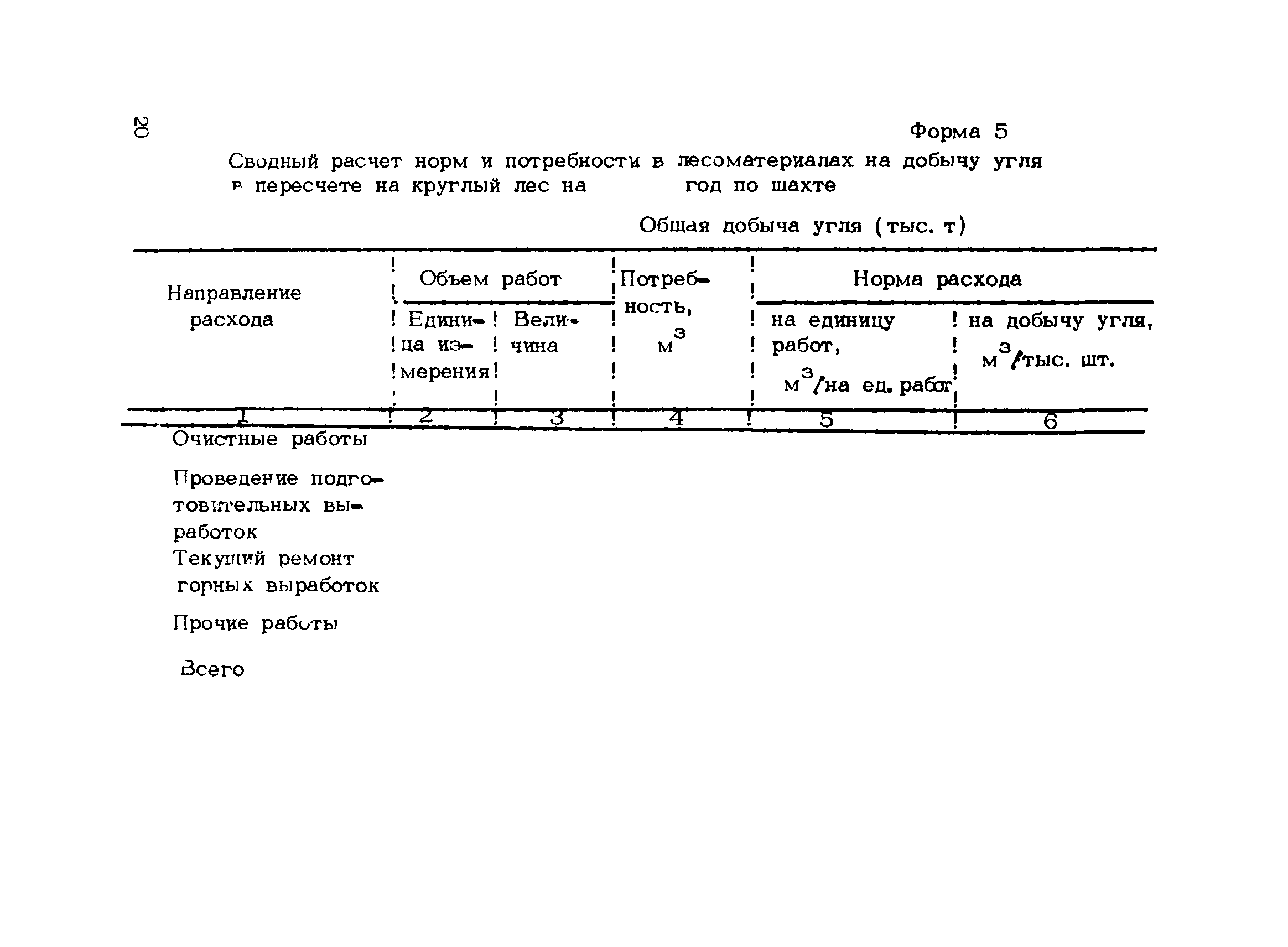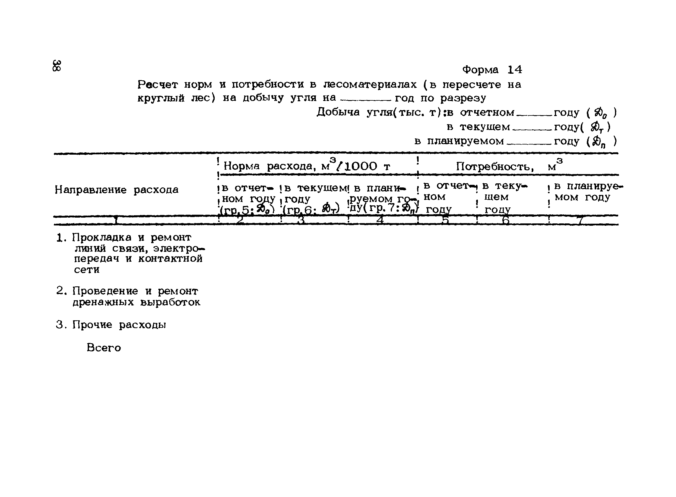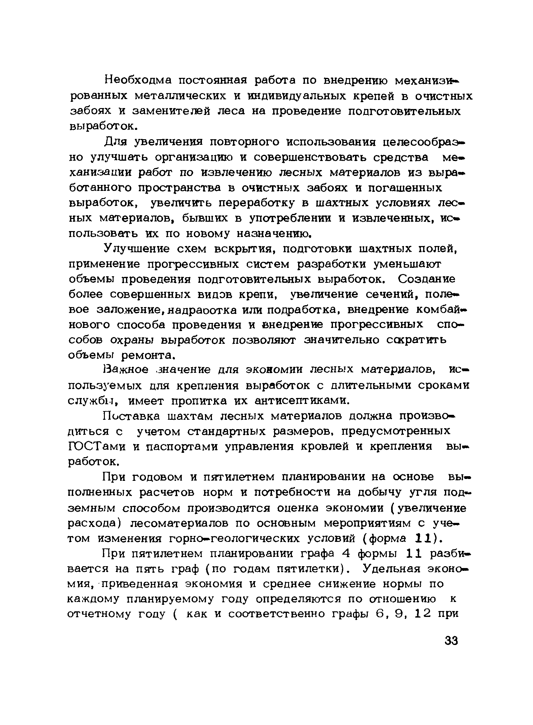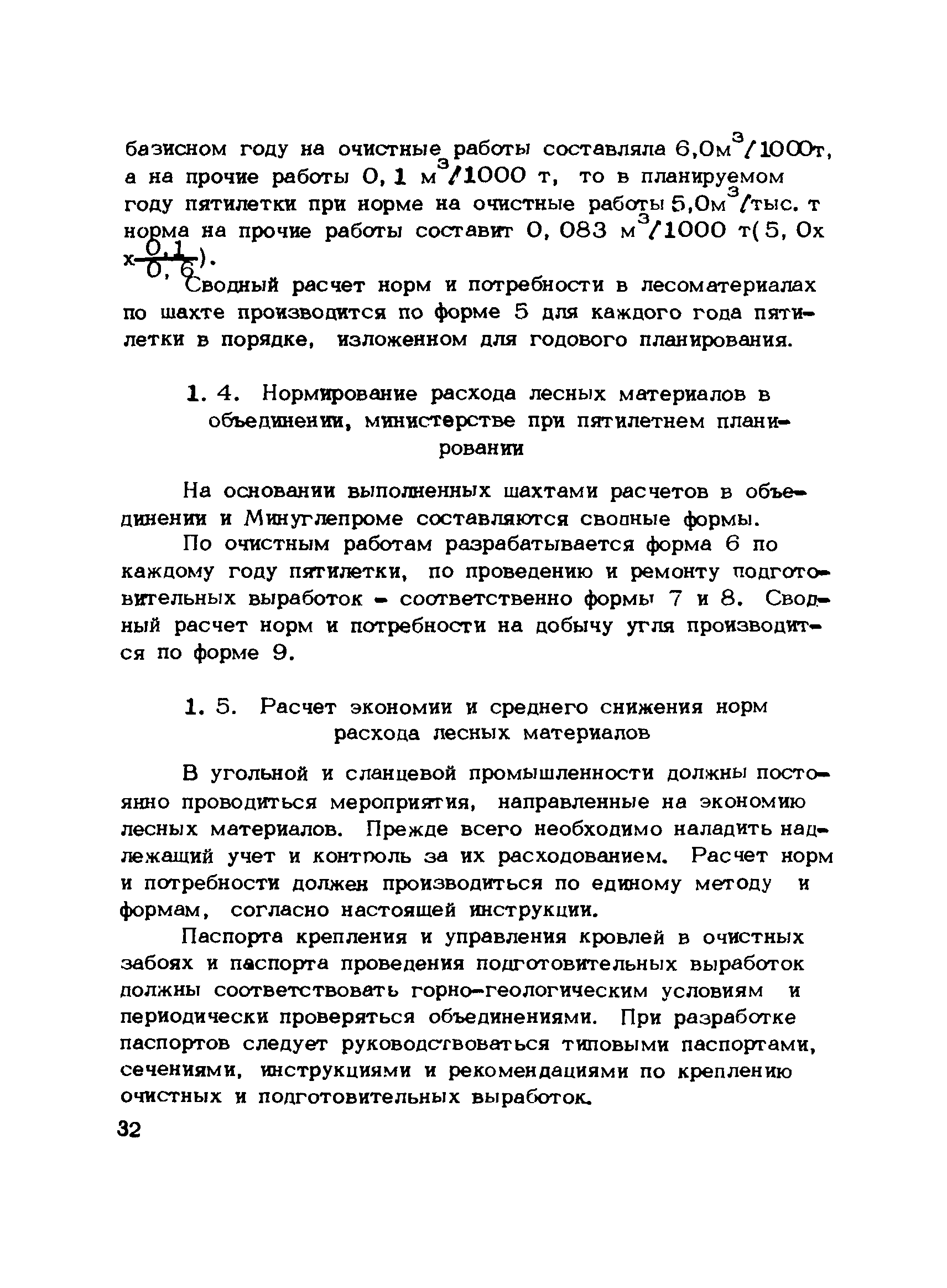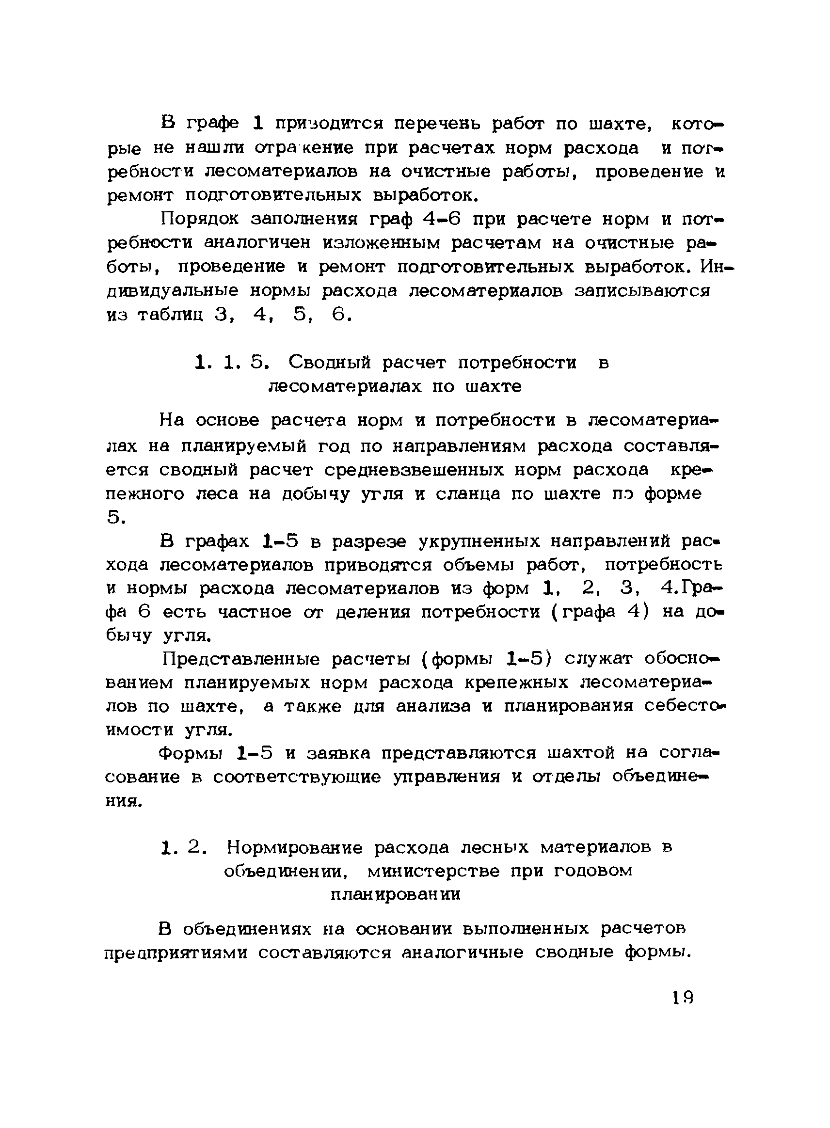 | Оглавление: | 1. Подземный способ добычи угля и сланца (без участков открытых работ) 1.1 Нормирование расхода лесных материалов на шахте при годовом планировании 1.2 Нормирование расхода лесных материалов в объединении, министерстве при годовом планировании 1.3 Нормирование расхода лесных материалов на шахте при пятилетнем планировании 1.4 Нормирование расхода лесных материалов в объединении, министерстве при пятилетнем планировании 1.5 Расчет экономии среднего снижения норм расхода лесных материалов 2 Открытый способ добычи угля 2.1 Нормирование расхода лесных материалов по разрезу при годовом планировании 2.2 Нормирование расхода лесных материалов в объединении, министерстве при годовом планировании 2.3 Нормирование расхода лесных материалов при пятилетнем планировании Приложение 1. Размеры лесопродукции по ГОСТам, применяемым в угольной промышленности Приложение 2. Требования к таблице расчета потребности в крепежных материалах, приводимой в паспортах и проектах на очистные и подготовительные забои |
