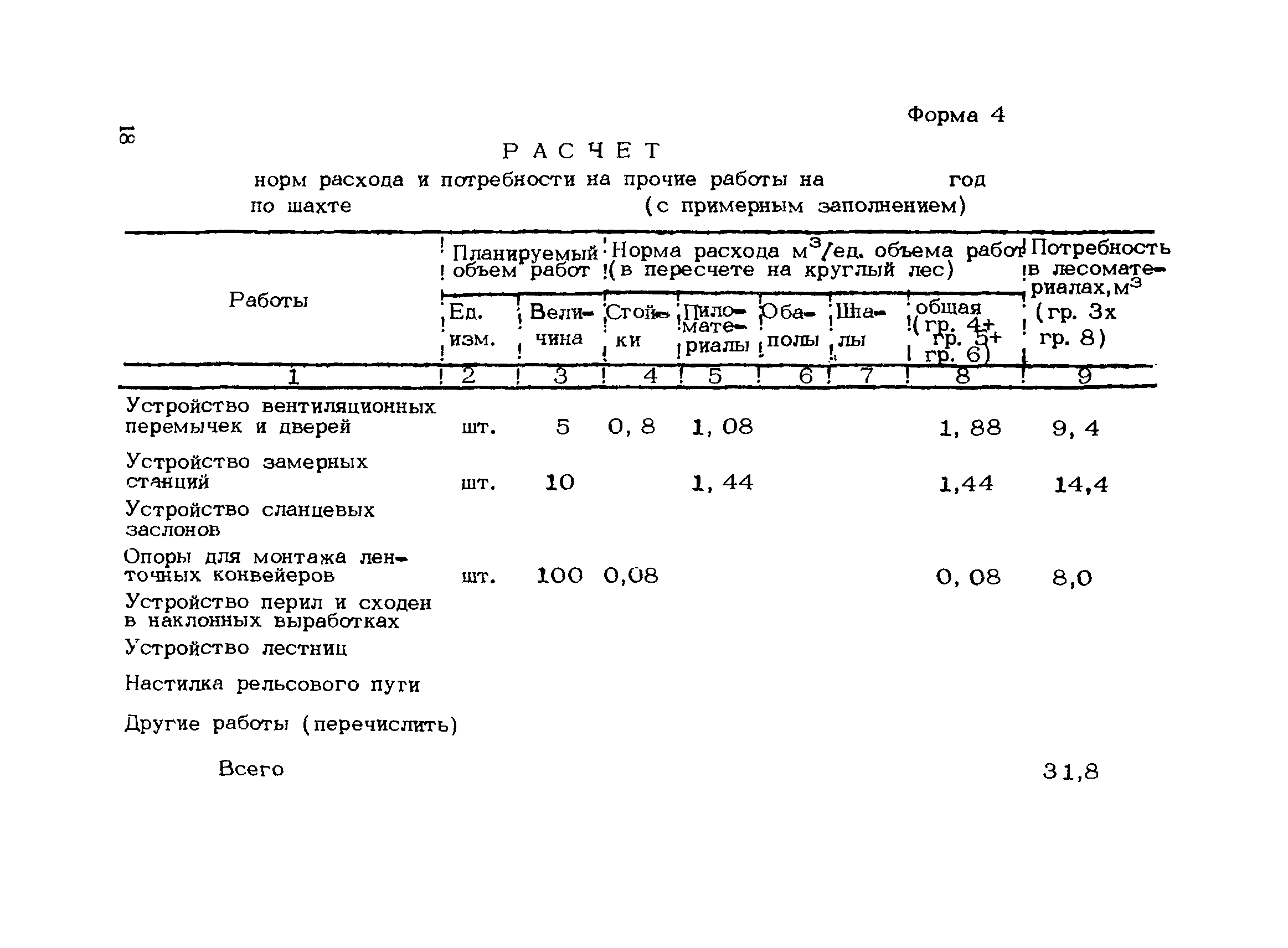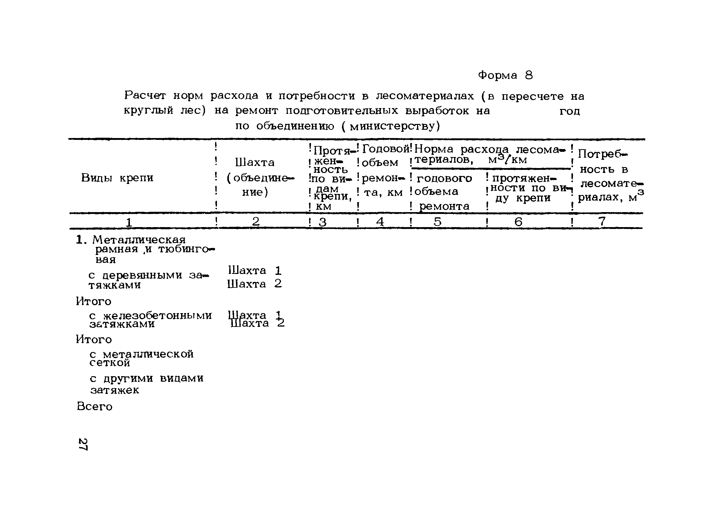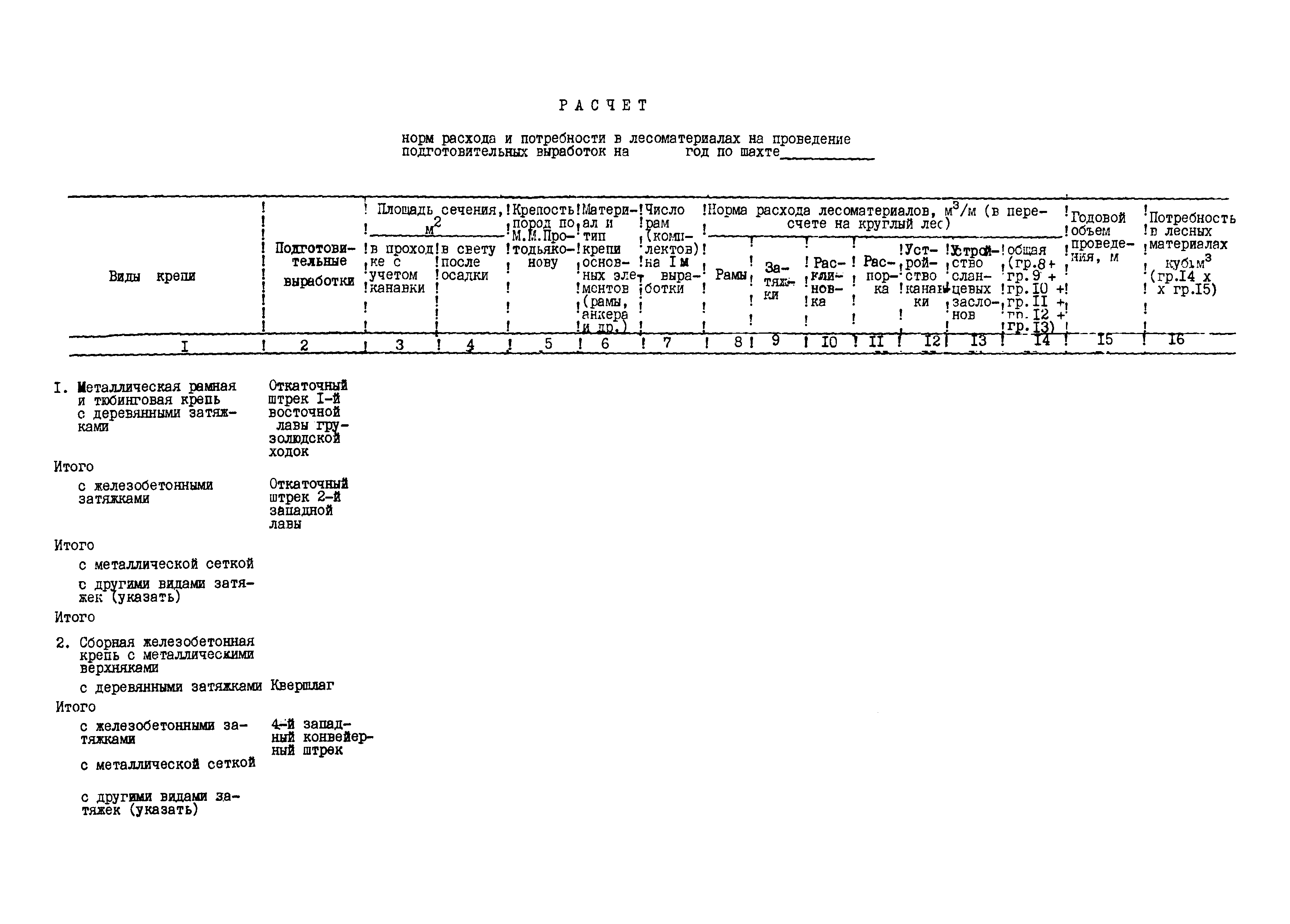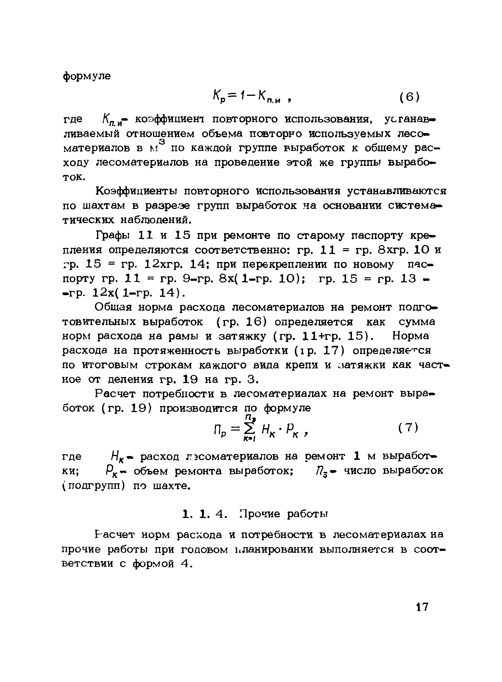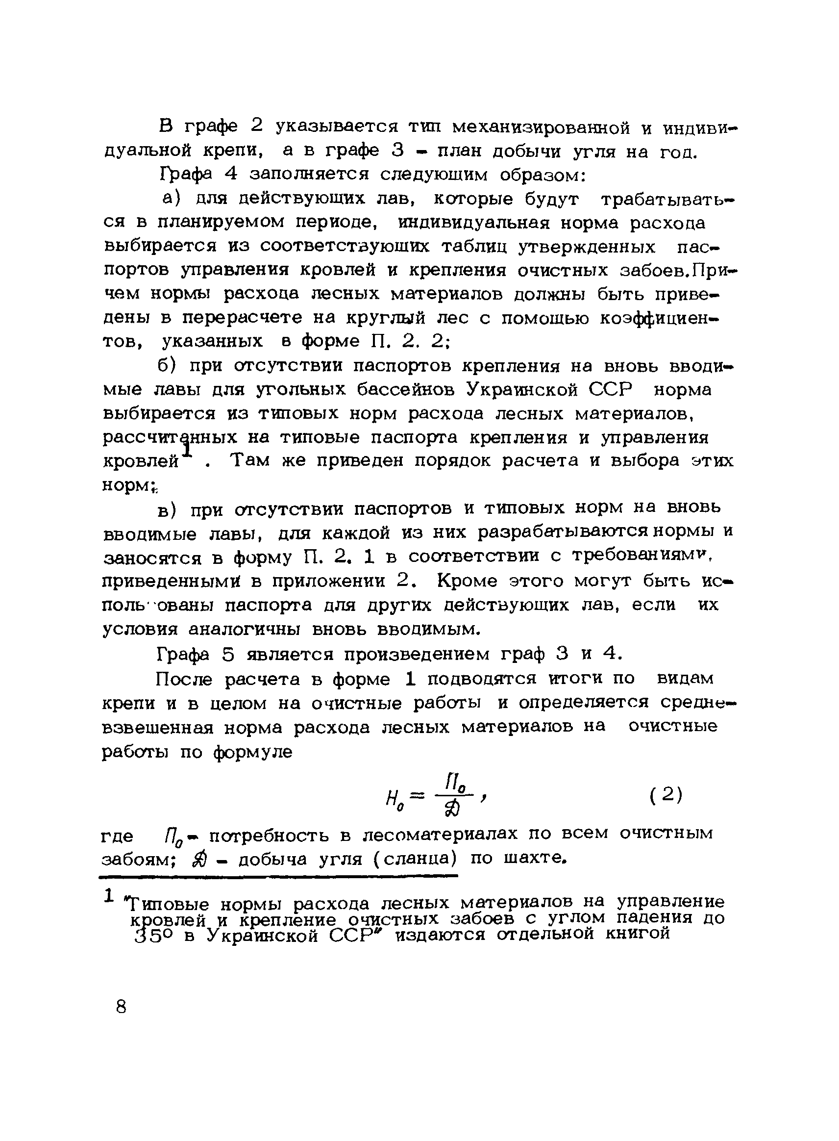 | Оглавление: | 1. Подземный способ добычи угля и сланца (без участков открытых работ) 1.1 Нормирование расхода лесных материалов на шахте при годовом планировании 1.2 Нормирование расхода лесных материалов в объединении, министерстве при годовом планировании 1.3 Нормирование расхода лесных материалов на шахте при пятилетнем планировании 1.4 Нормирование расхода лесных материалов в объединении, министерстве при пятилетнем планировании 1.5 Расчет экономии среднего снижения норм расхода лесных материалов 2 Открытый способ добычи угля 2.1 Нормирование расхода лесных материалов по разрезу при годовом планировании 2.2 Нормирование расхода лесных материалов в объединении, министерстве при годовом планировании 2.3 Нормирование расхода лесных материалов при пятилетнем планировании Приложение 1. Размеры лесопродукции по ГОСТам, применяемым в угольной промышленности Приложение 2. Требования к таблице расчета потребности в крепежных материалах, приводимой в паспортах и проектах на очистные и подготовительные забои |