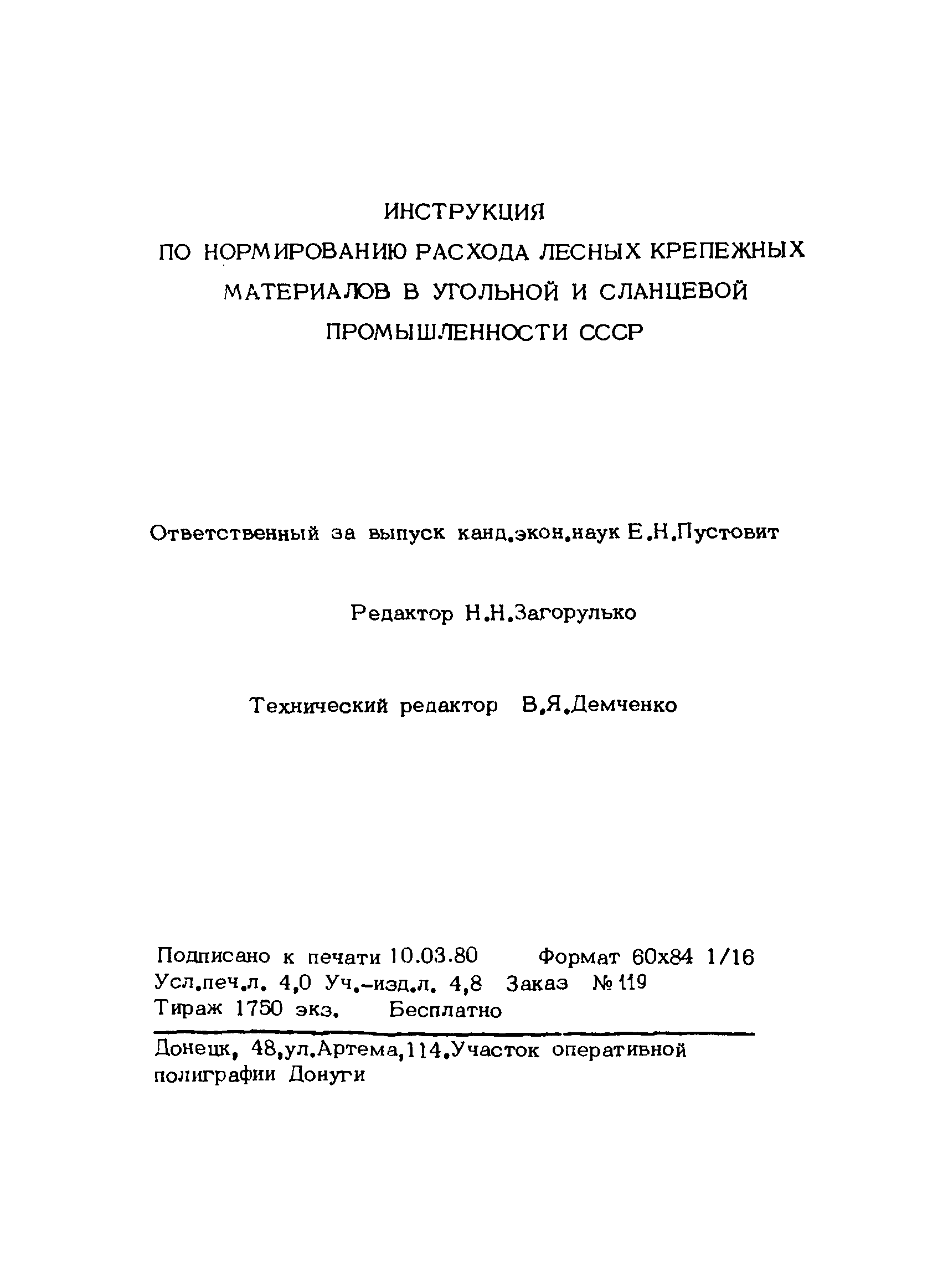 | Название рус.: | Инструкция по нормированию расхода лесных крепежных материалов в угольной и сланцевой промышленности СССР |