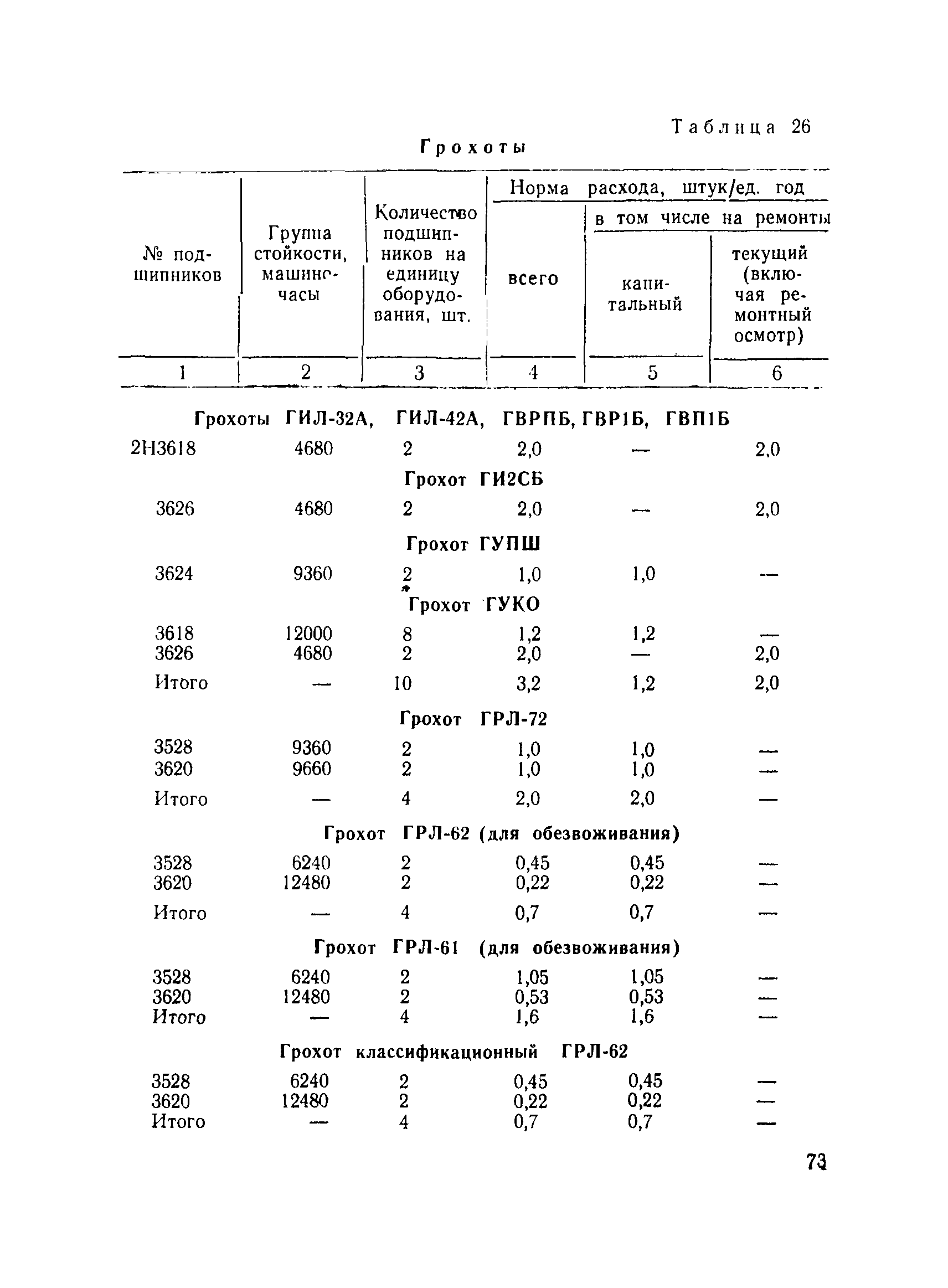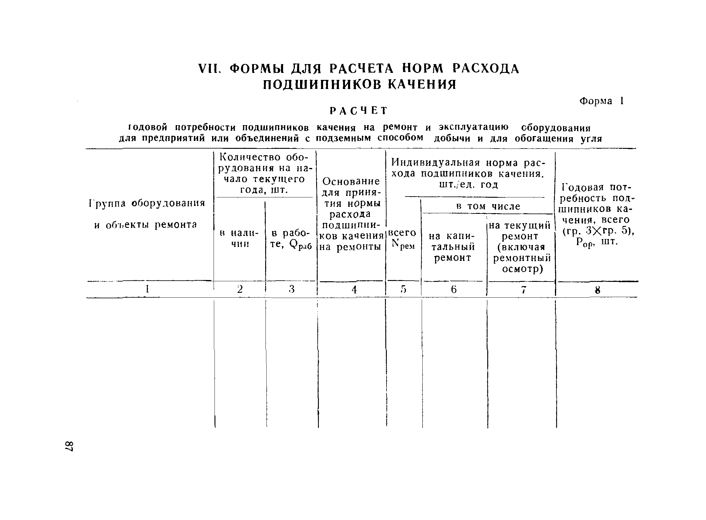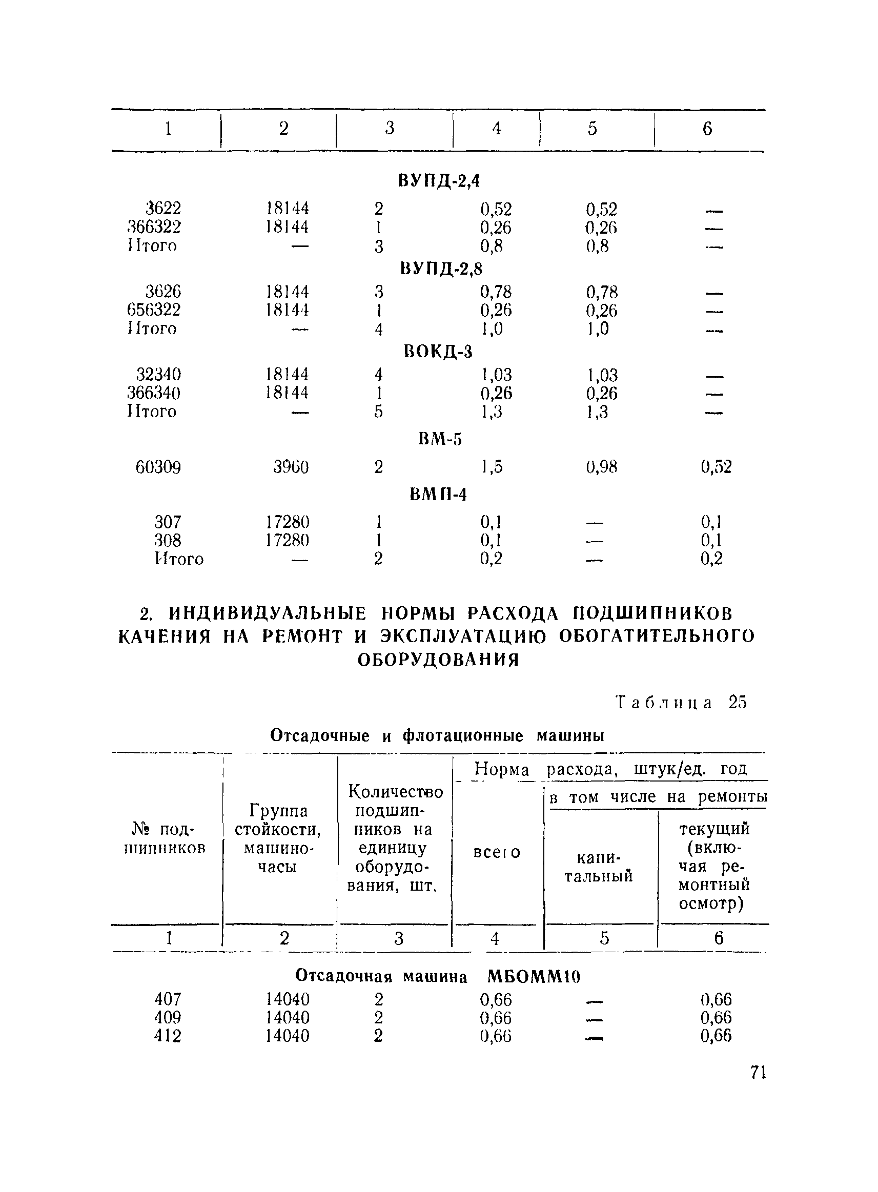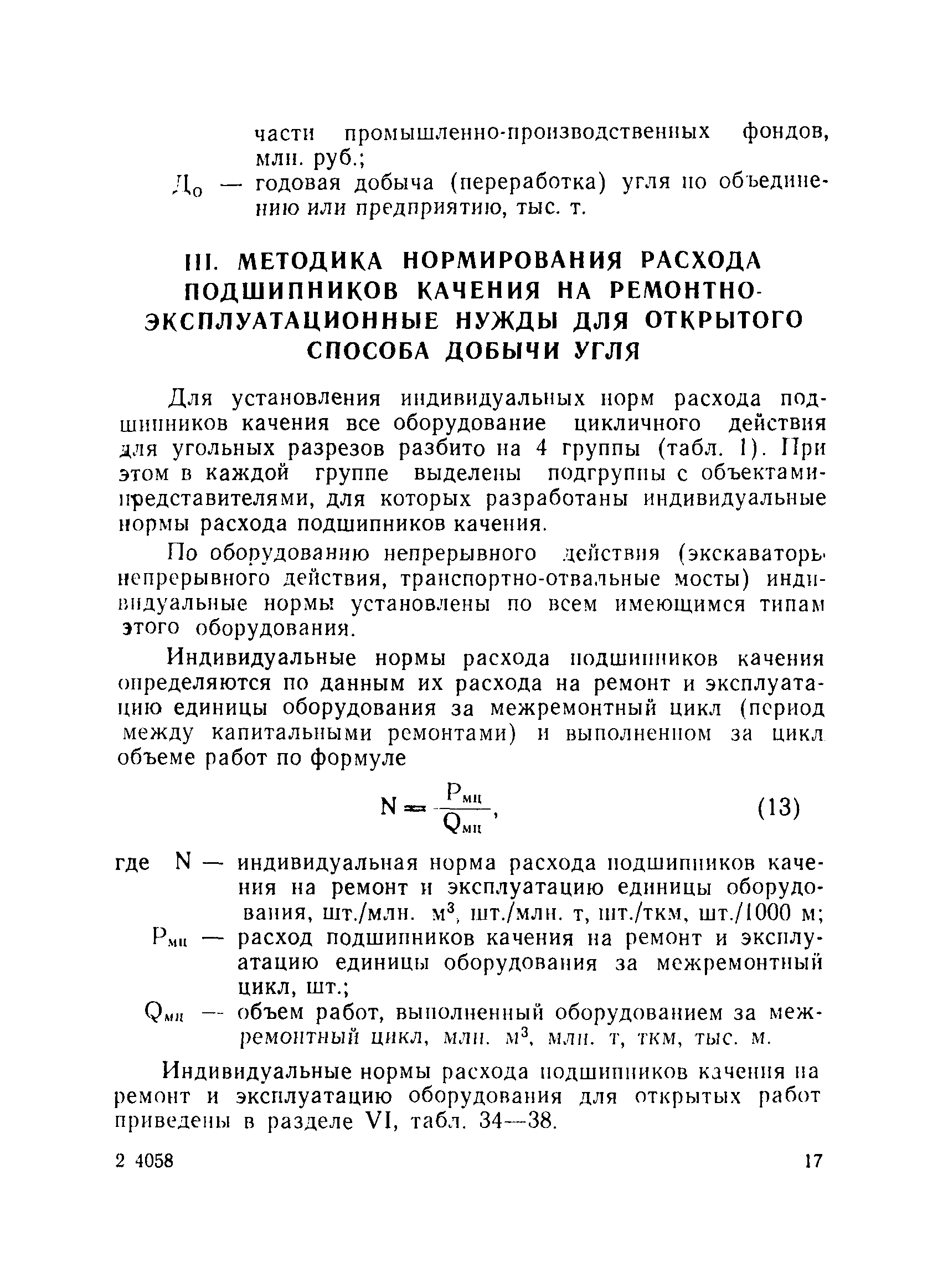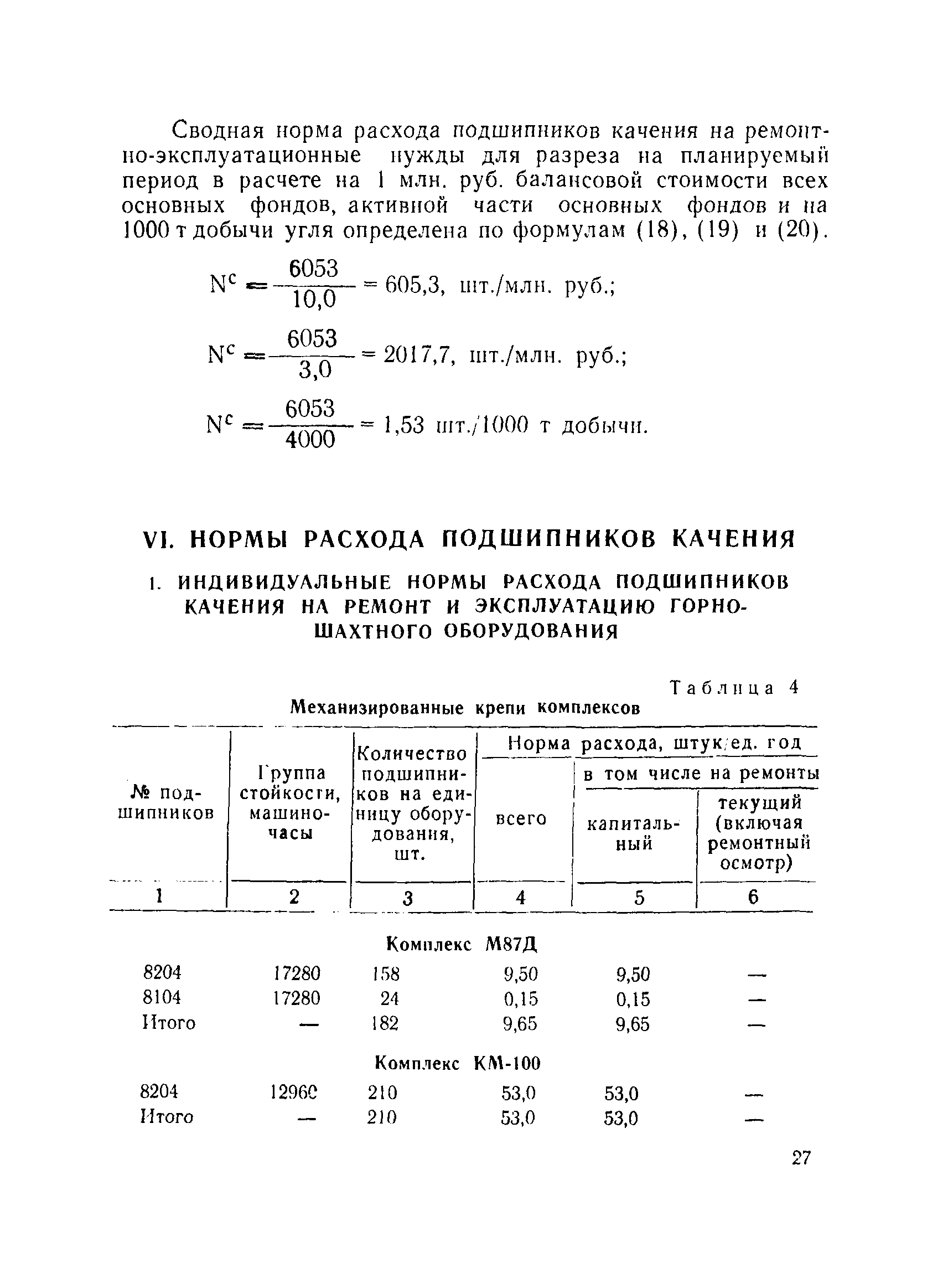 | Оглавление: | I. Общие положения II. Методика нормирования расхода подшипников качения на ремонтно-эксплуатационные нужды для подземного способа добычи и обогащения угля III. Методика нормирования расхода подшипников качения на ремонтно-эксплуатационные нужды для открытого способа добычи угля IV. Основные направления по рациональному использованию и экономии подшипников качения V. Примеры расчета сводных норм расхода подшипников качения для объединения и предприятия VI. Нормы расхода подшипников качения VII. Формы для расчета норм расхода подшипников качения |