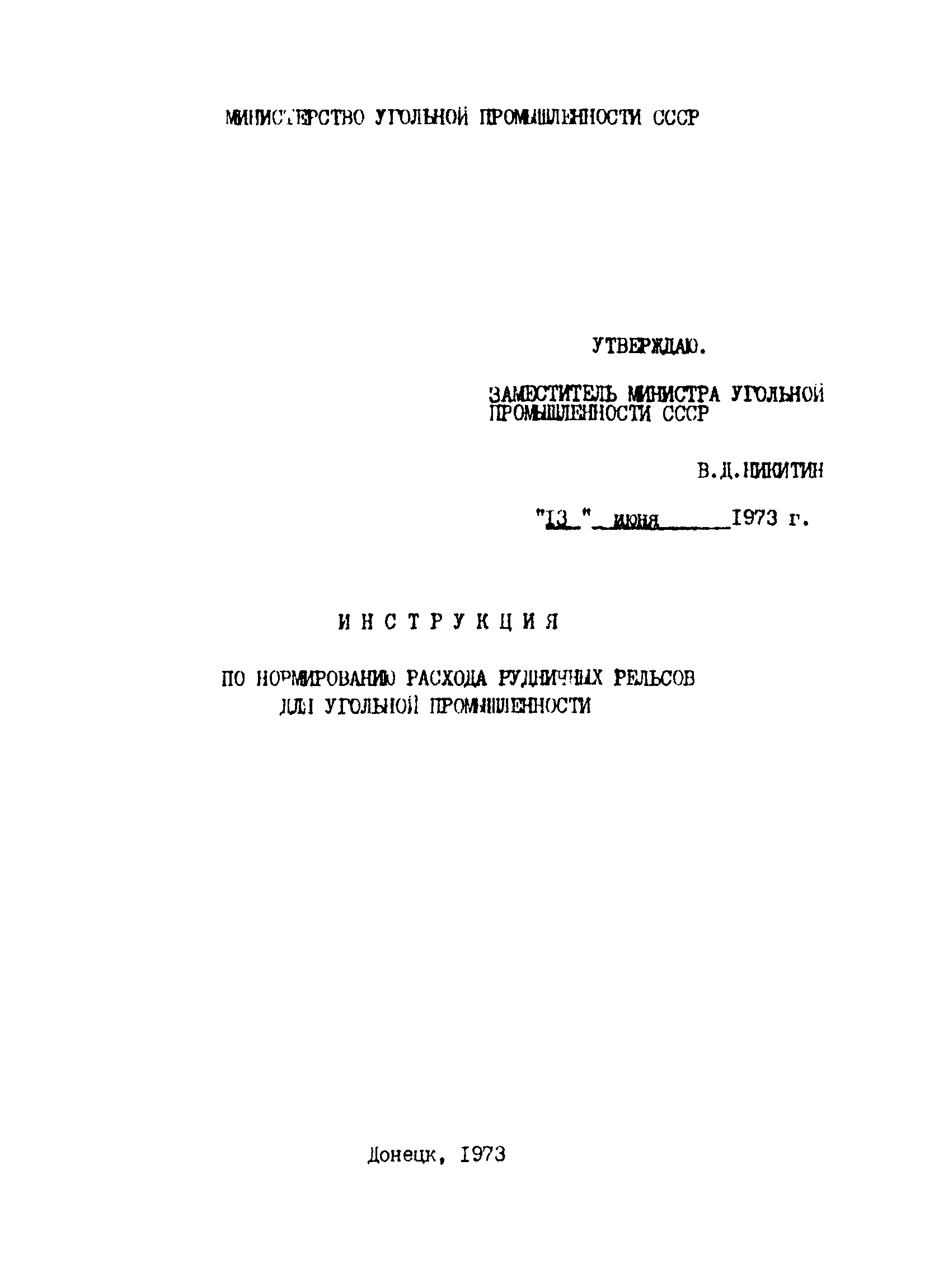 | Утверждён: | 13.06.1973 Министерство угольной промышленности СССР (USSR Ministry of the Coal Industry )
