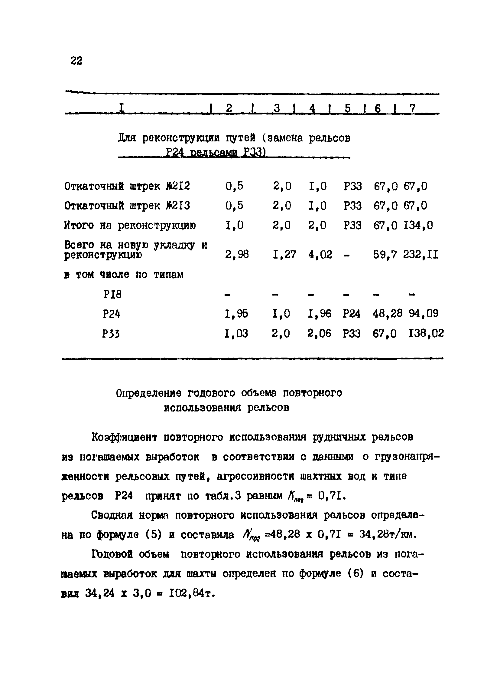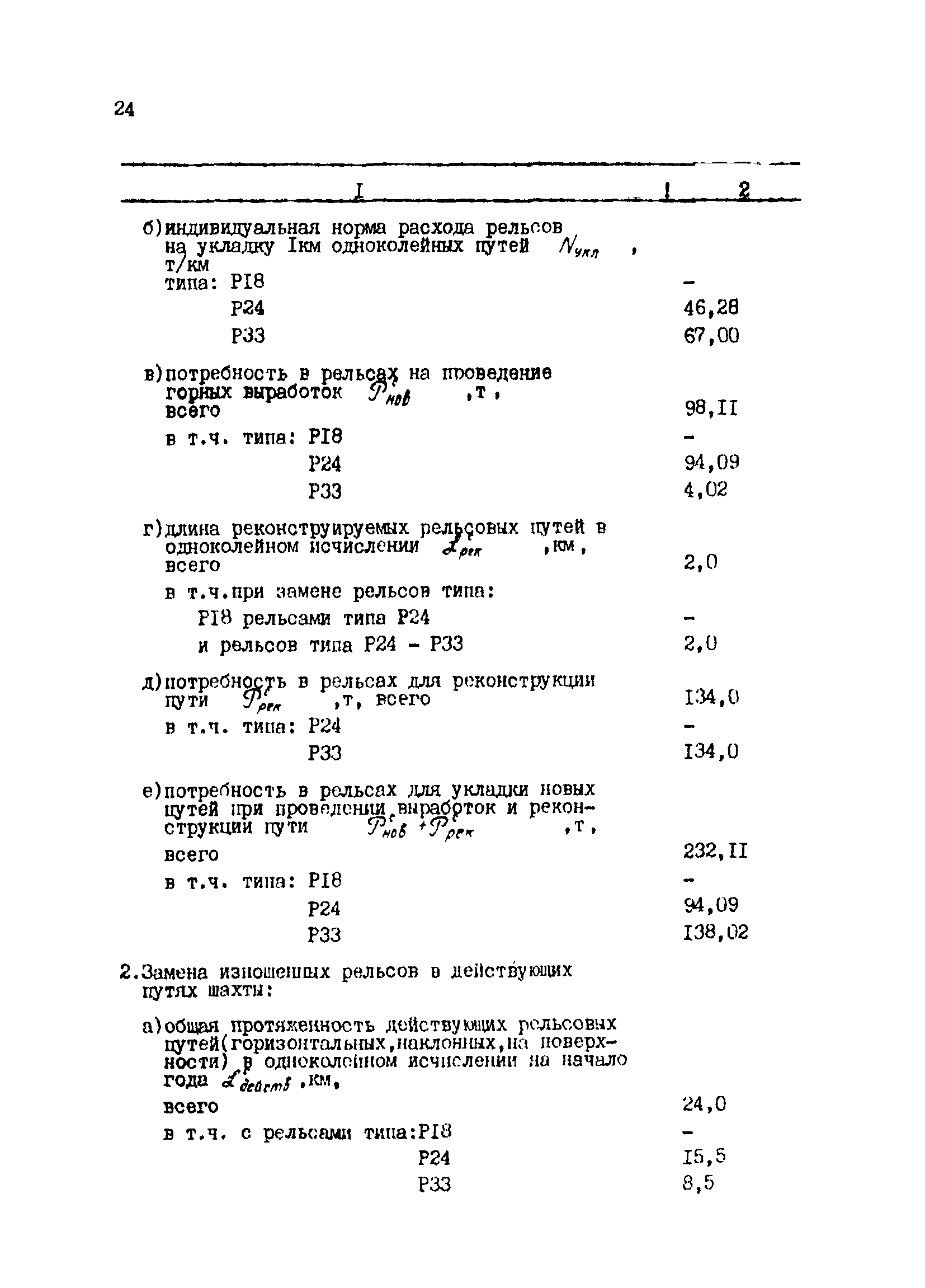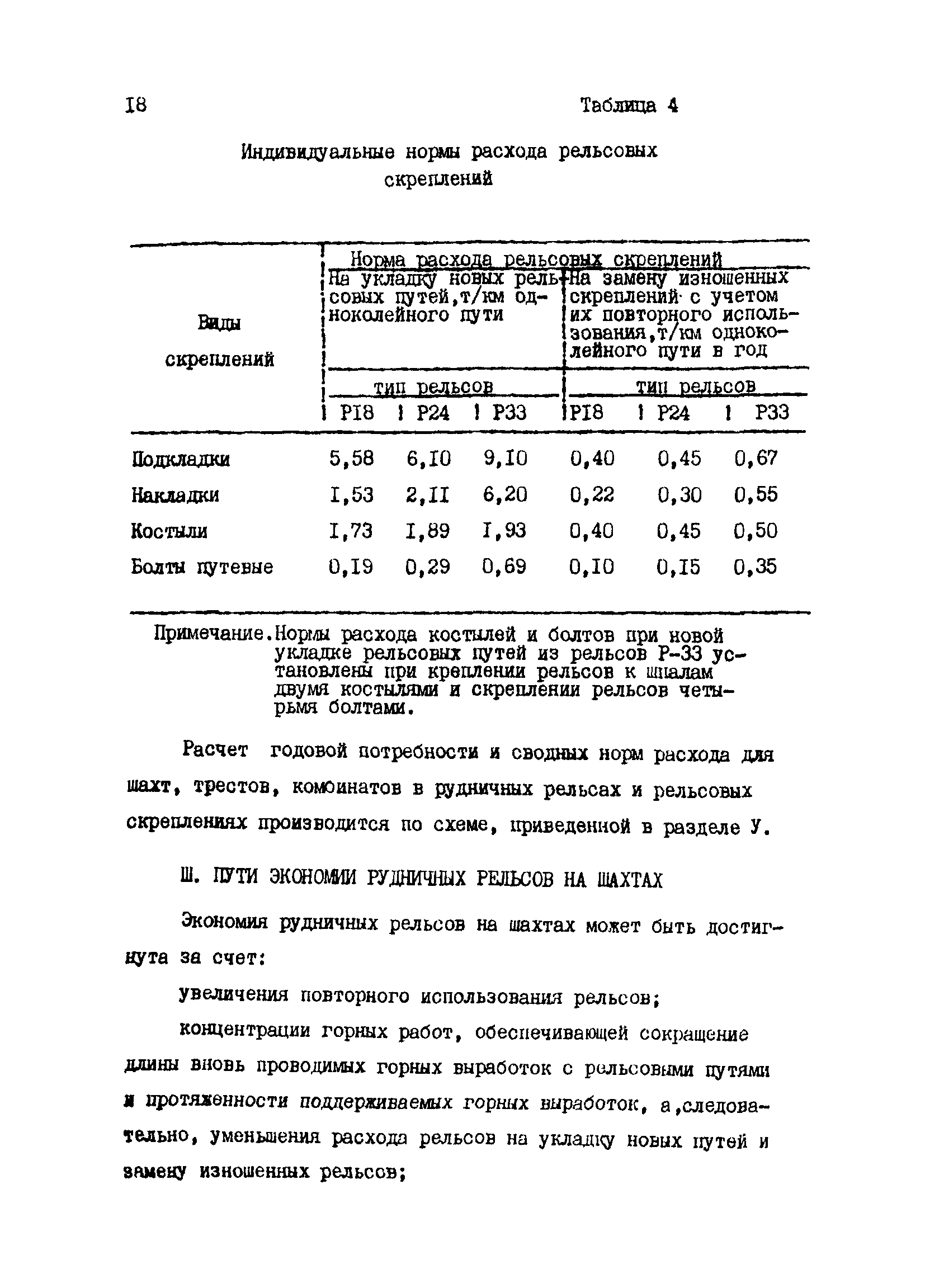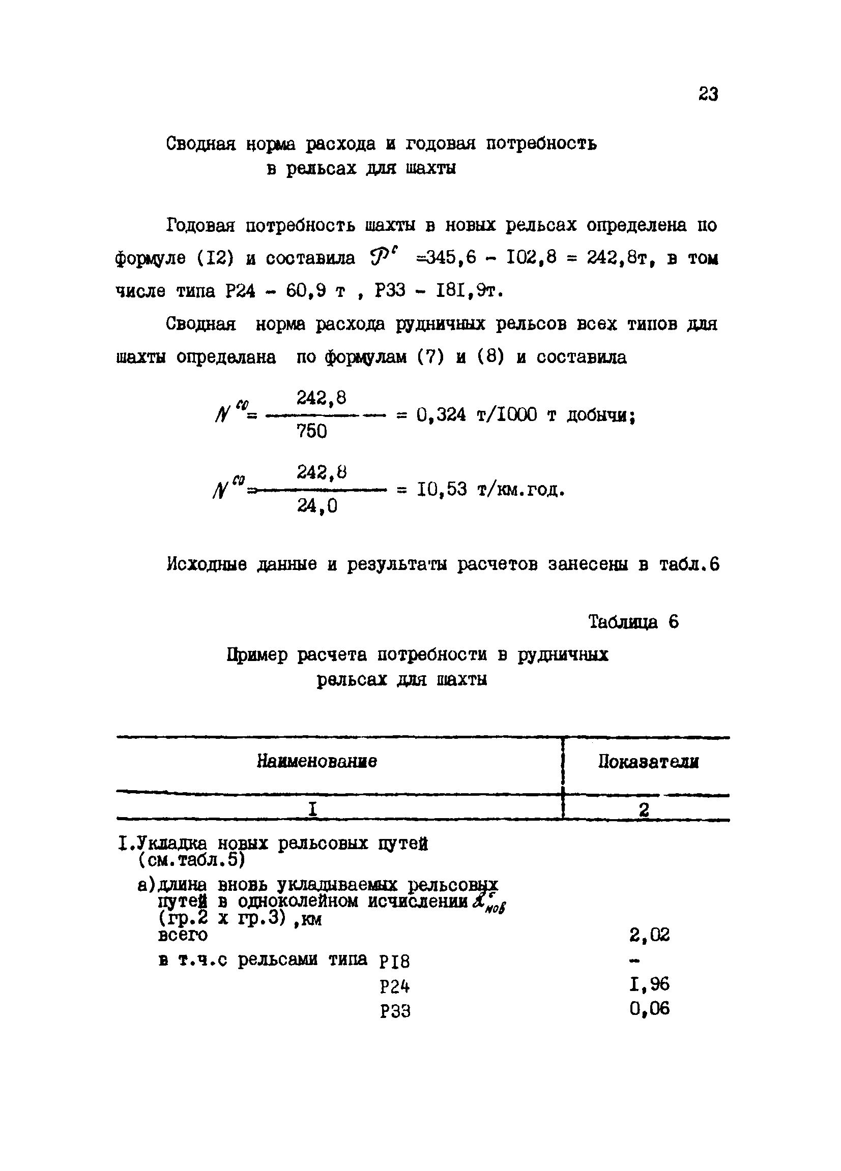 | Оглавление: | 1 Общие положения по нормированию расхода материалов 2 Методика нормирования расхода рудничных рельсов 1 Основные положения 2 Нормирование расхода рудничных рельсов 3 Нормирование расхода рельсовых скреплений 3 Пути экономии рудничных рельсов на шахтах 4 Примеры расчета норм расхода и годовой потребности в рудничных рельсах 5 Формы для расчета потребности и норм расхода рудничных рельсов и скреплений |