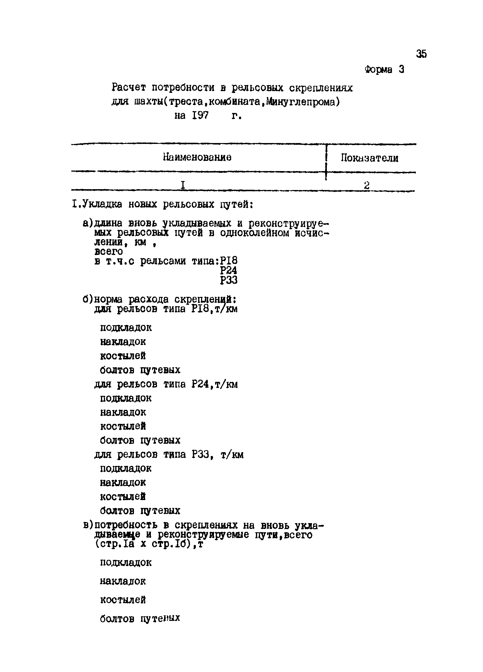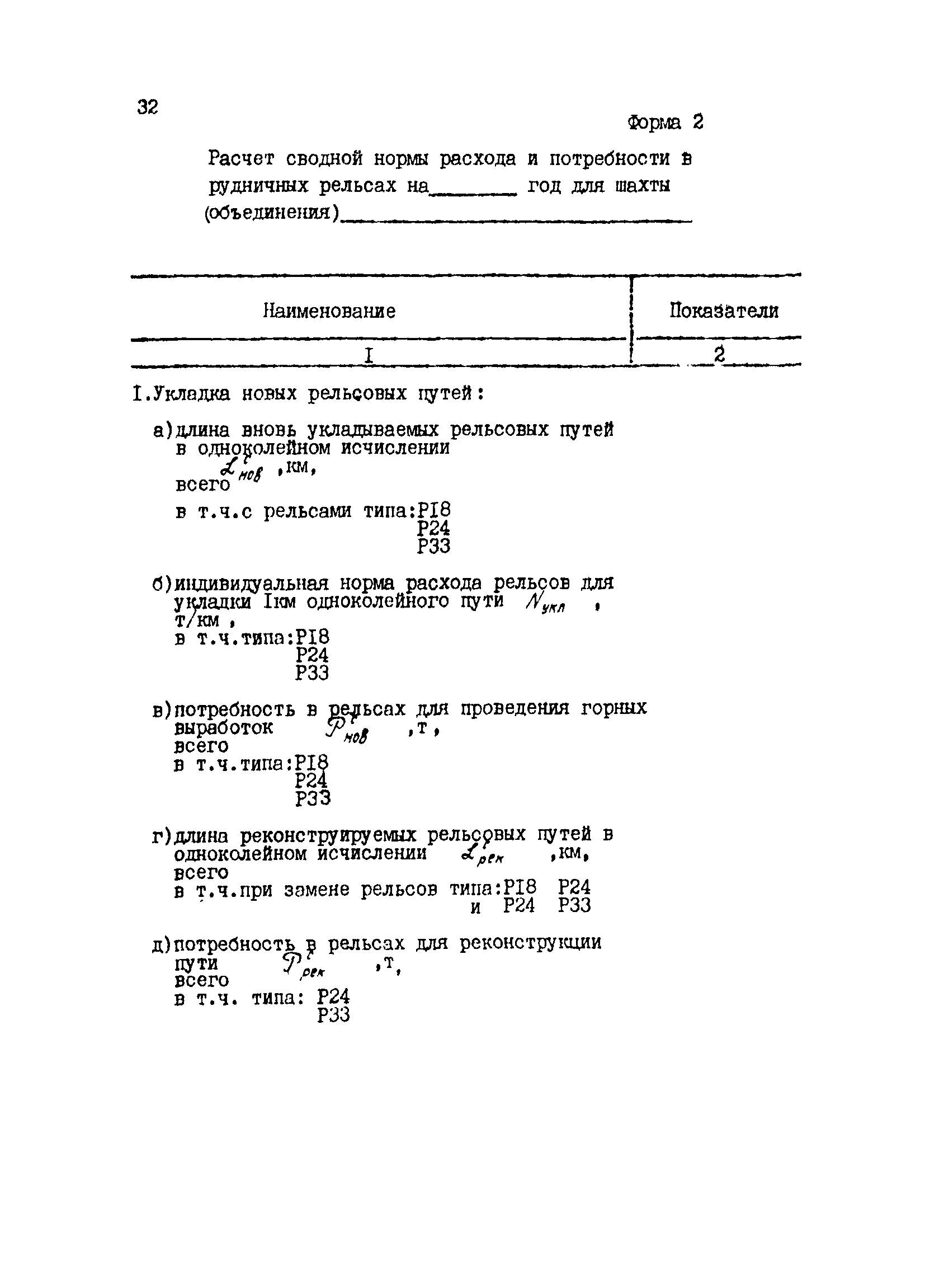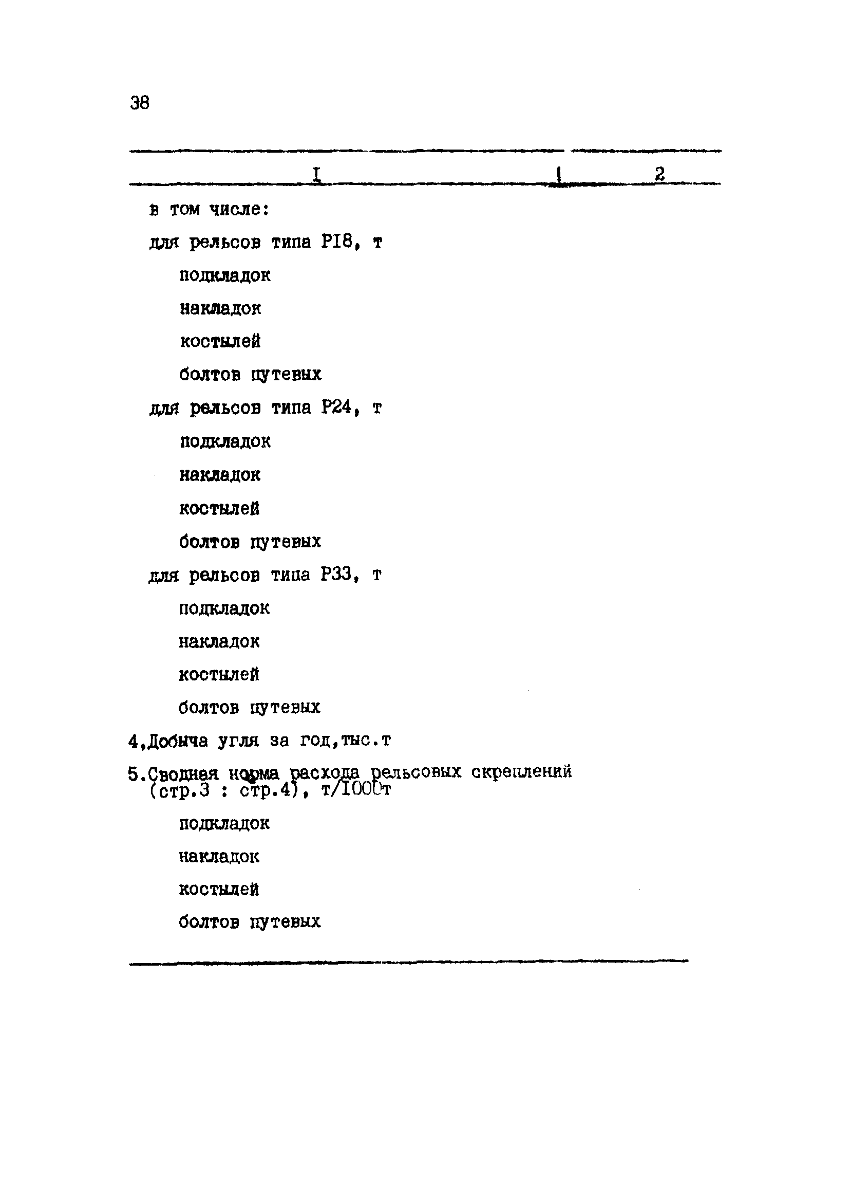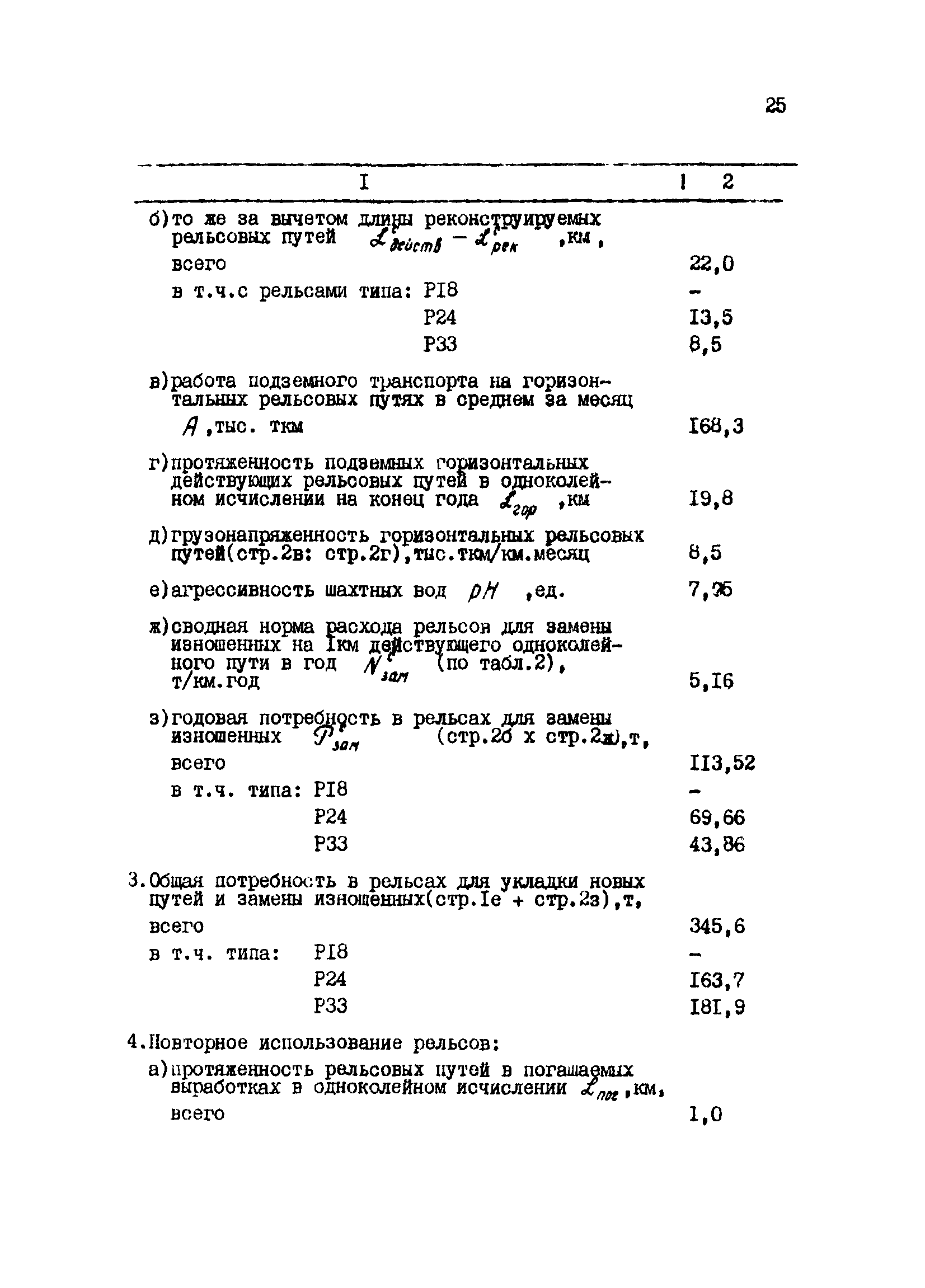 | Оглавление: | 1 Общие положения по нормированию расхода материалов 2 Методика нормирования расхода рудничных рельсов 1 Основные положения 2 Нормирование расхода рудничных рельсов 3 Нормирование расхода рельсовых скреплений 3 Пути экономии рудничных рельсов на шахтах 4 Примеры расчета норм расхода и годовой потребности в рудничных рельсах 5 Формы для расчета потребности и норм расхода рудничных рельсов и скреплений |