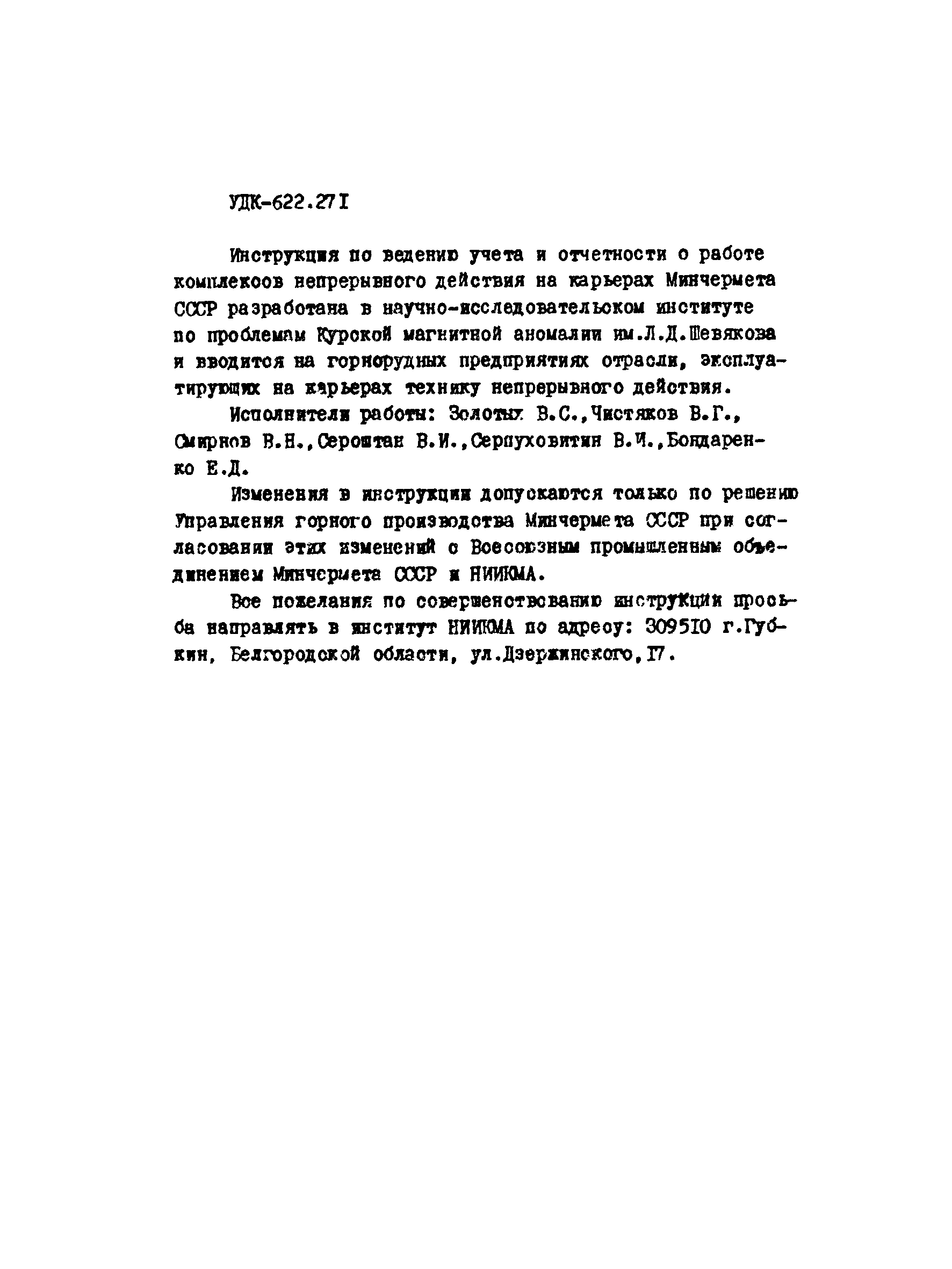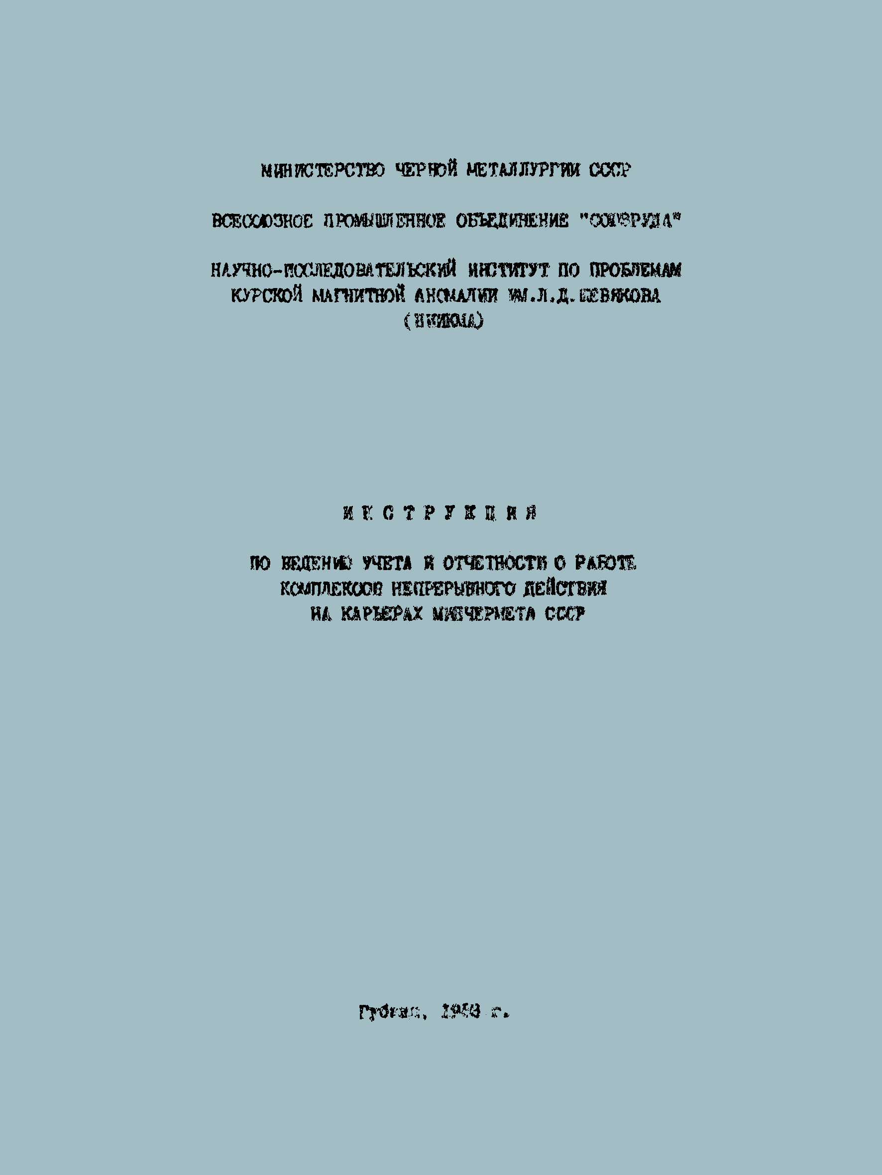 | Название рус.: | Инструкция по ведению учета и отчетности о работе комплексов непрерывного действия на карьерах Минчермета СССР |