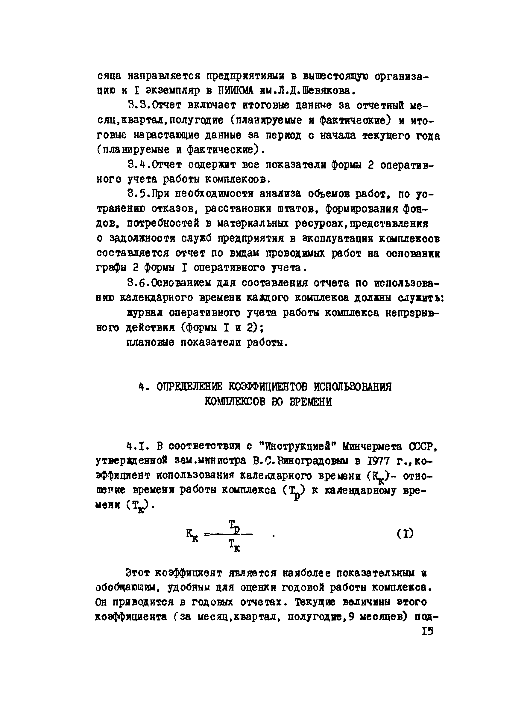 | Оглавление: | Общие положения Методика учета использования календарного времени Методика отчетности по использованию календарного времени Определение коэффициентов использования комплексов во времени Технико-экономические показатели работы комплексов Классификация видов простоев комплексов непрерывного действия Заключение |