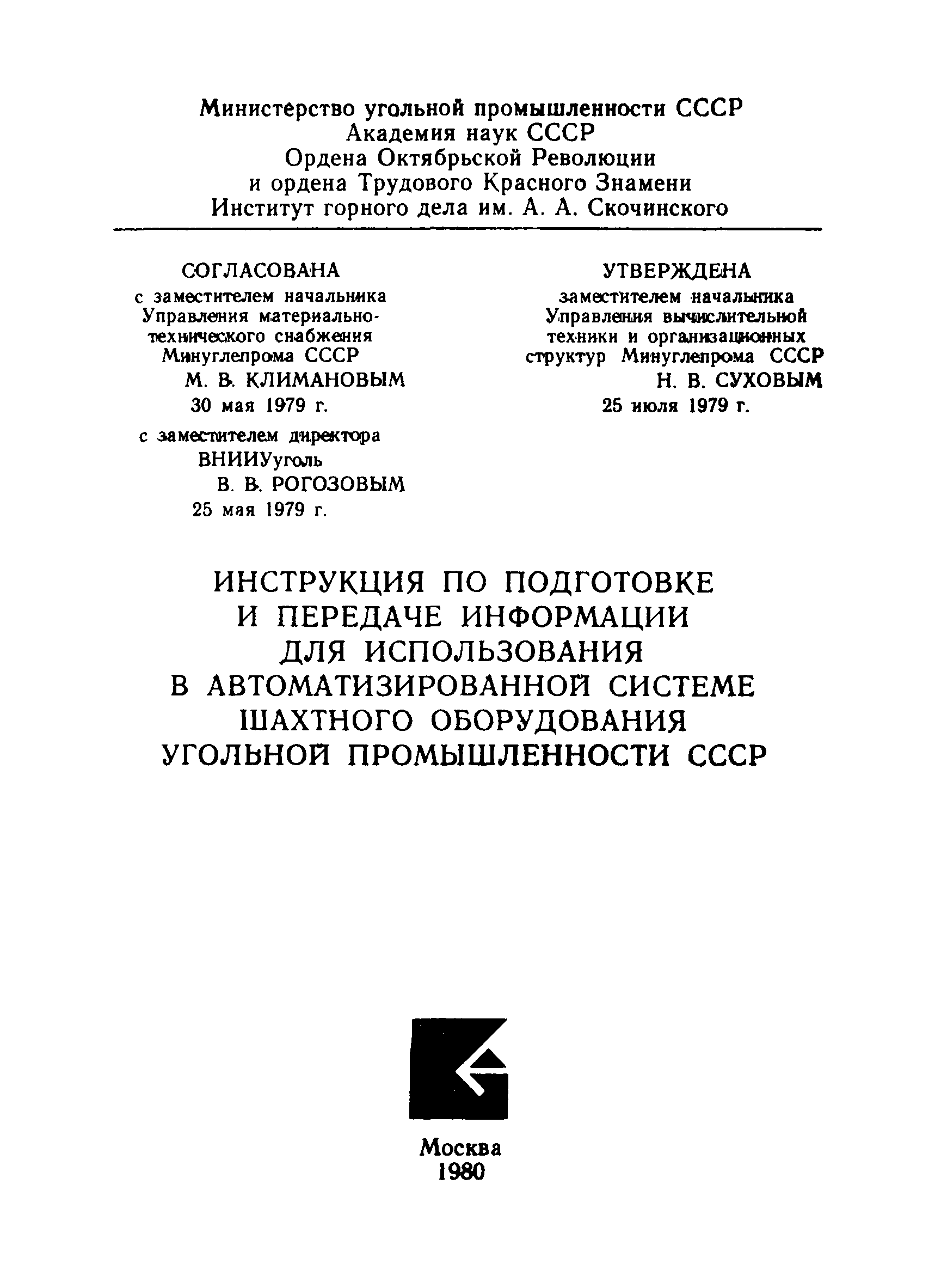 | Принят: | 30.05.1979 Министерство угольной промышленности СССР (USSR Ministry of the Coal Industry ) 25.05.1979 ВНИИУголь