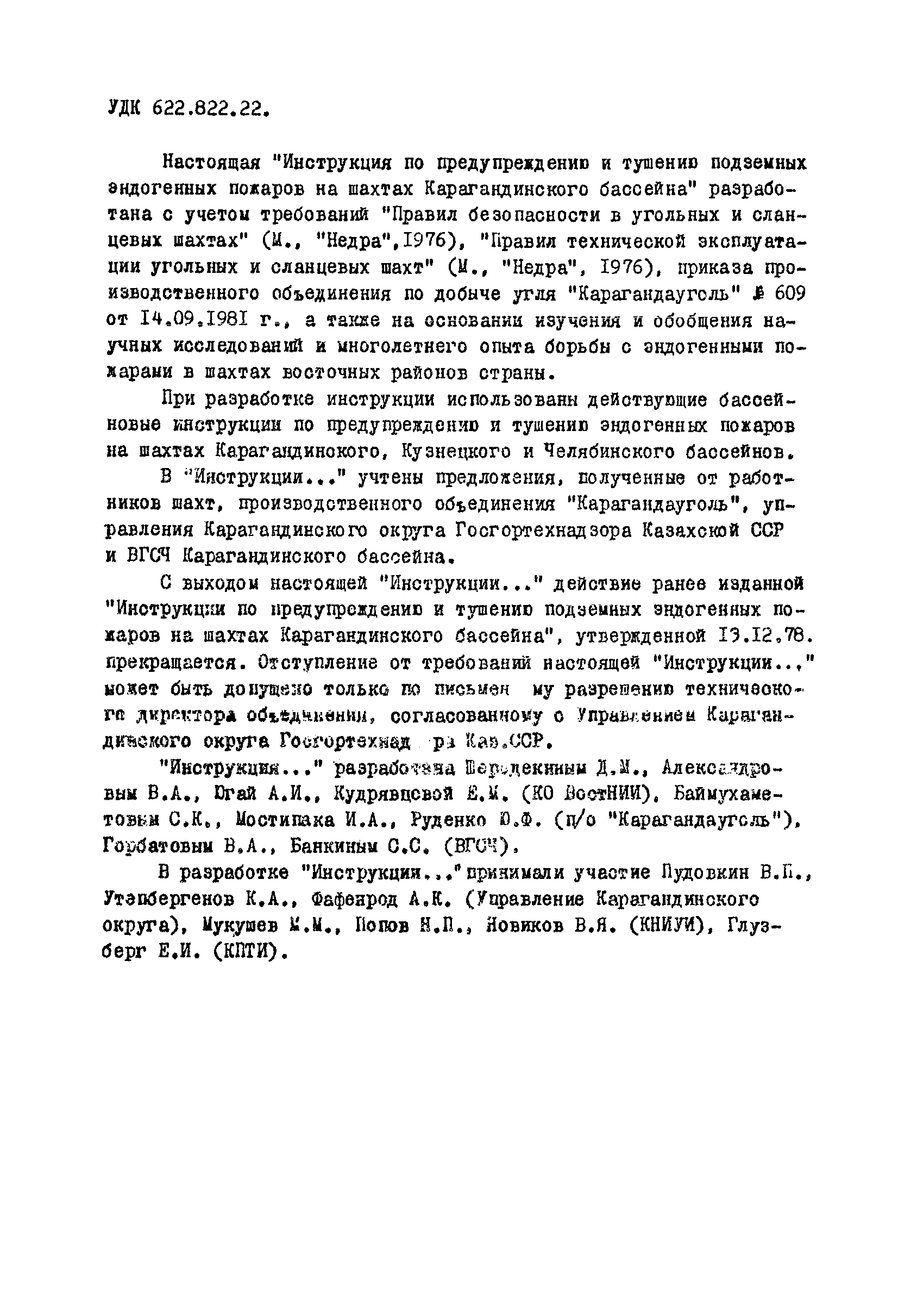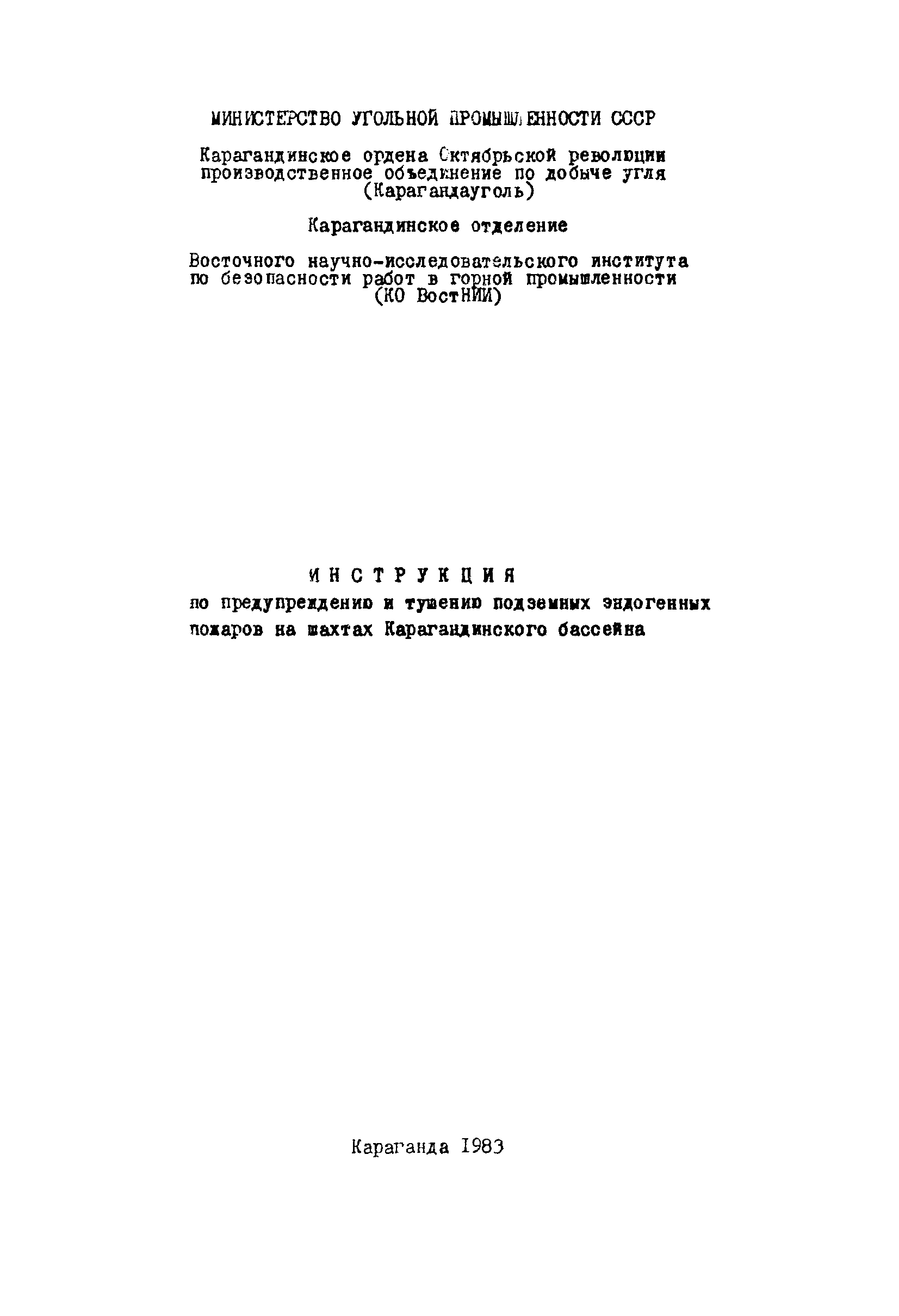 | Название рус.: | Инструкция по предупреждению и тушению подземных эндогенных пожаров на шахтах Карагандинского бассейна |