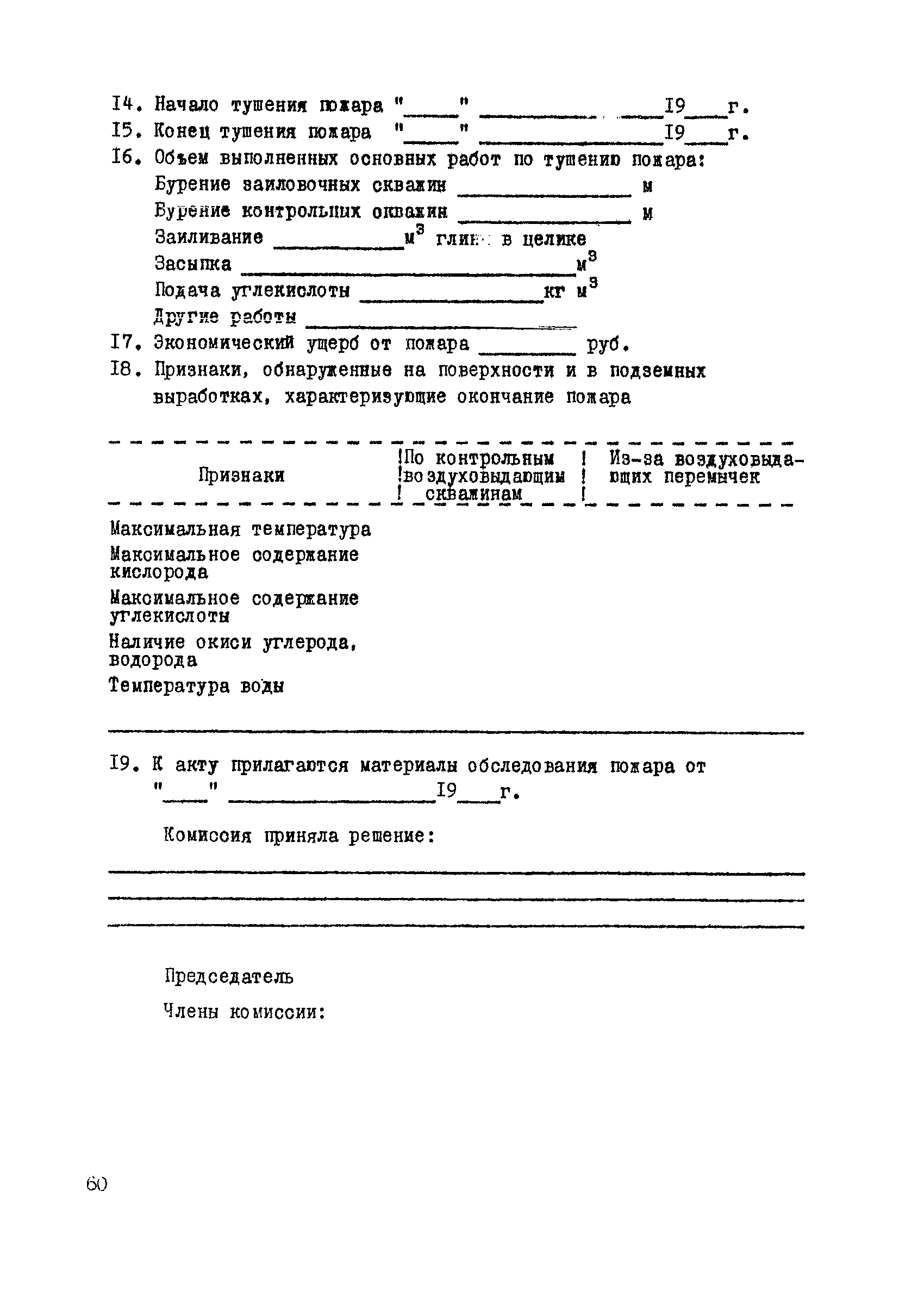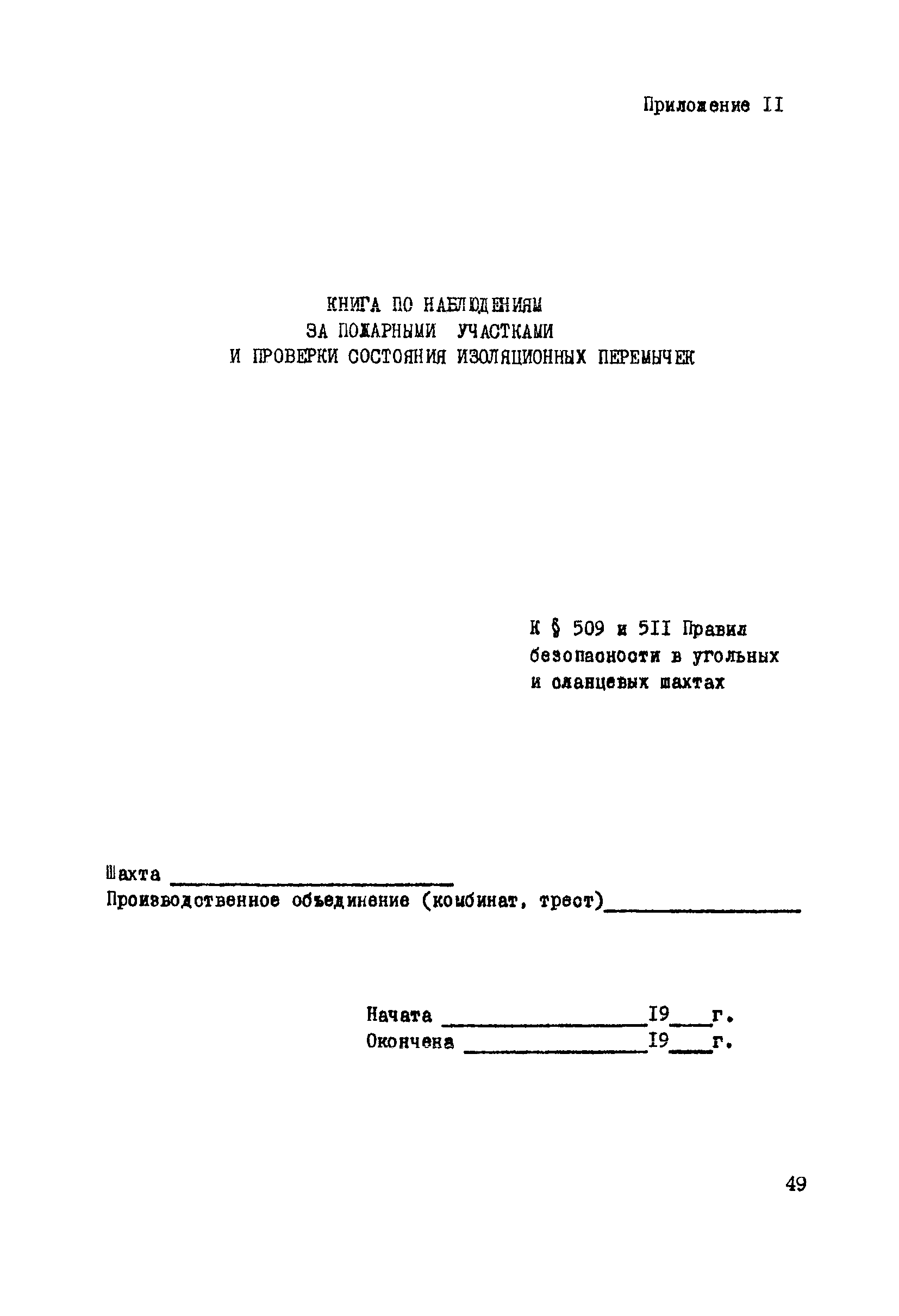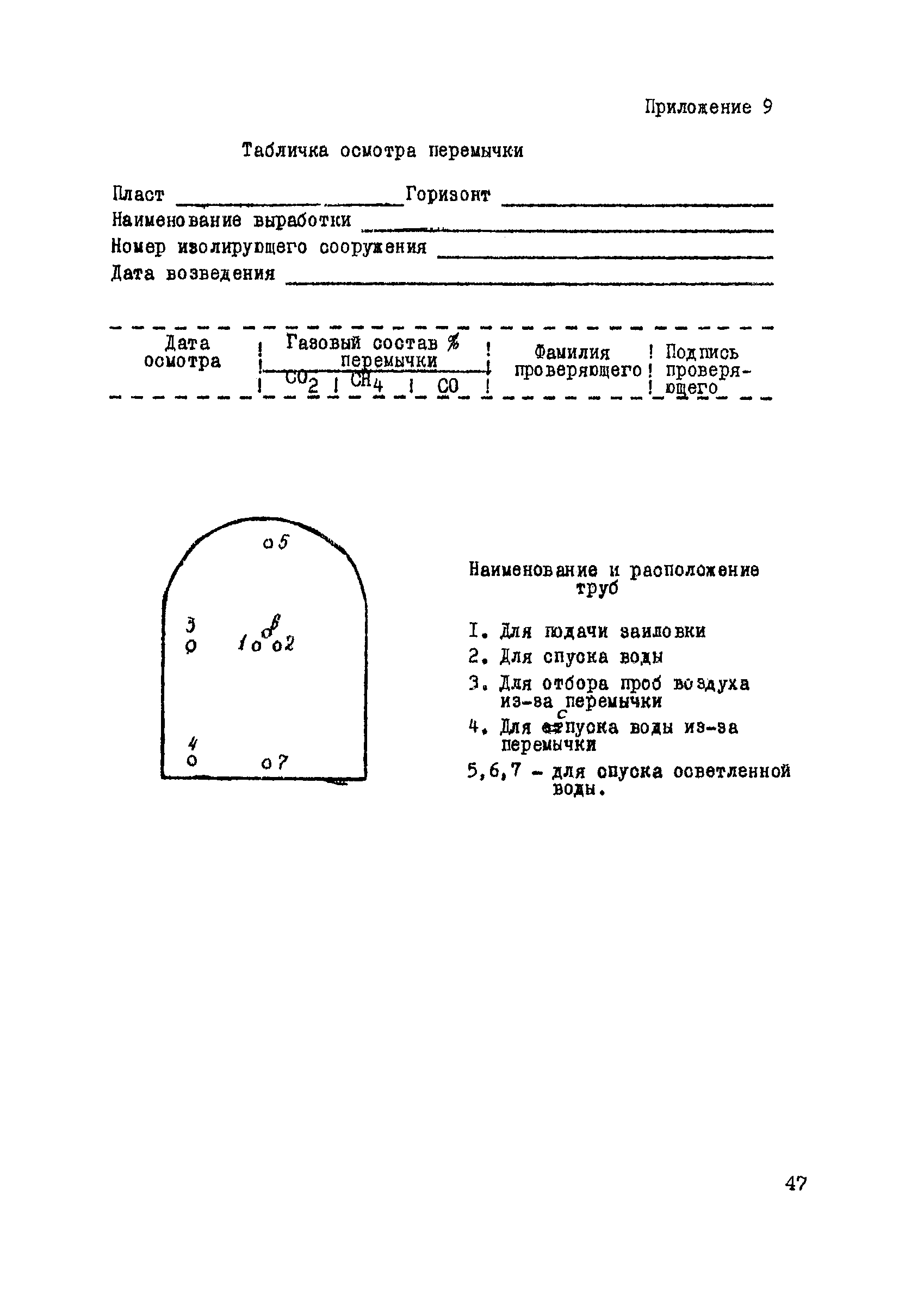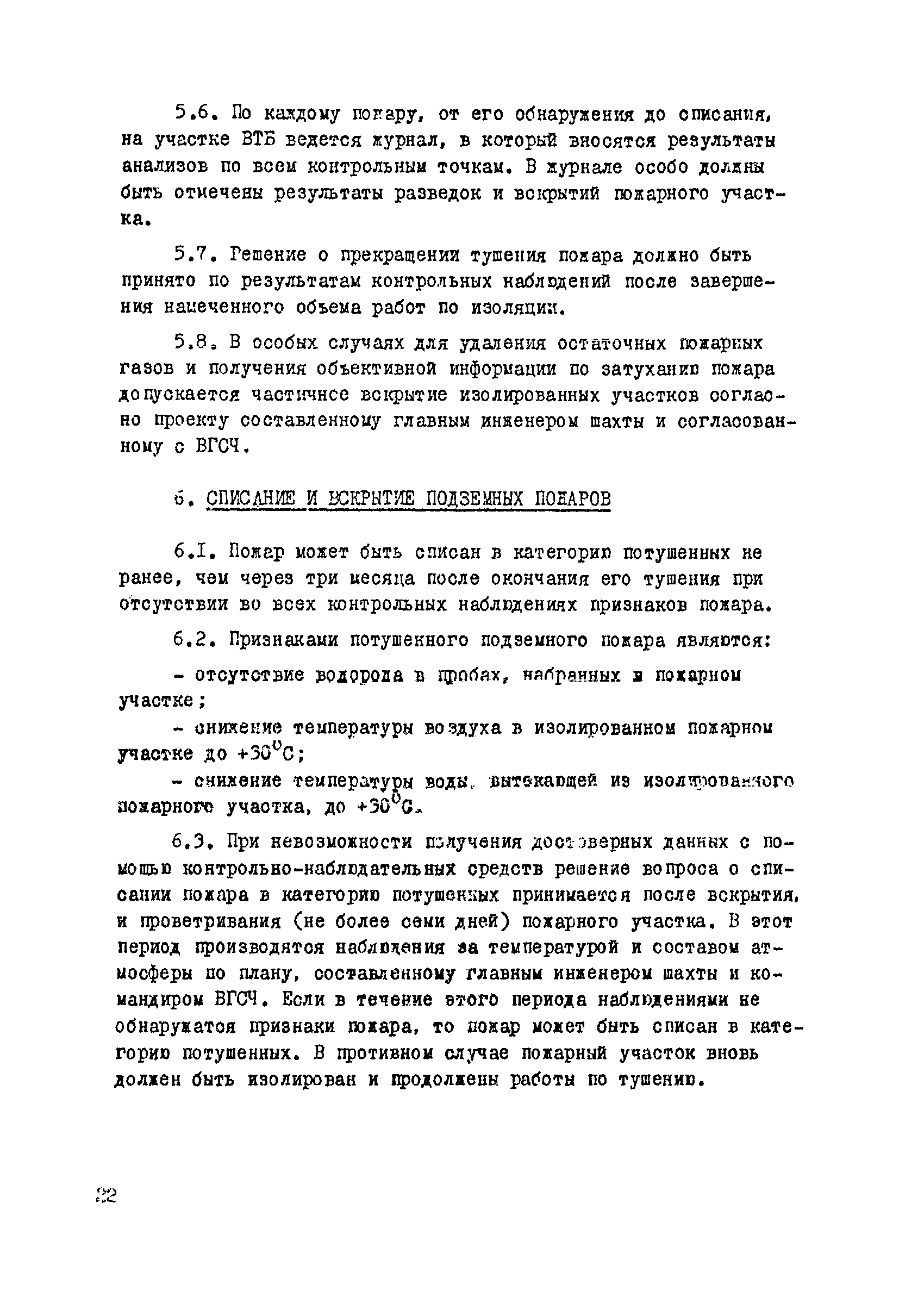 | Оглавление: | 1. Общие положения 2. Профилактика эндогенных пожаров 3. Изоляция отработанных участков и погашенных выработок 4. Подавление самонагревания угля 5. Тушение эндогенных пожаров 6. Списание и вскрытие подземных пожаров 7. Ведение горных работ под потушенными пожарами Приложение 1. Основные понятия Приложение 2. Инструкция по набору проб угля для определения степени склонности к самовозгоранию Приложение 3. Пожароопасные потери по мощности Приложение 4. Ширина эксплуатационных целиков по падению пласта для поддержания горных работ Приложение 5. Журнал наблюдений за признаками самонагревания угля Приложение 6. План отбора проб воздуха в шахте (форма 1) Приложение 7. Акт об обнаружении признаков самонагревания угля Приложение 8. Условные обозначения изолирующих сооружений Приложение 9. Табличка осмотра перемычки Приложение 10. Акт приемки изолирующего сооружения Приложение 11. Книга по наблюдениям за пожарными участками и проверками состояния изоляционных перемычек Приложение 12. Книга учета подачи заиловки Приложение 13. Выбор антипирогенов Приложение 14. Журнал регистрации эндогенных пожаров и их рецидивов Приложение 15. Акт на списание подземного пожара в категории потушенных |