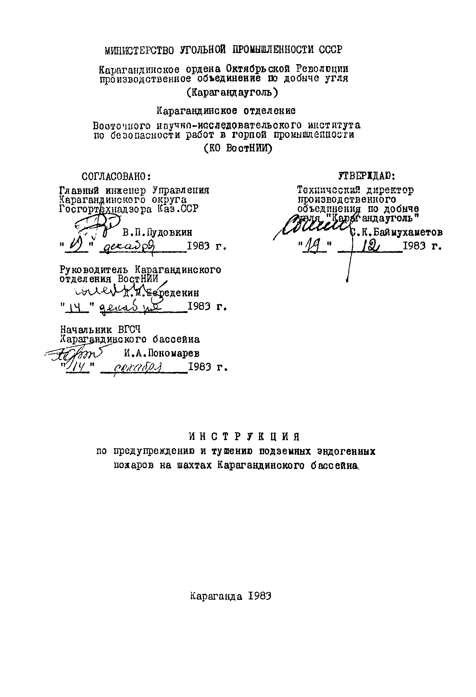 | Утверждён: | 19.12.1983 ПО Карагандауголь